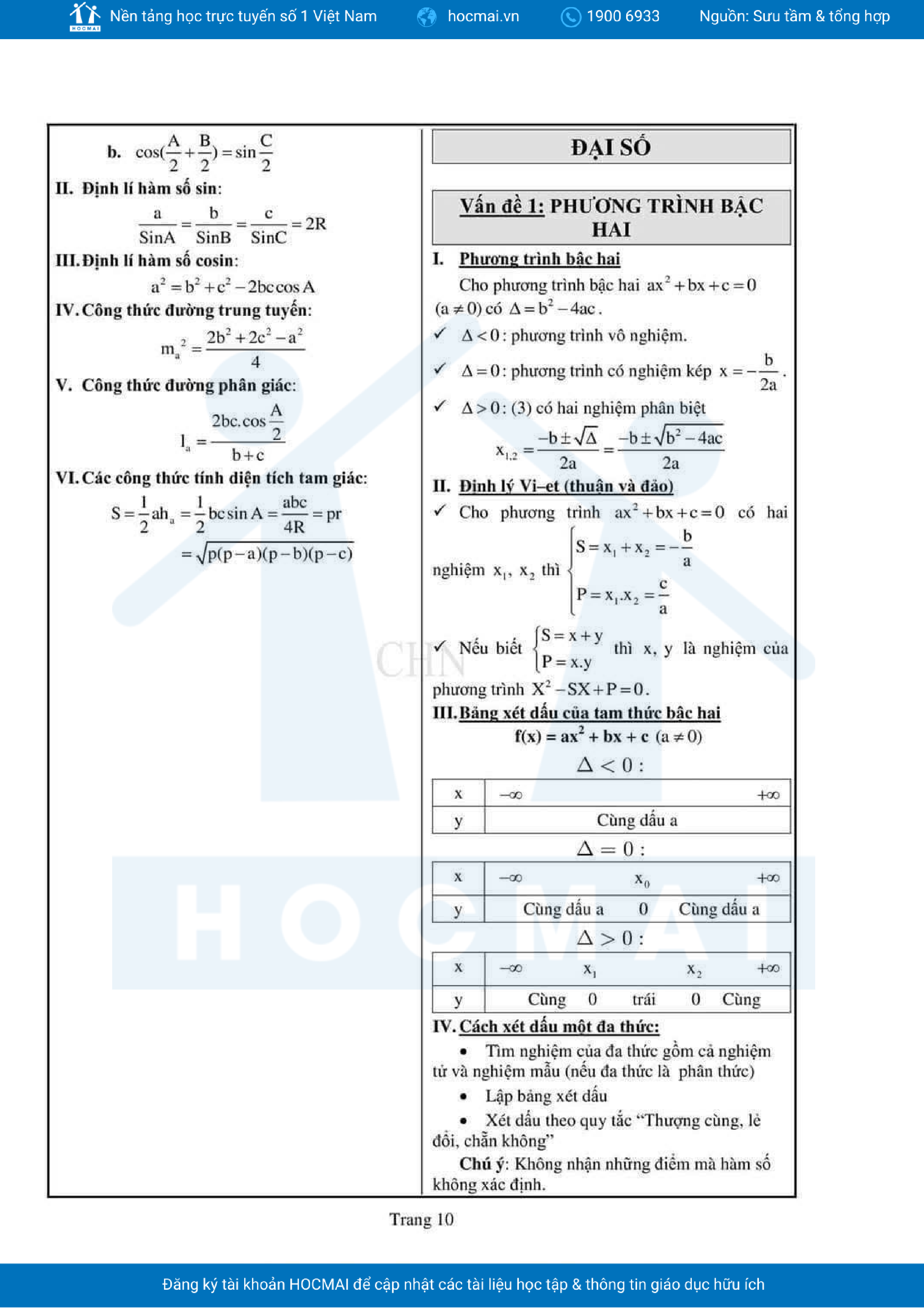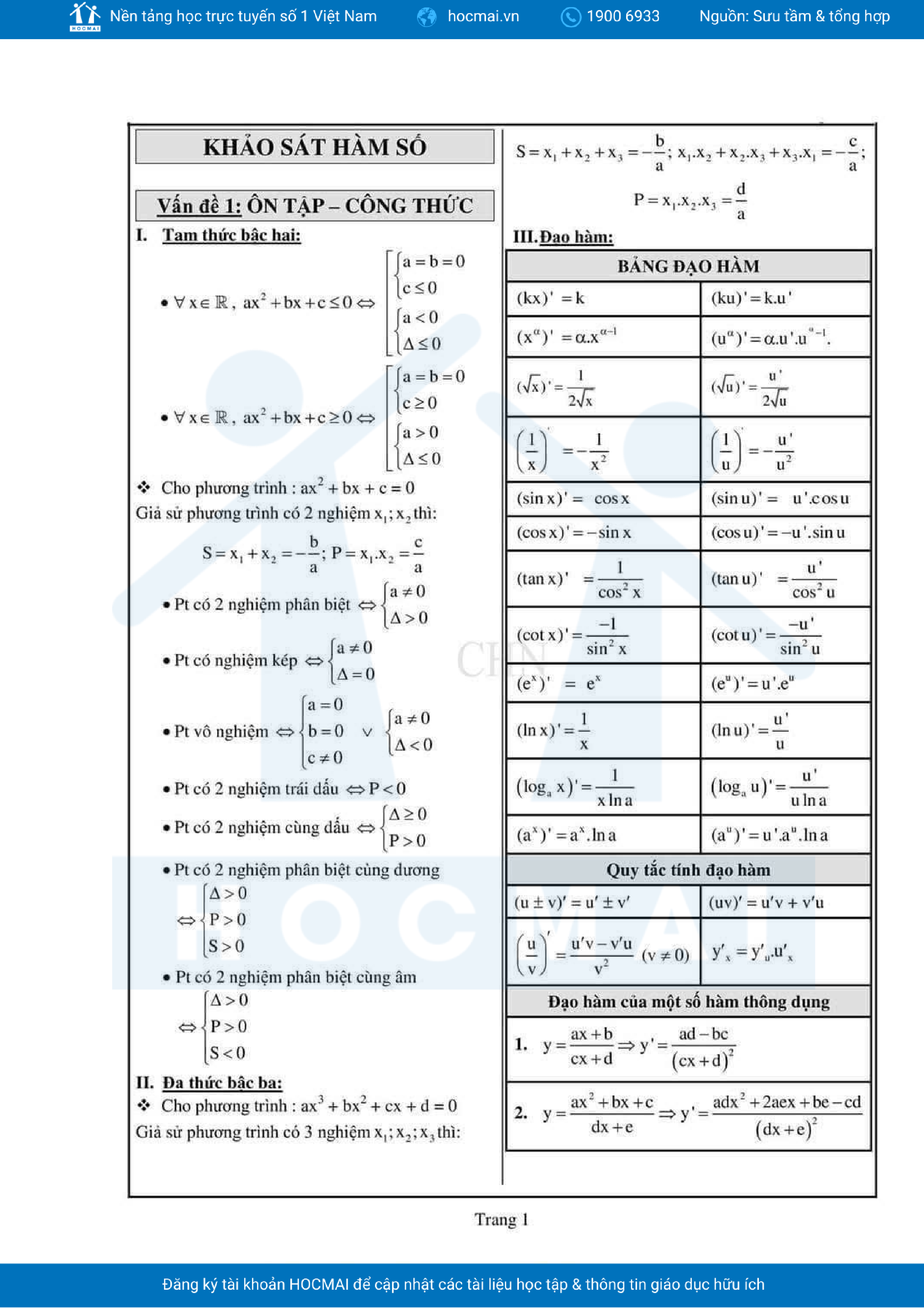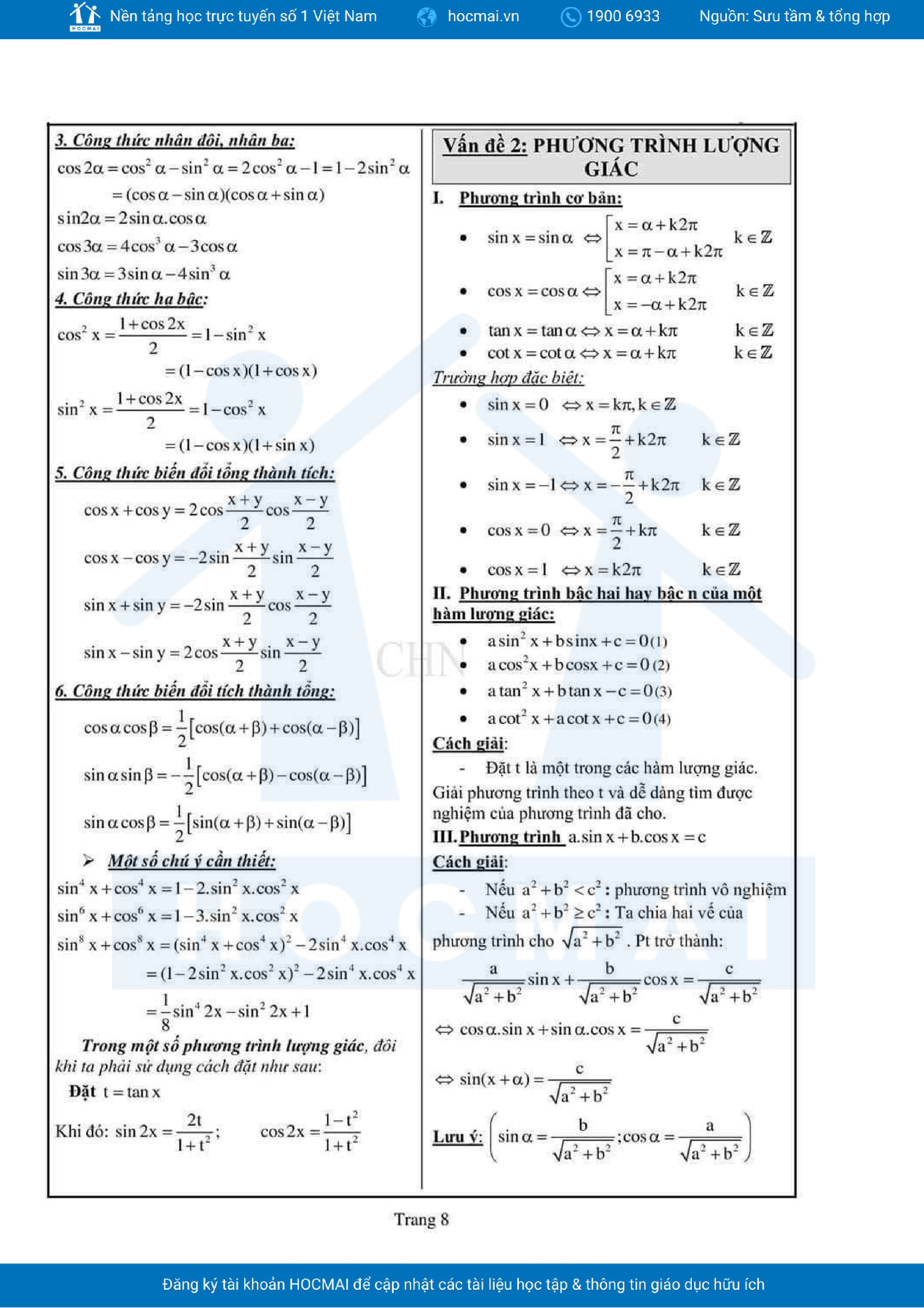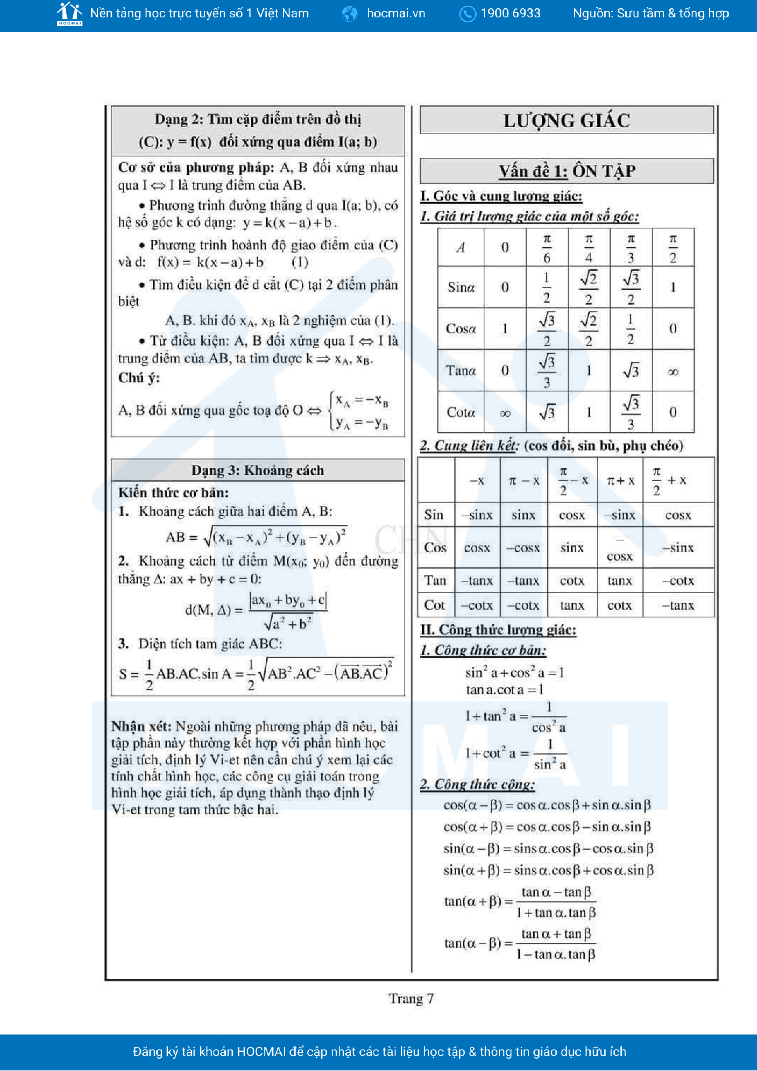 TỔNG HỢP CÔNG THỨC TOÁN CHƯƠNG TRÌNH LỚP 11 + 12