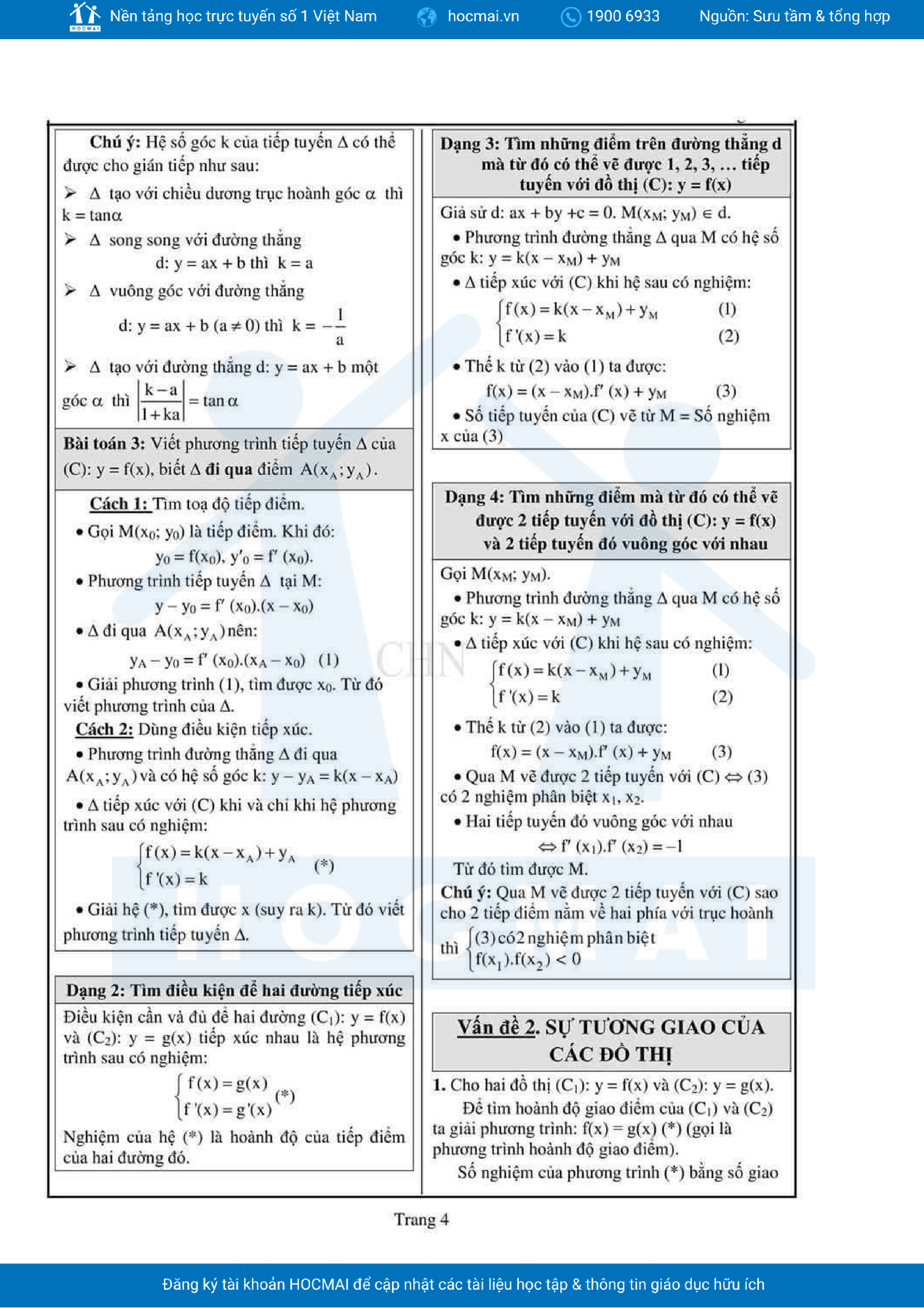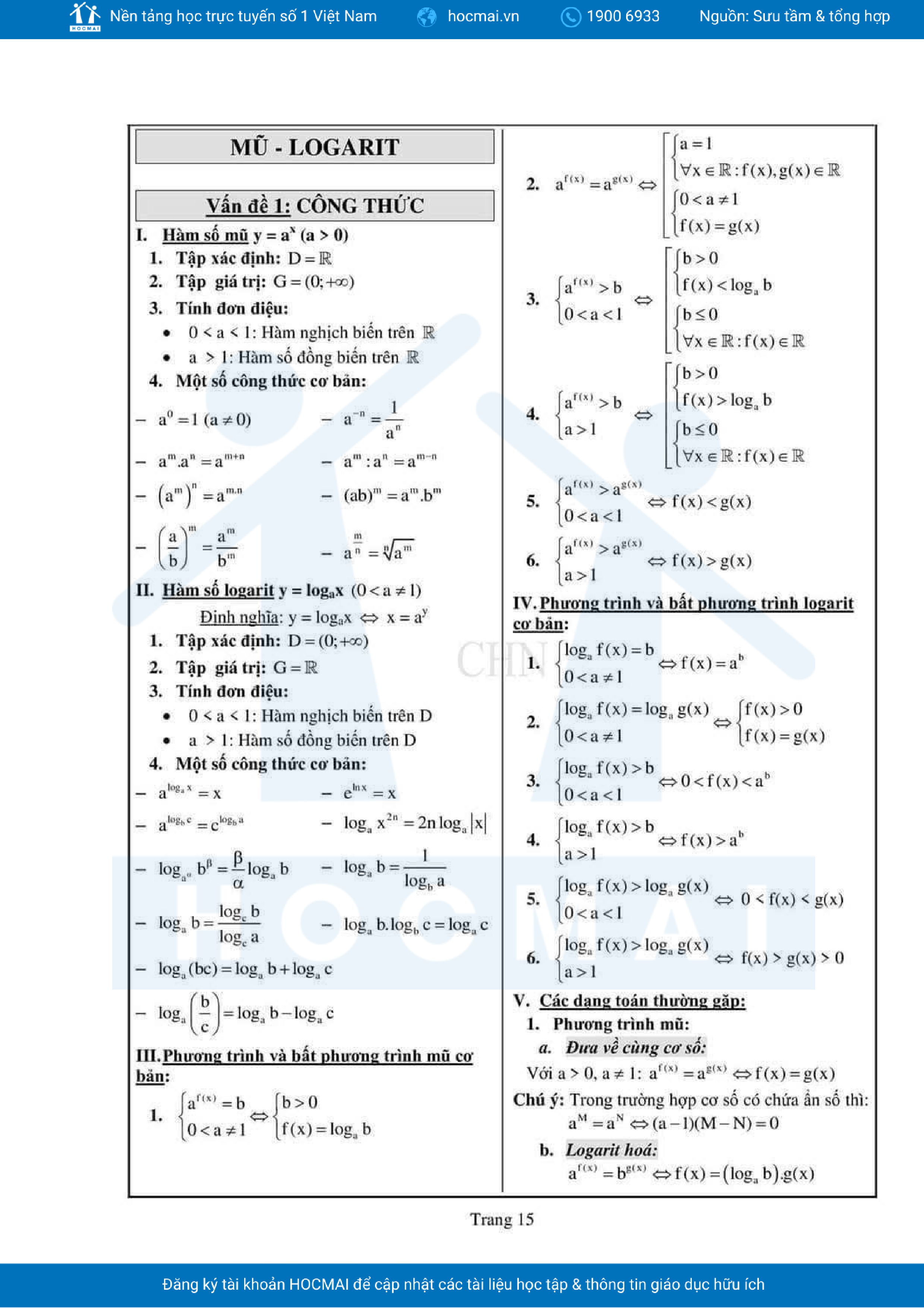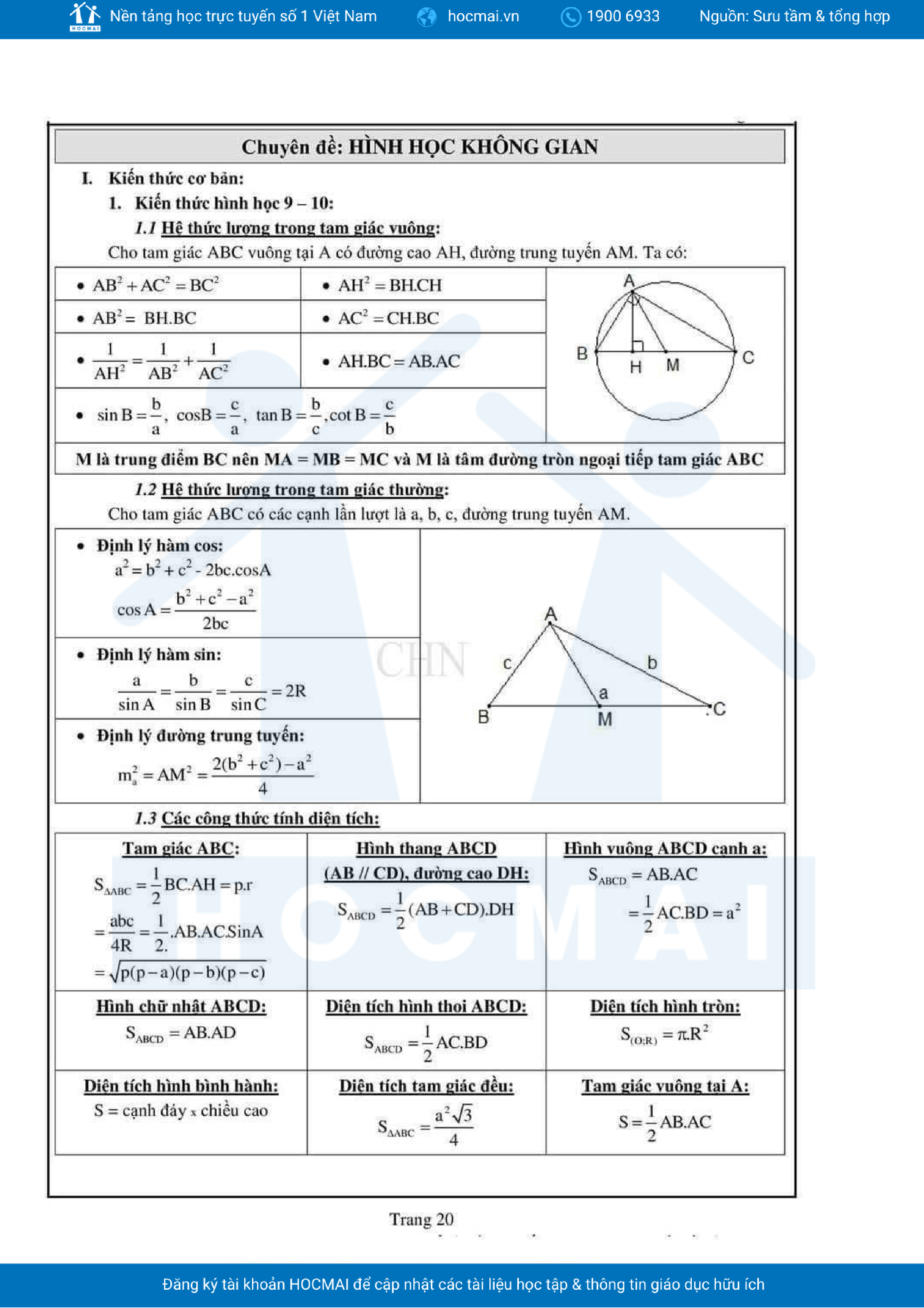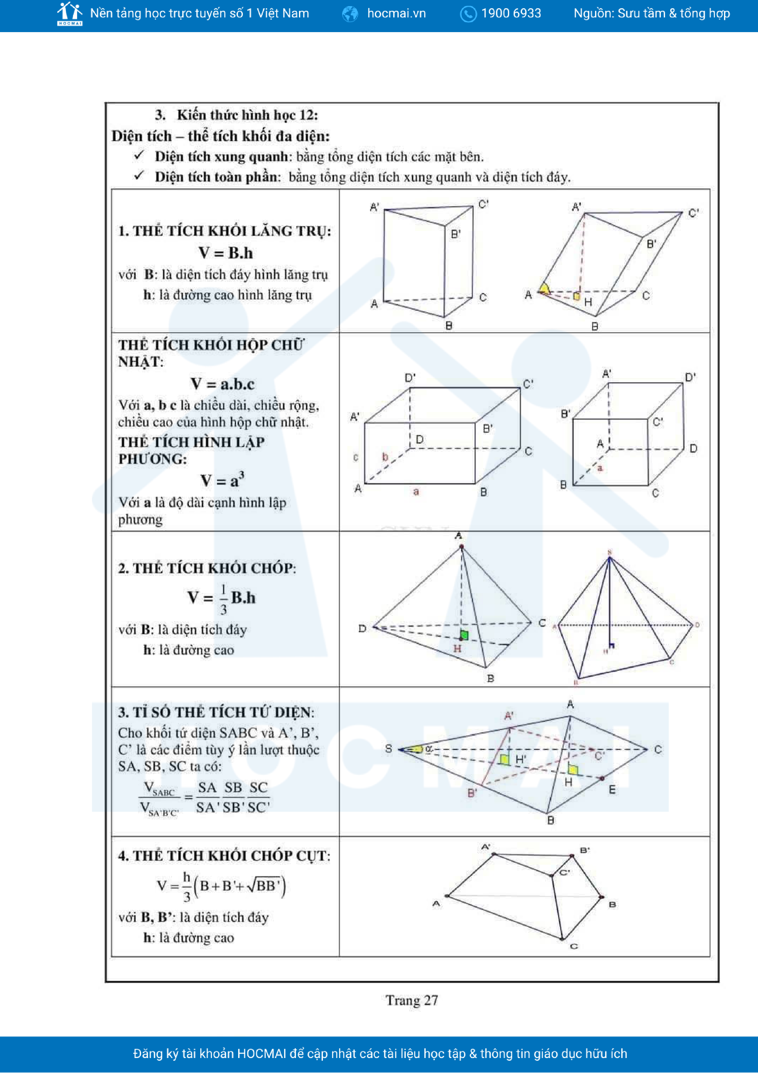 TỔNG HỢP CÔNG THỨC TOÁN CHƯƠNG TRÌNH LỚP 11 + 12