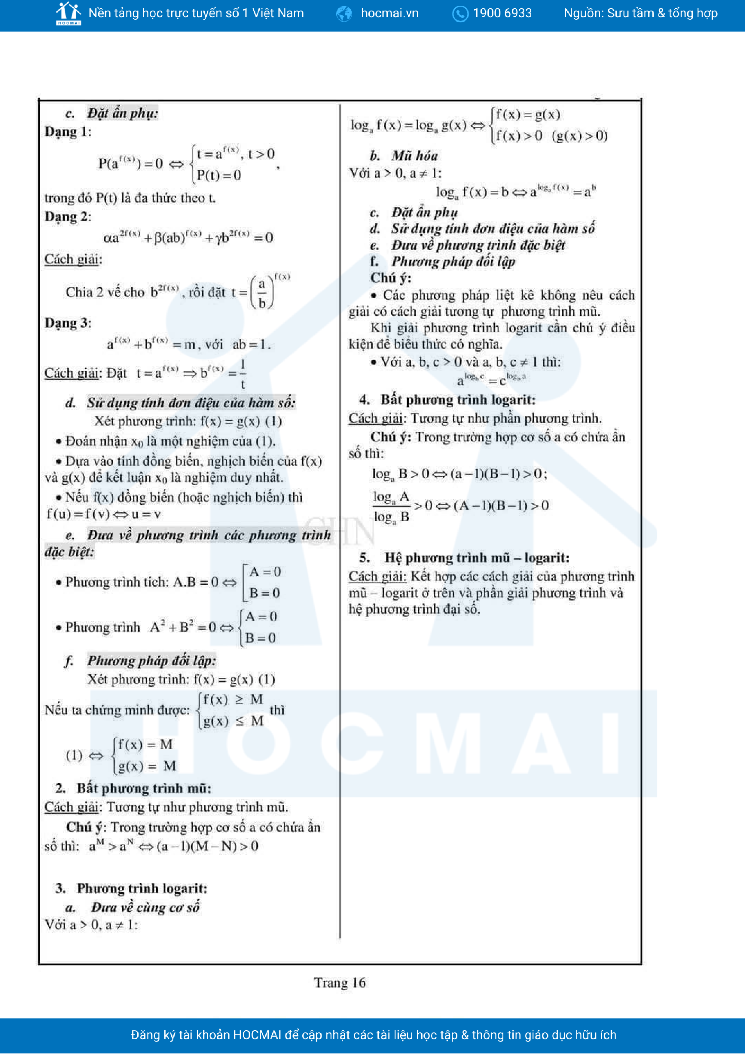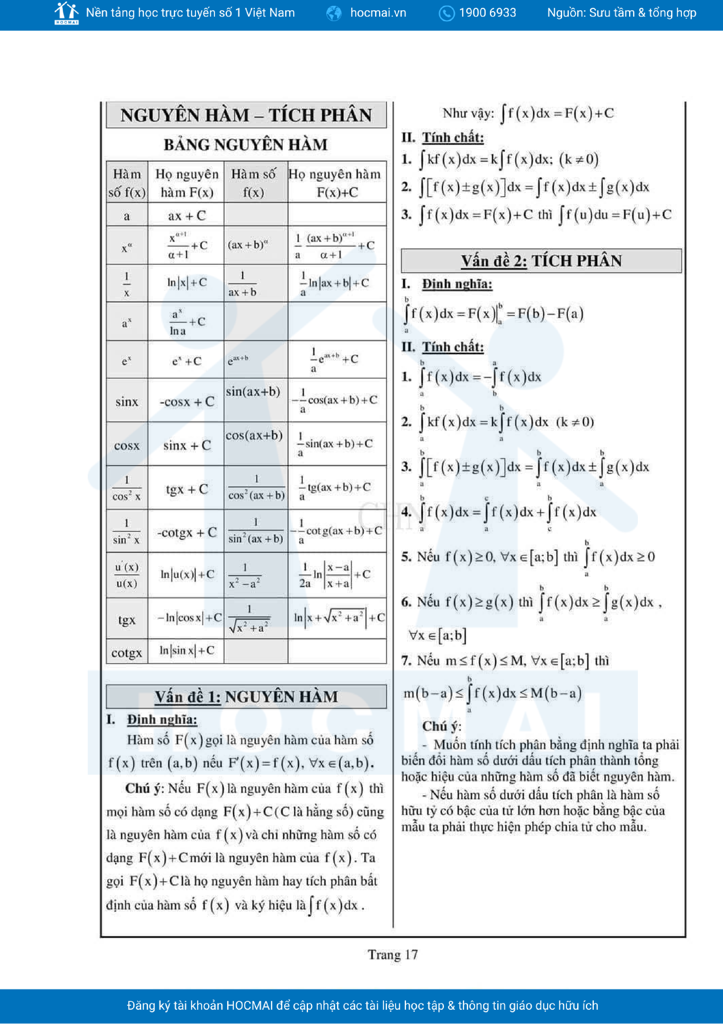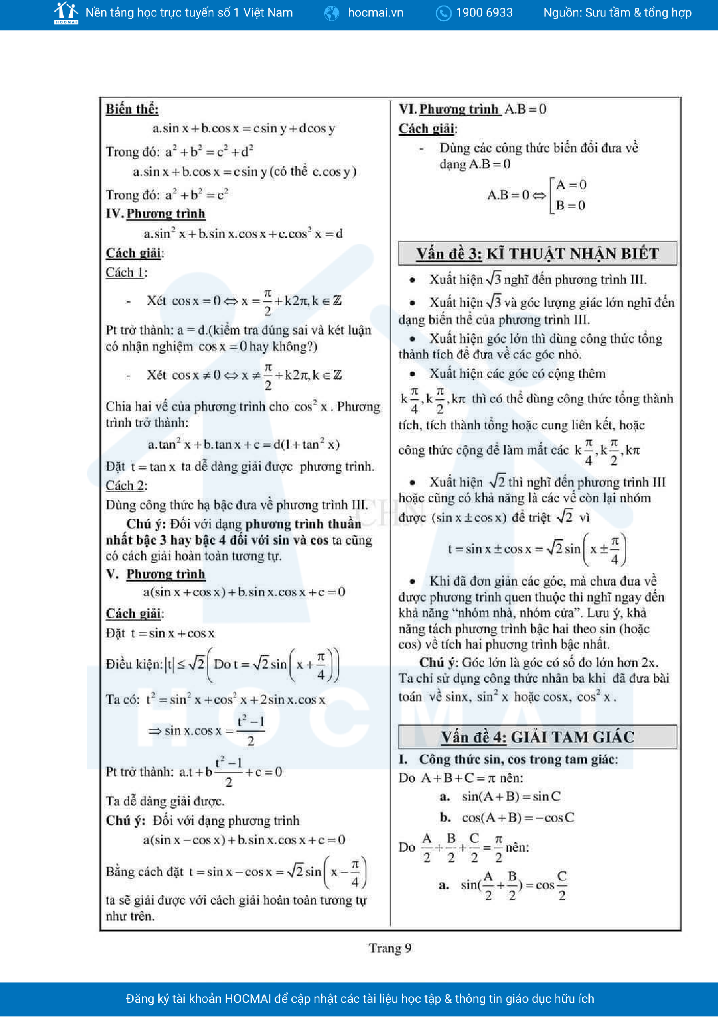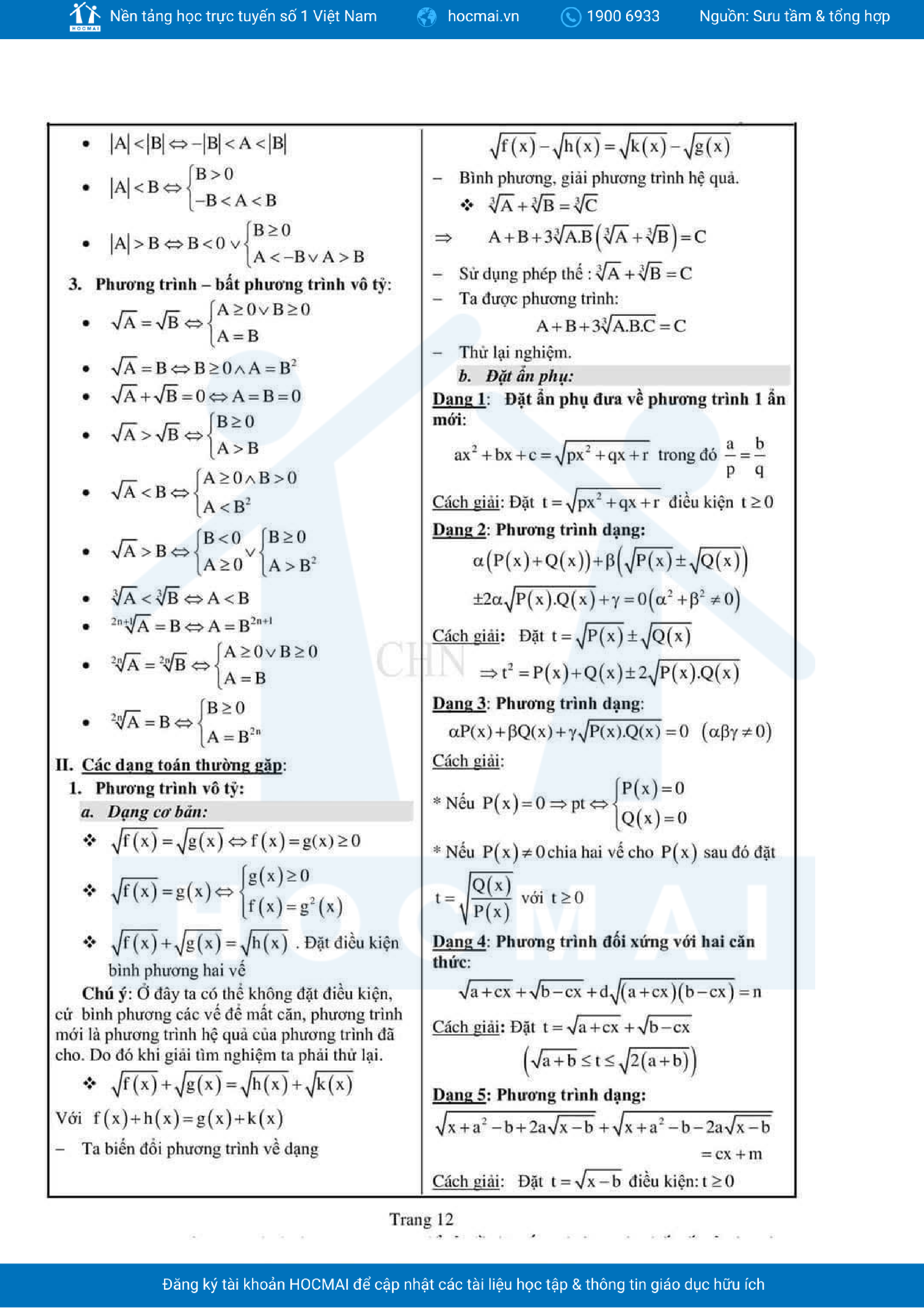 TỔNG HỢP CÔNG THỨC TOÁN CHƯƠNG TRÌNH LỚP 11 + 12