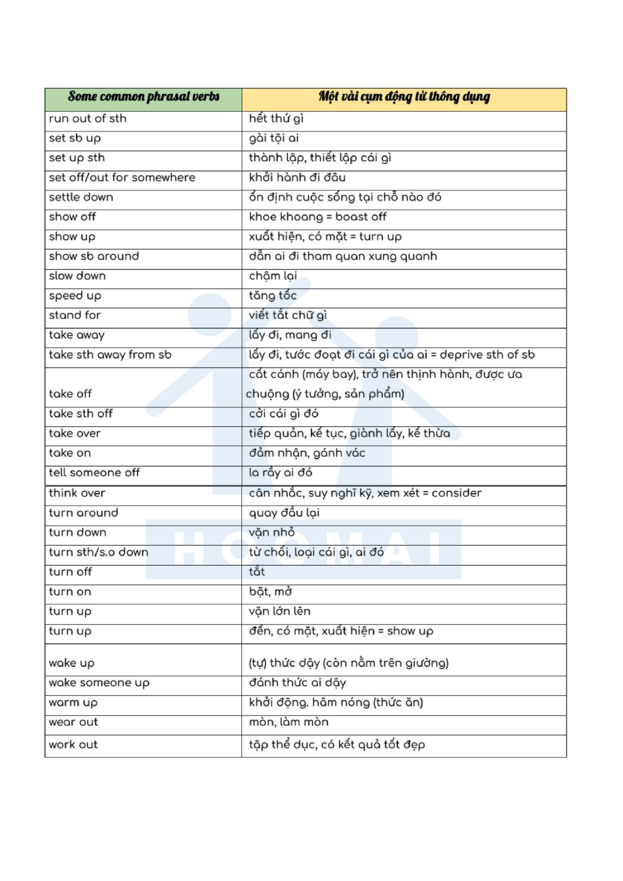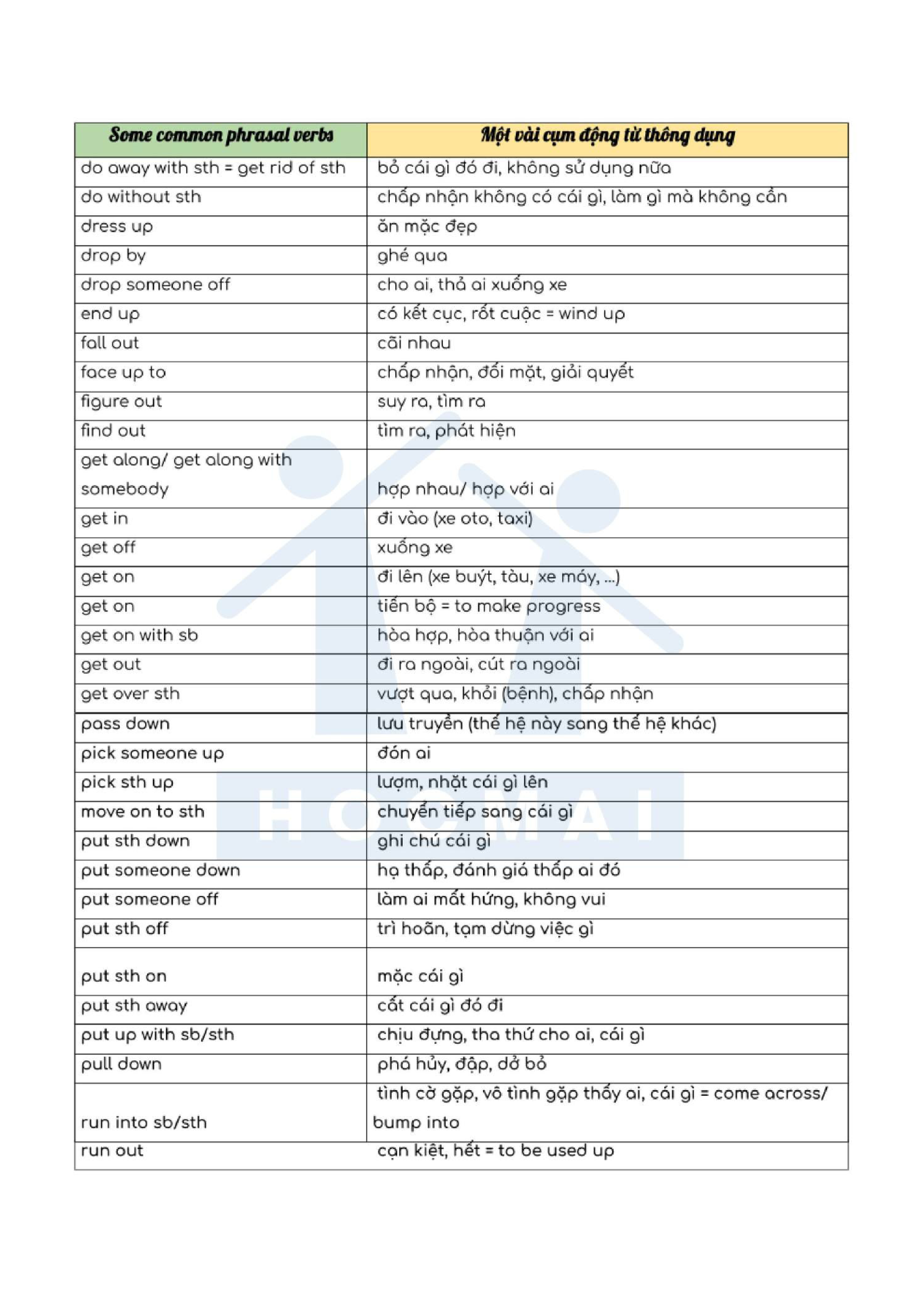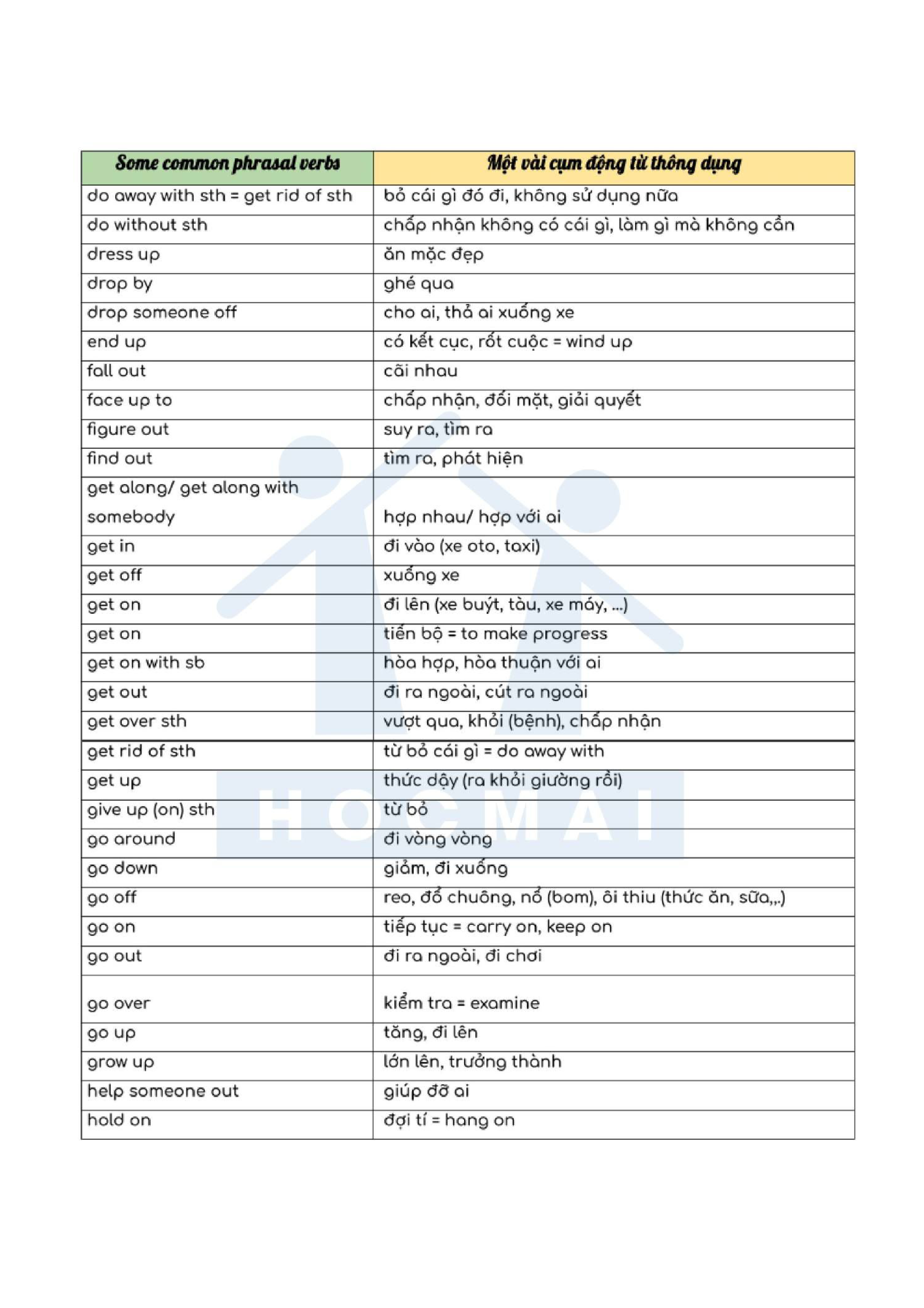 Tổng hợp các cụm động từ phổ biến trong và ngoài SGK