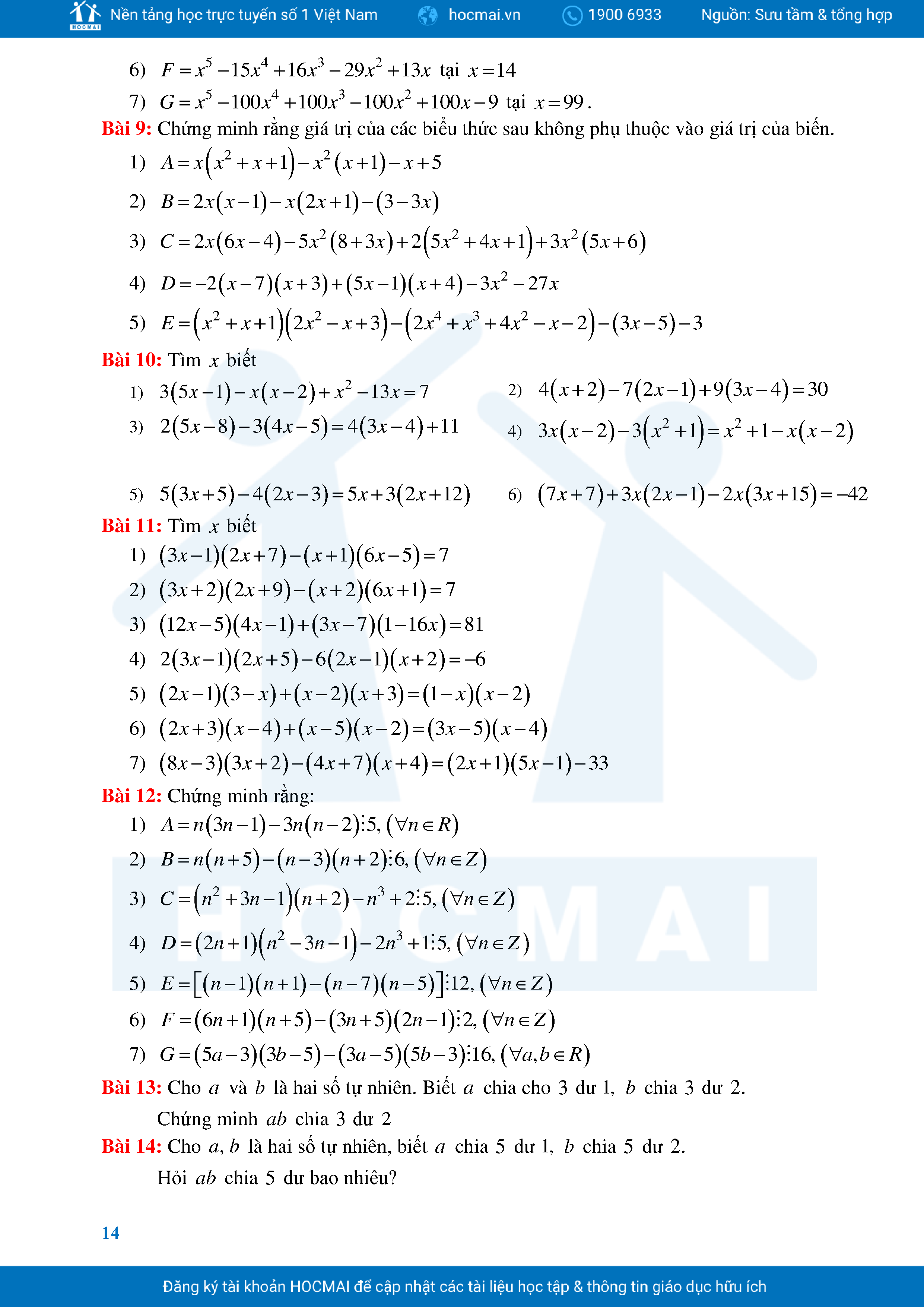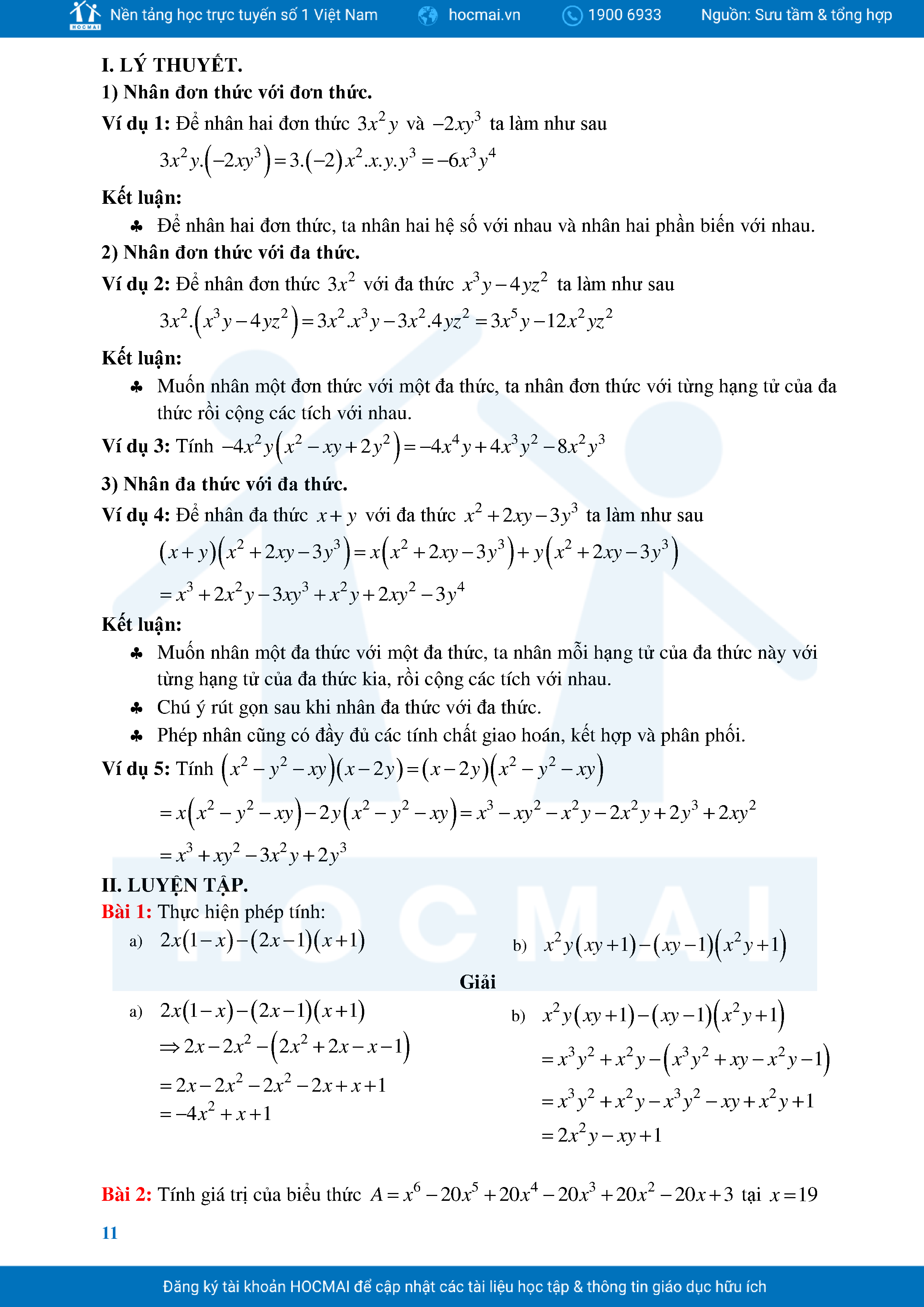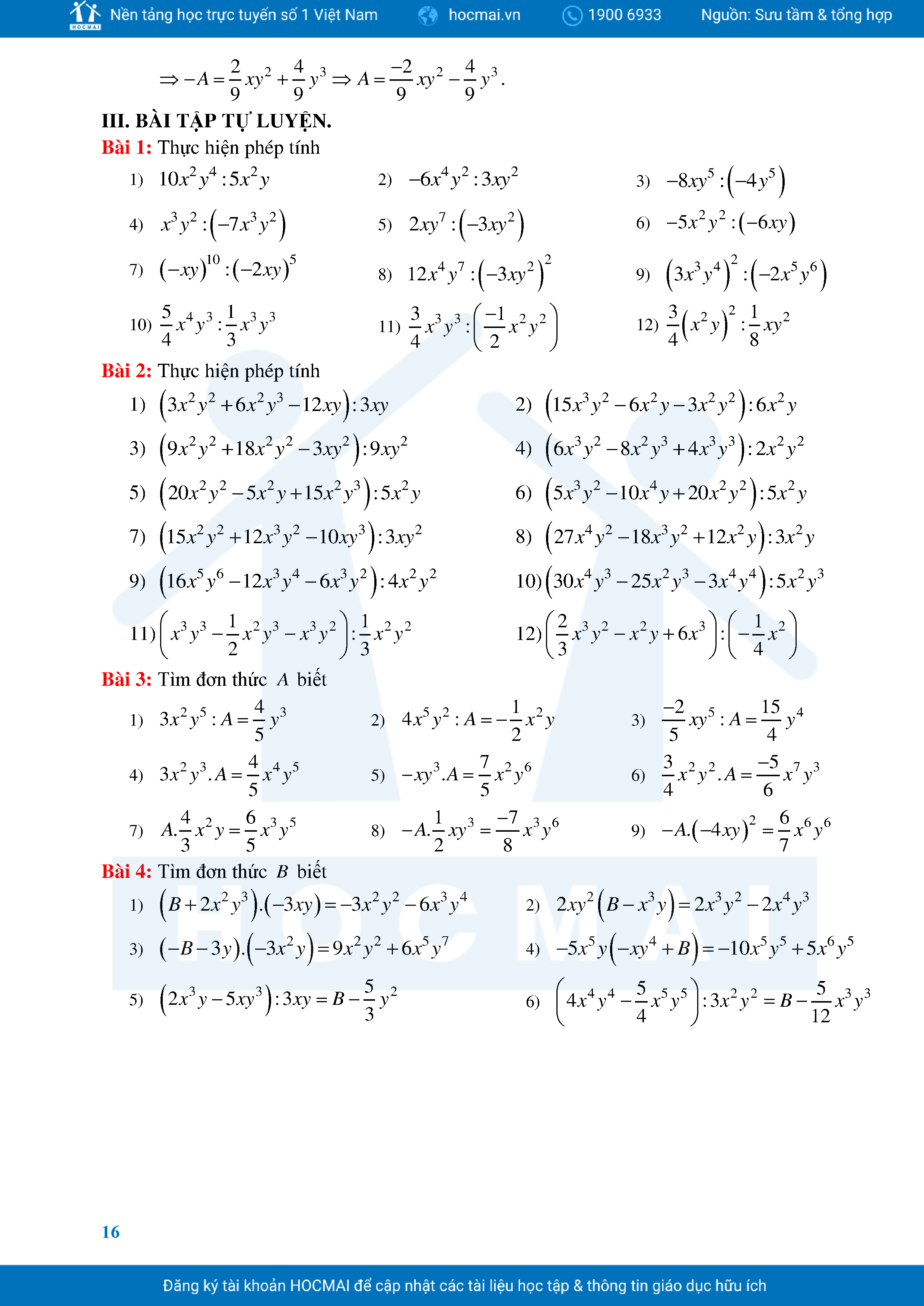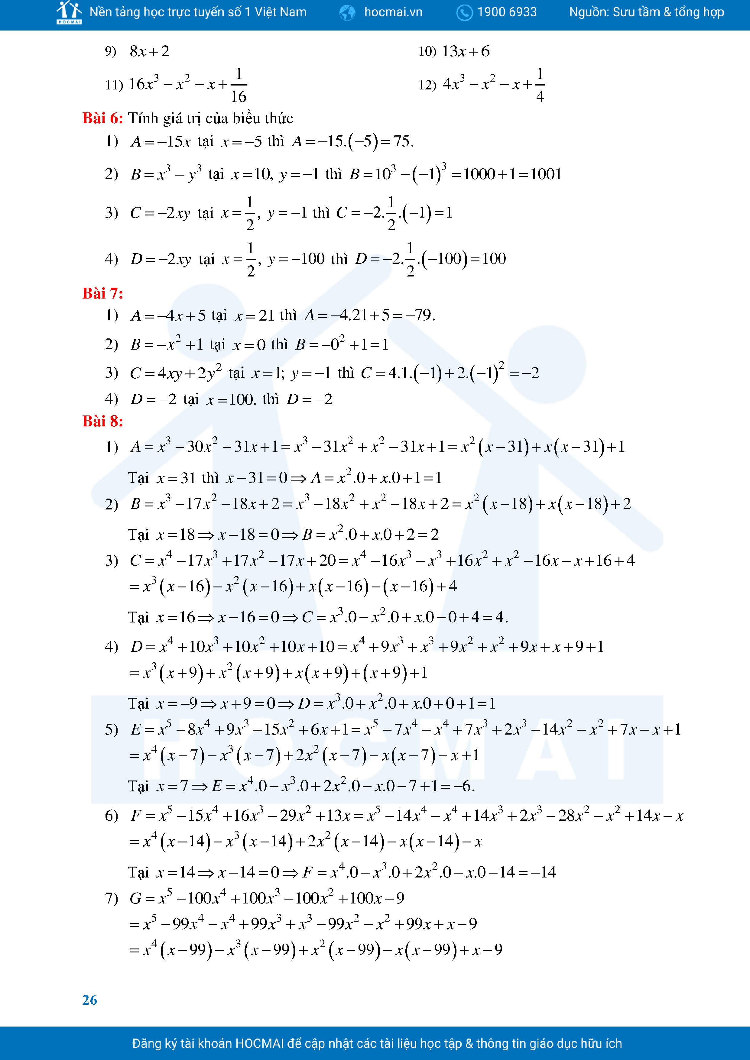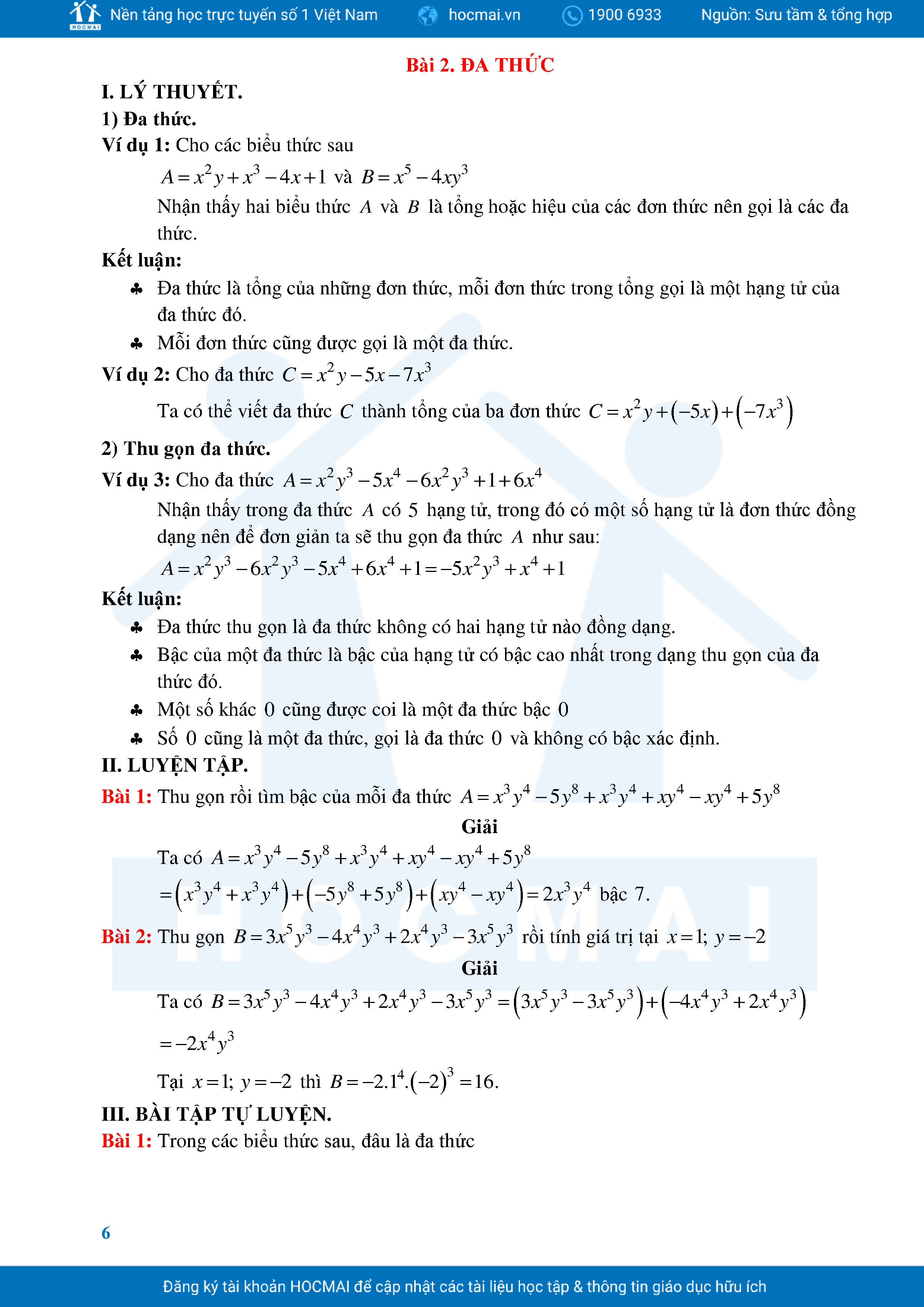 Bài Tập Cơ Bản Toán 8 Chương 1 Đa Thức