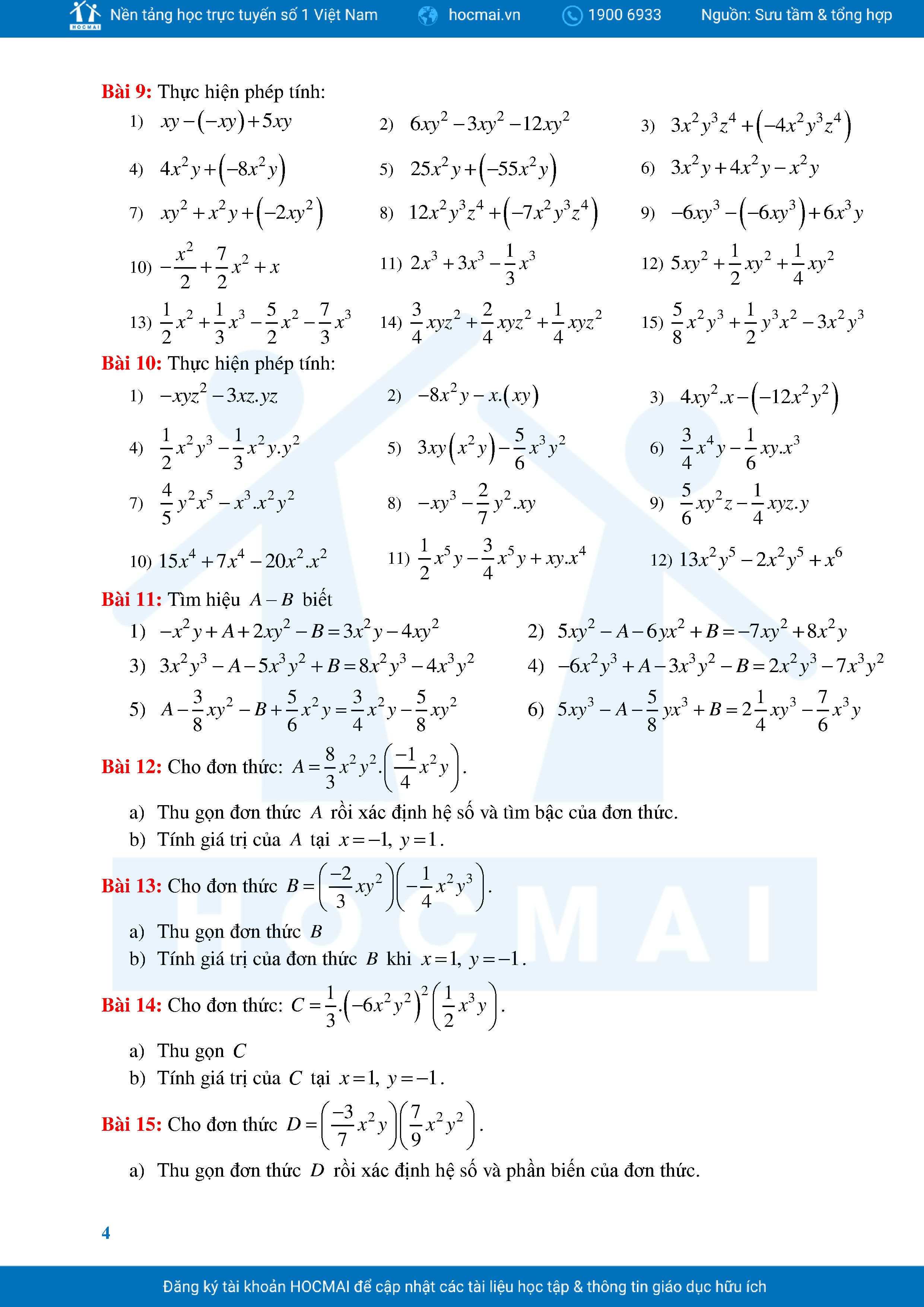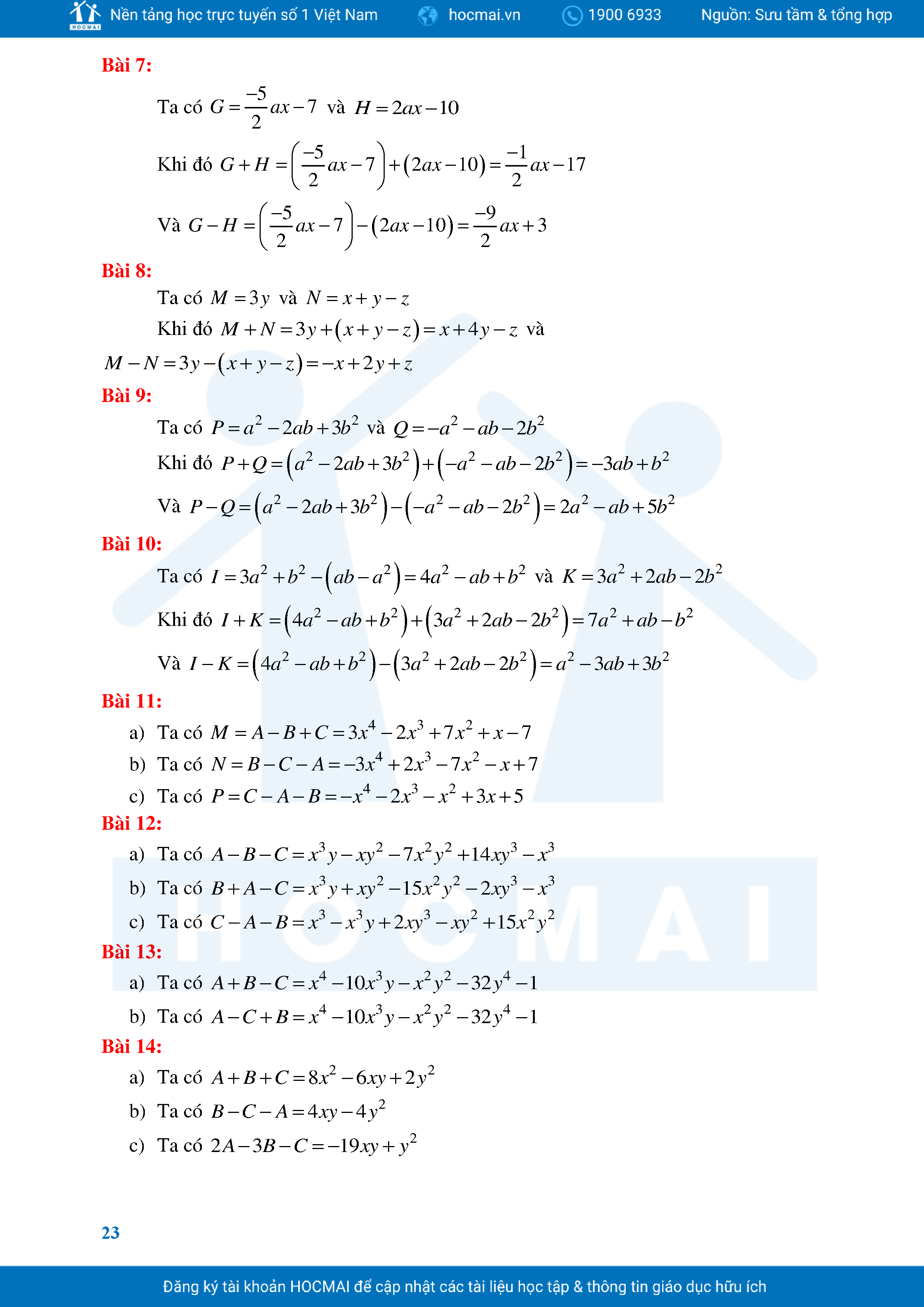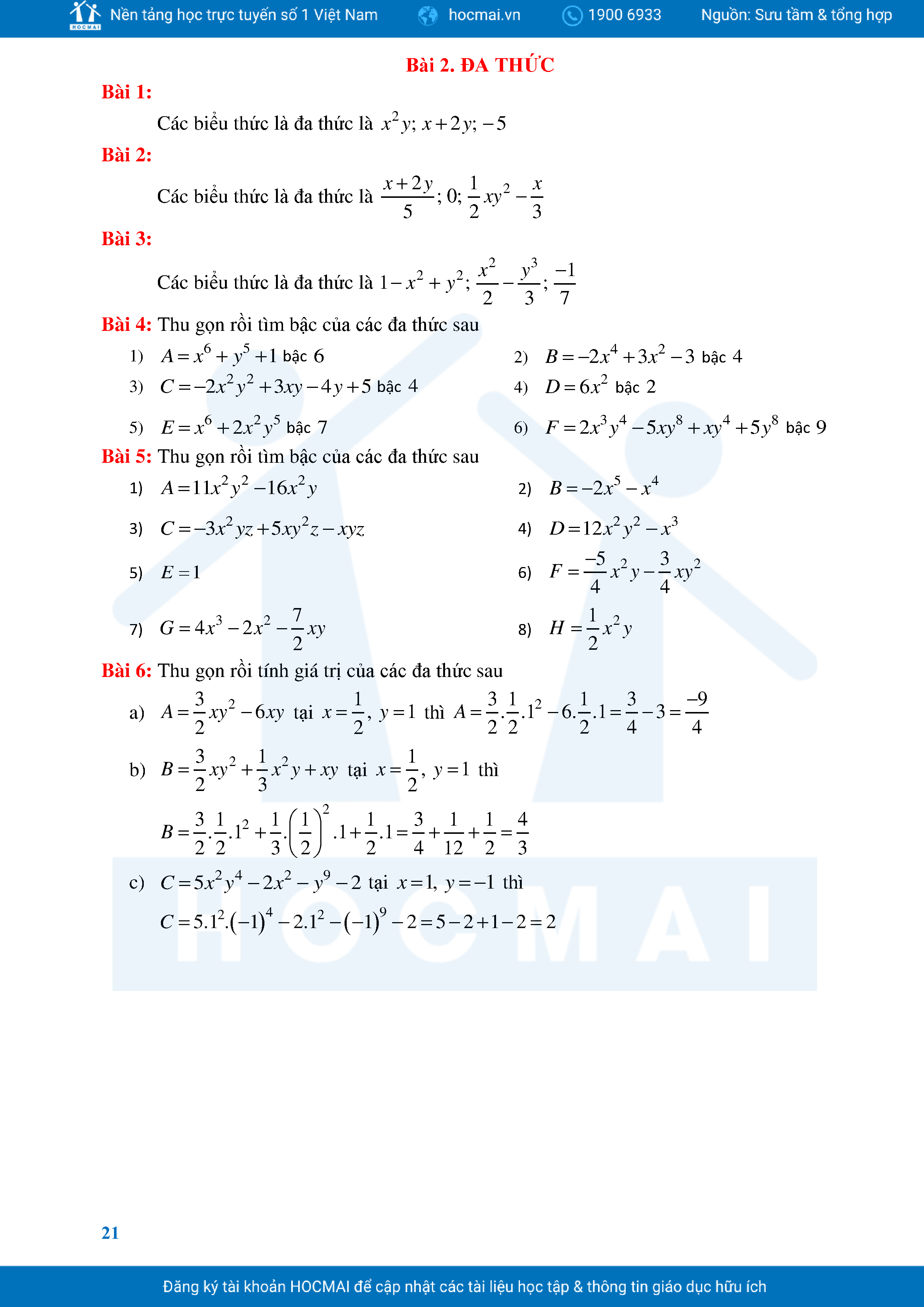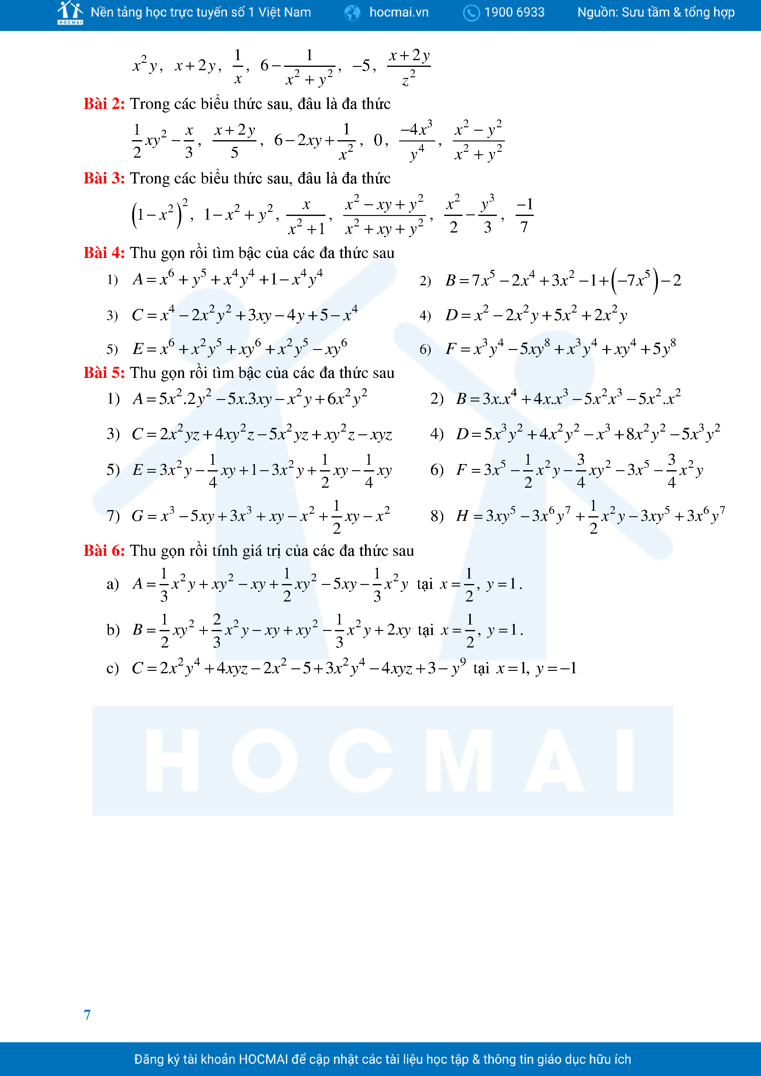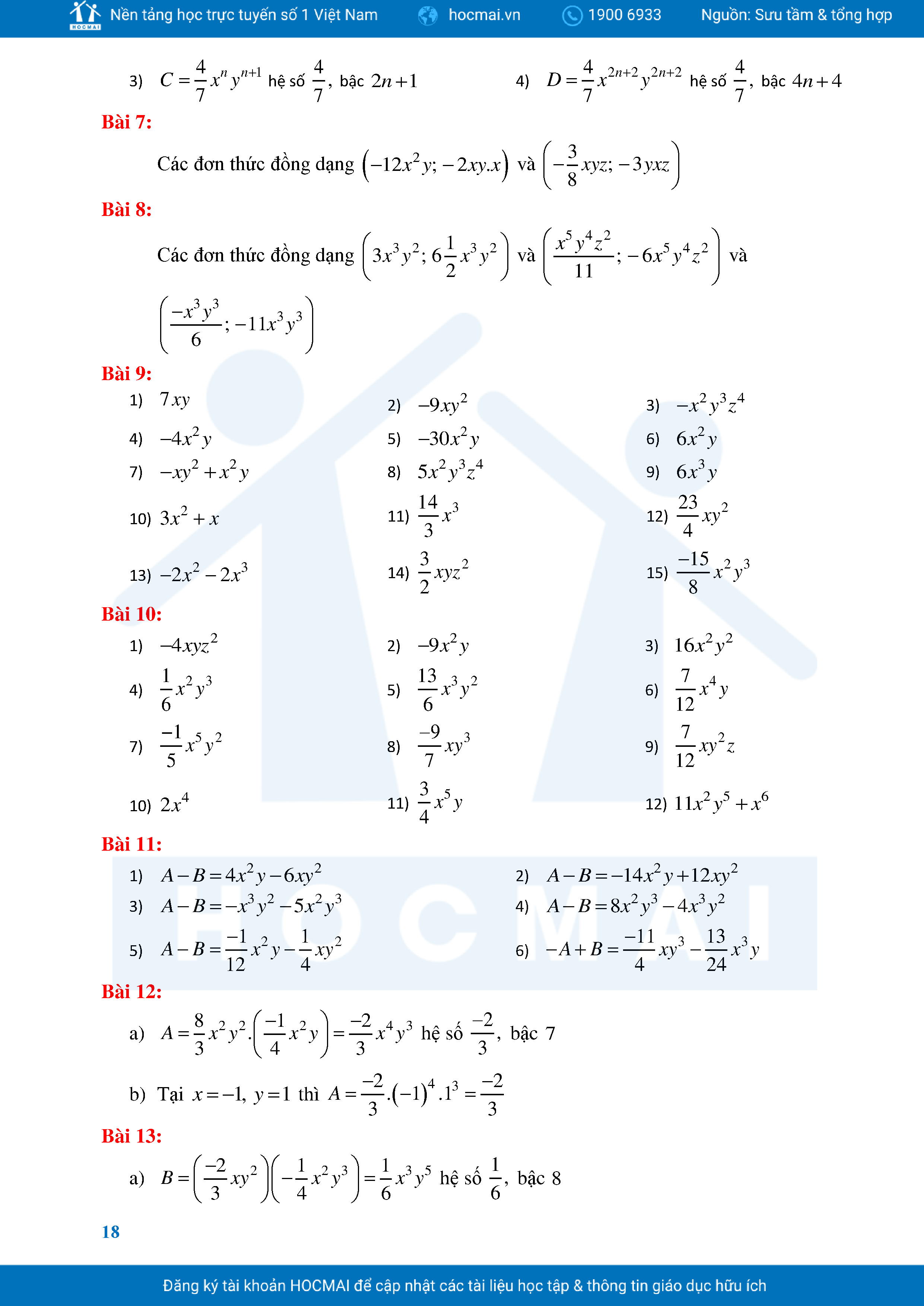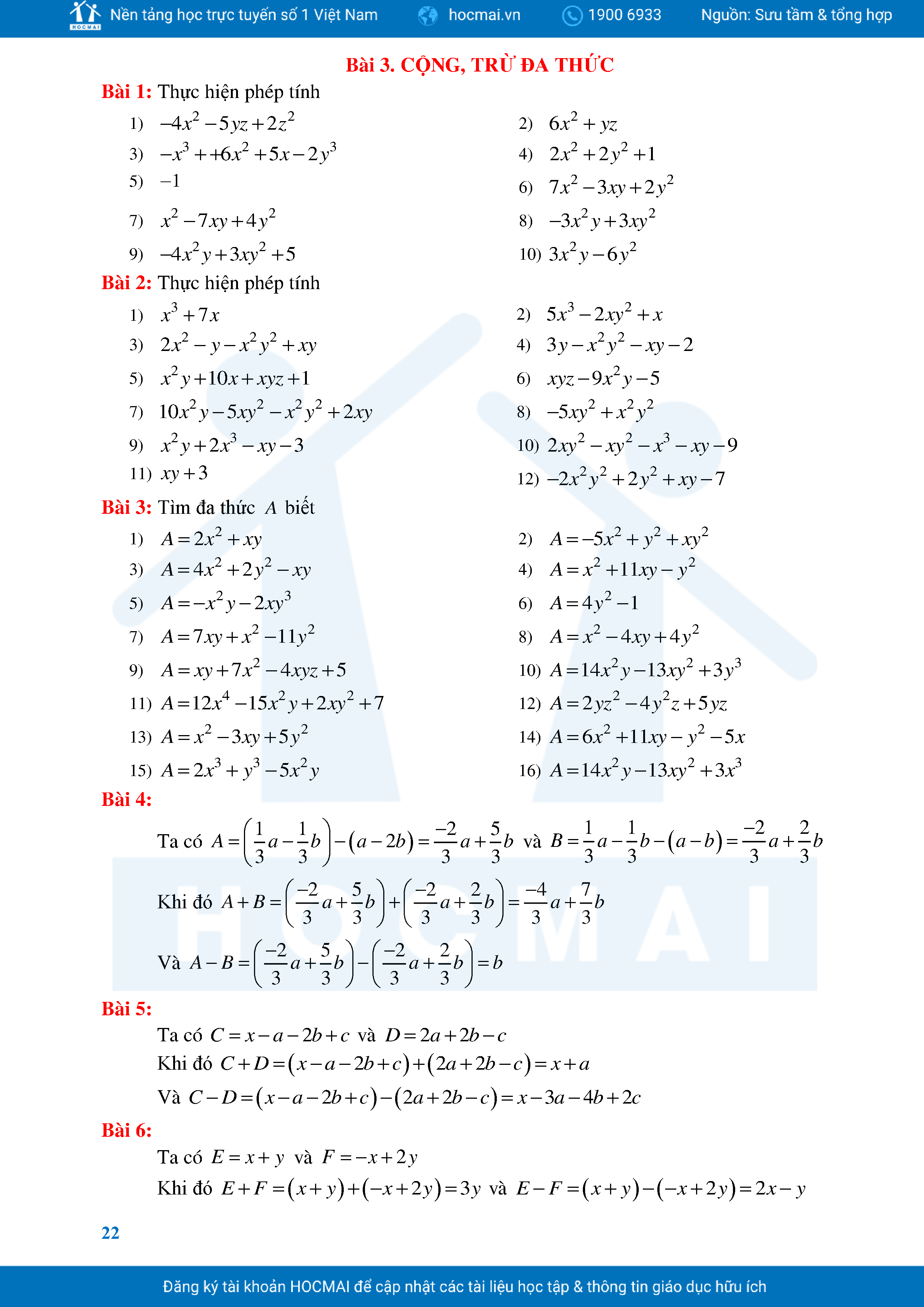 Bài Tập Cơ Bản Toán 8 Chương 1 Đa Thức