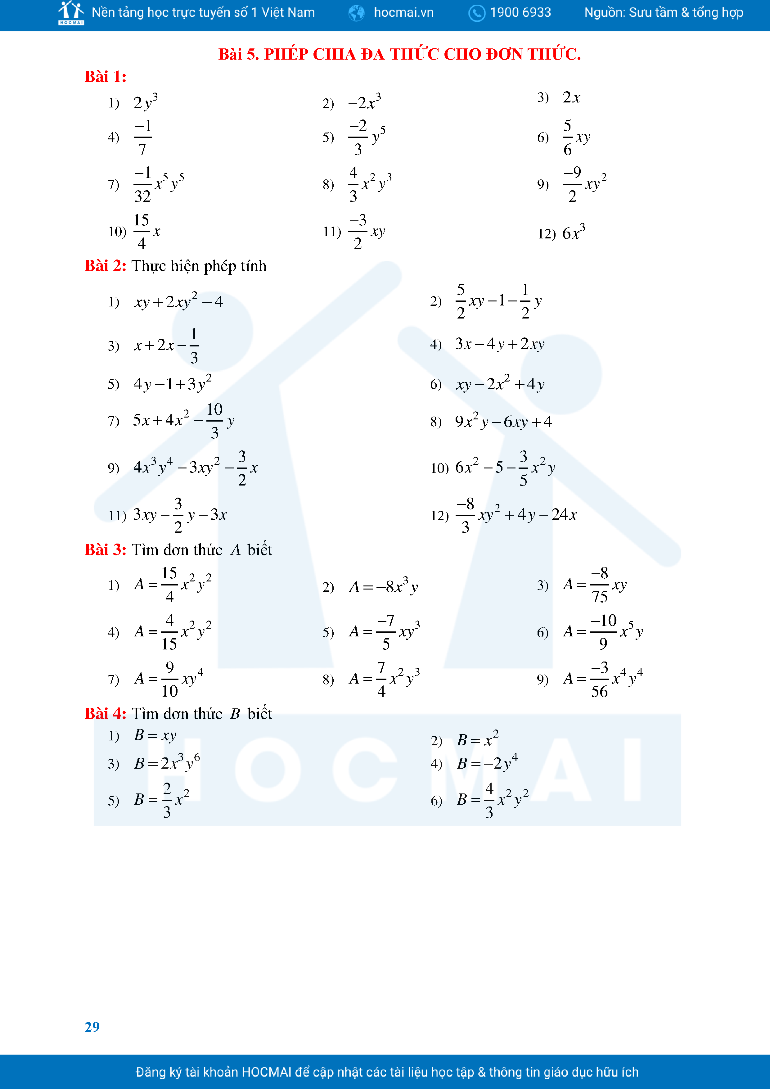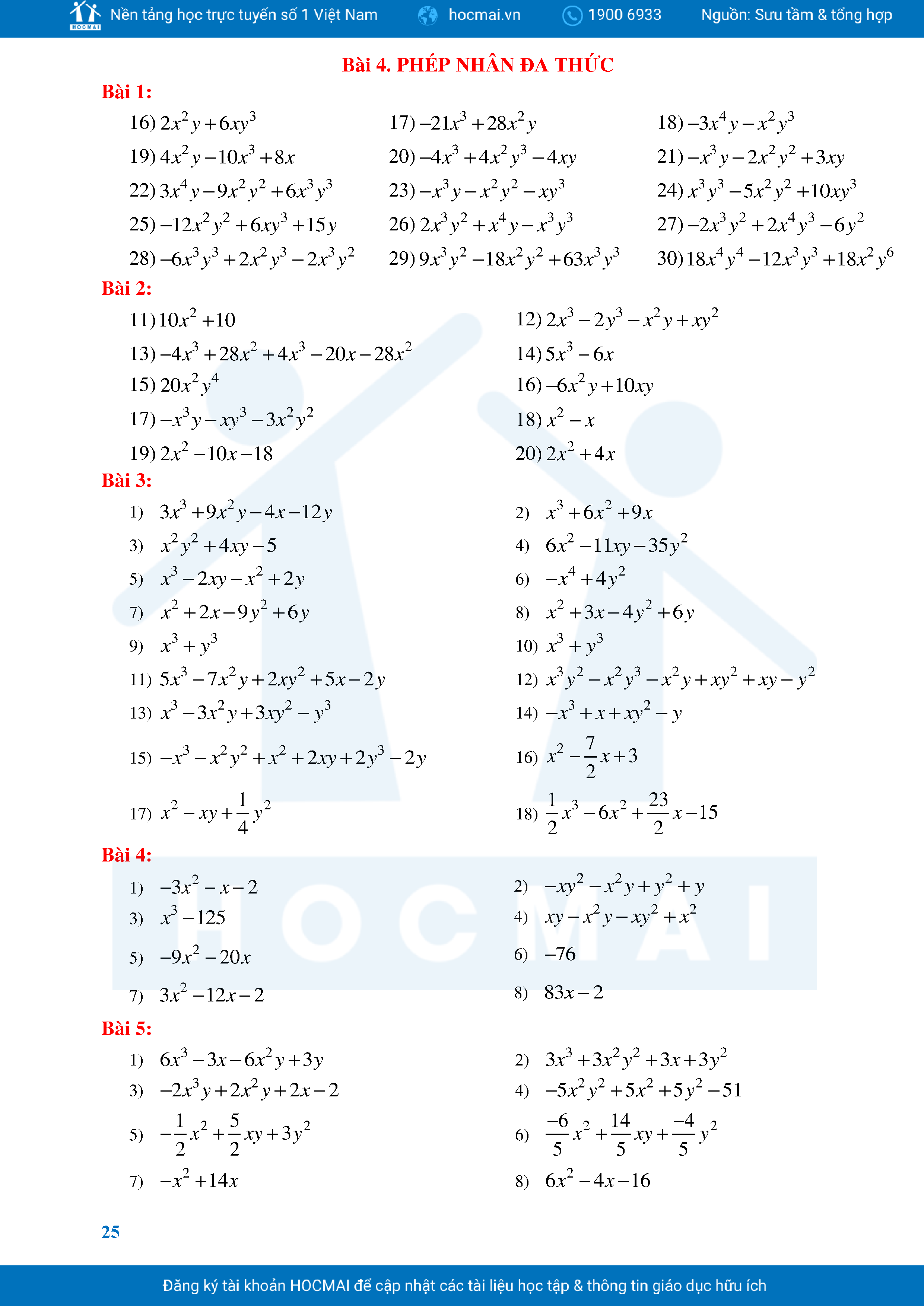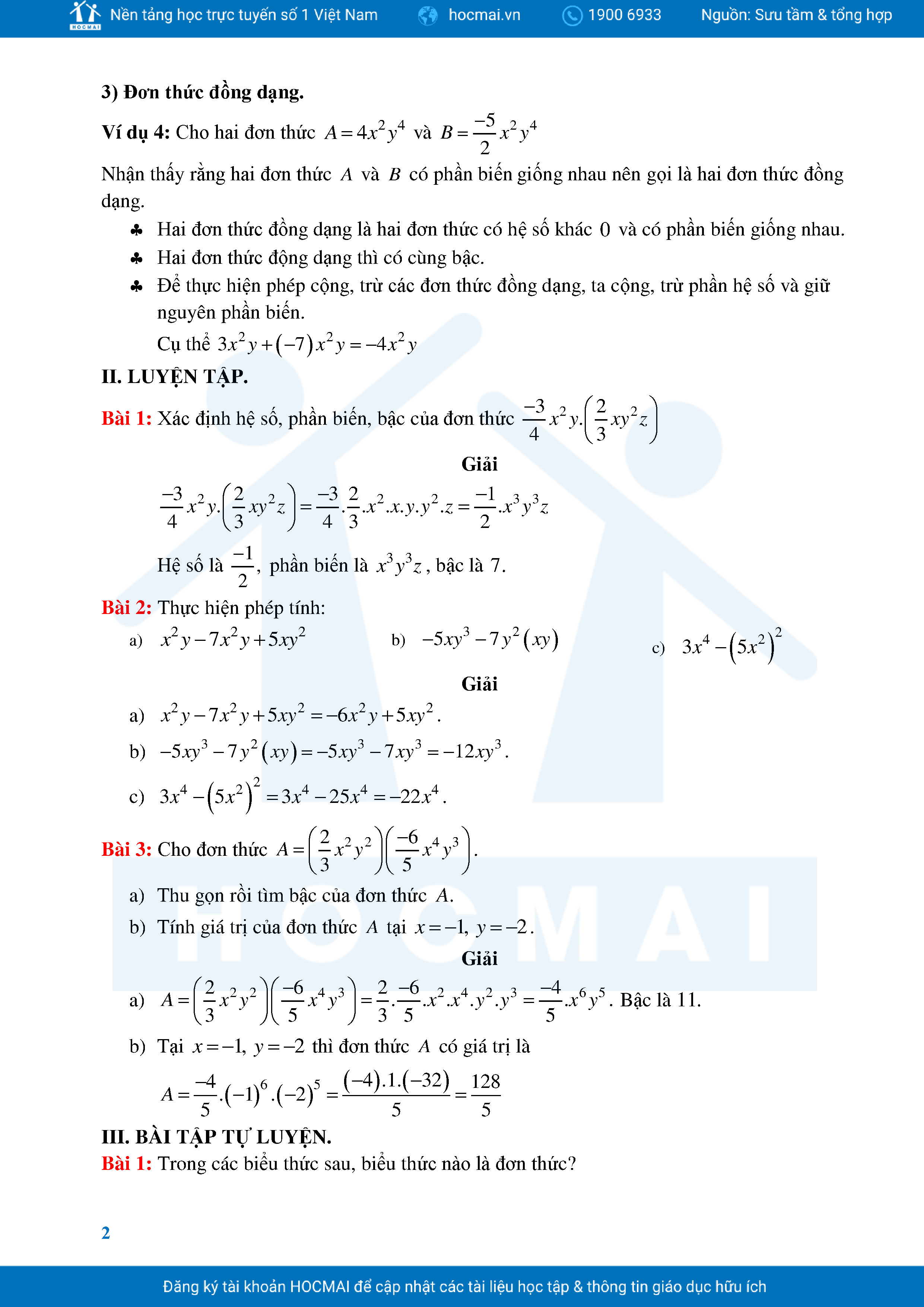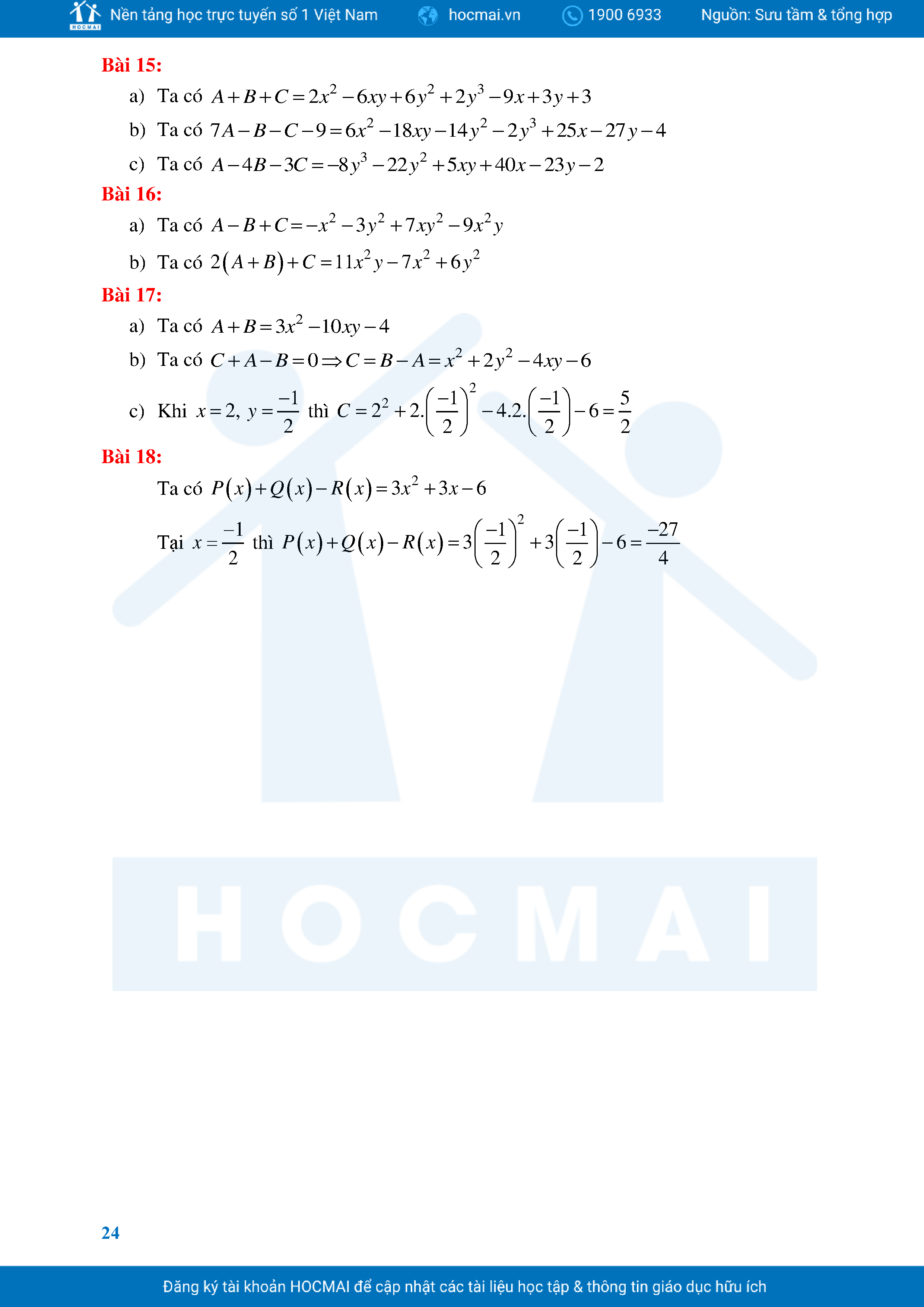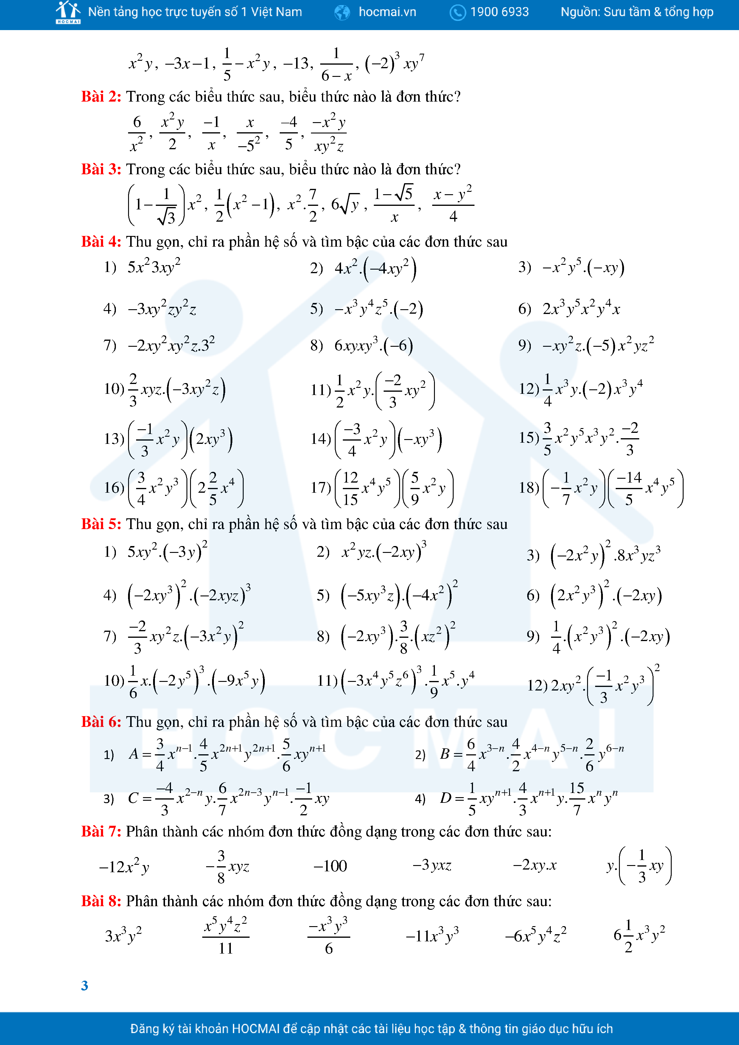 Bài Tập Cơ Bản Toán 8 Chương 1 Đa Thức