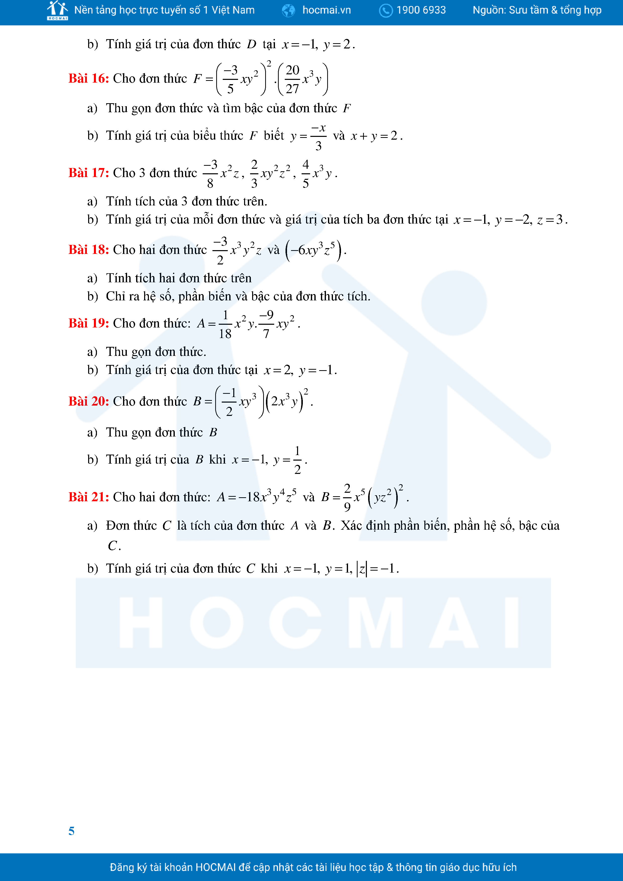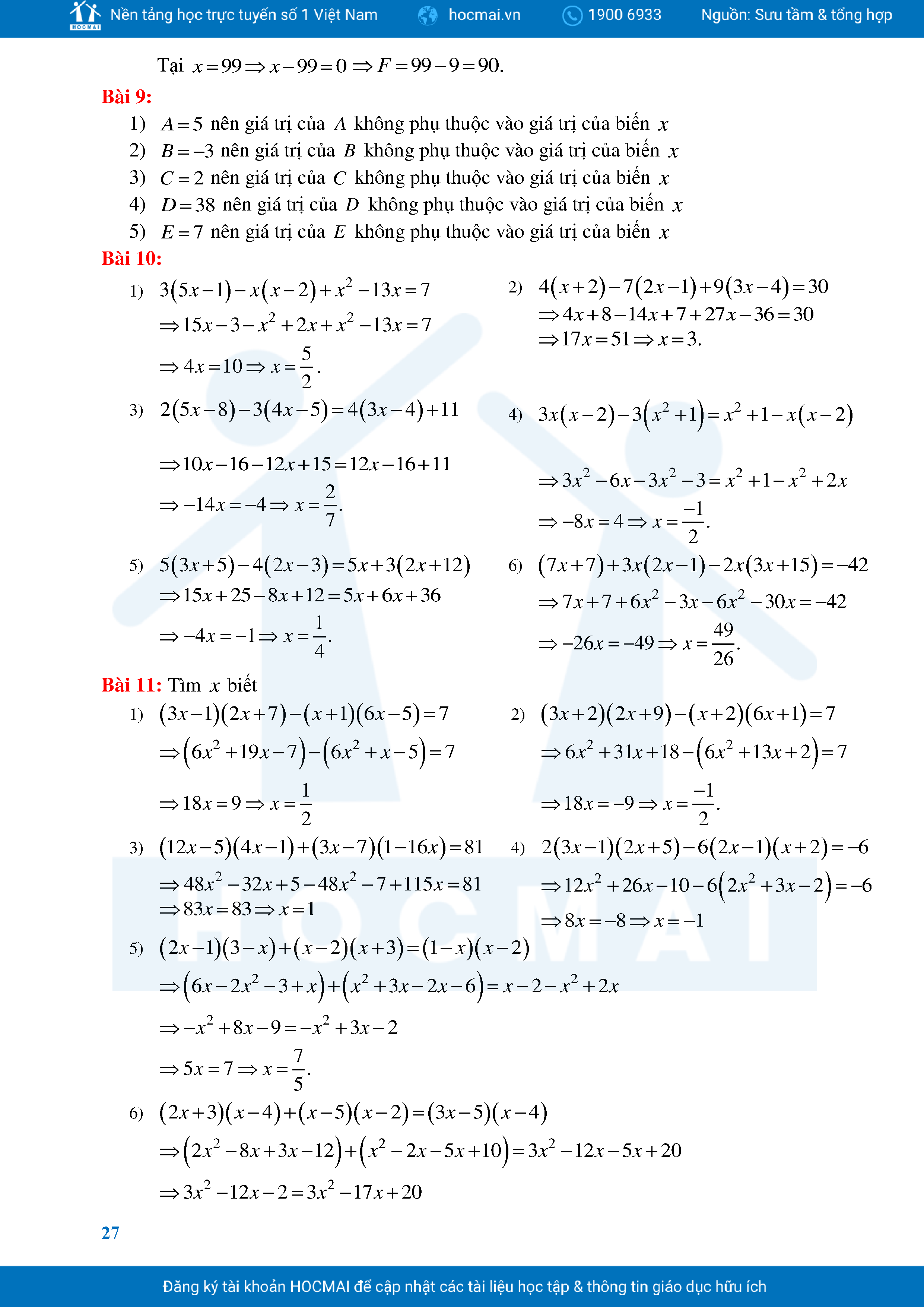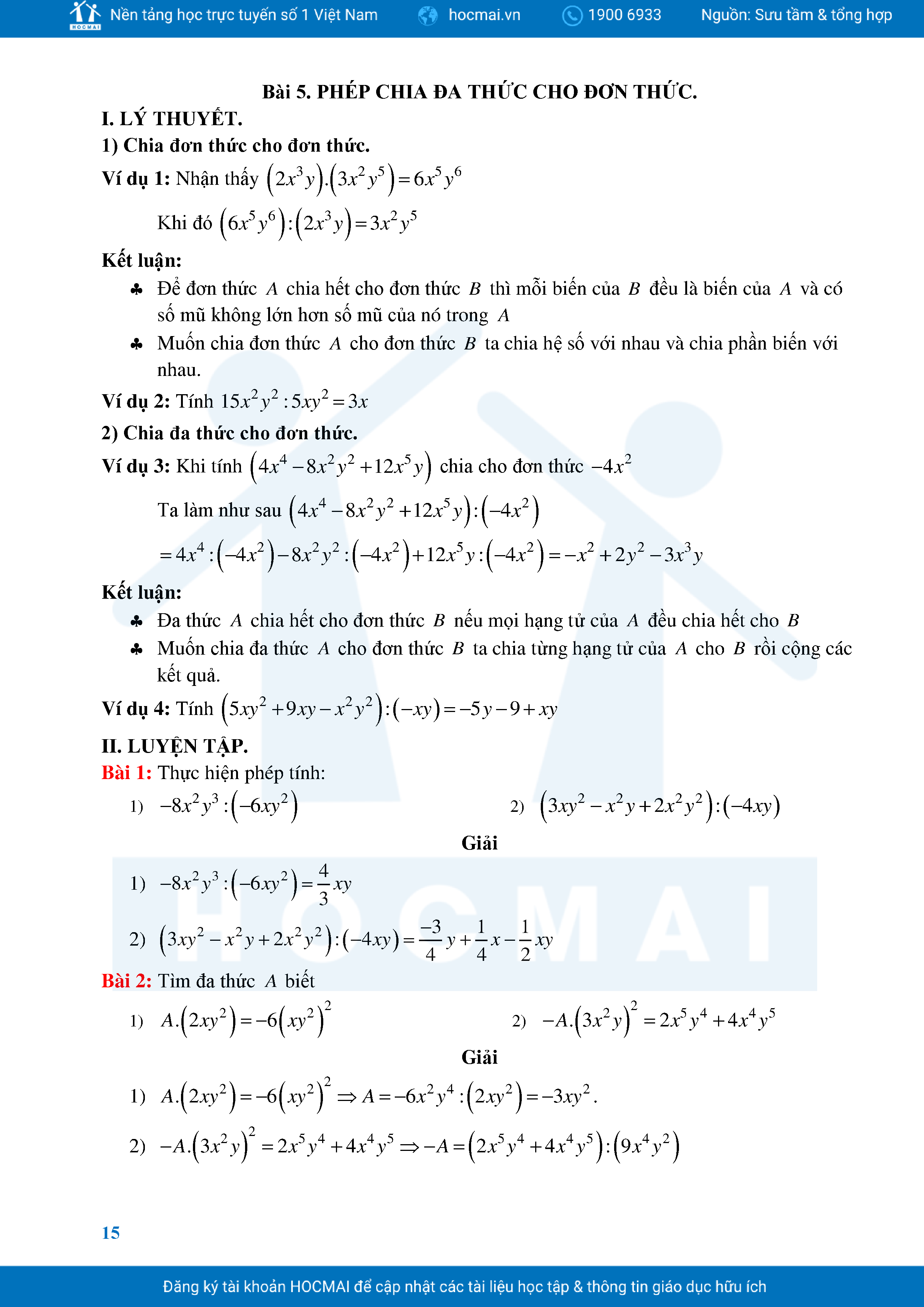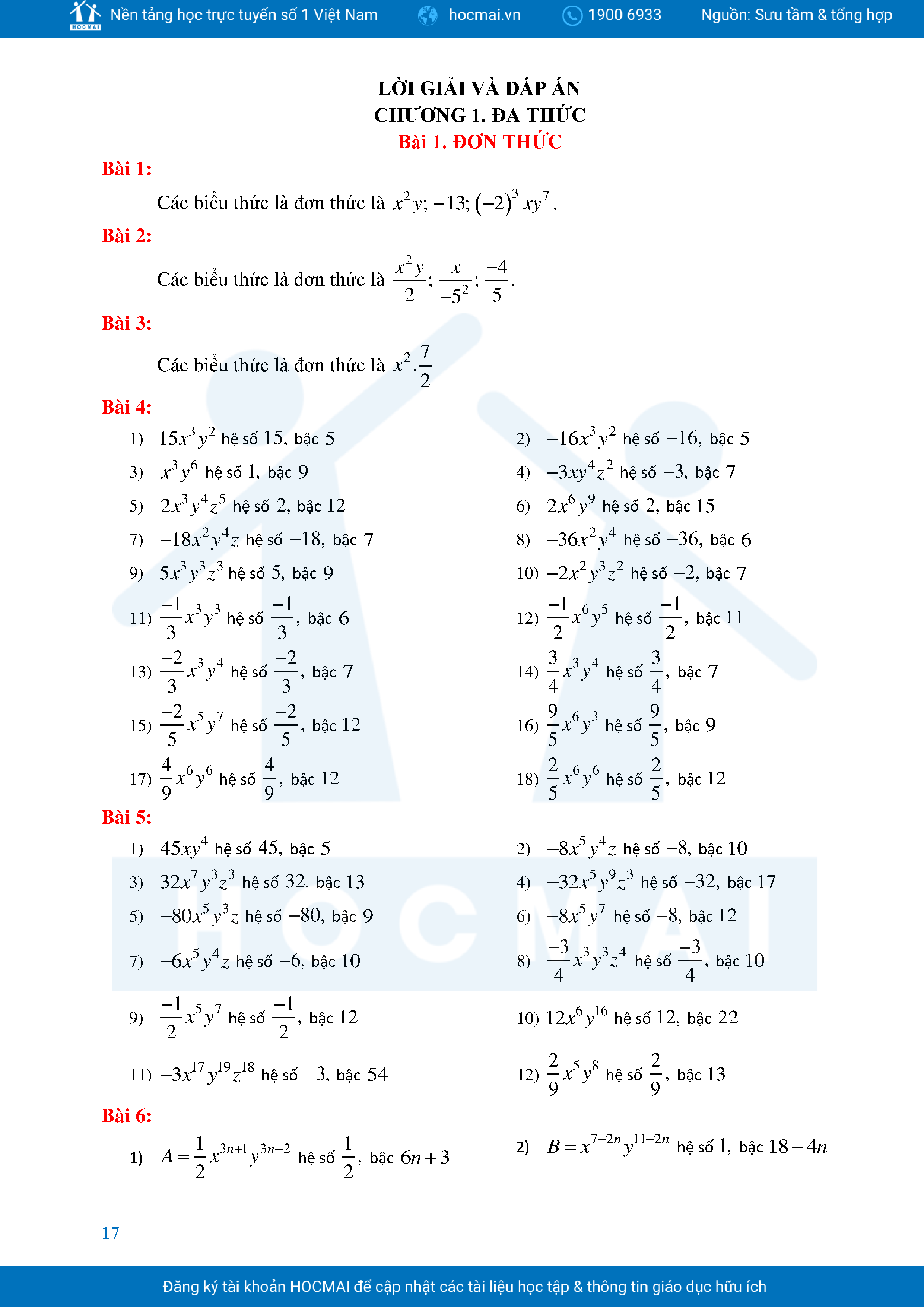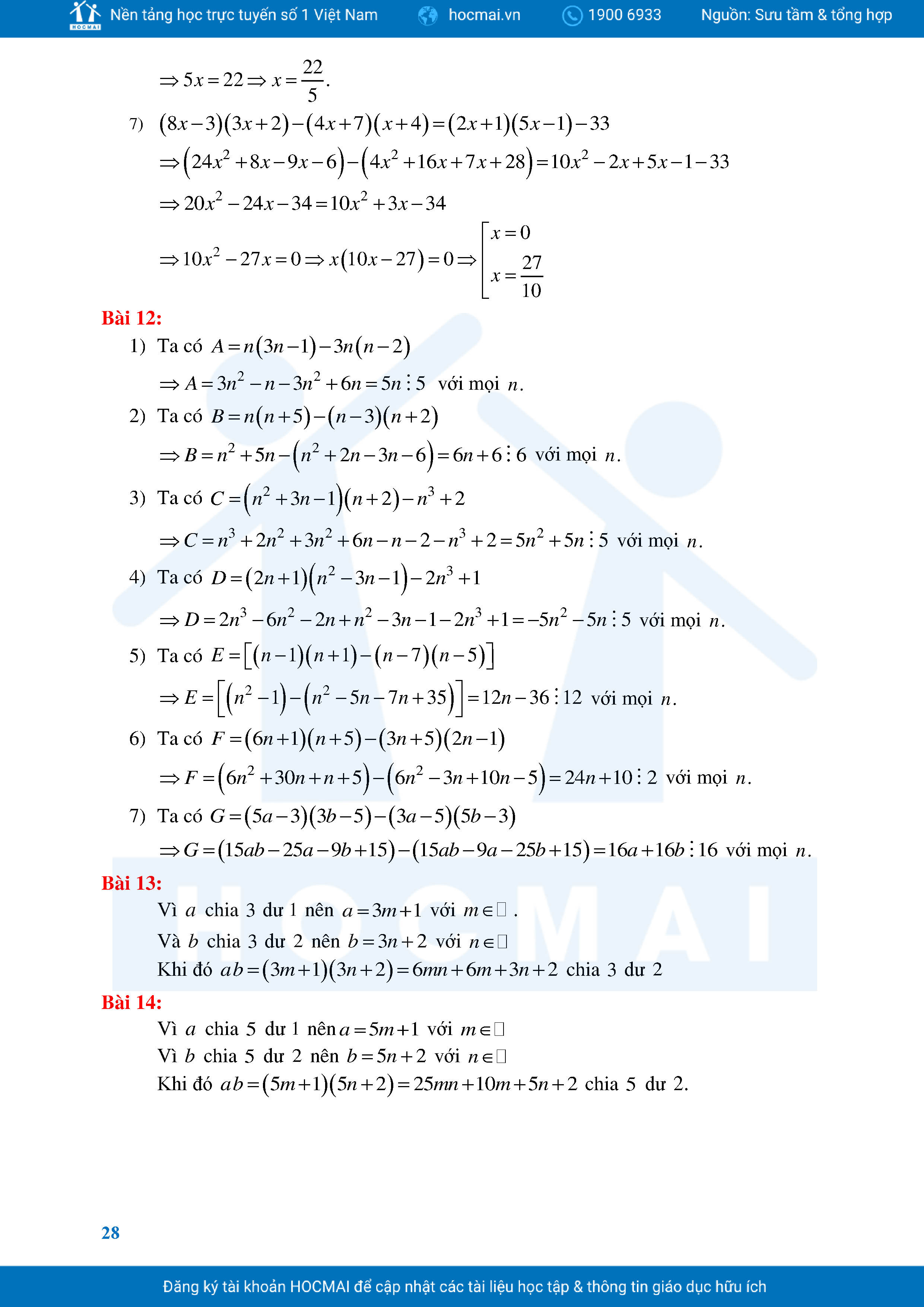Bài Tập Cơ Bản Toán 8 Chương 1 Đa Thức