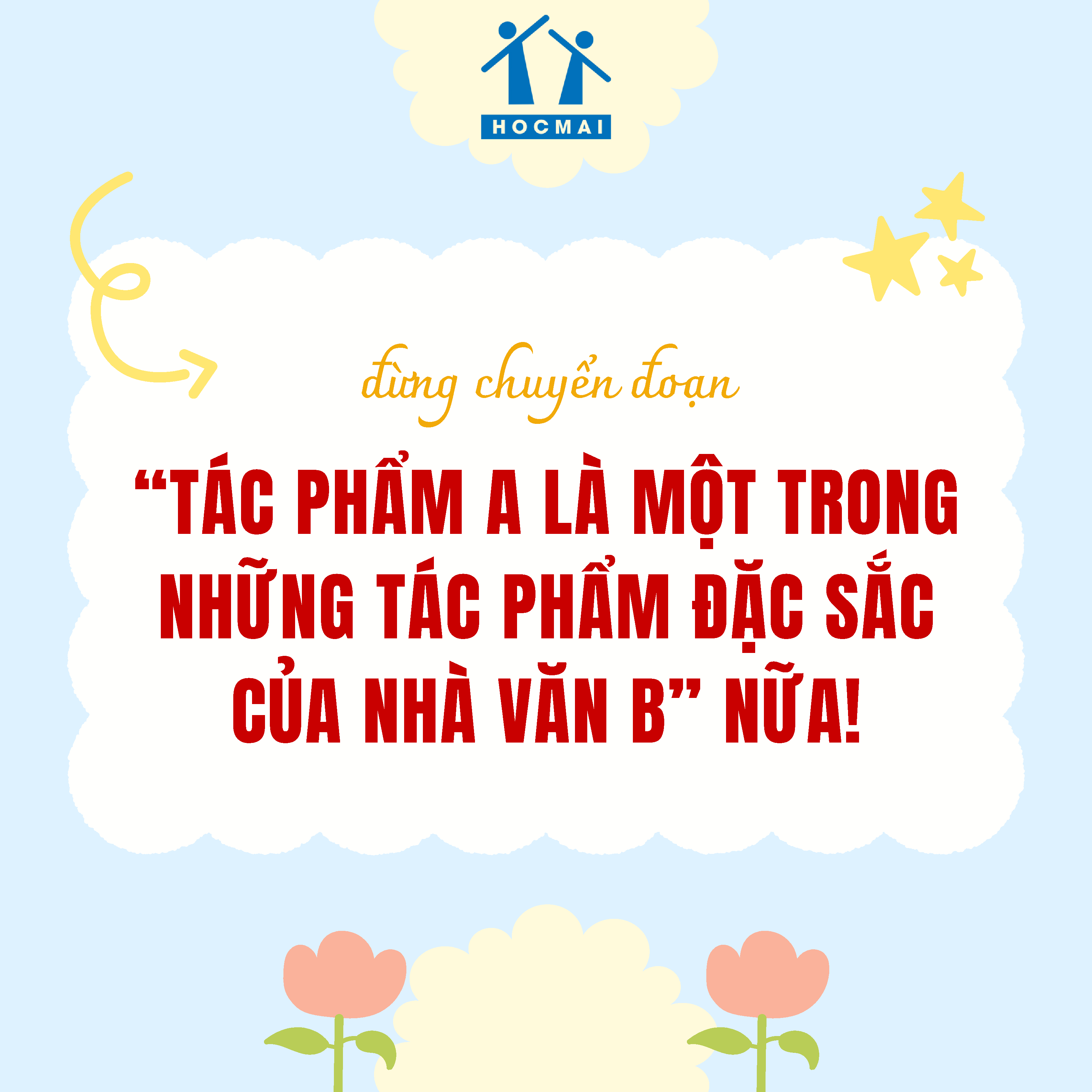 đừng chuyển đoạn “TÁC PHẨM A LÀ MỘT TRONG NHỮNG TÁC PHẨM ĐẶC SẮC CỦA NHÀ VĂN B” nữa