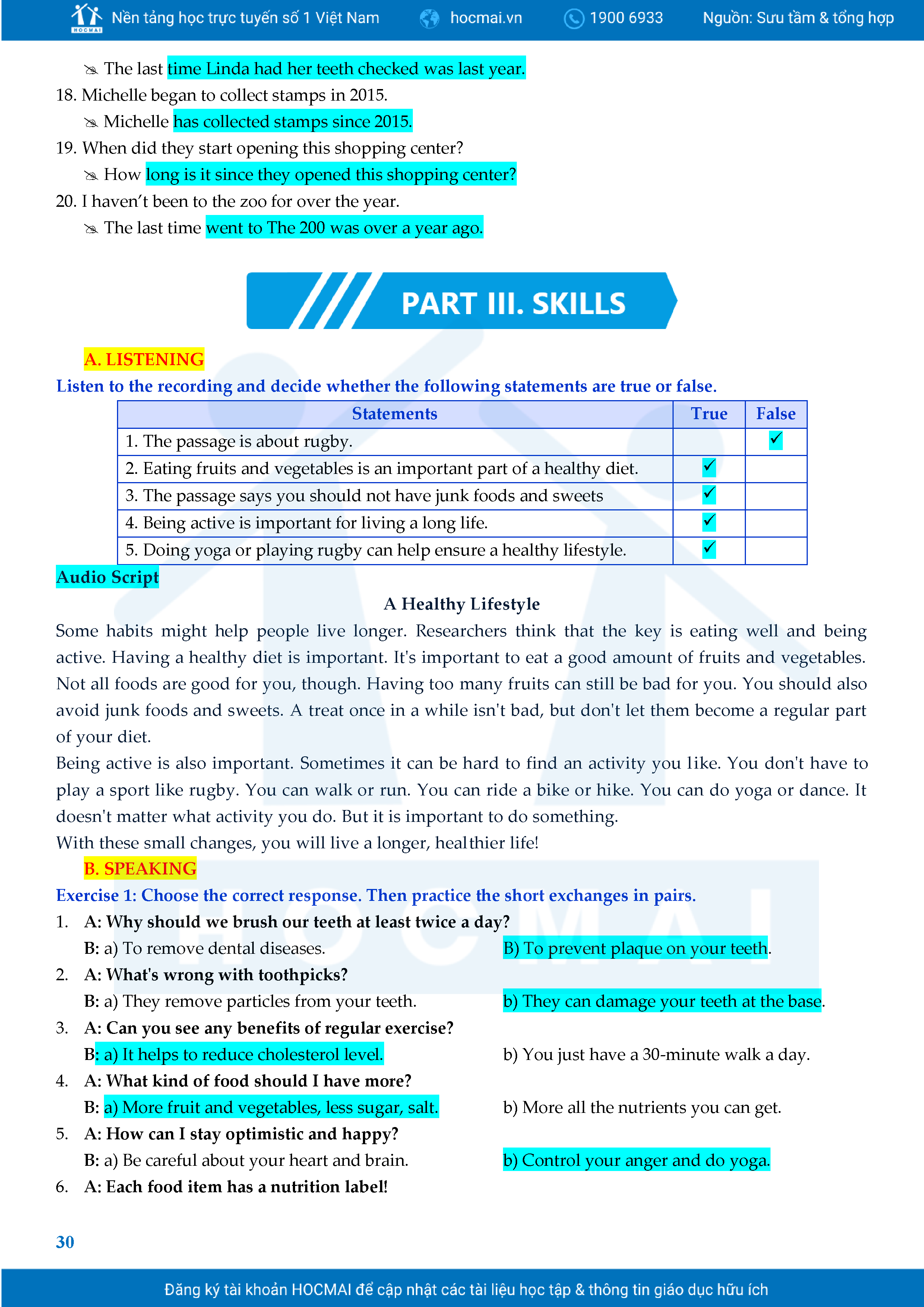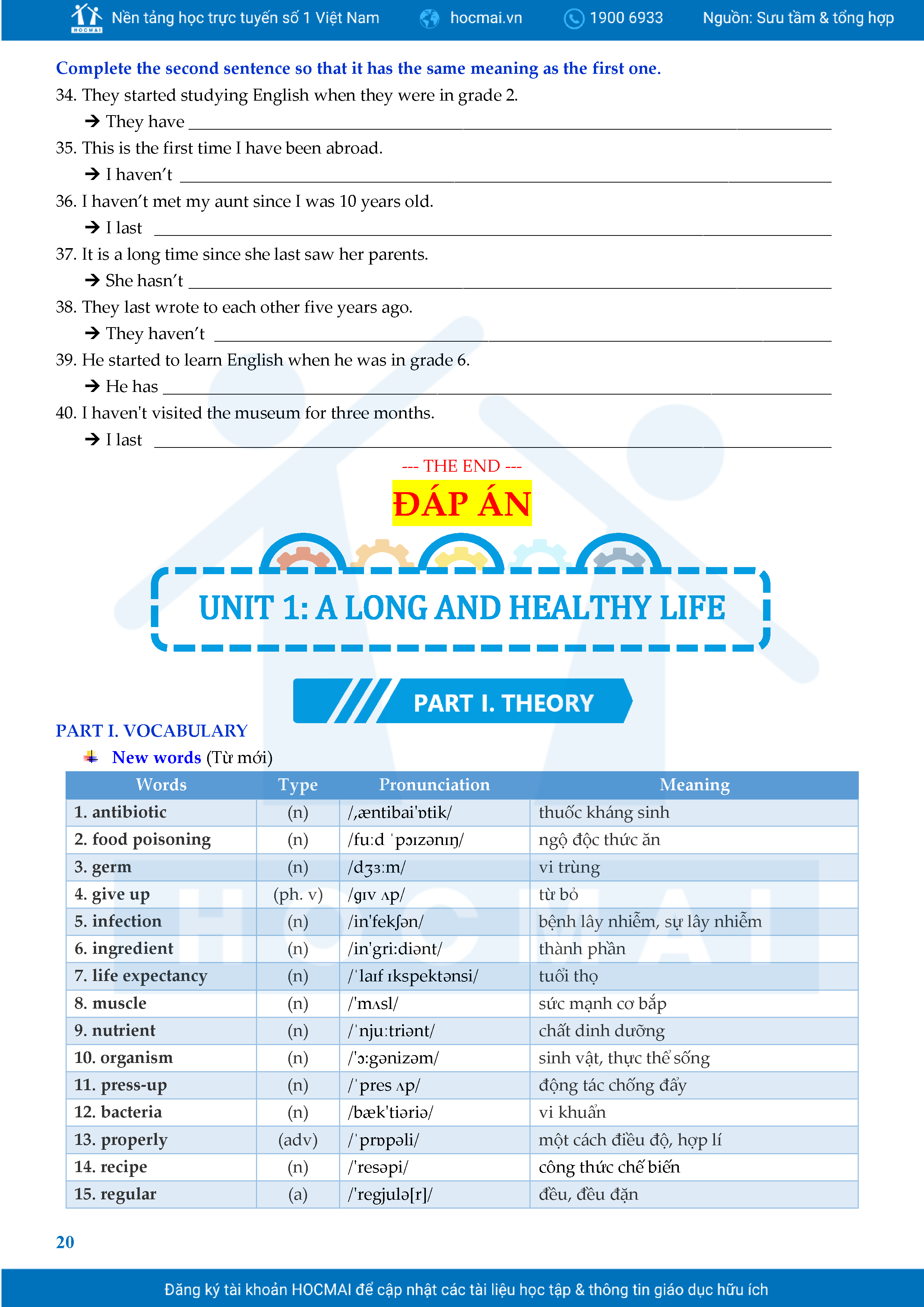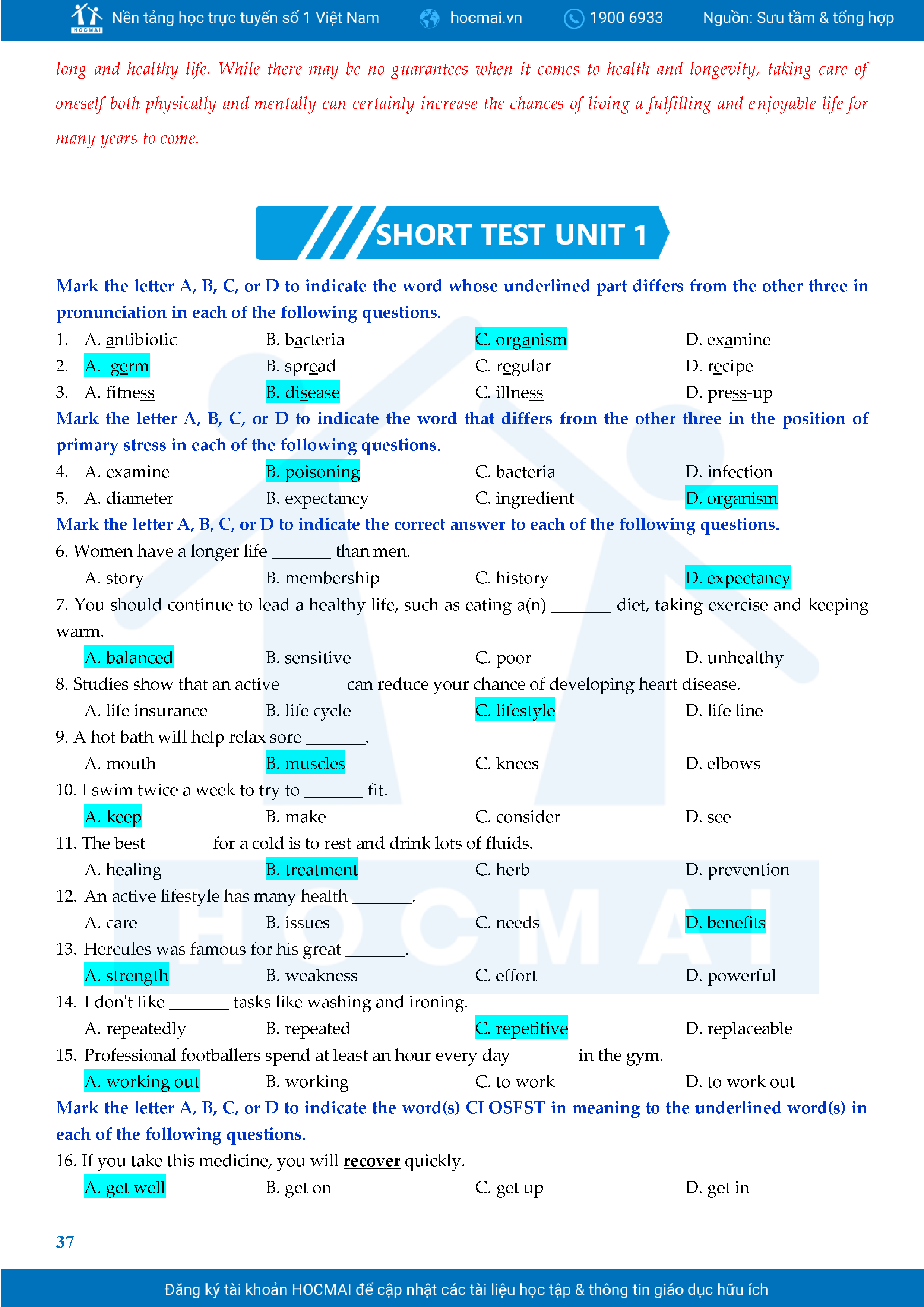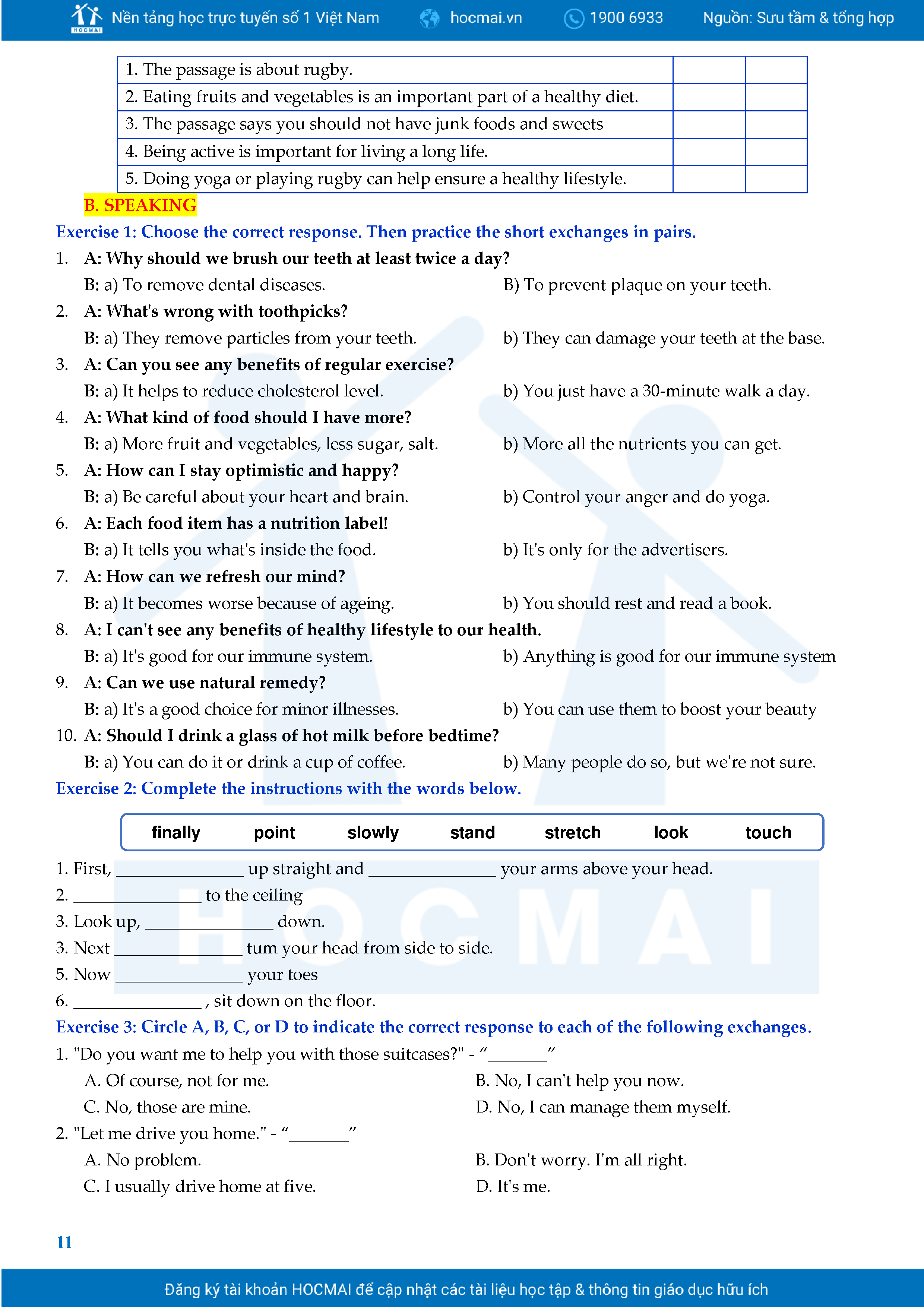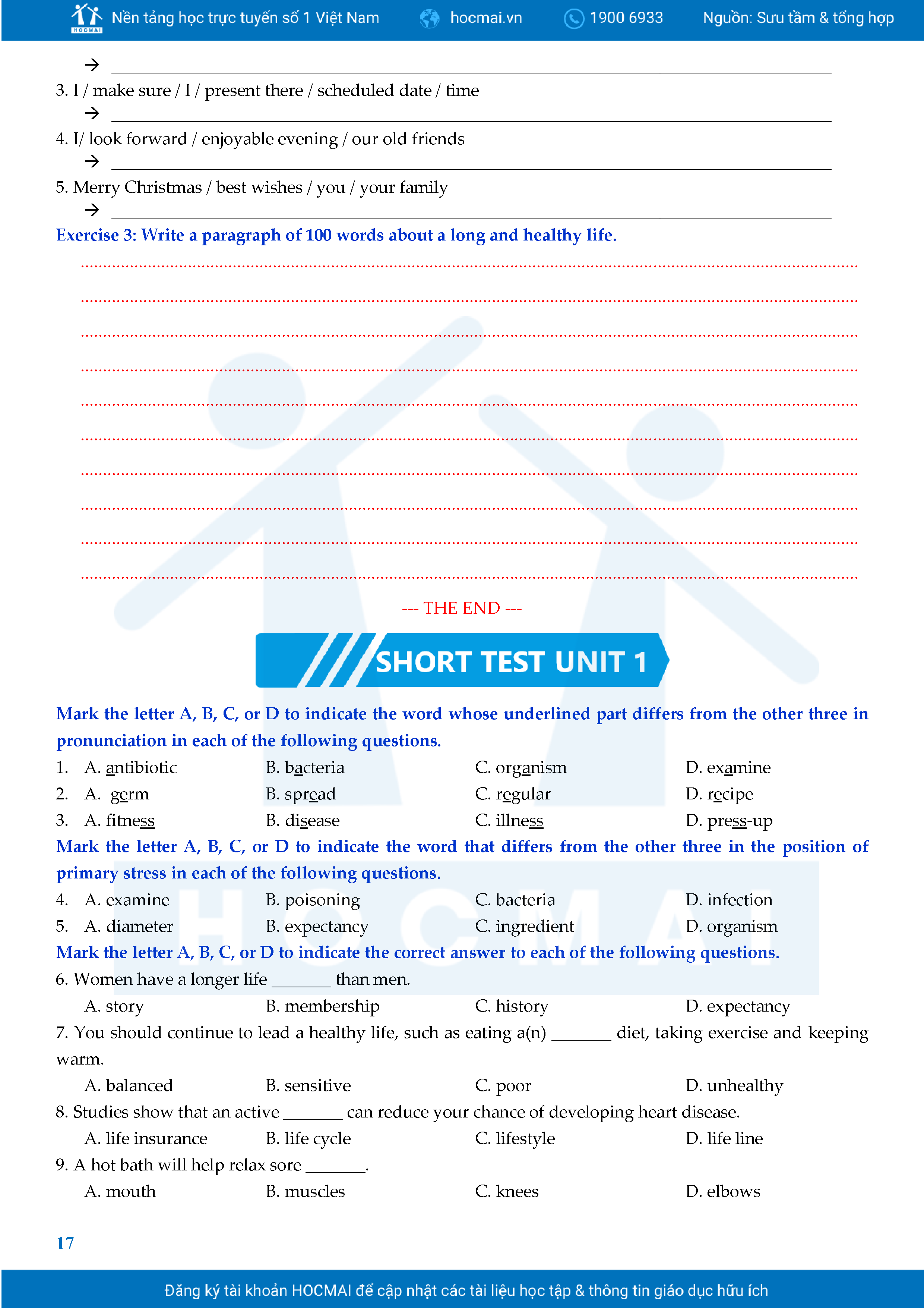 Bài Tập Bổ Trợ Anh 11 Unit 1 A Long And Healthy Life