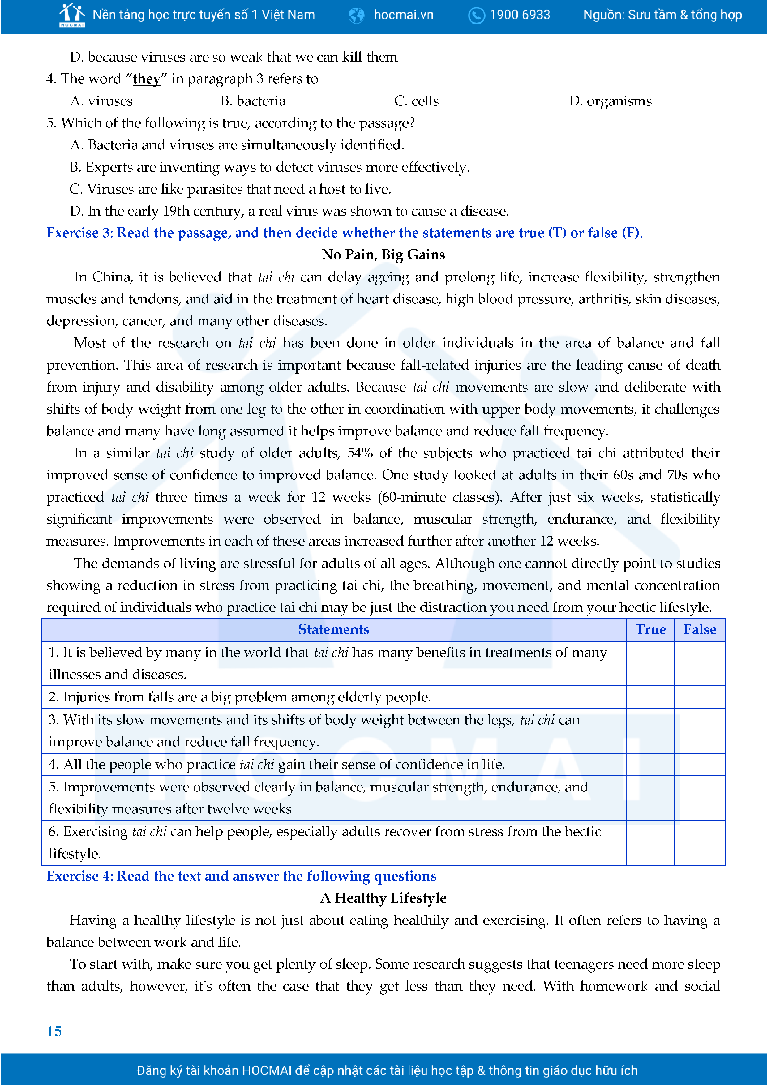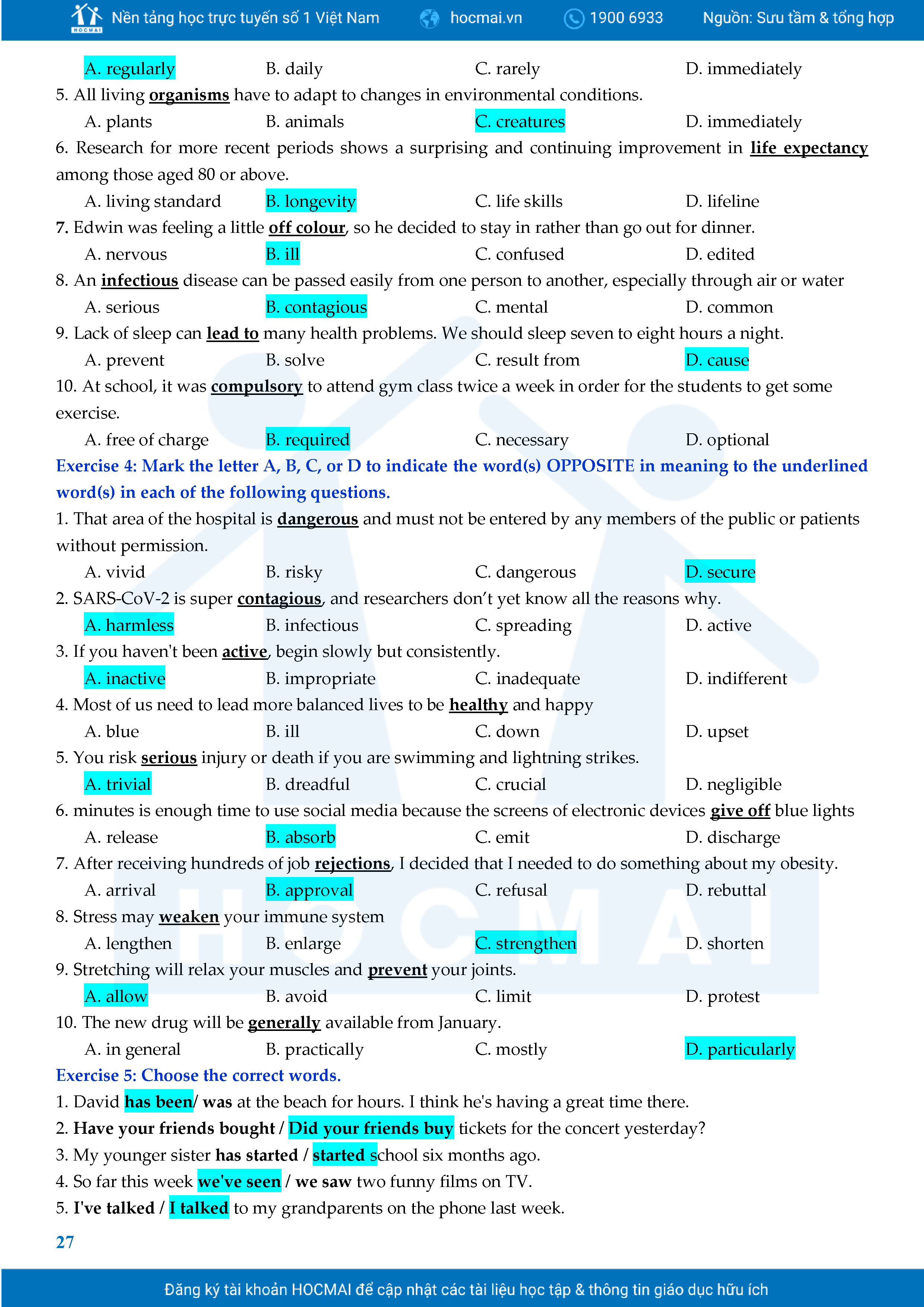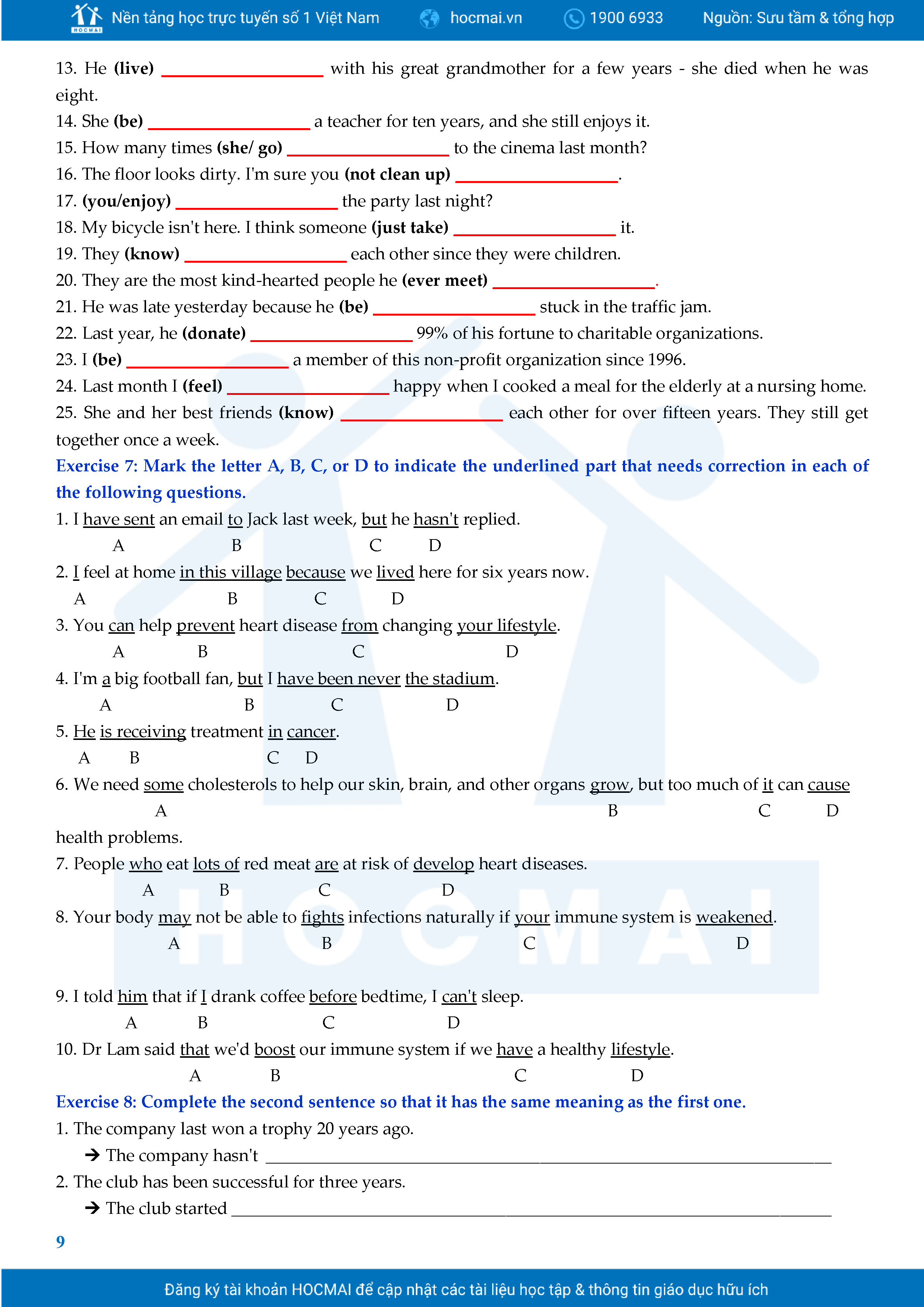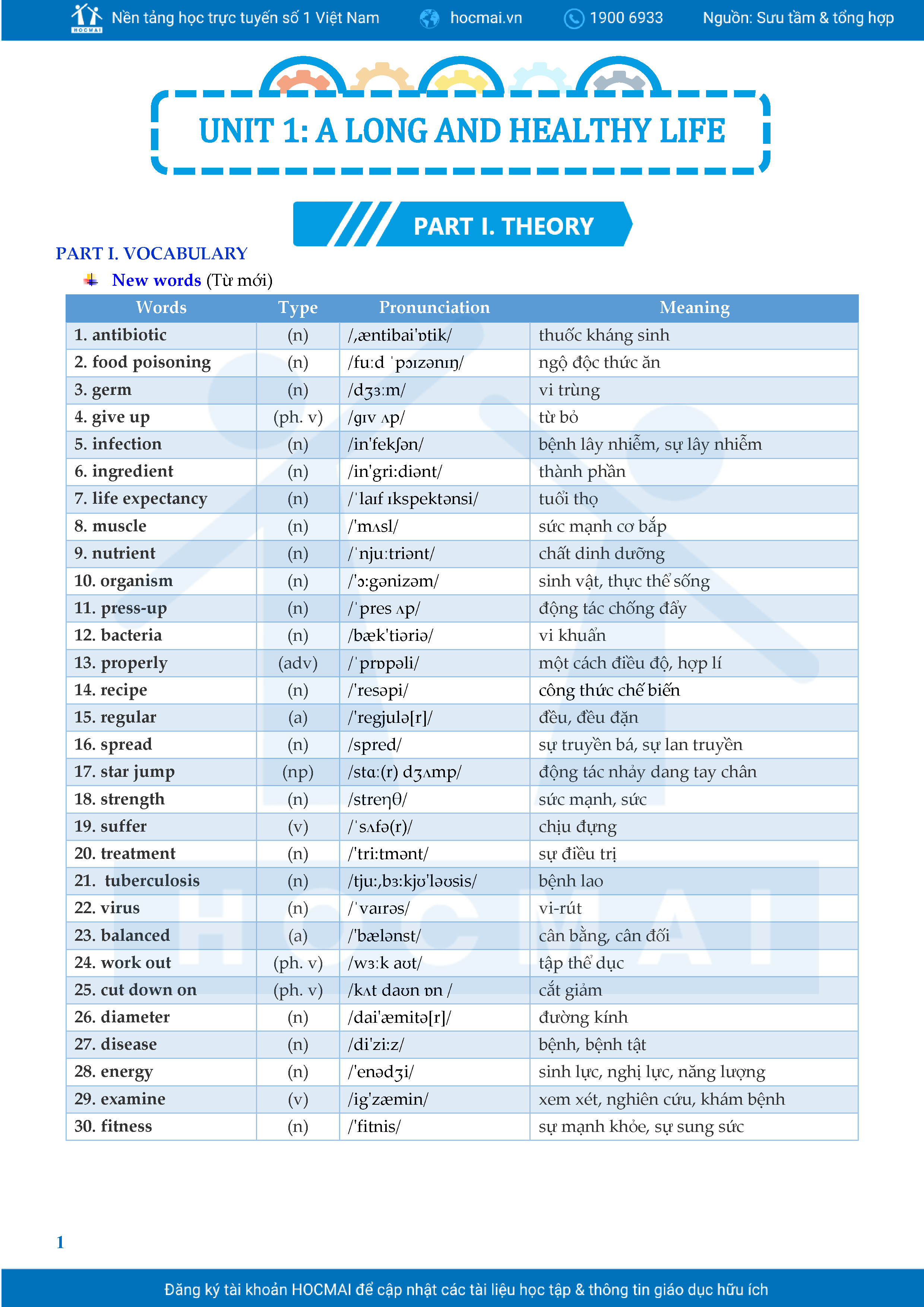 Bài Tập Bổ Trợ Anh 11 Unit 1 A Long And Healthy Life