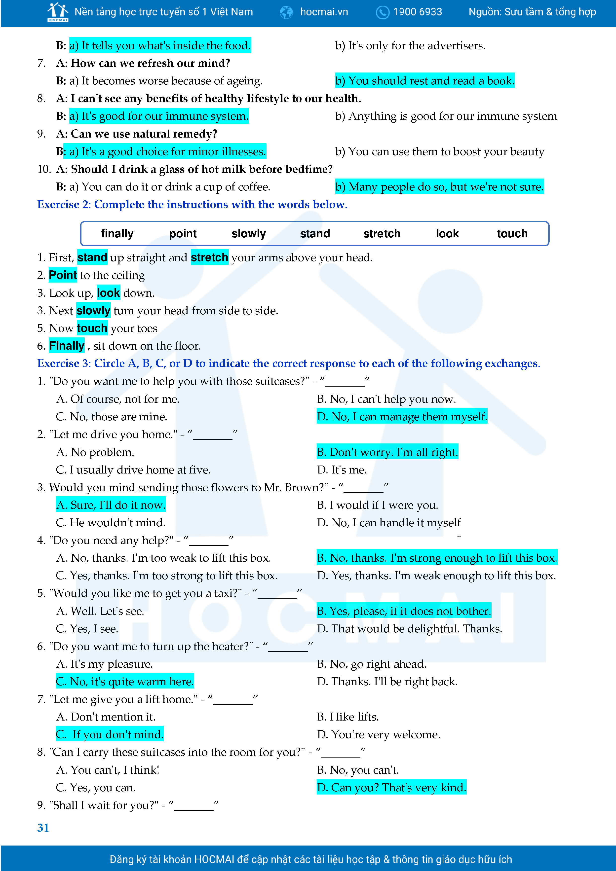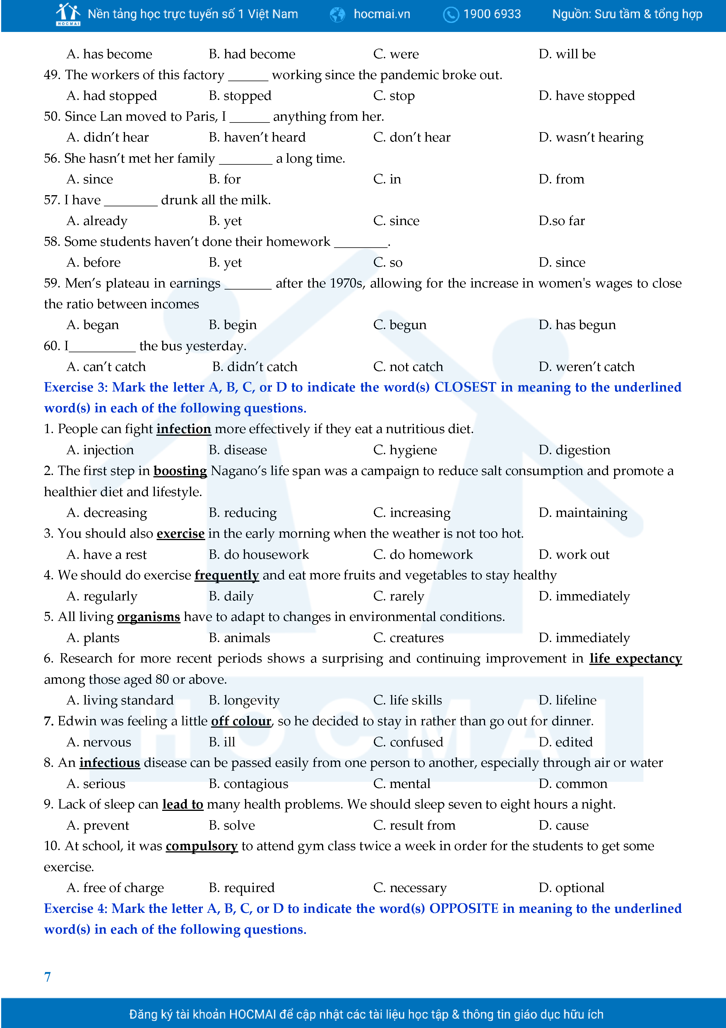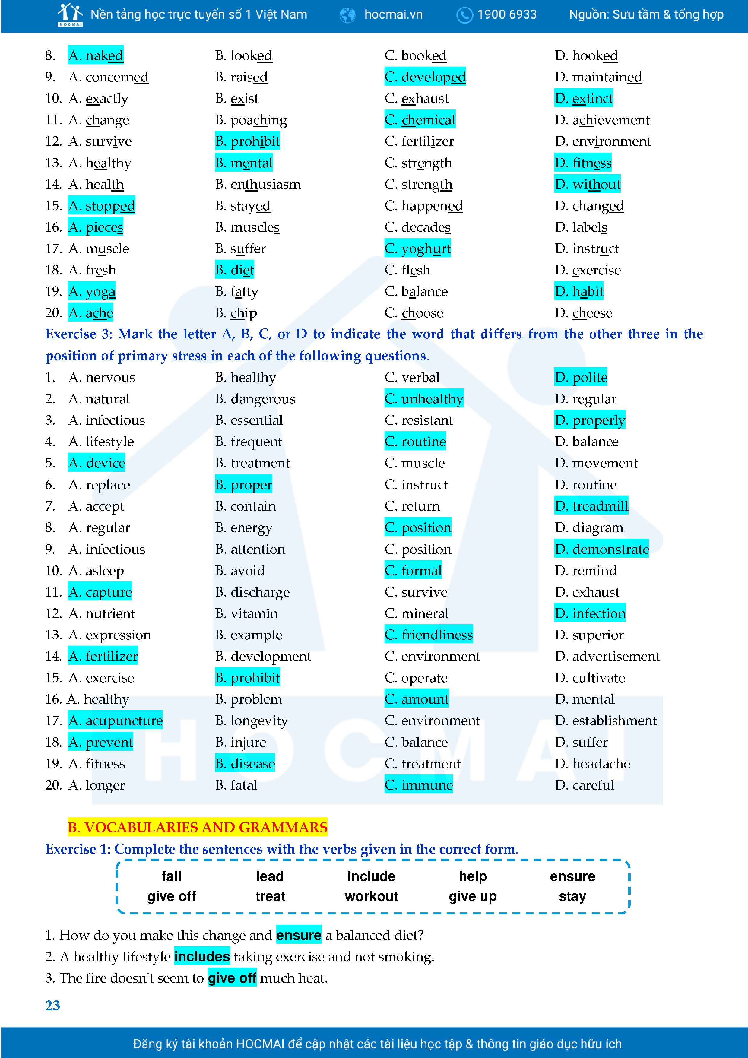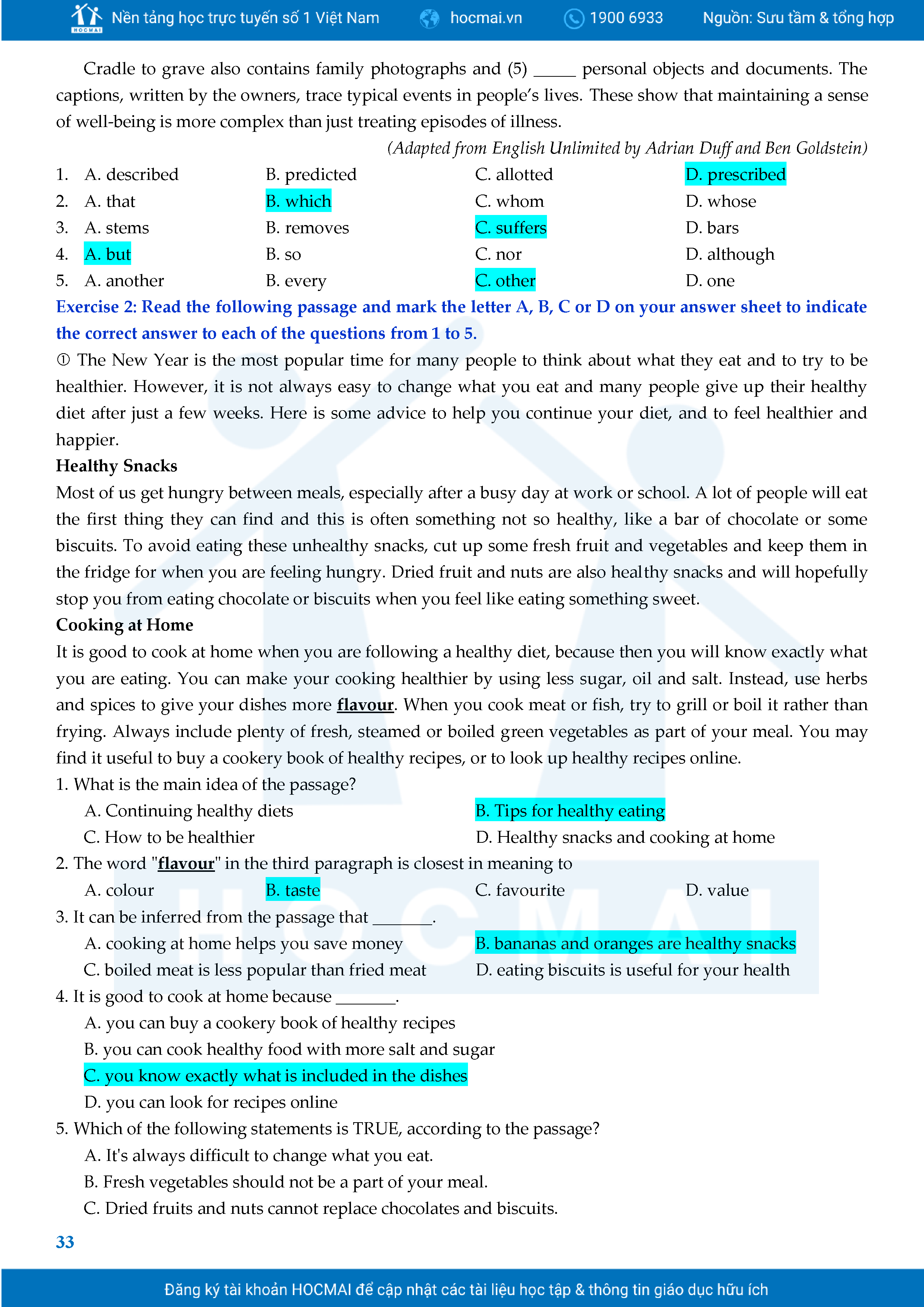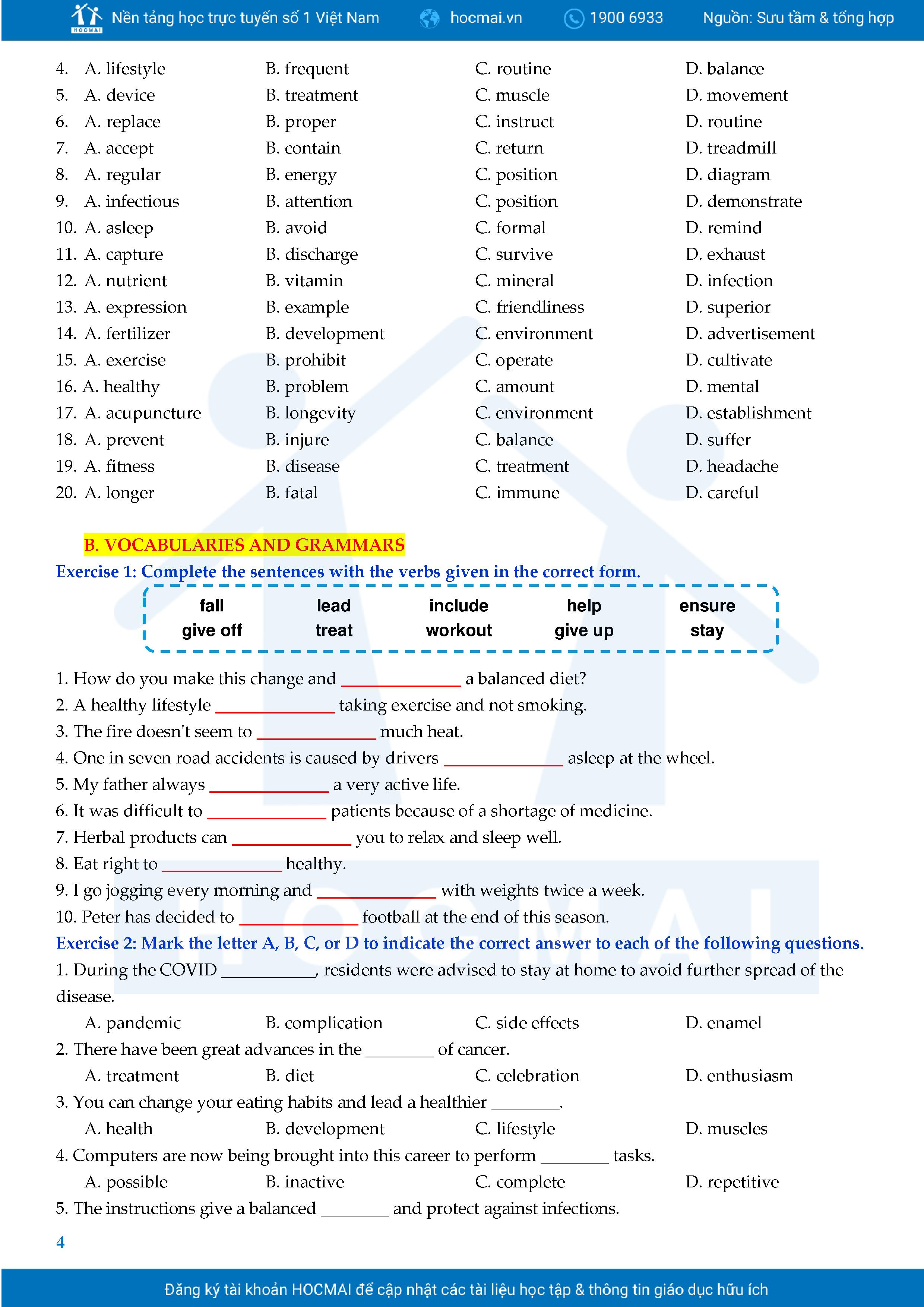 Bài Tập Bổ Trợ Anh 11 Unit 1 A Long And Healthy Life
