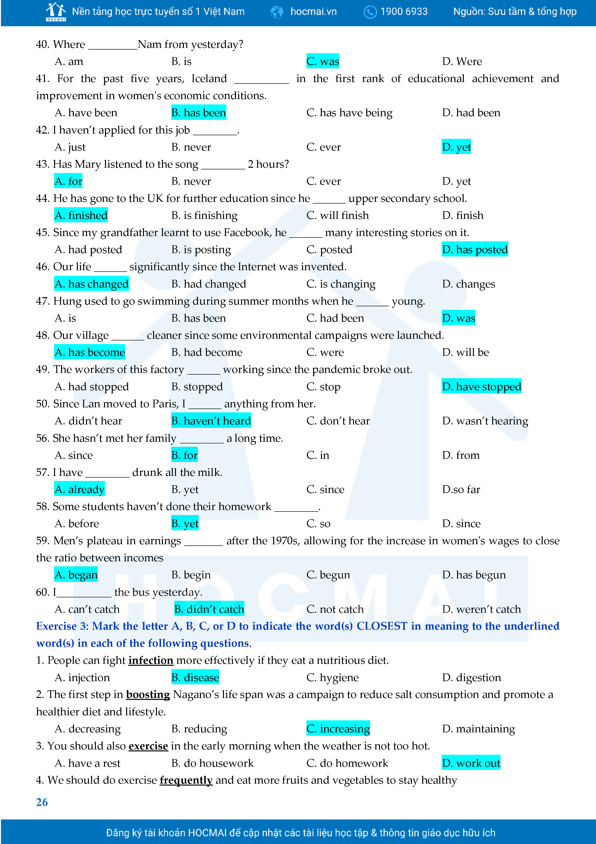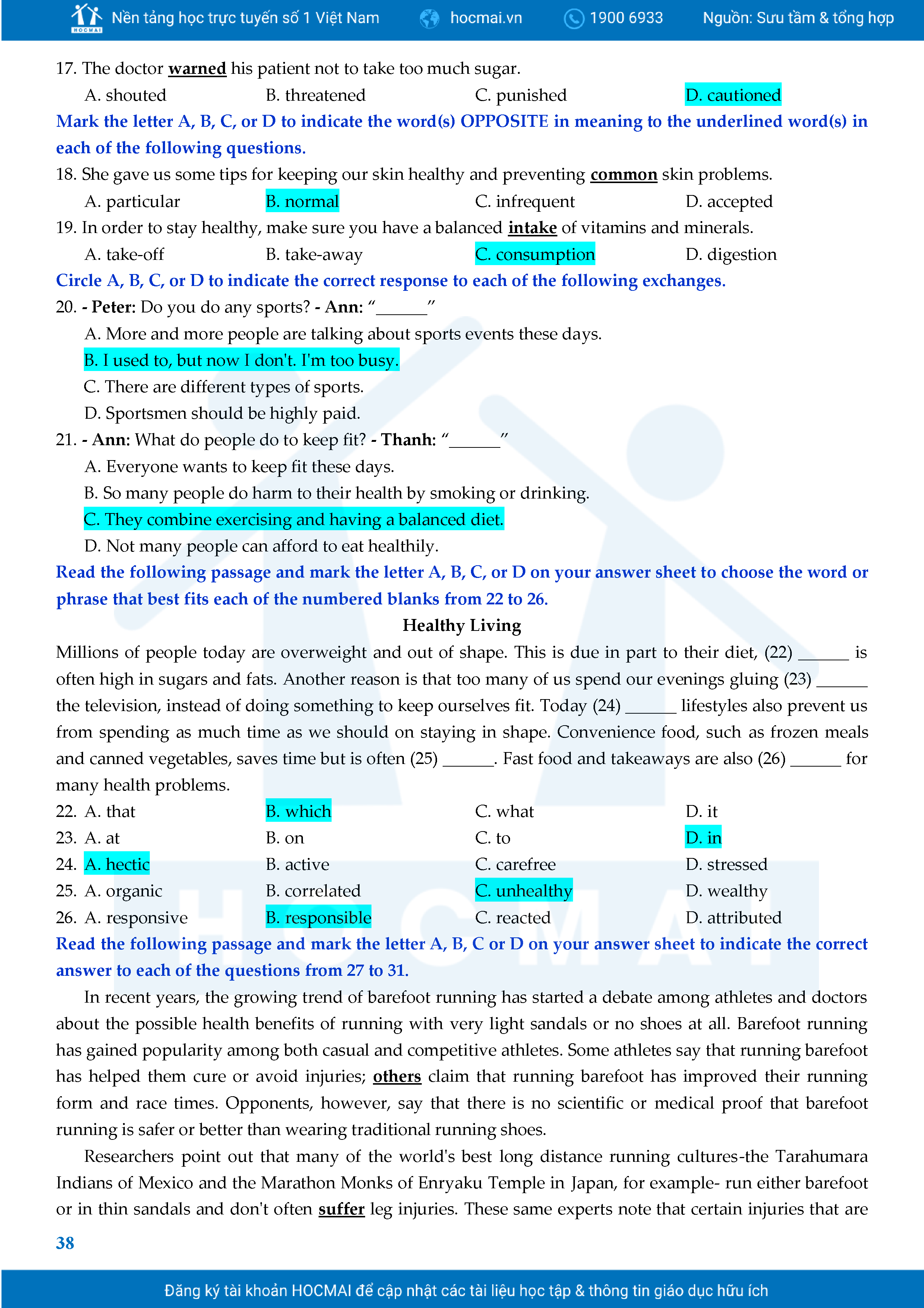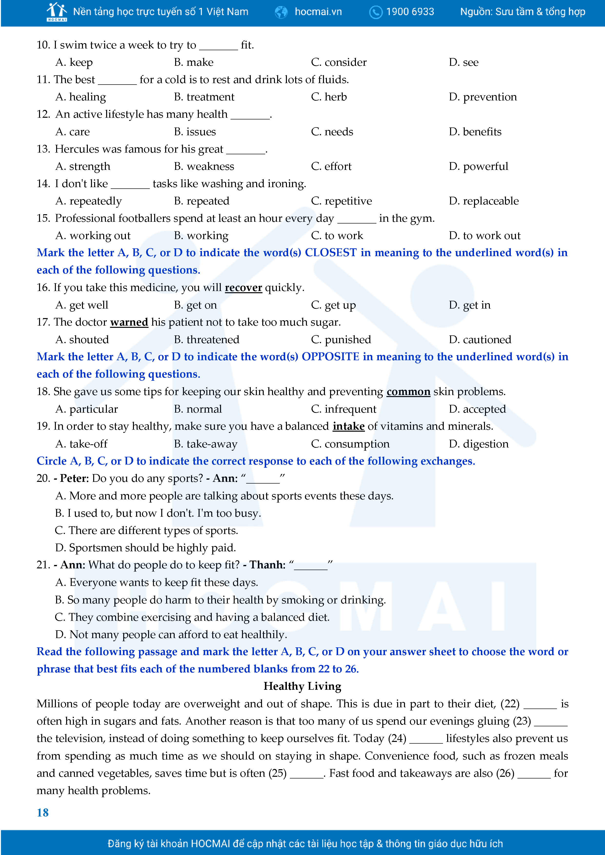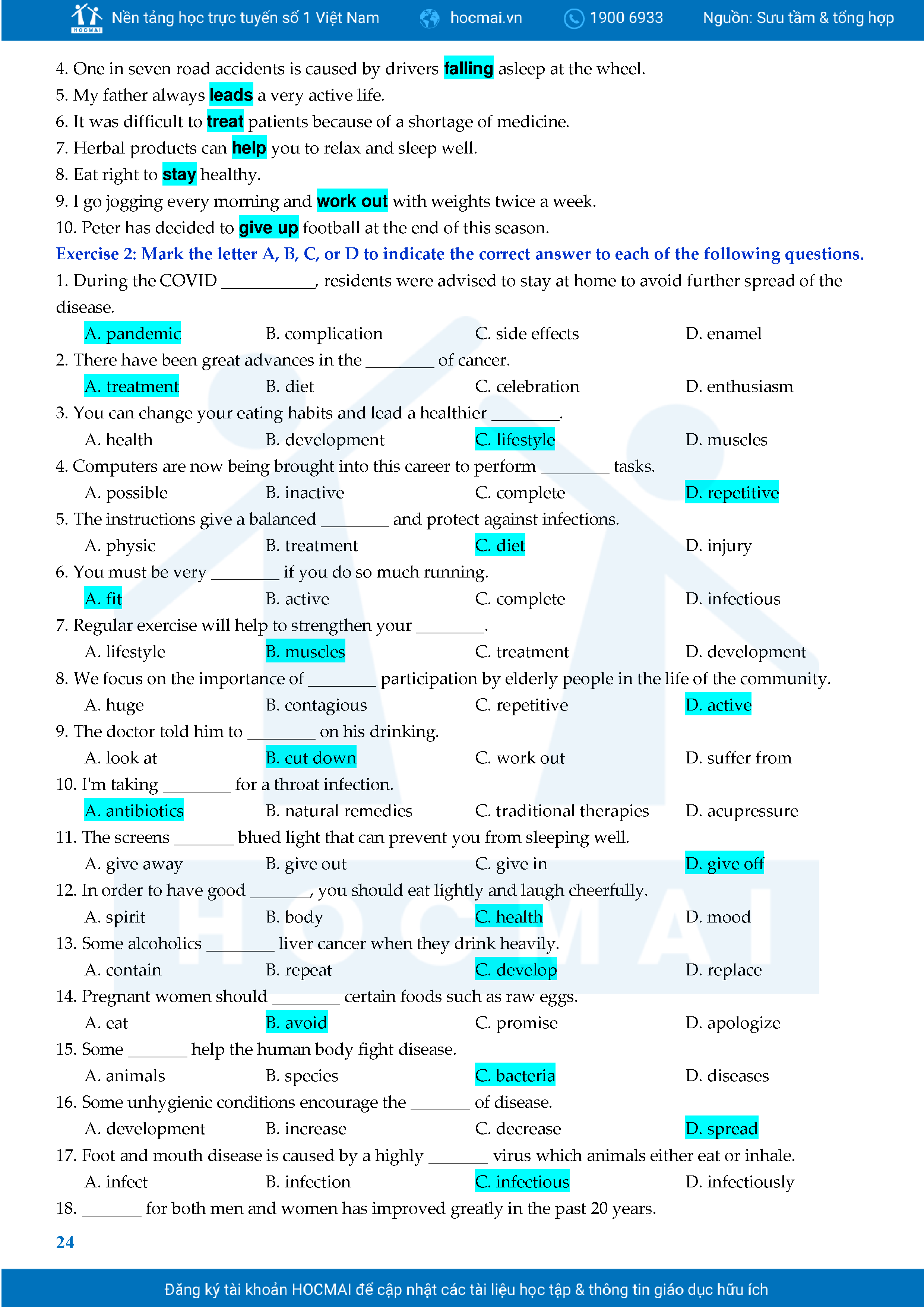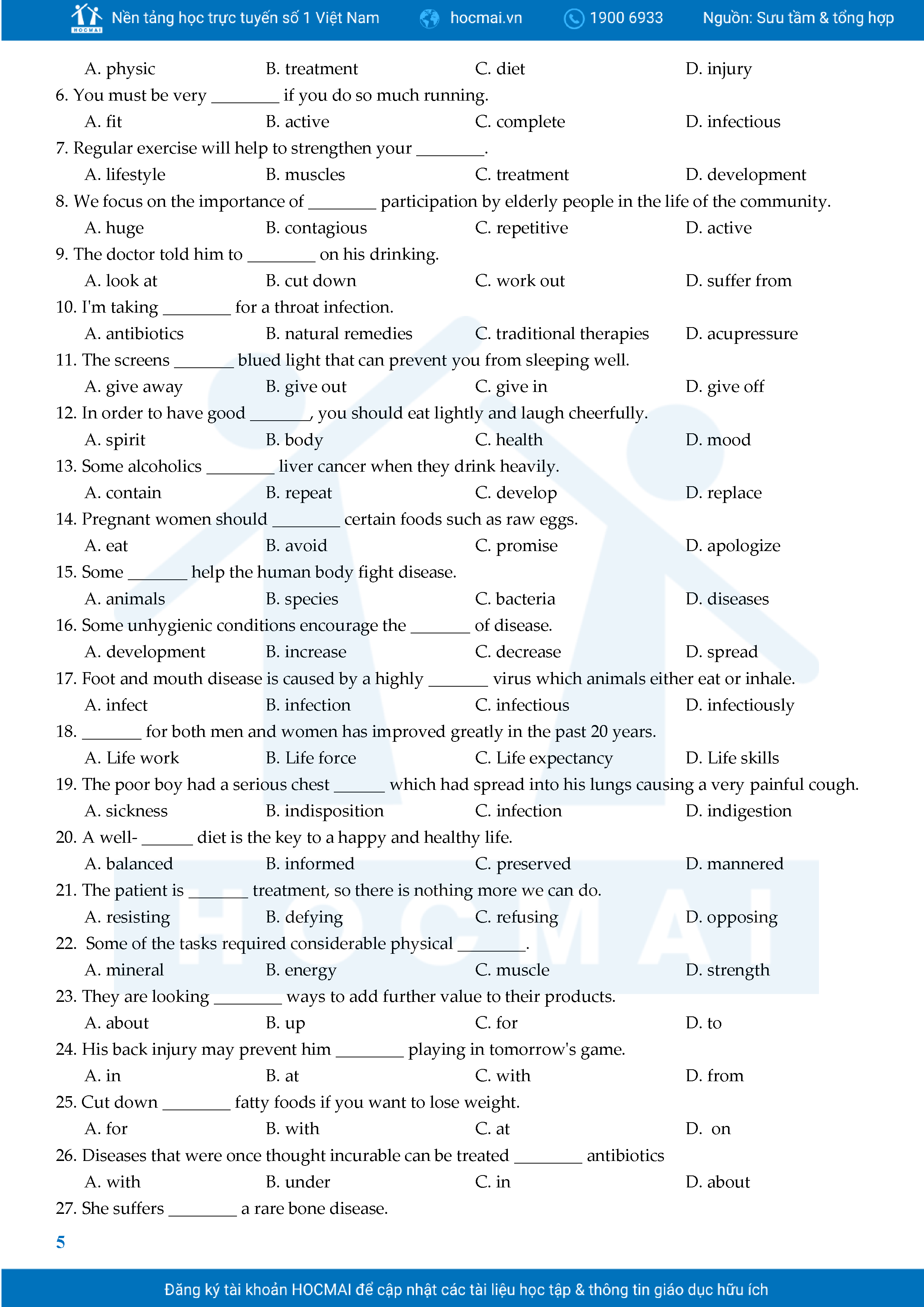 Bài Tập Bổ Trợ Anh 11 Unit 1 A Long And Healthy Life