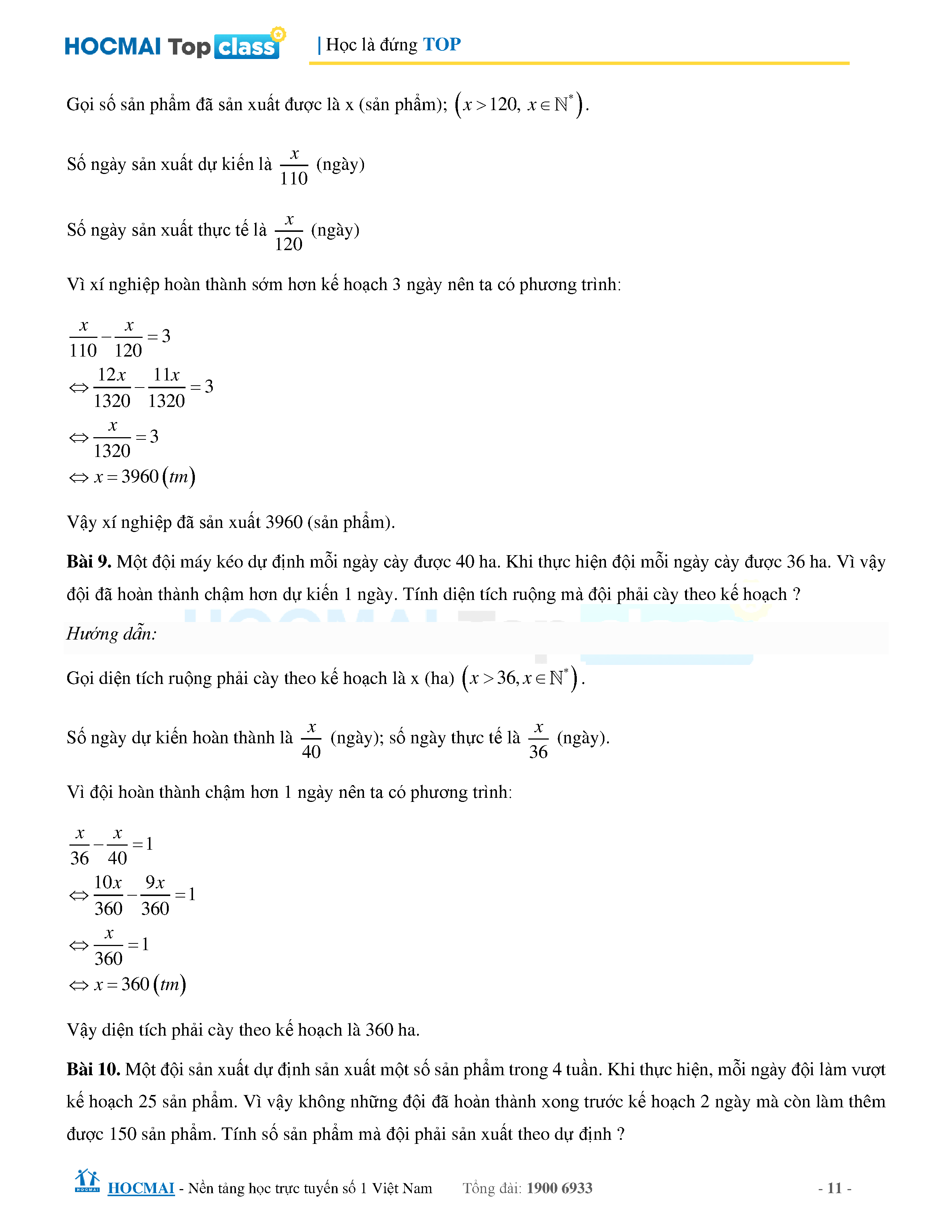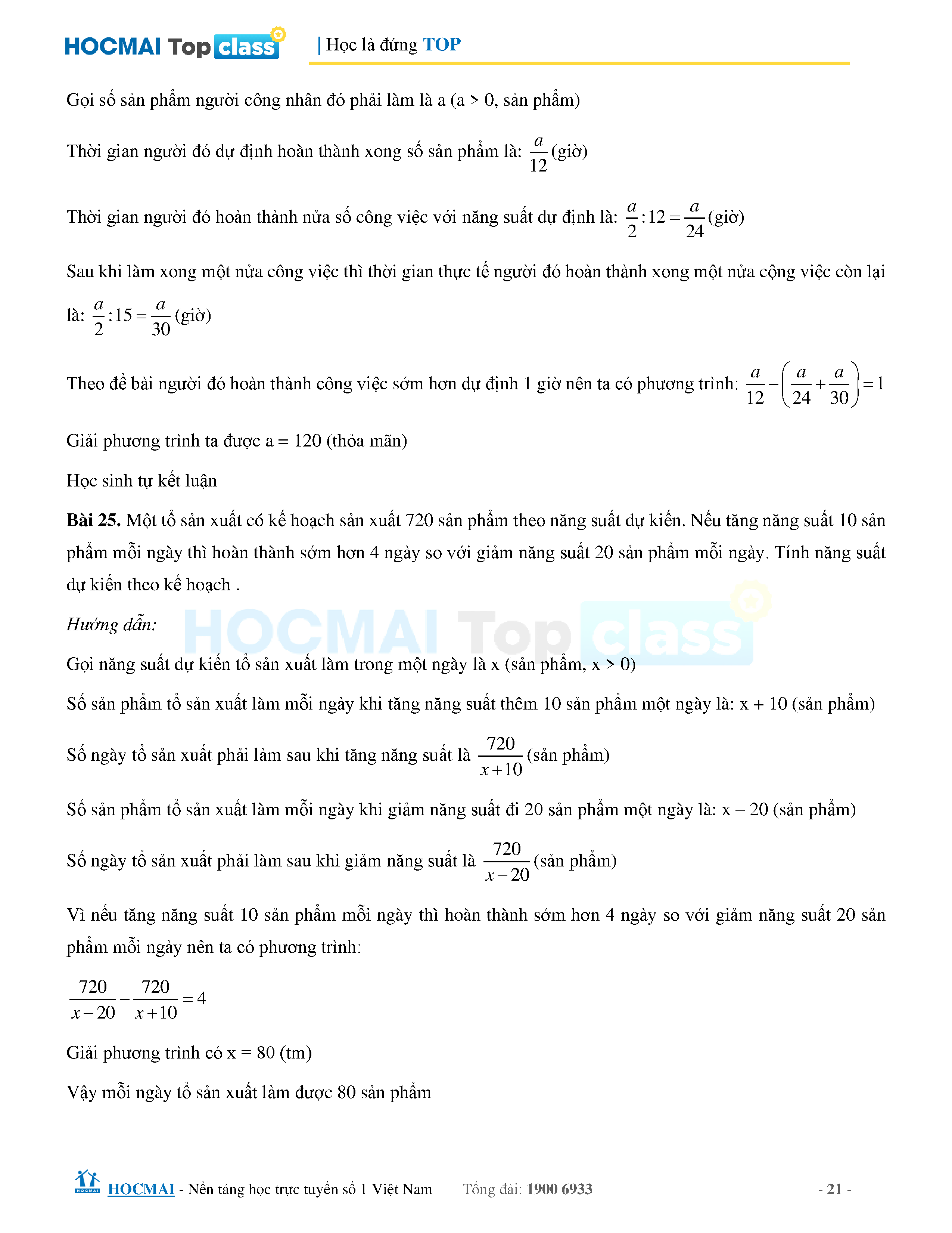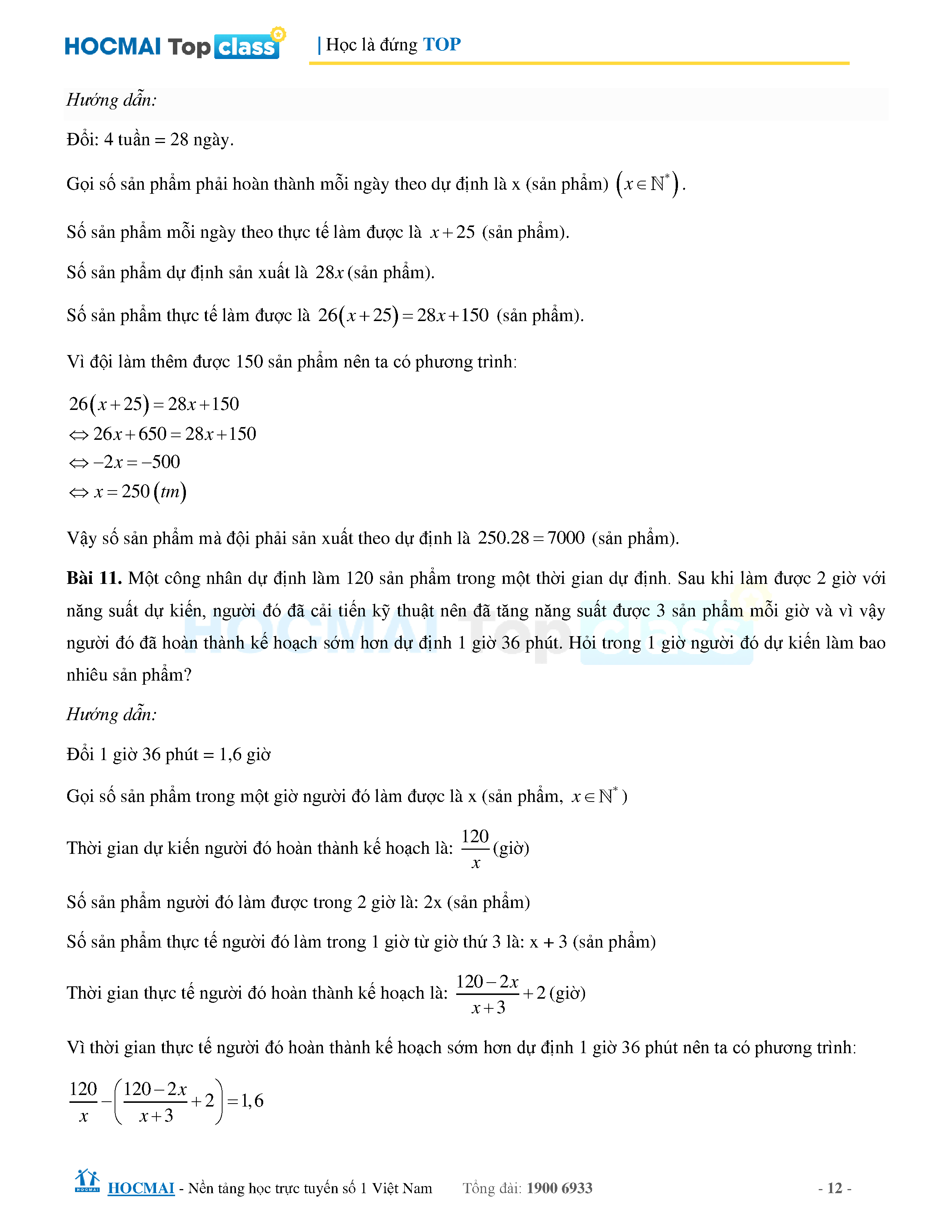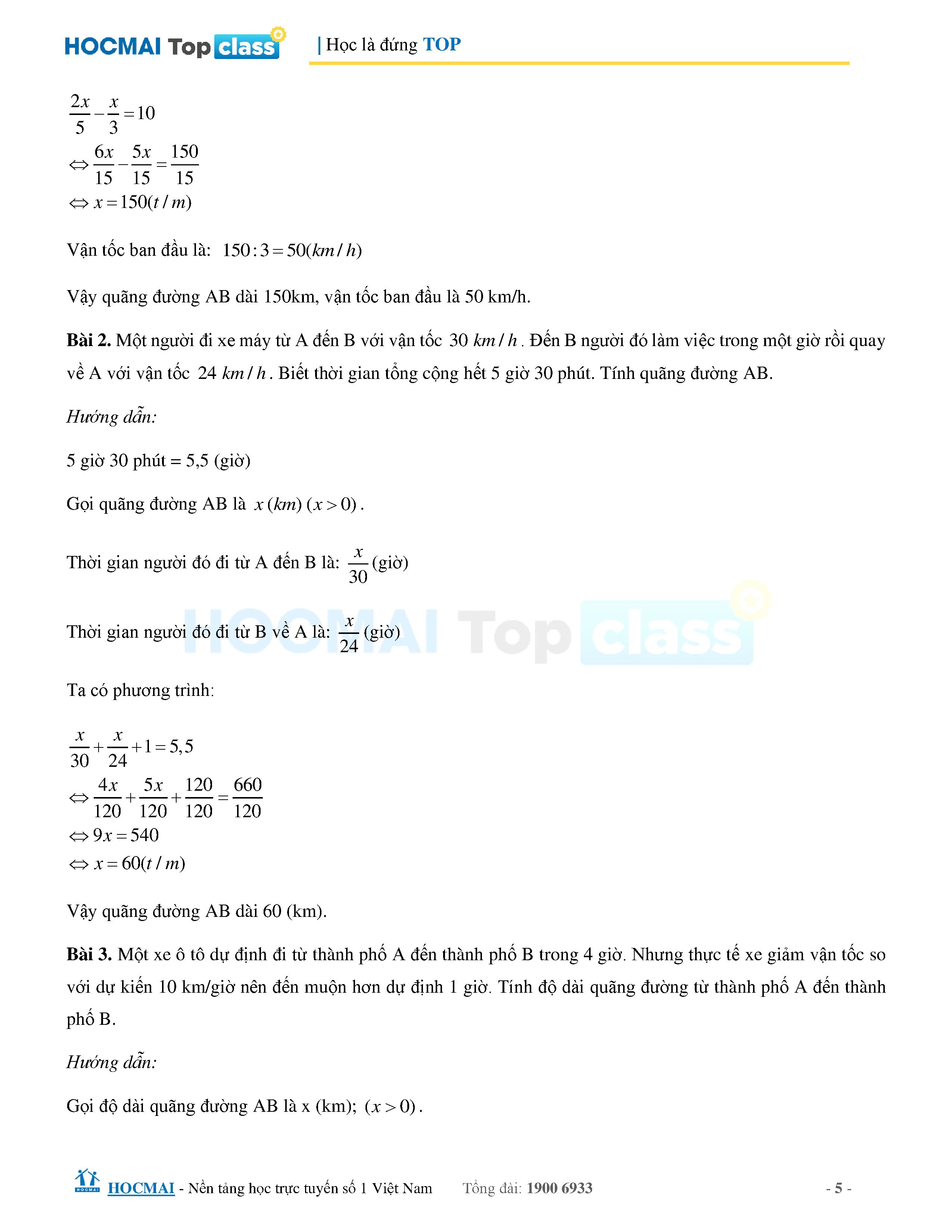 Ôn tập Giải bài toán bằng cách lập phương trình - Hướng dẫn giải