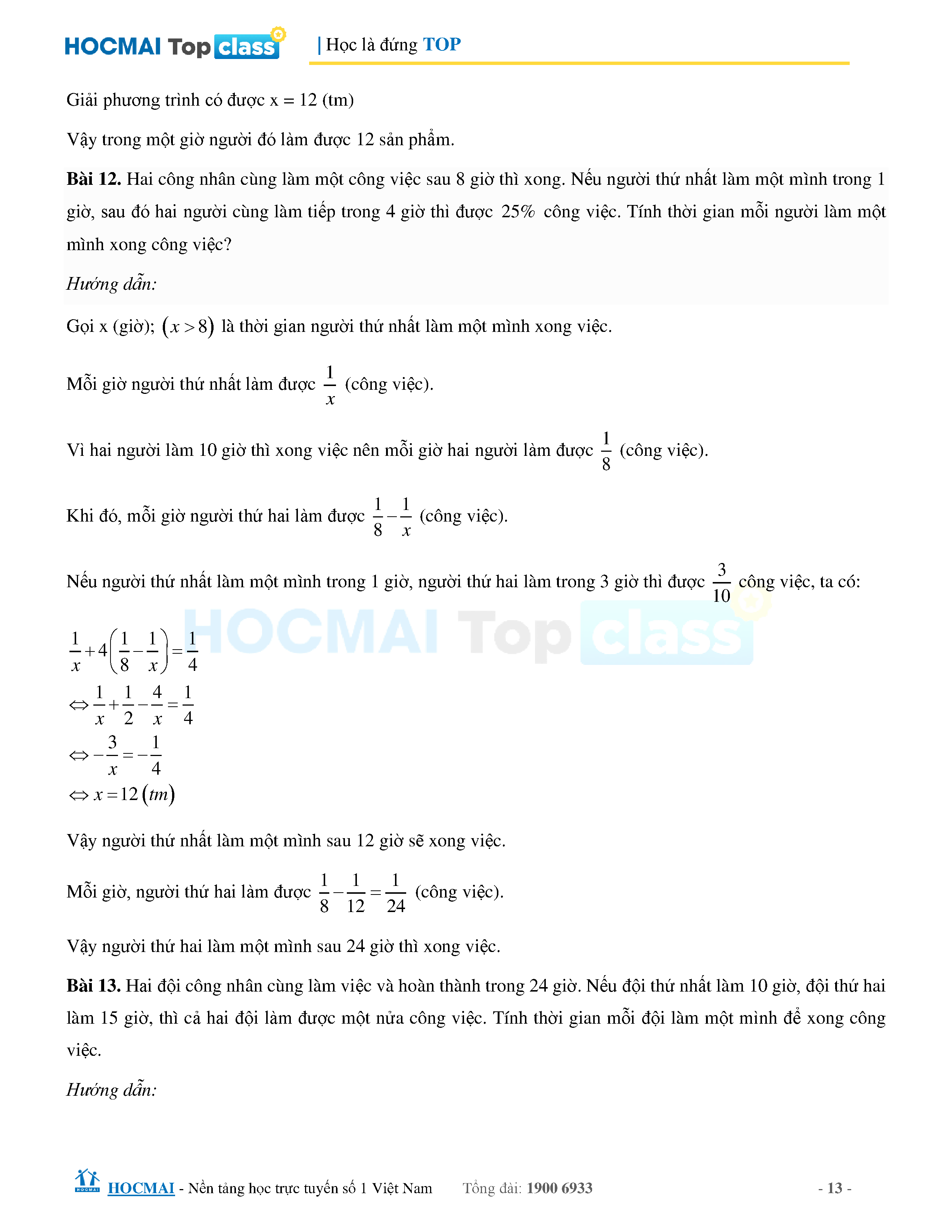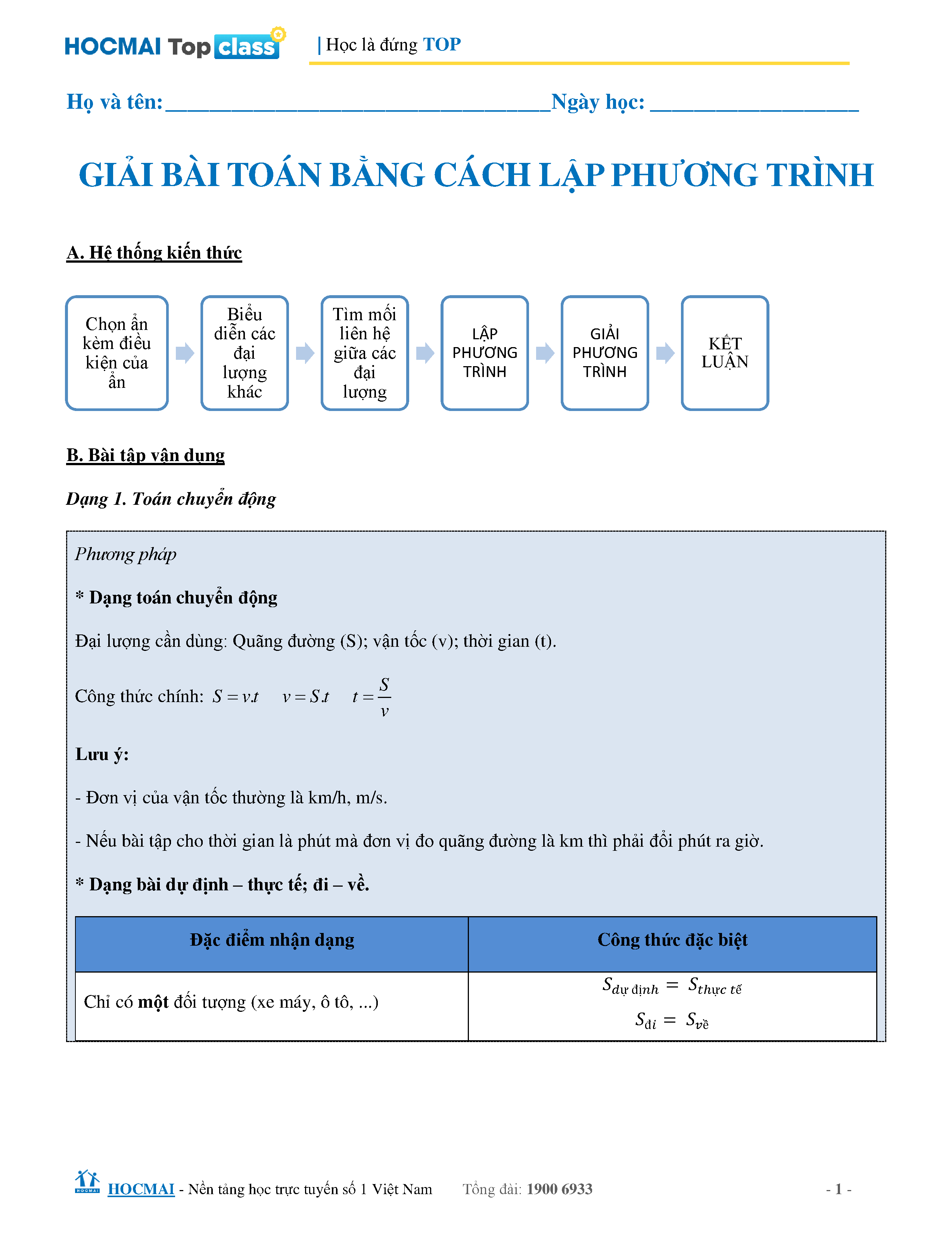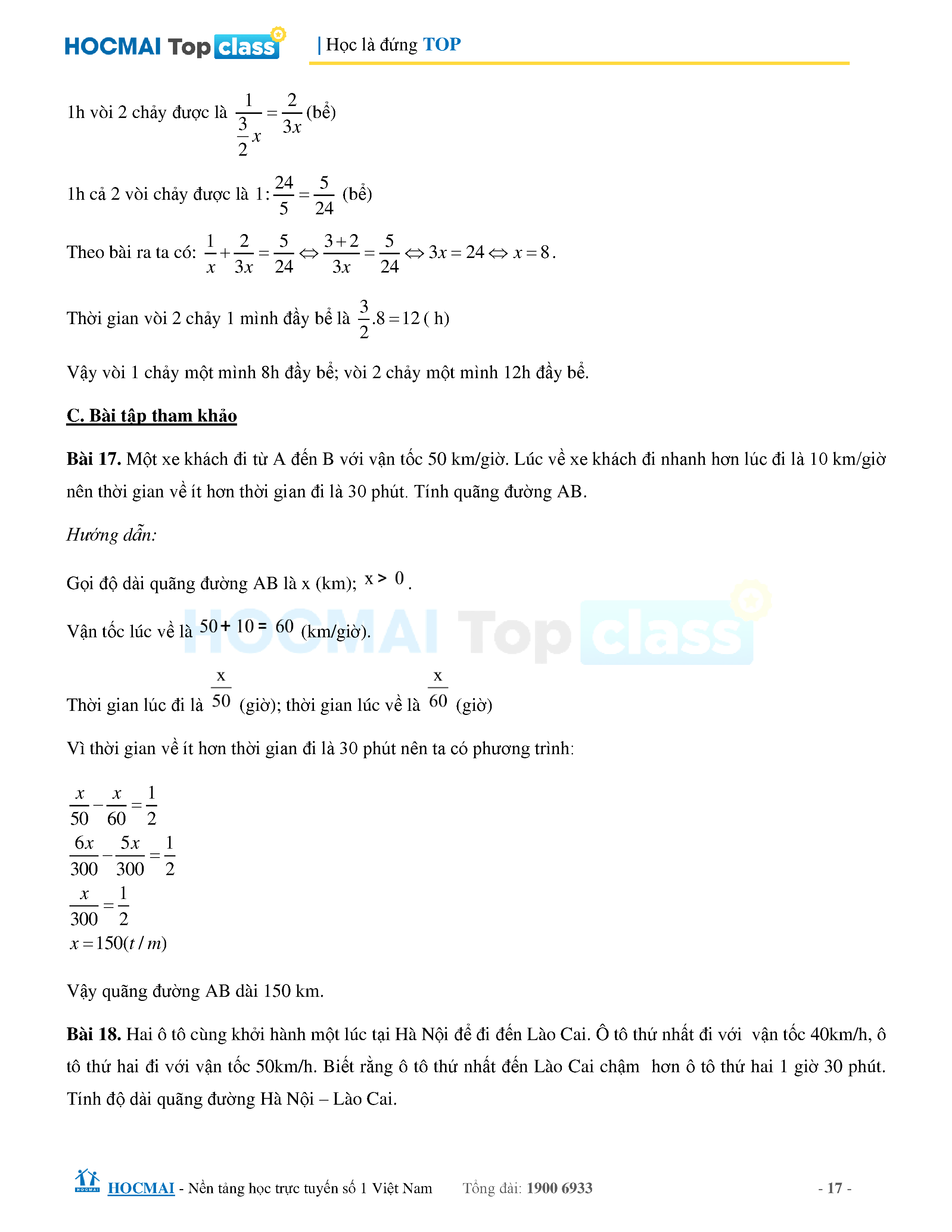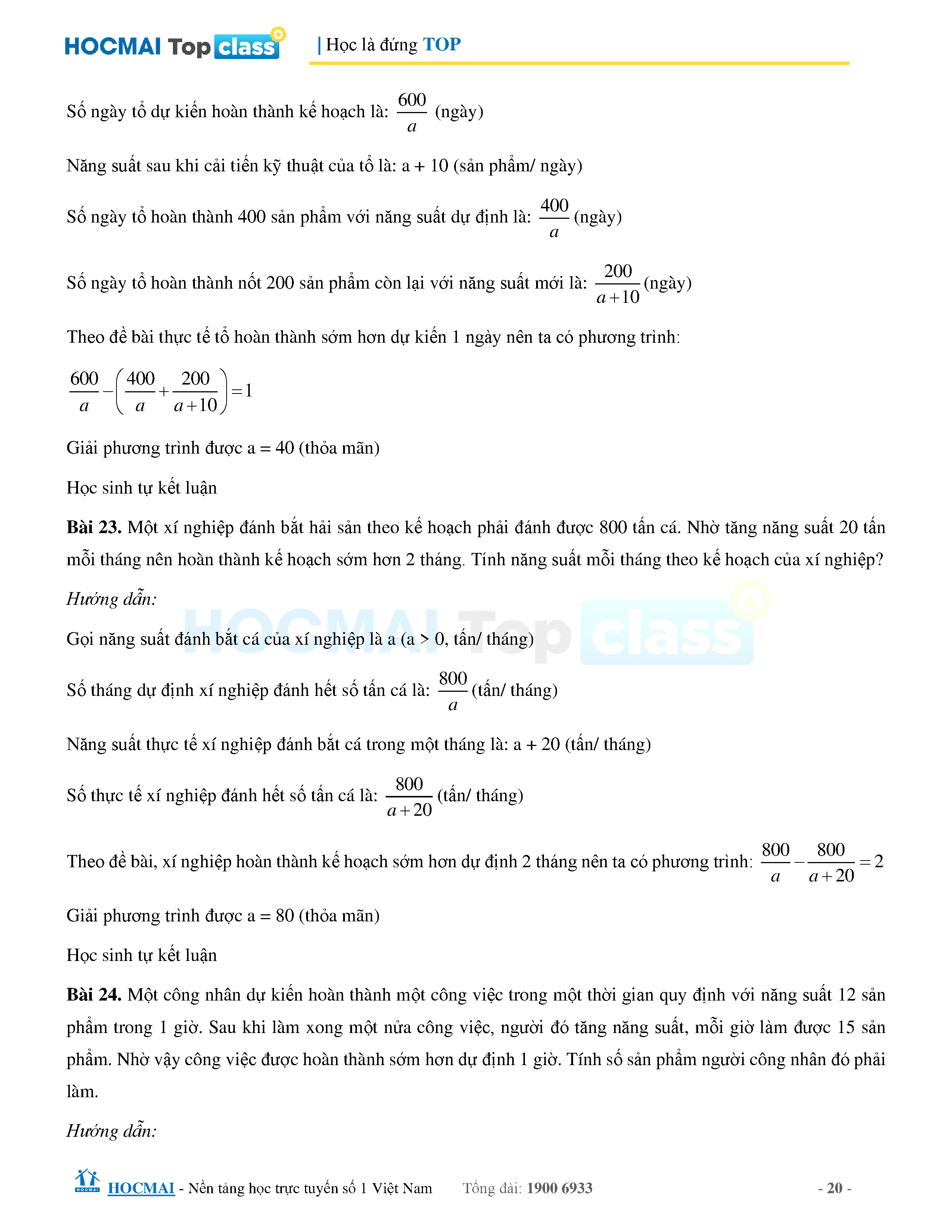 Ôn tập Giải bài toán bằng cách lập phương trình - Hướng dẫn giải