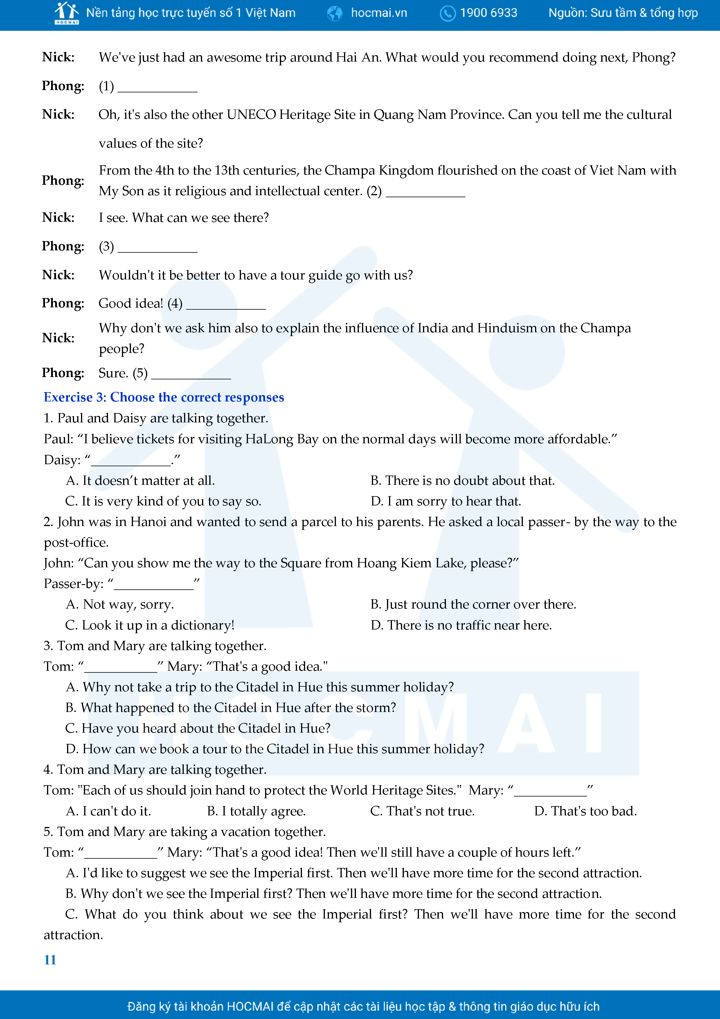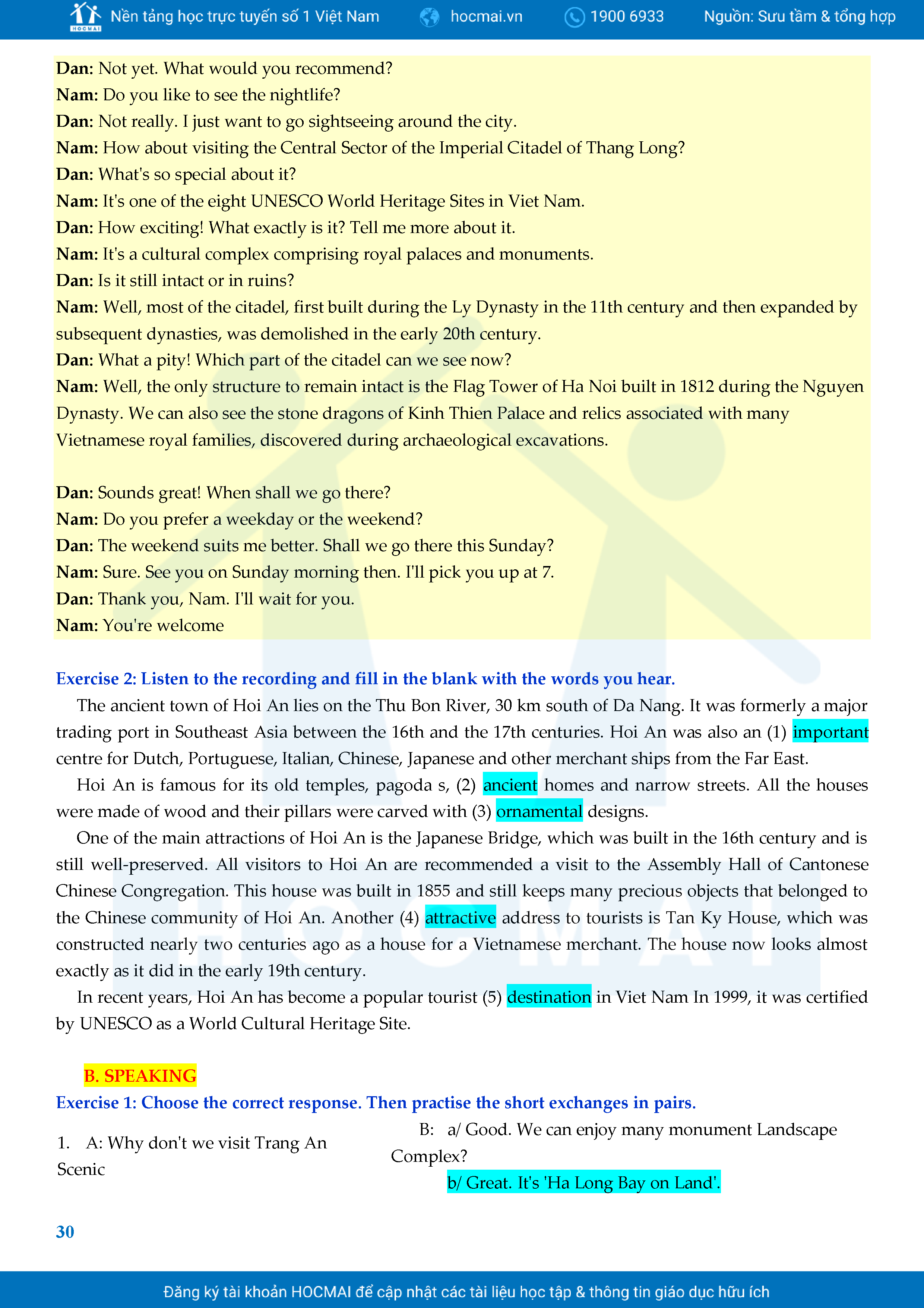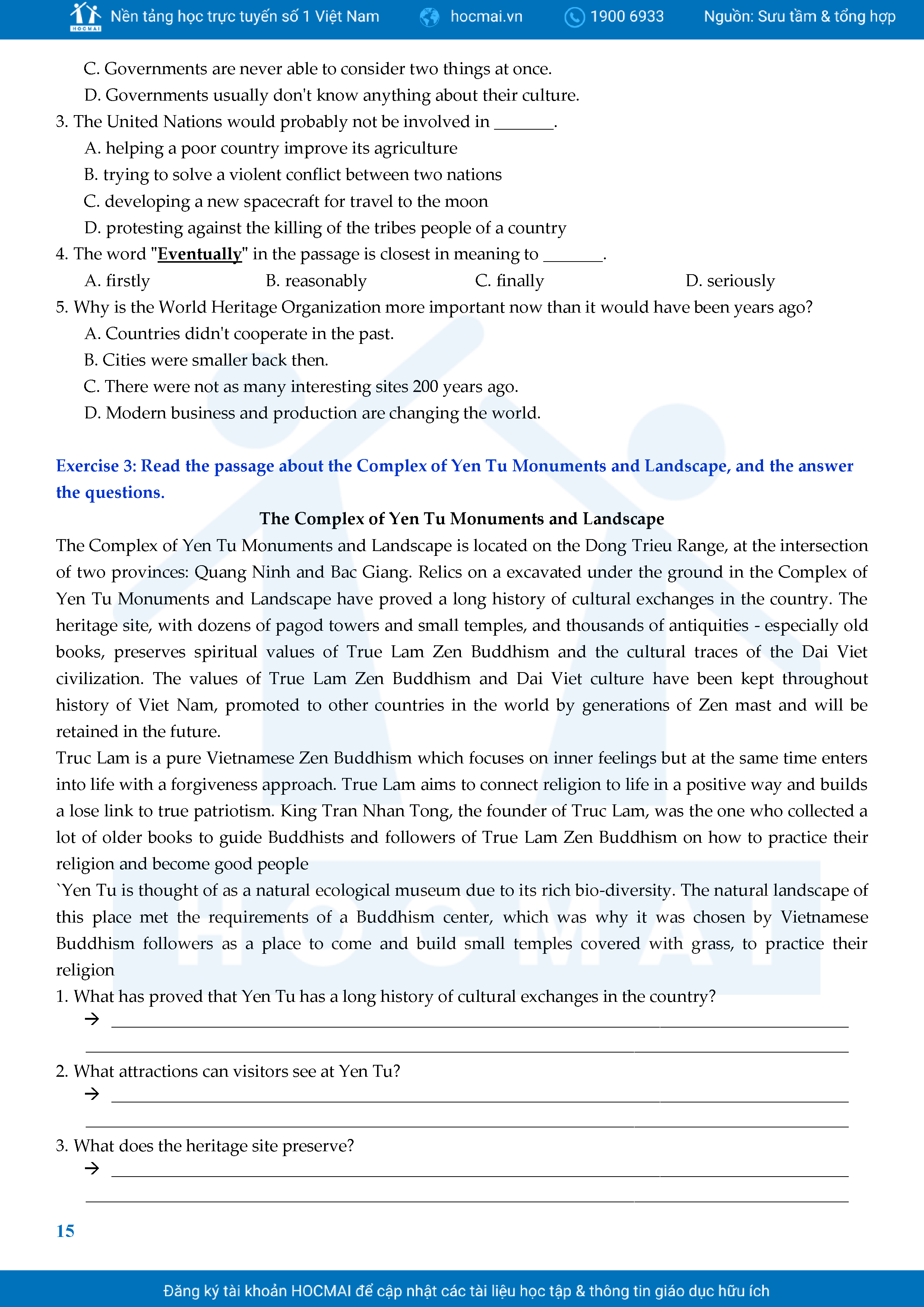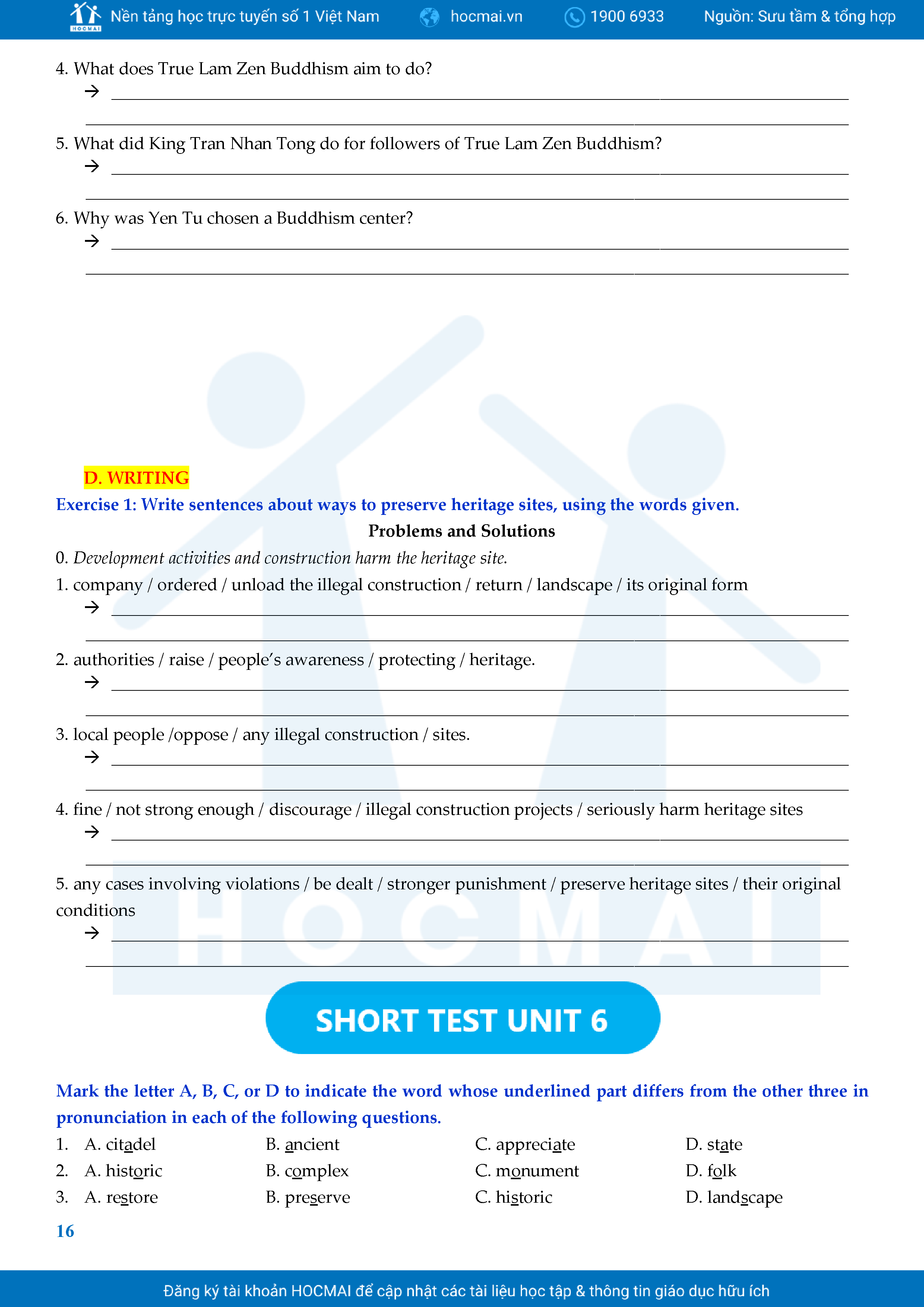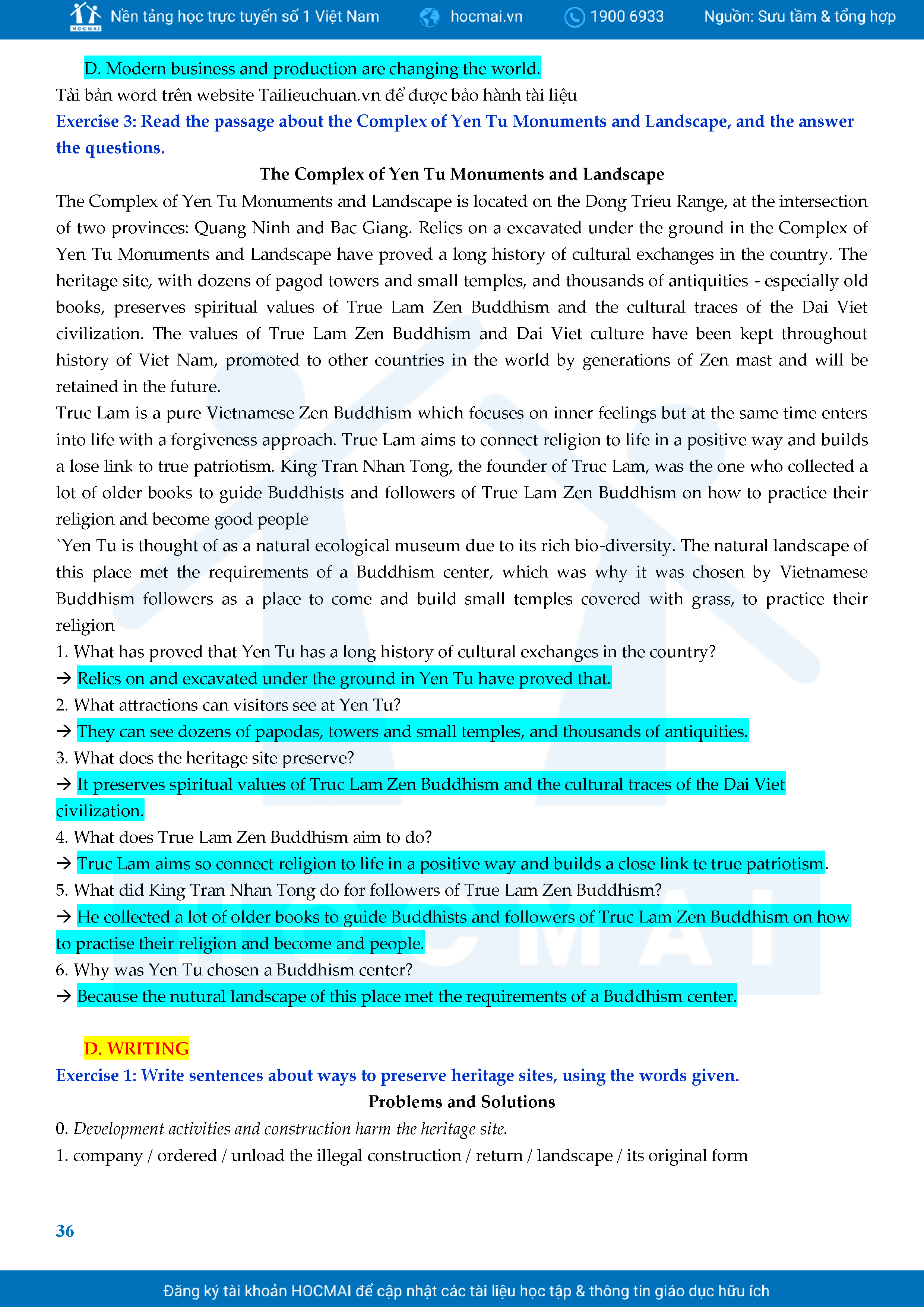 Bài Tập Bổ Trợ Anh 11 Unit 6 Preserving Our Heritage