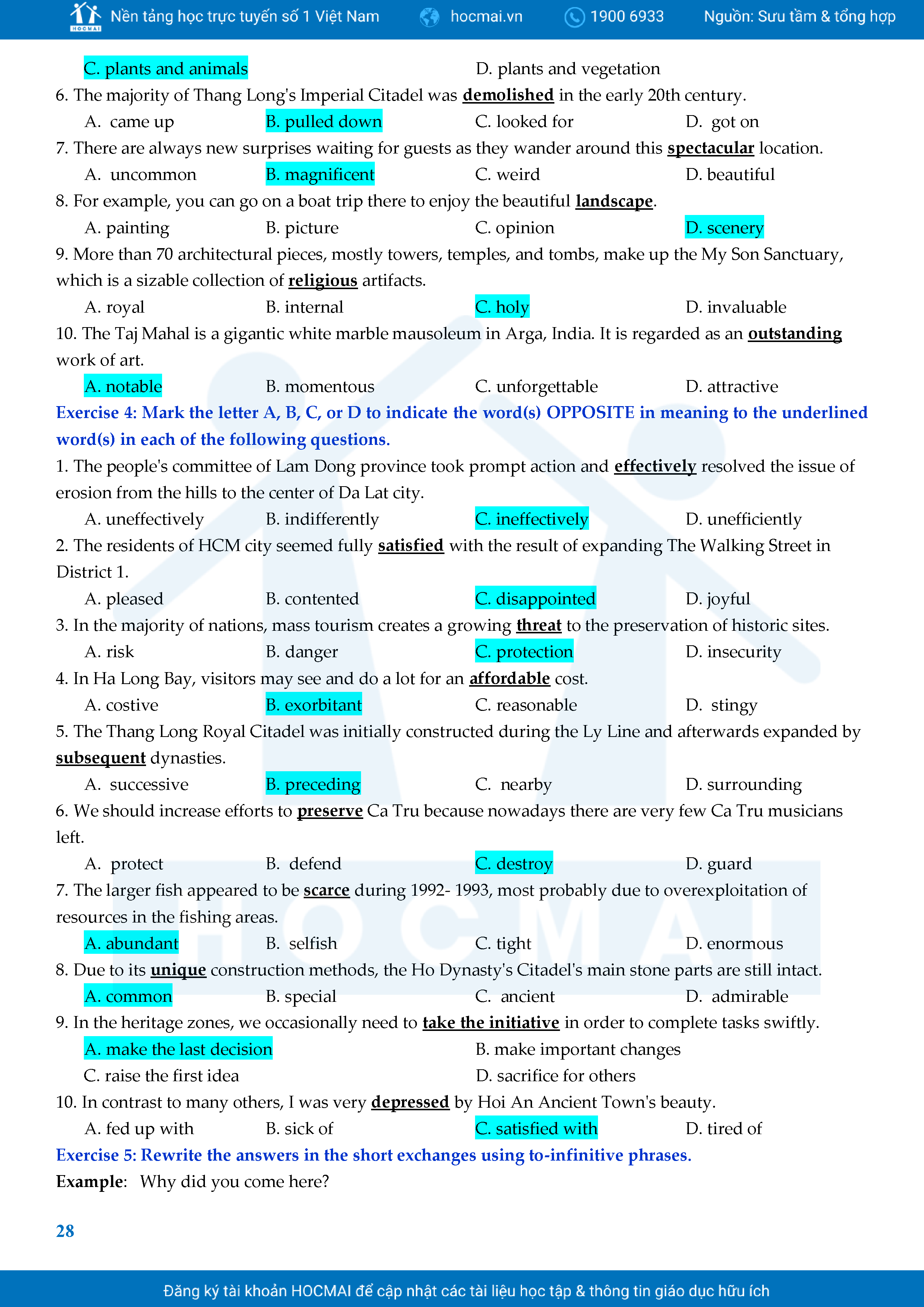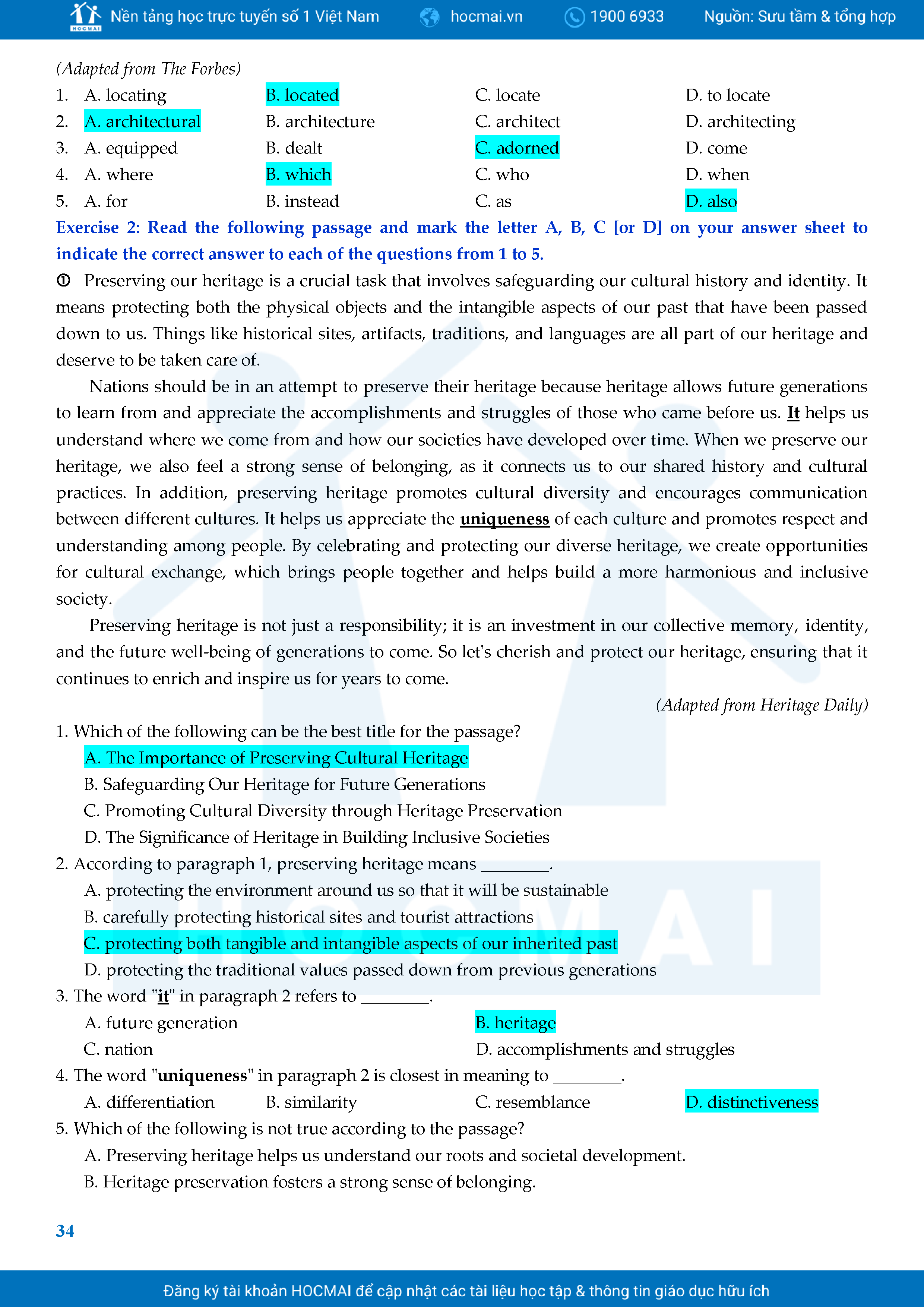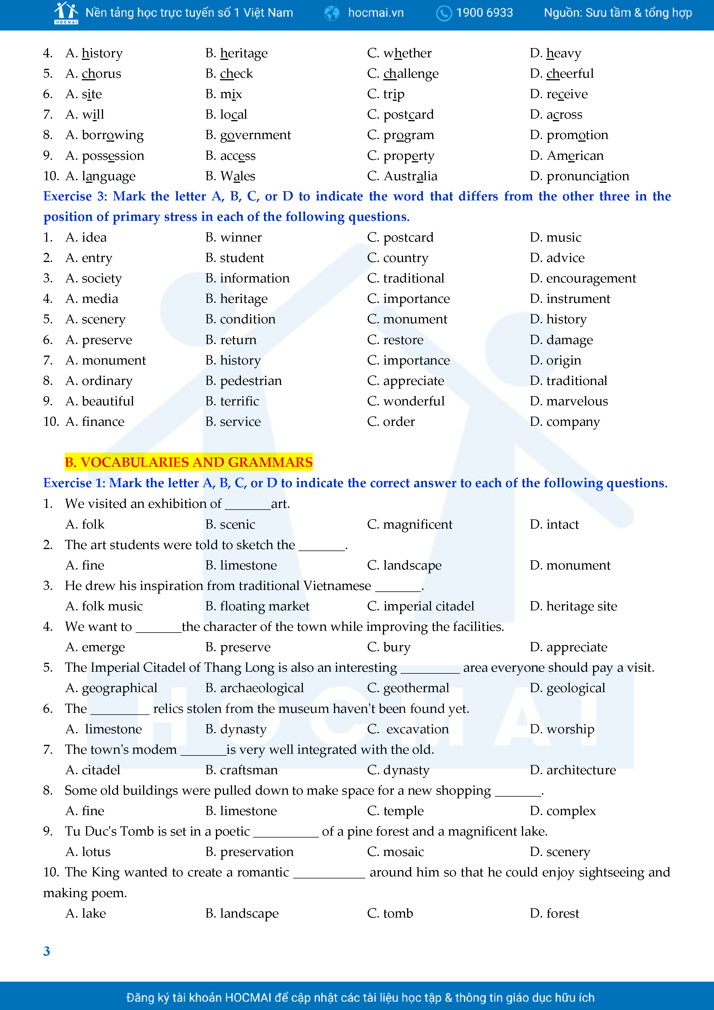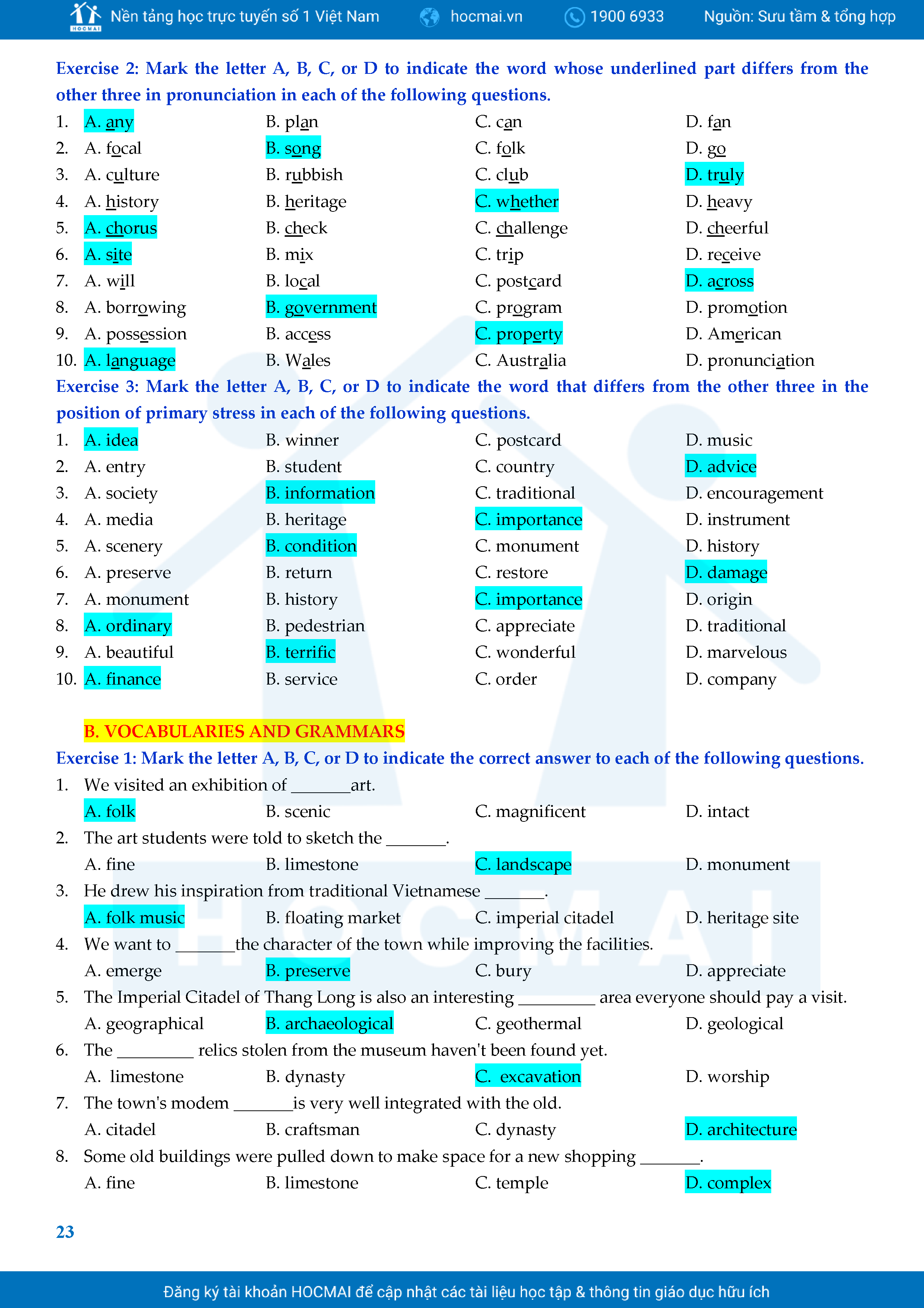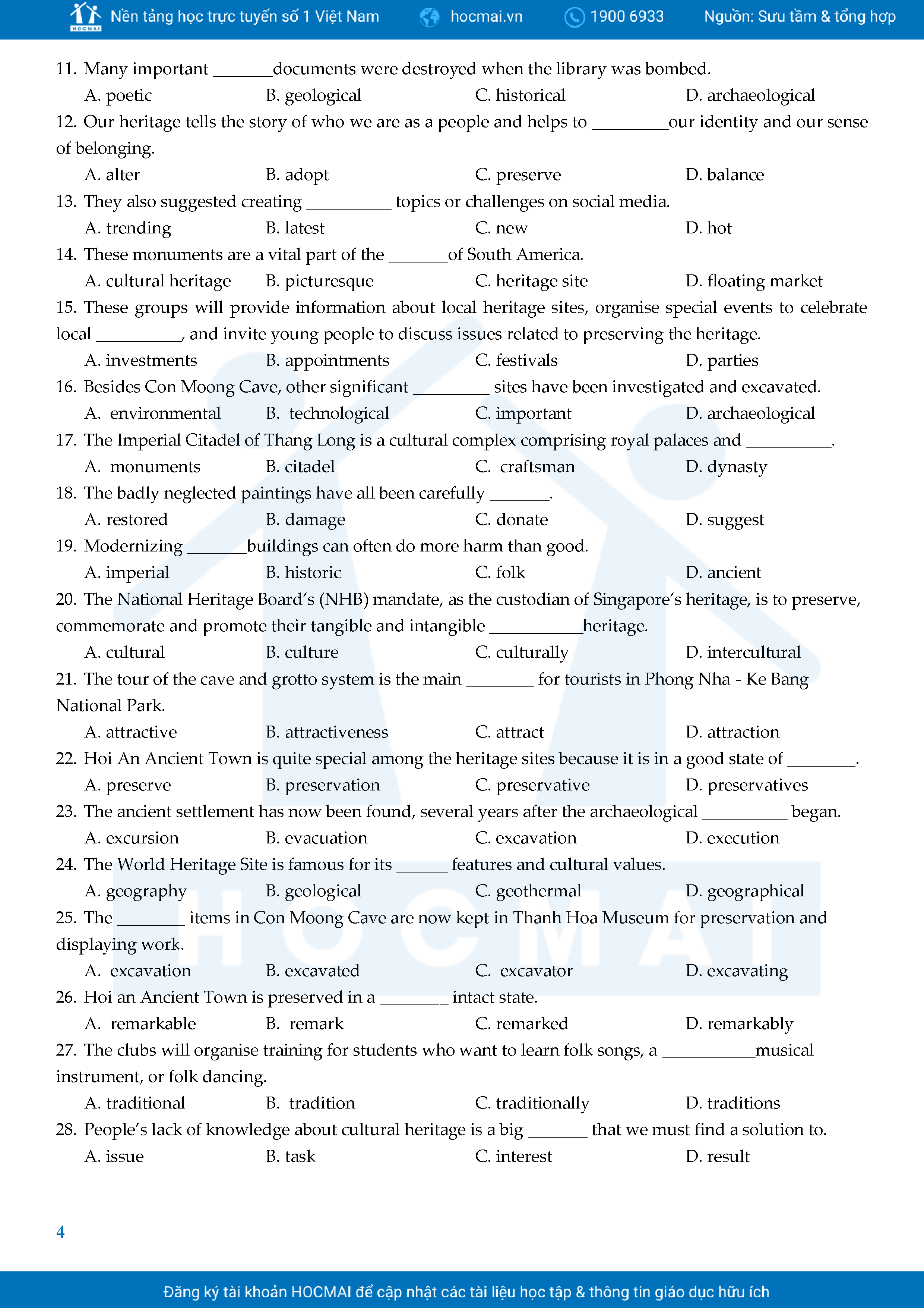 Bài Tập Bổ Trợ Anh 11 Unit 6 Preserving Our Heritage