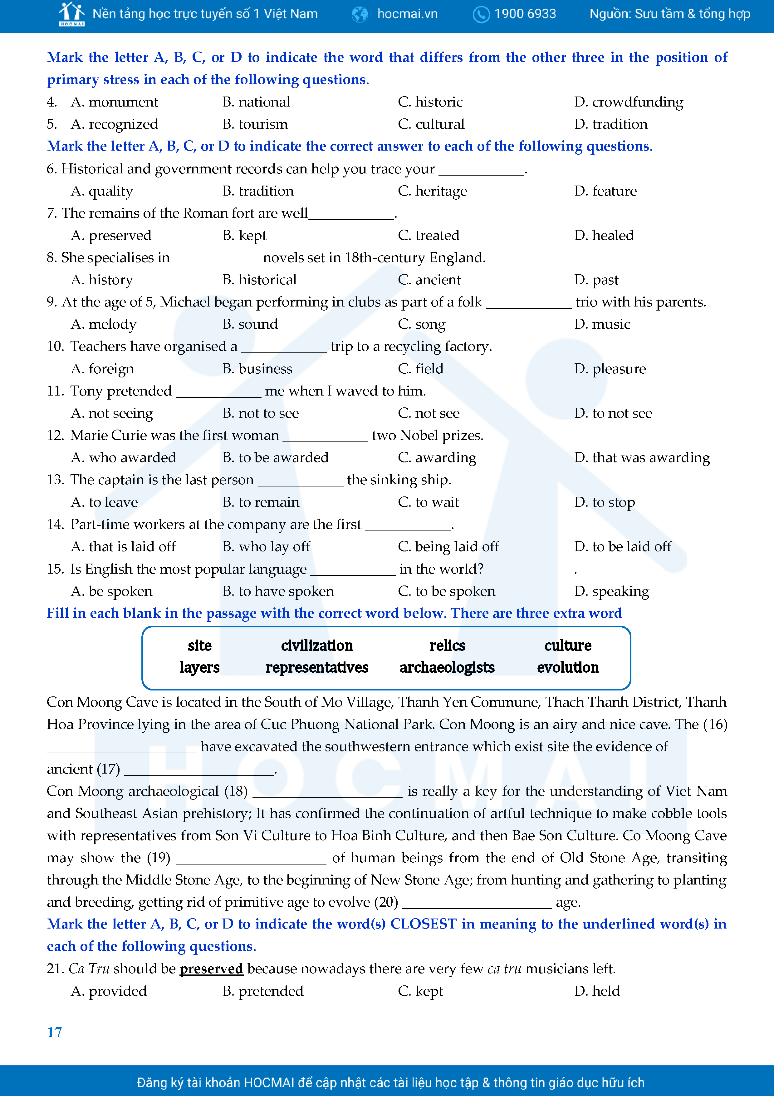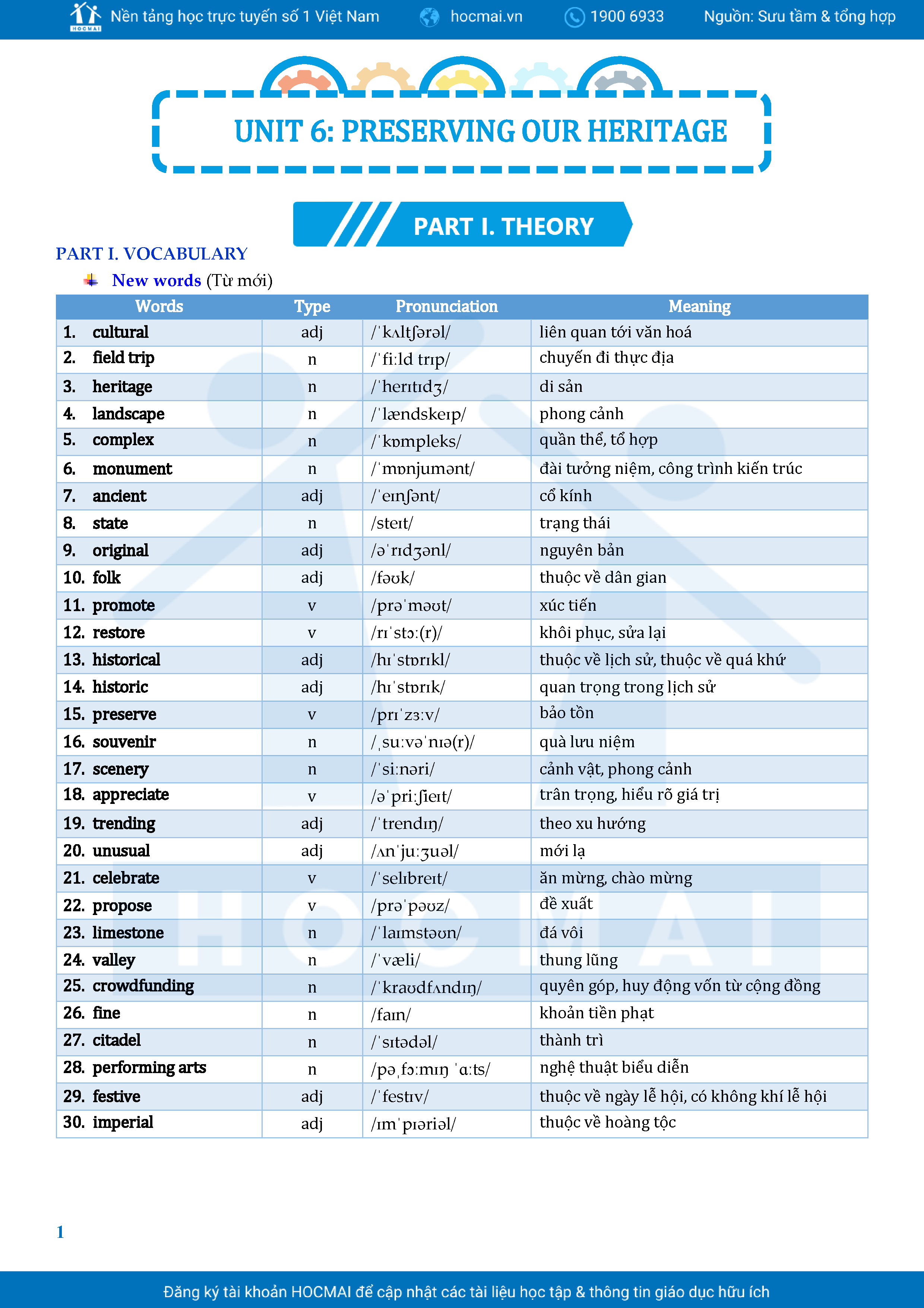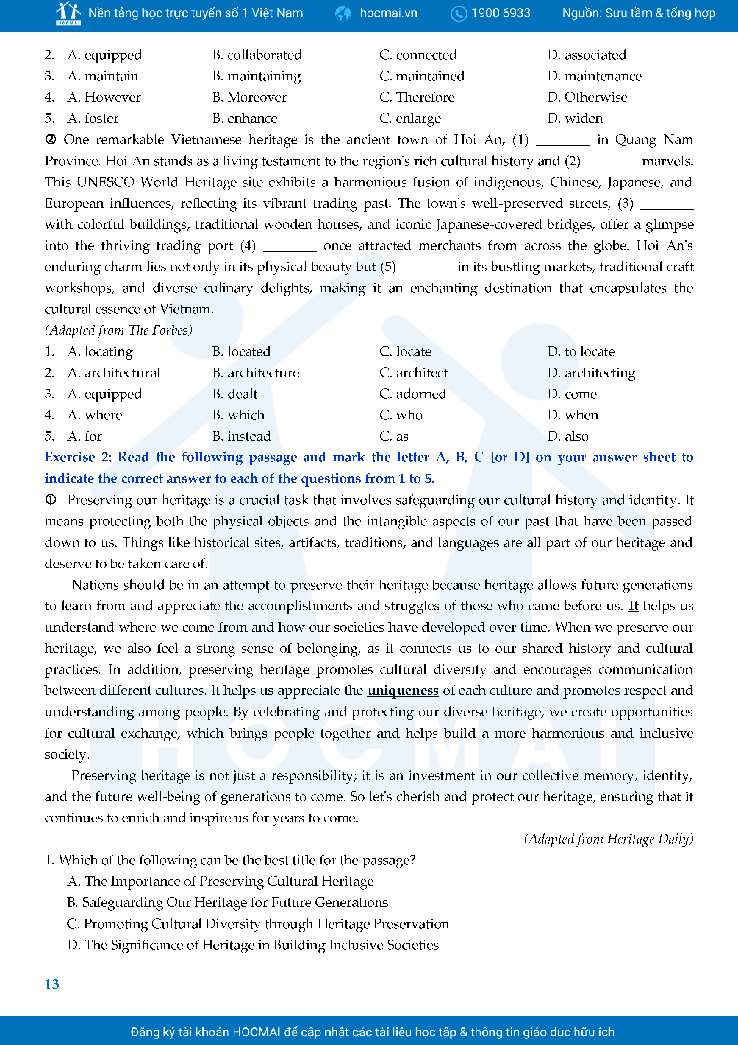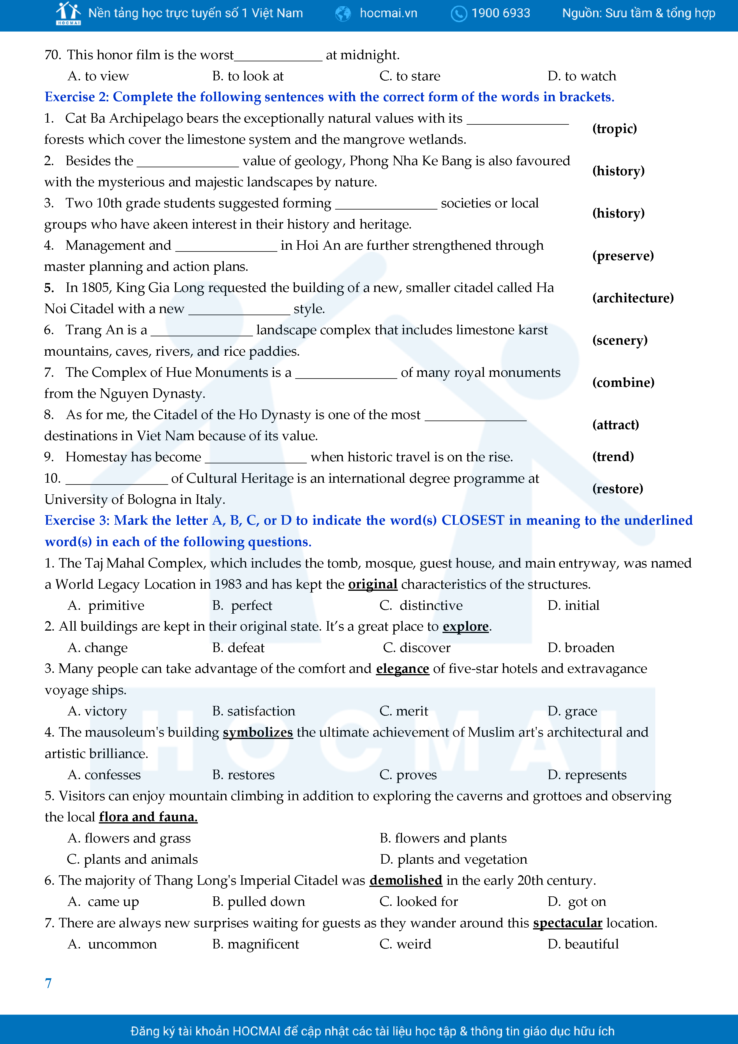Bài Tập Bổ Trợ Anh 11 Unit 6 Preserving Our Heritage