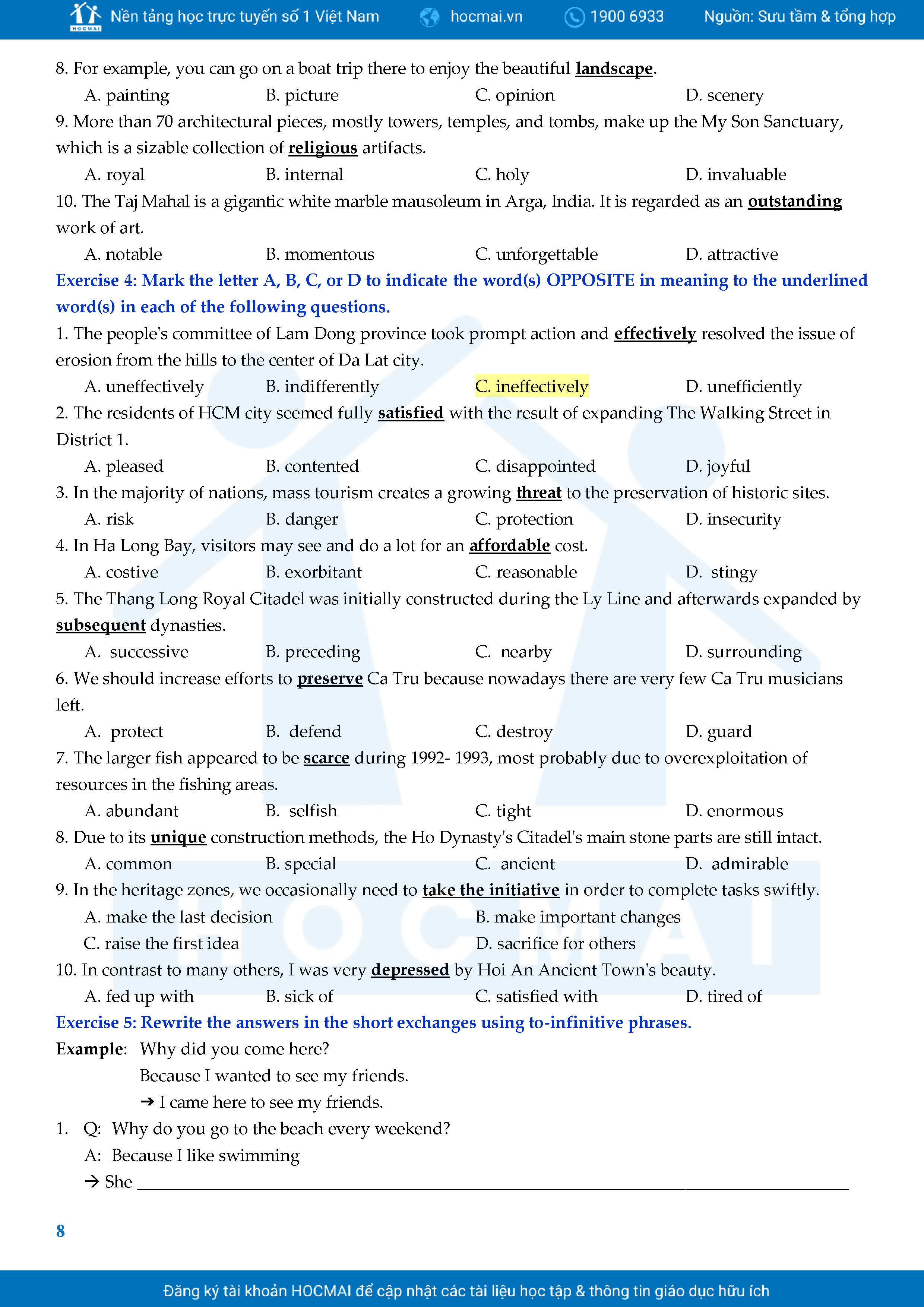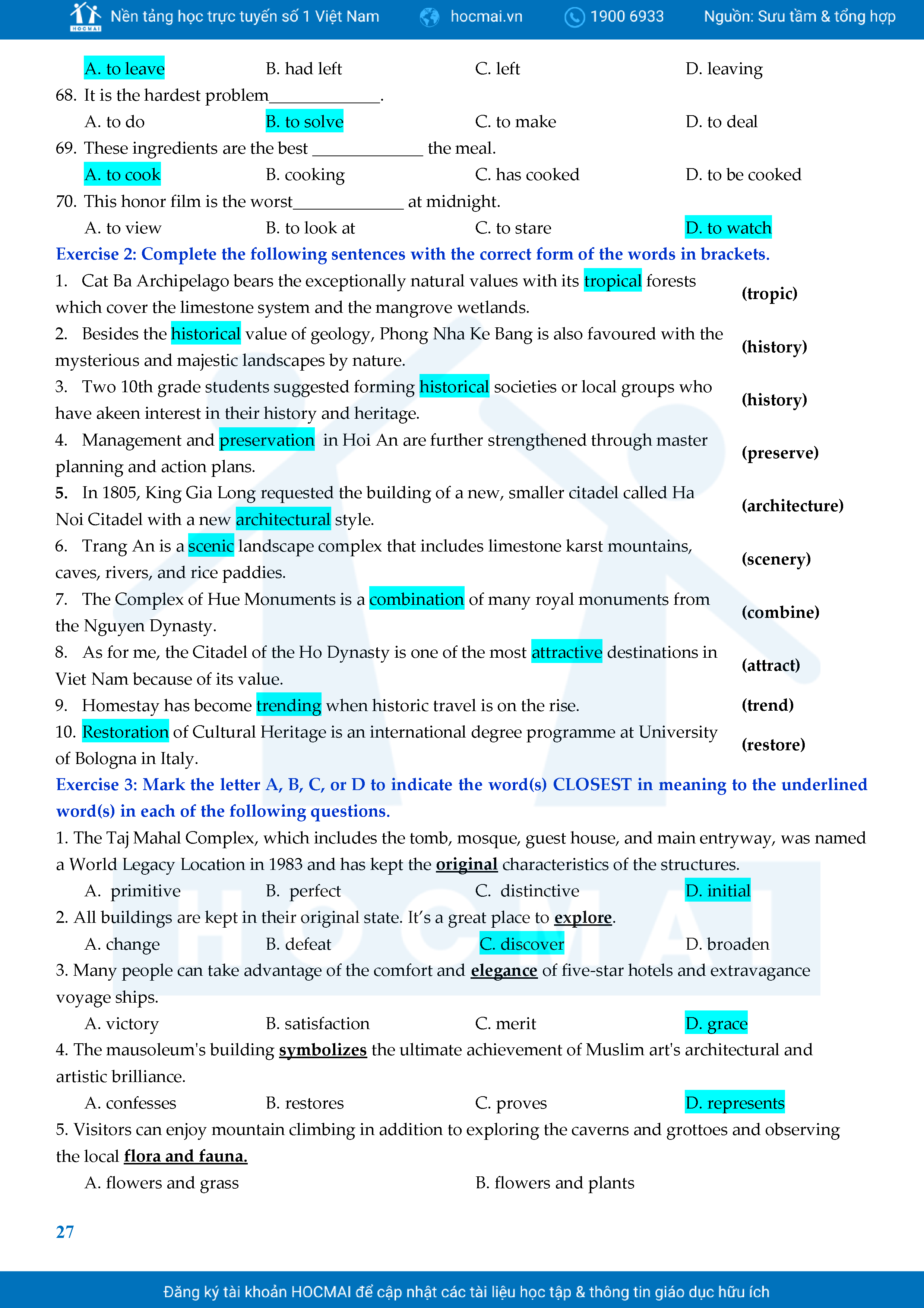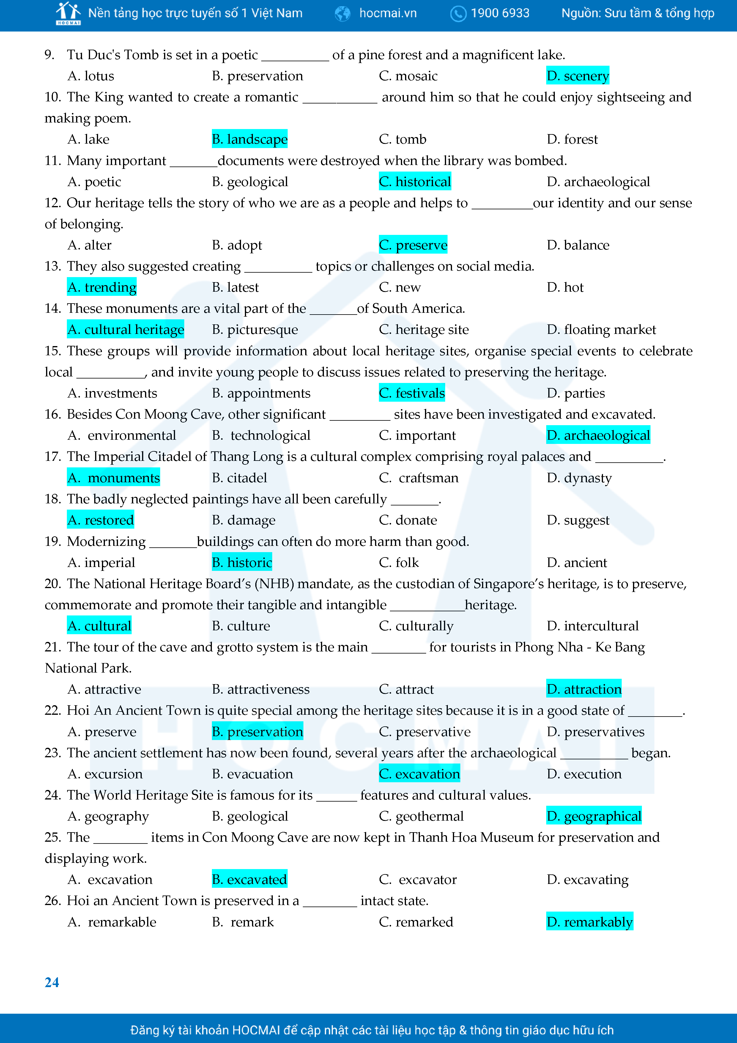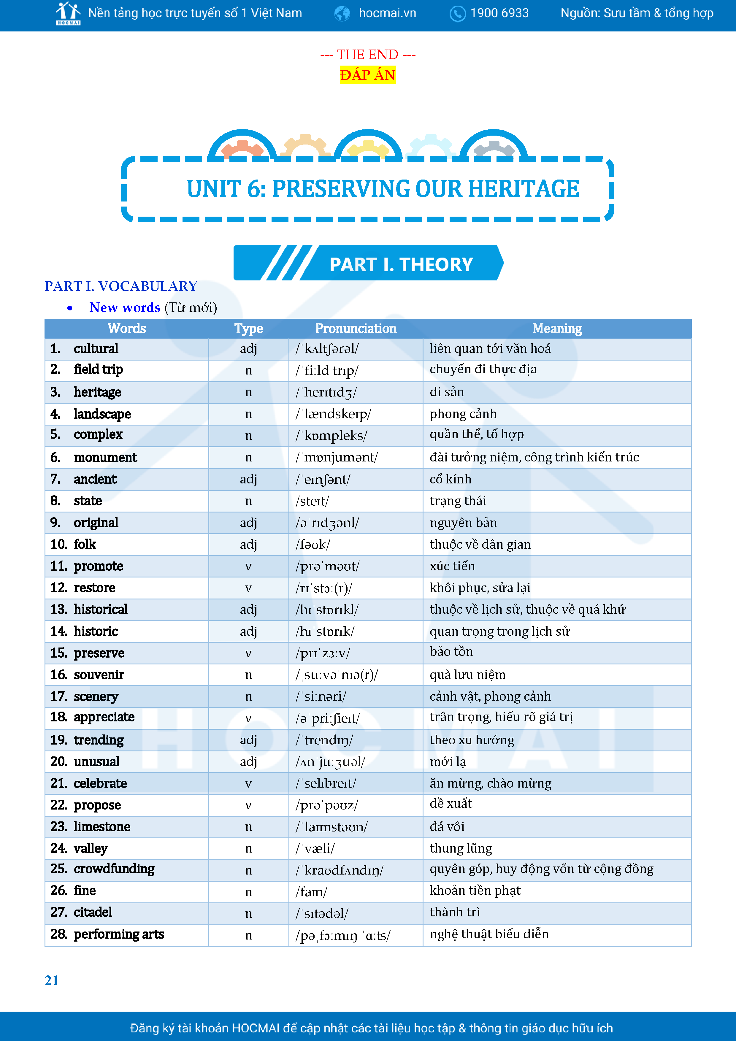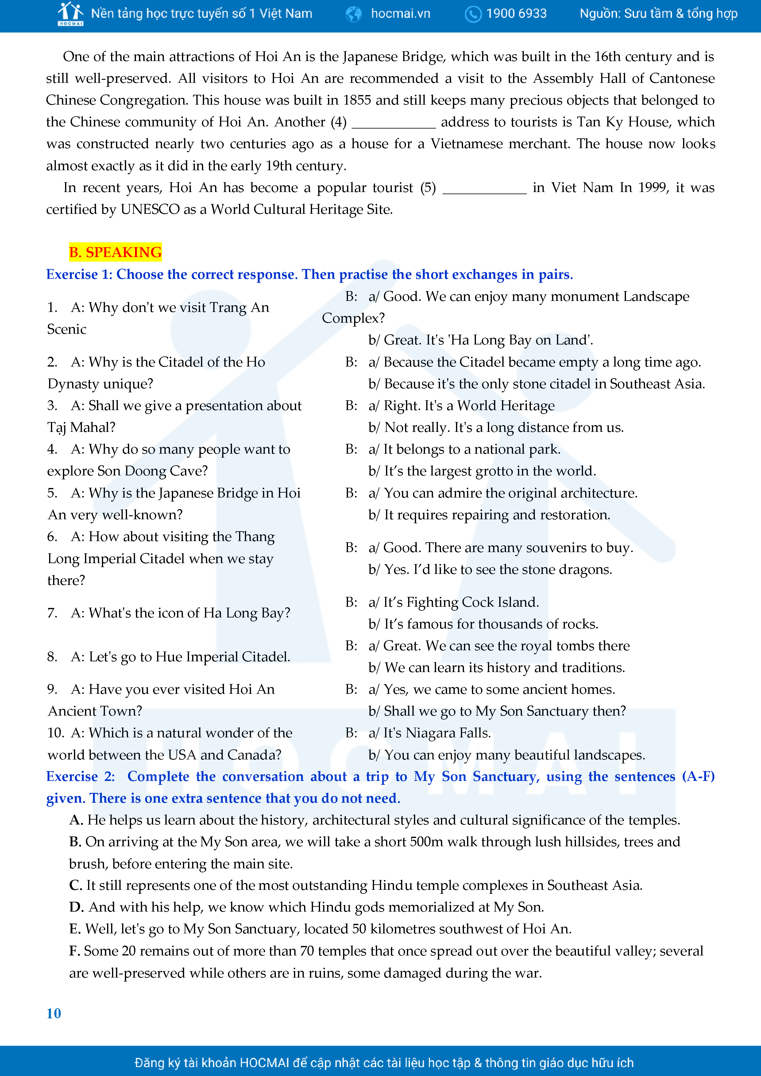 Bài Tập Bổ Trợ Anh 11 Unit 6 Preserving Our Heritage