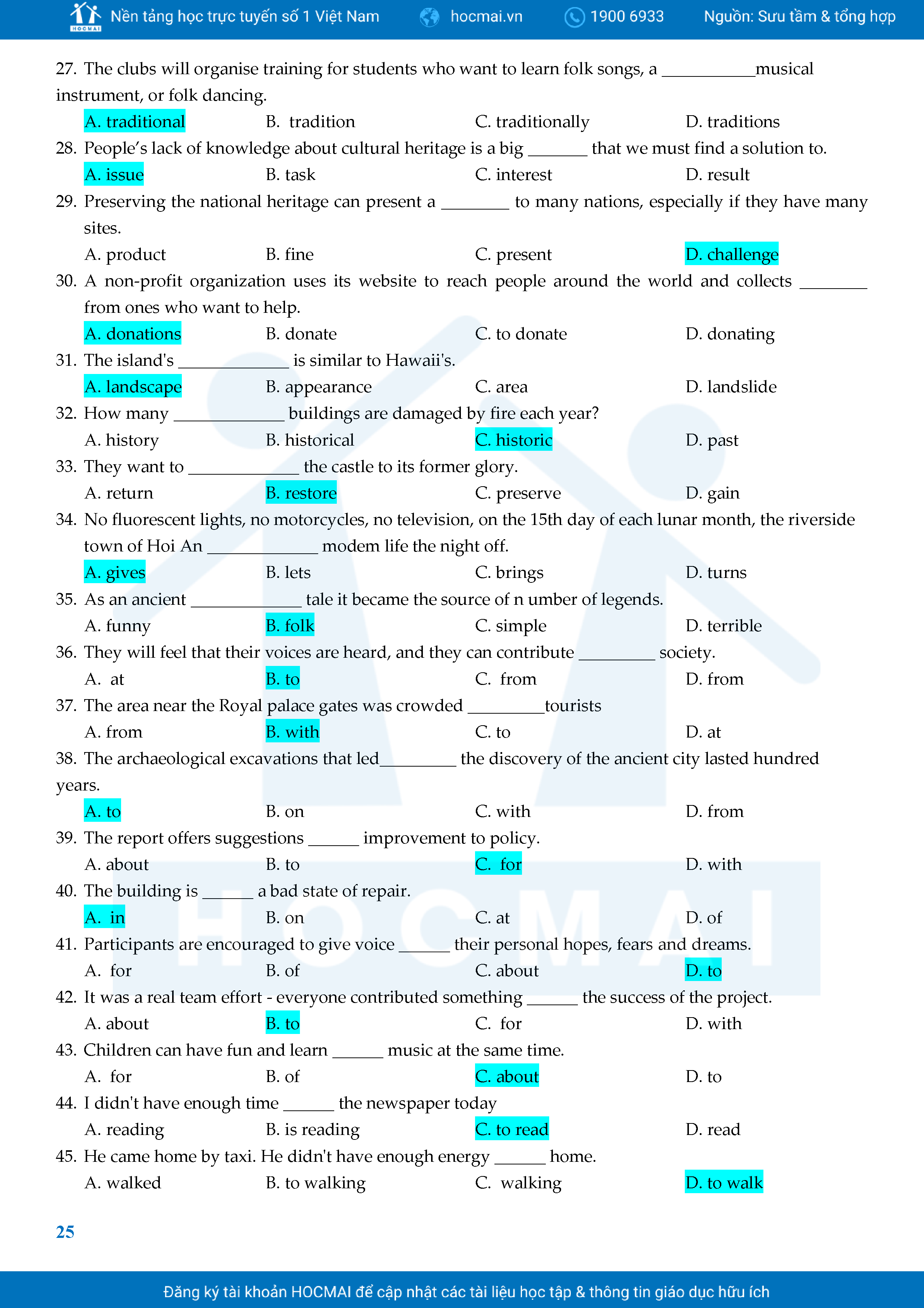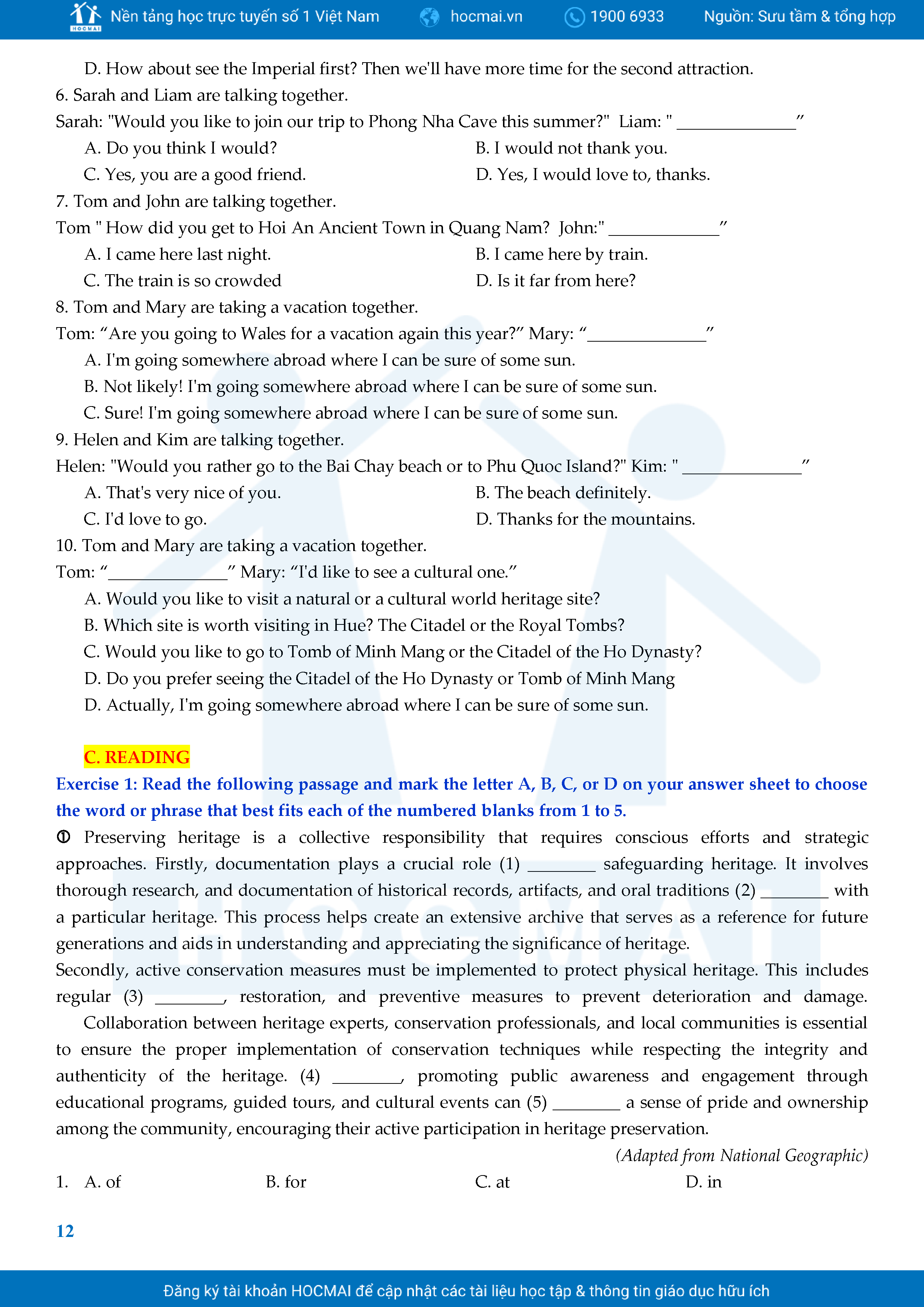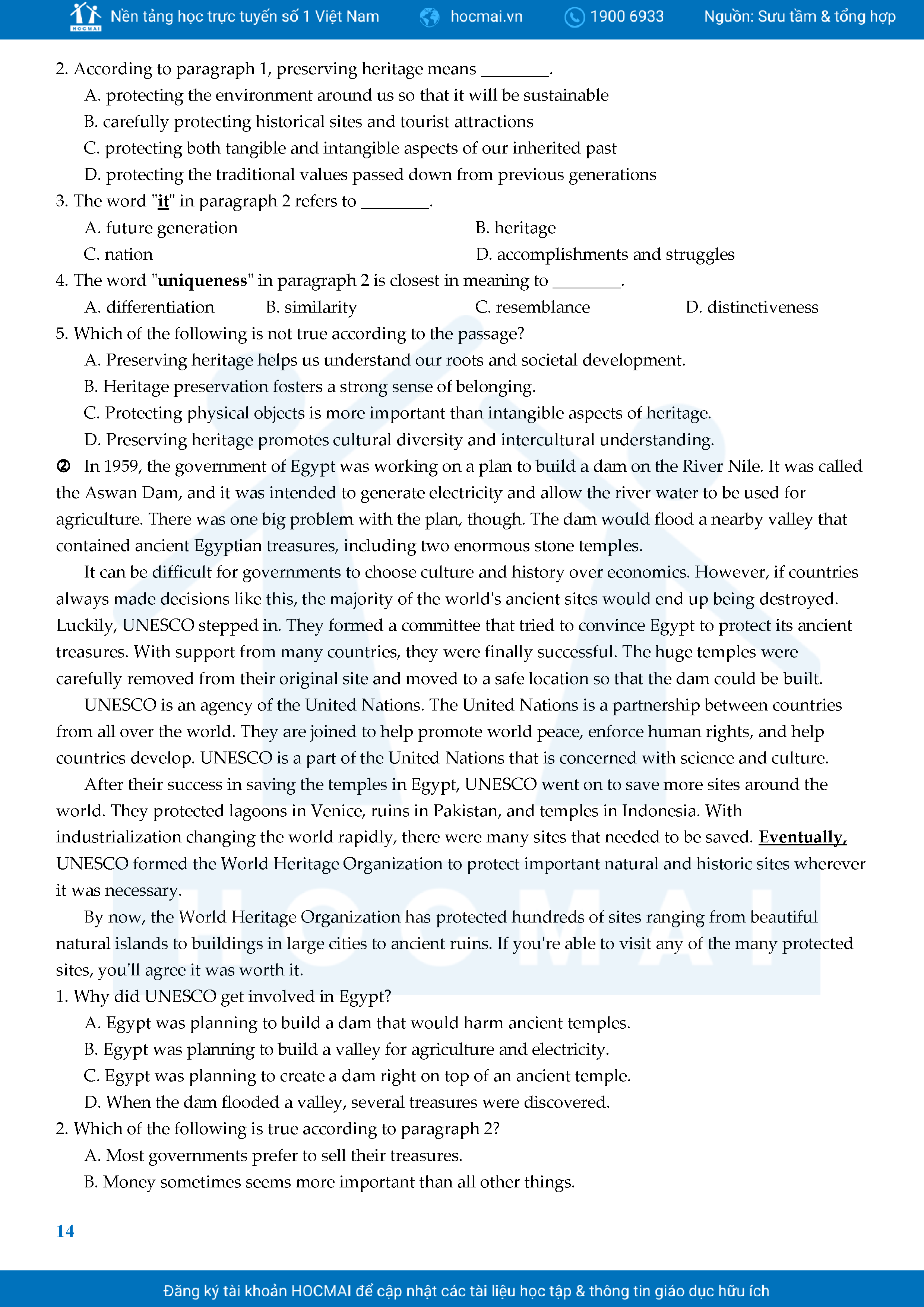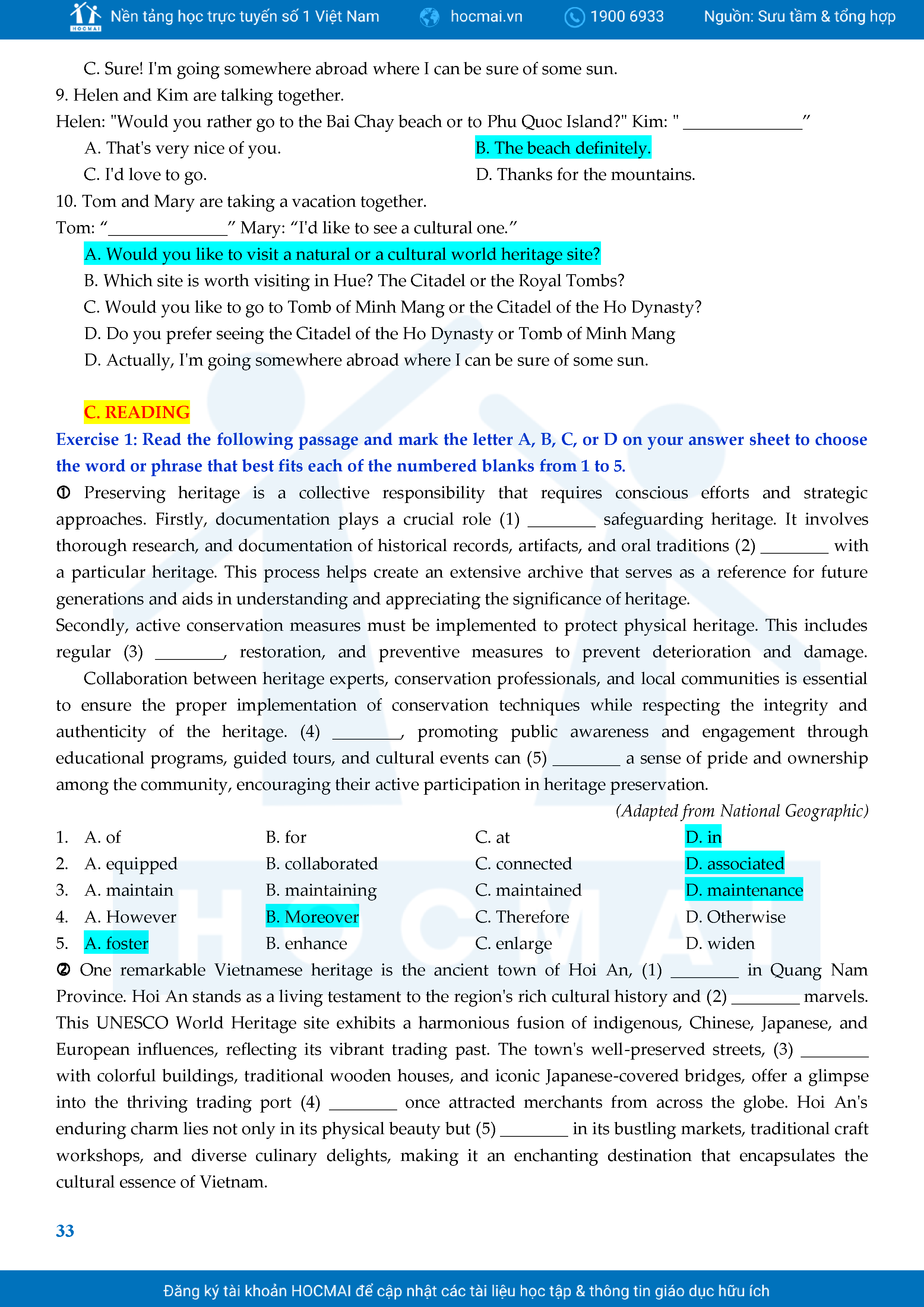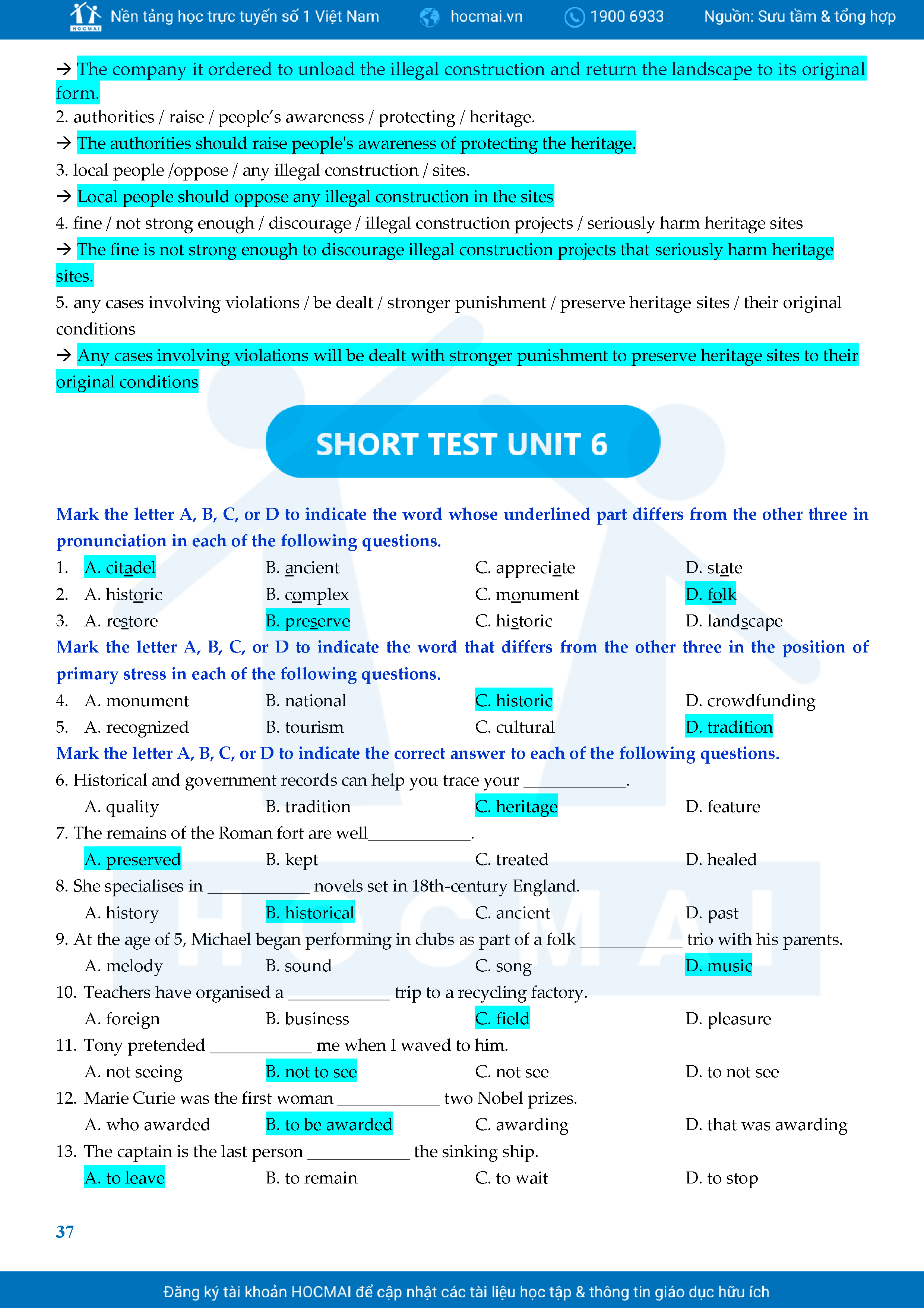 Bài Tập Bổ Trợ Anh 11 Unit 6 Preserving Our Heritage