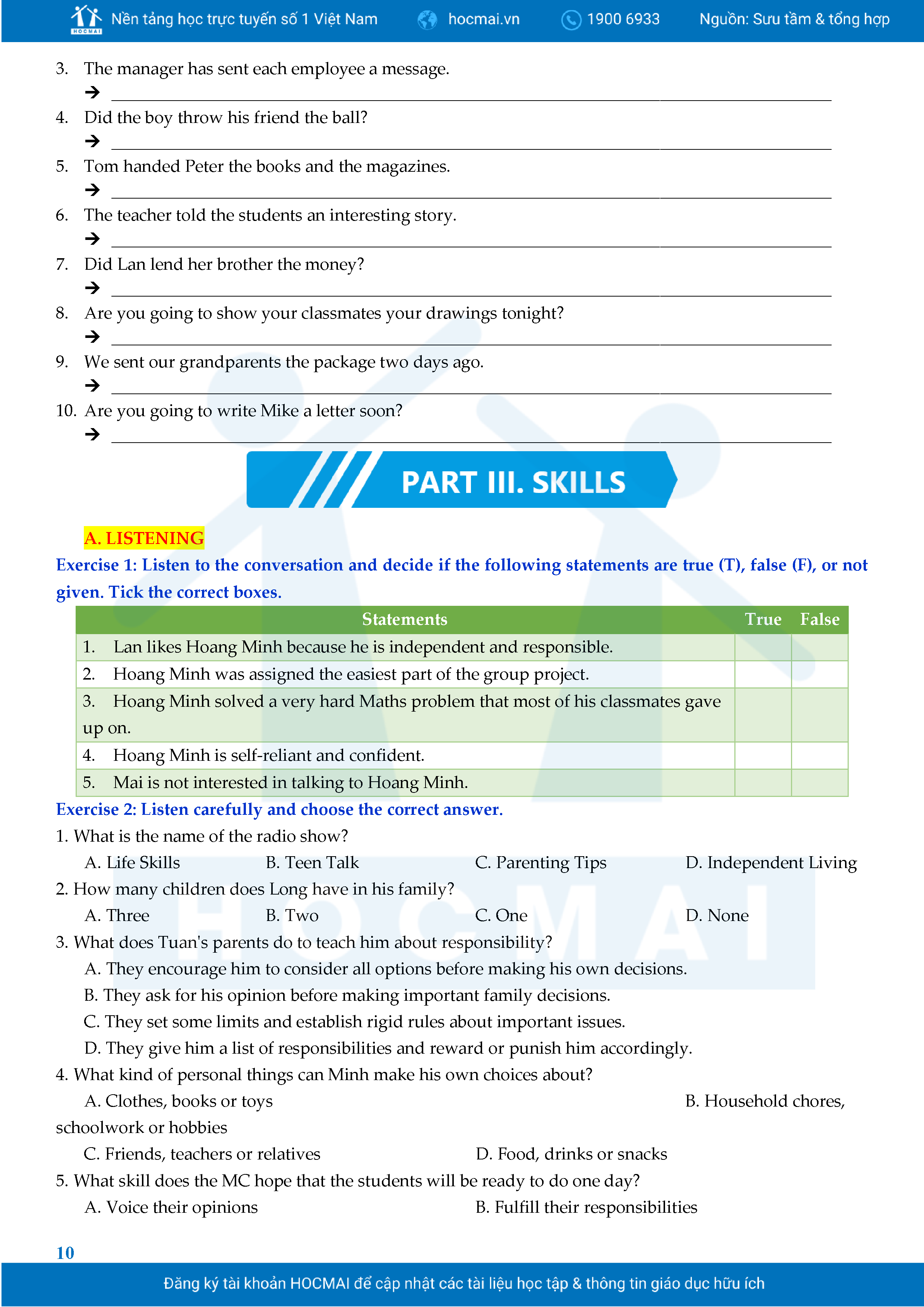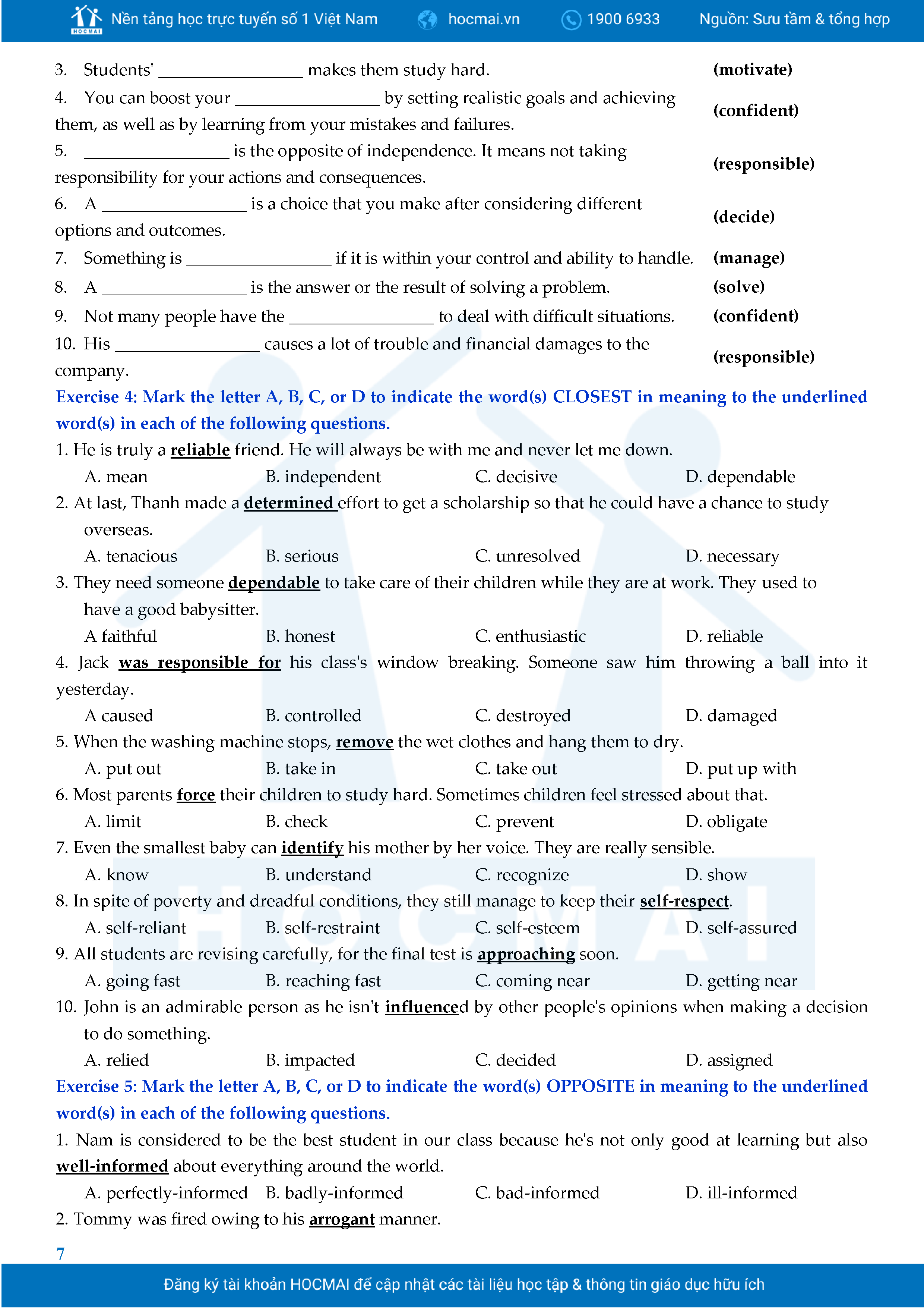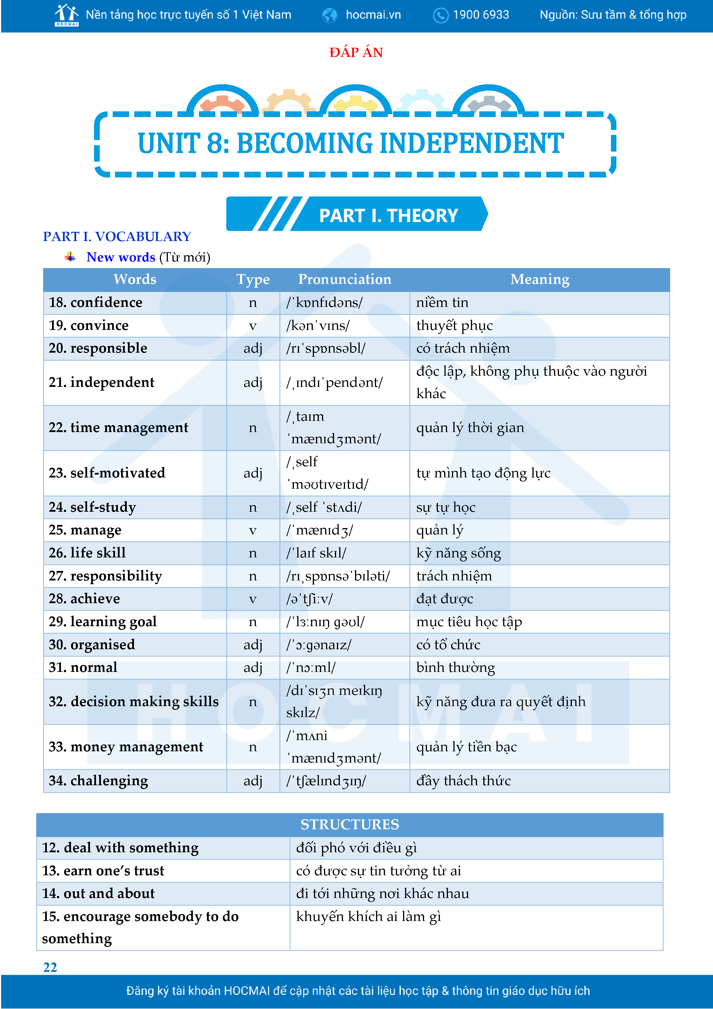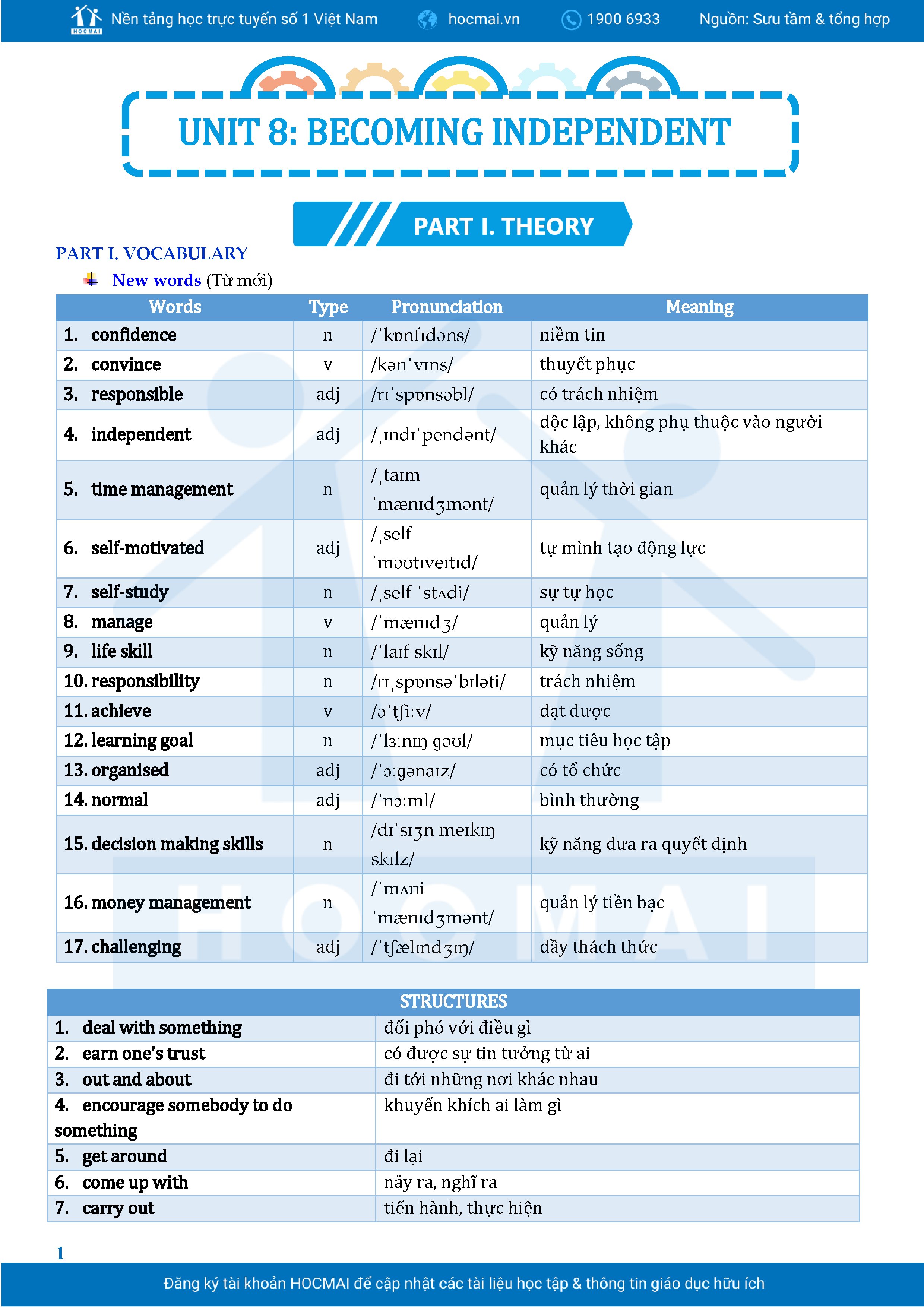 Bài Tập Bổ Trợ Anh 11 Unit 8 Becoming Independent