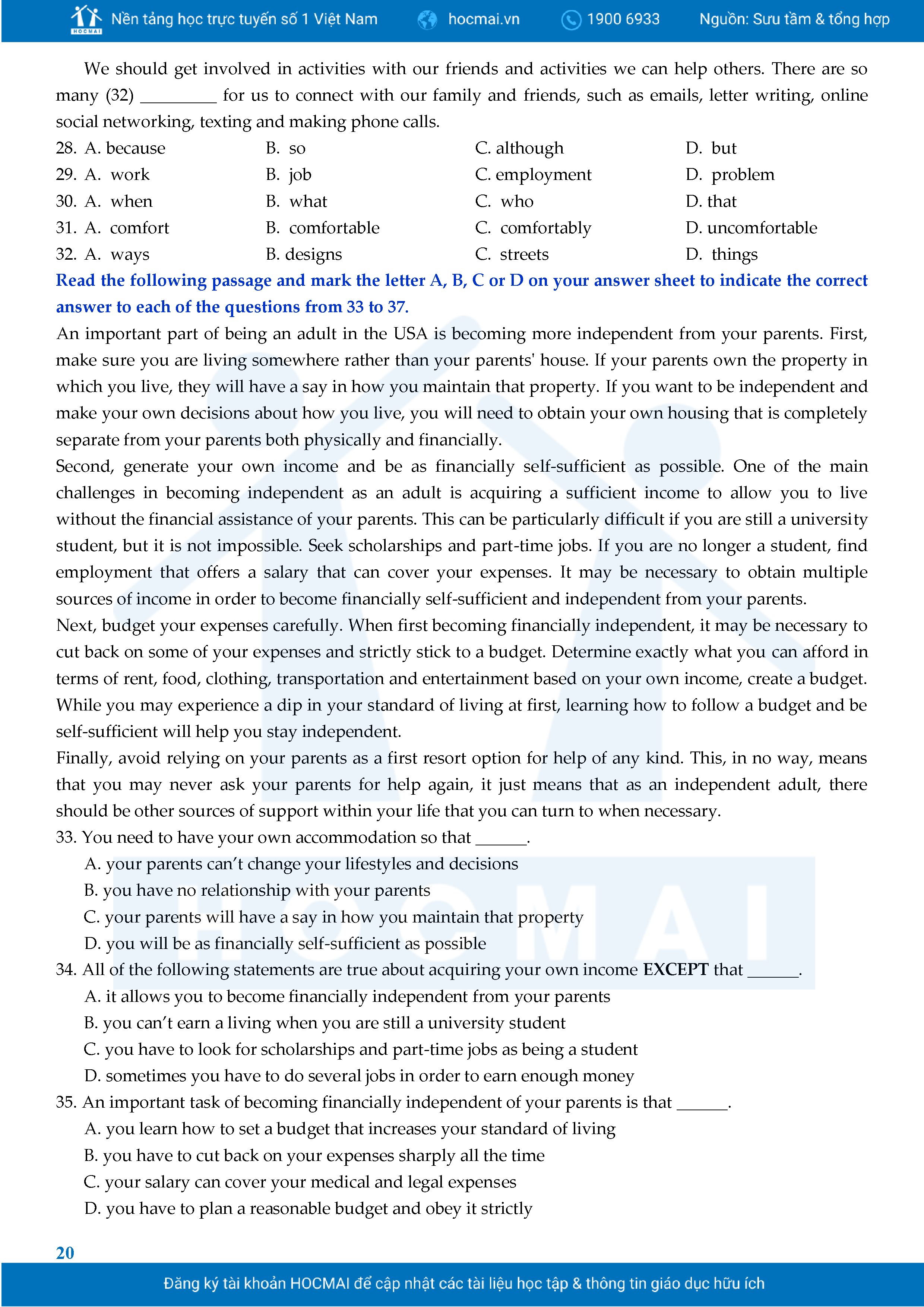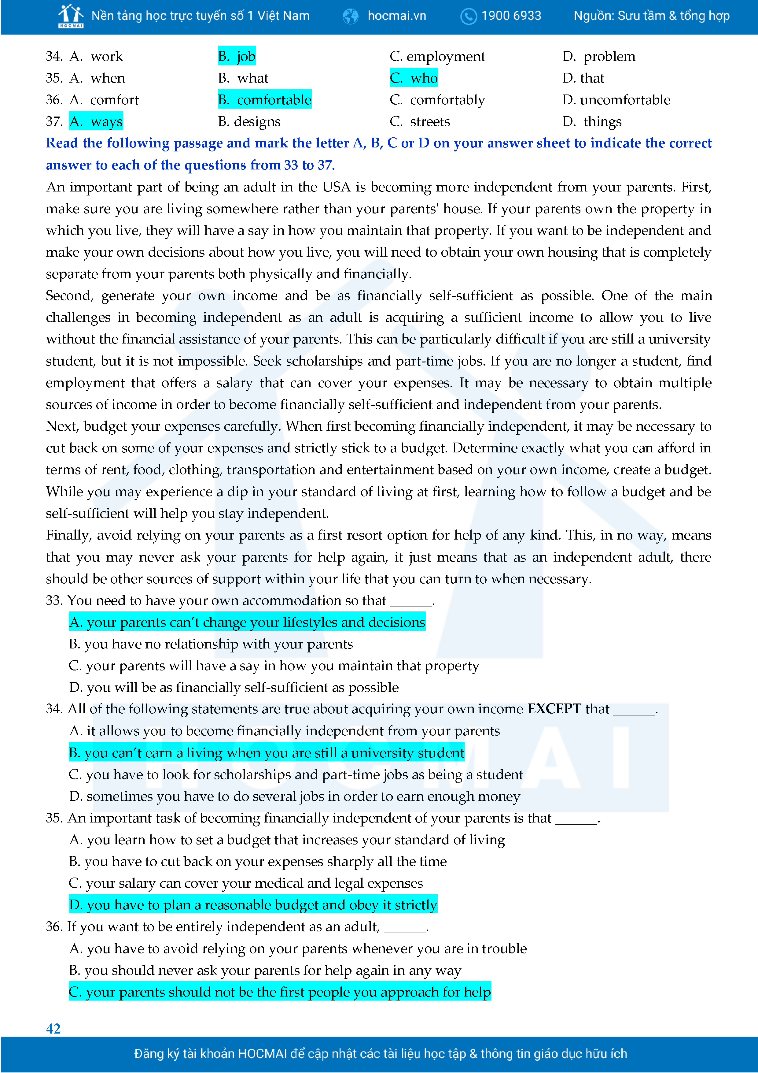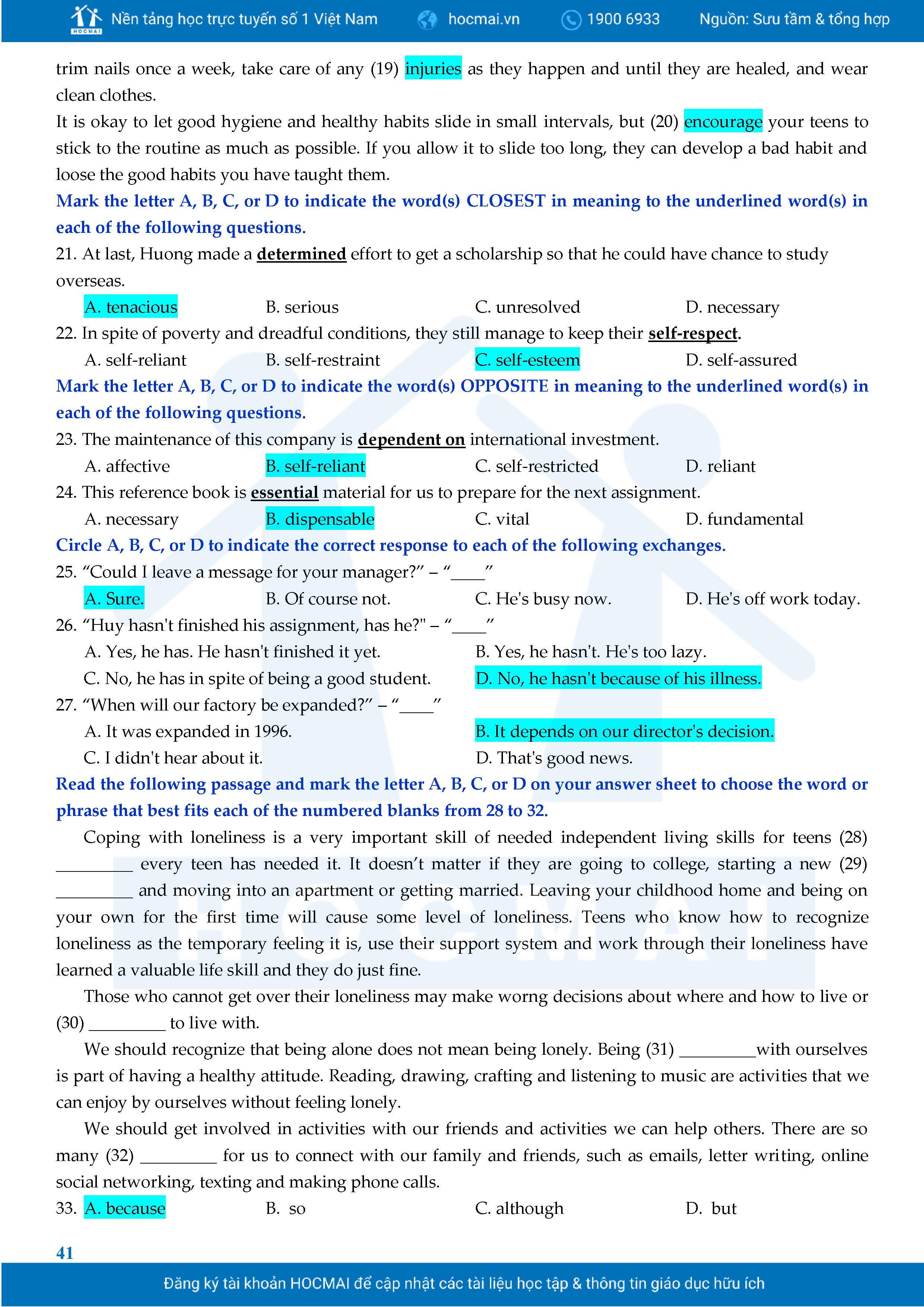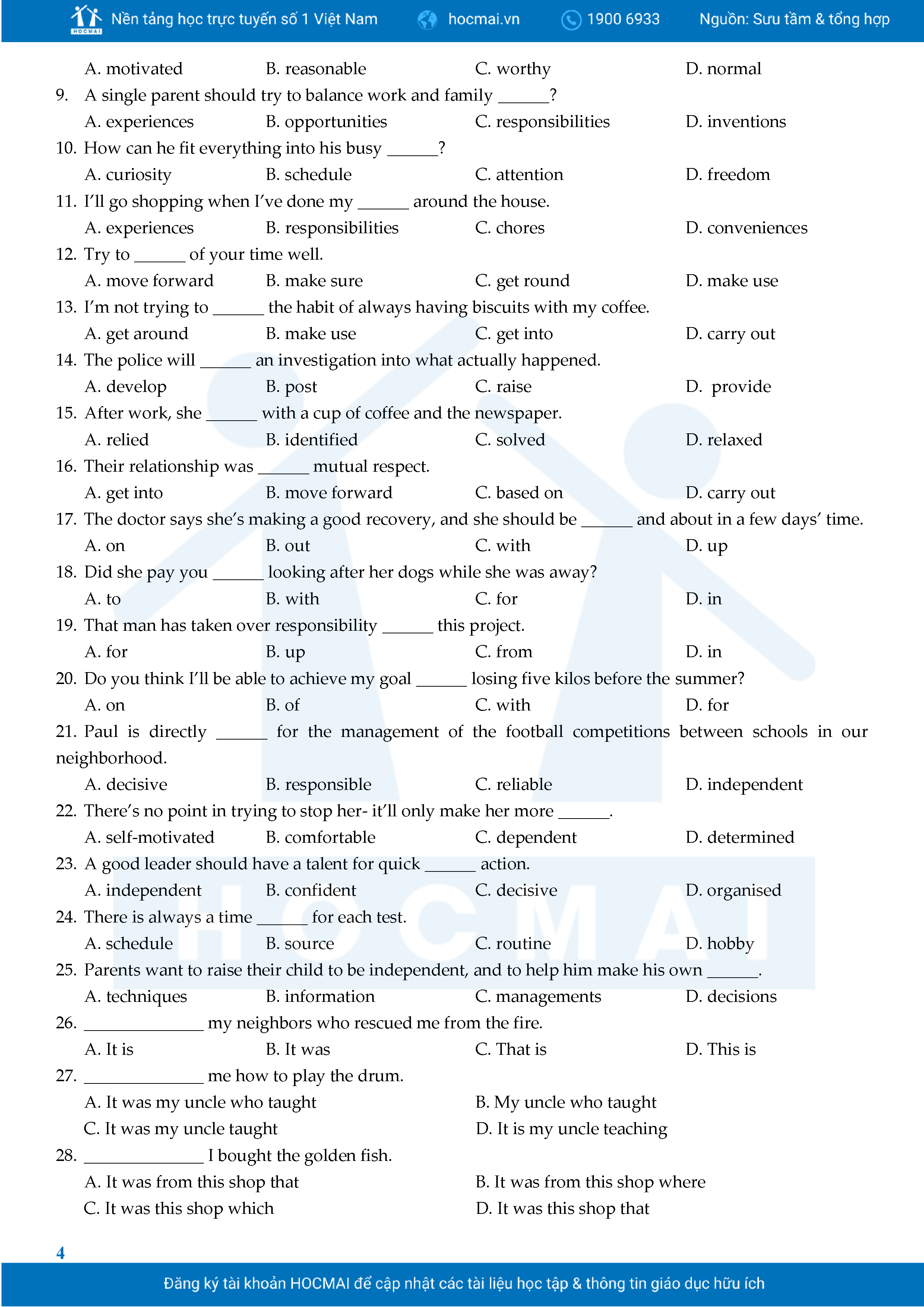 Bài Tập Bổ Trợ Anh 11 Unit 8 Becoming Independent