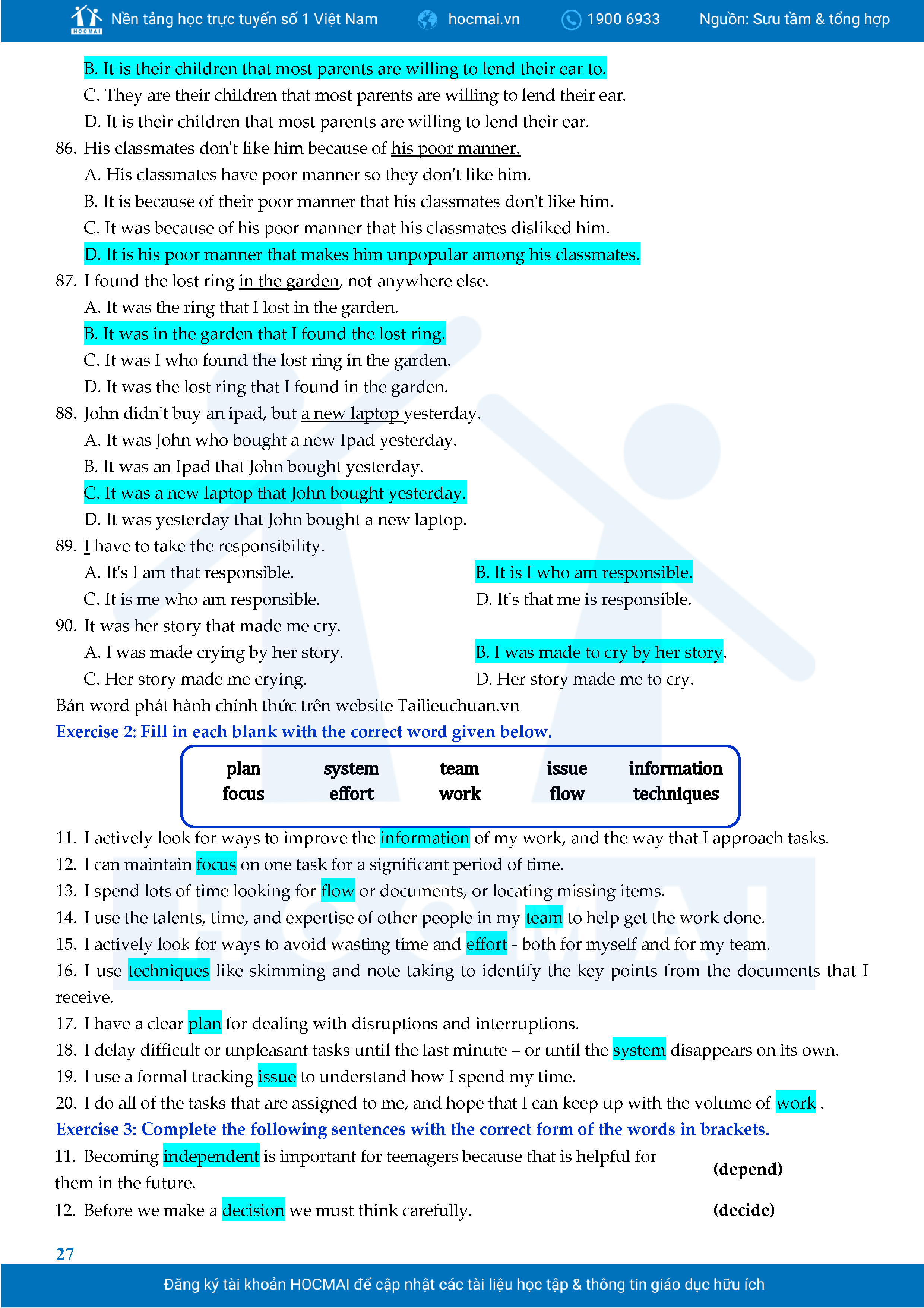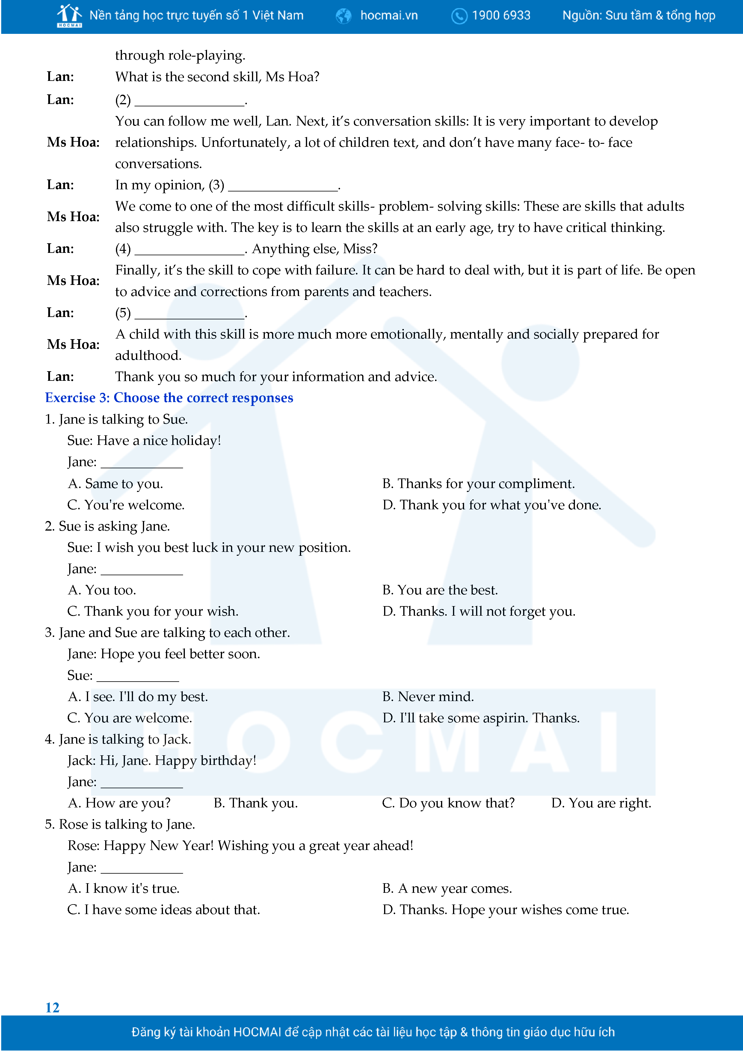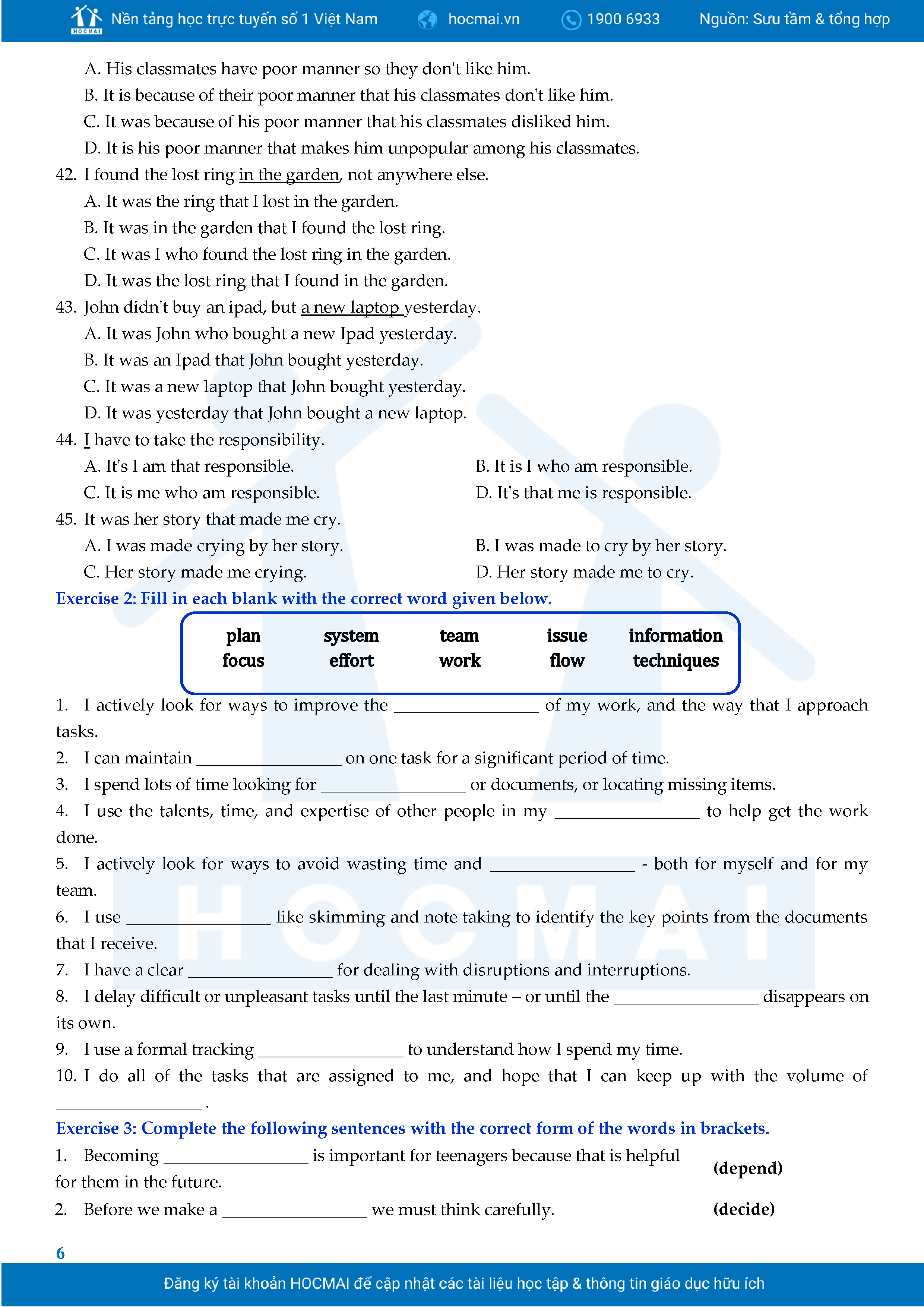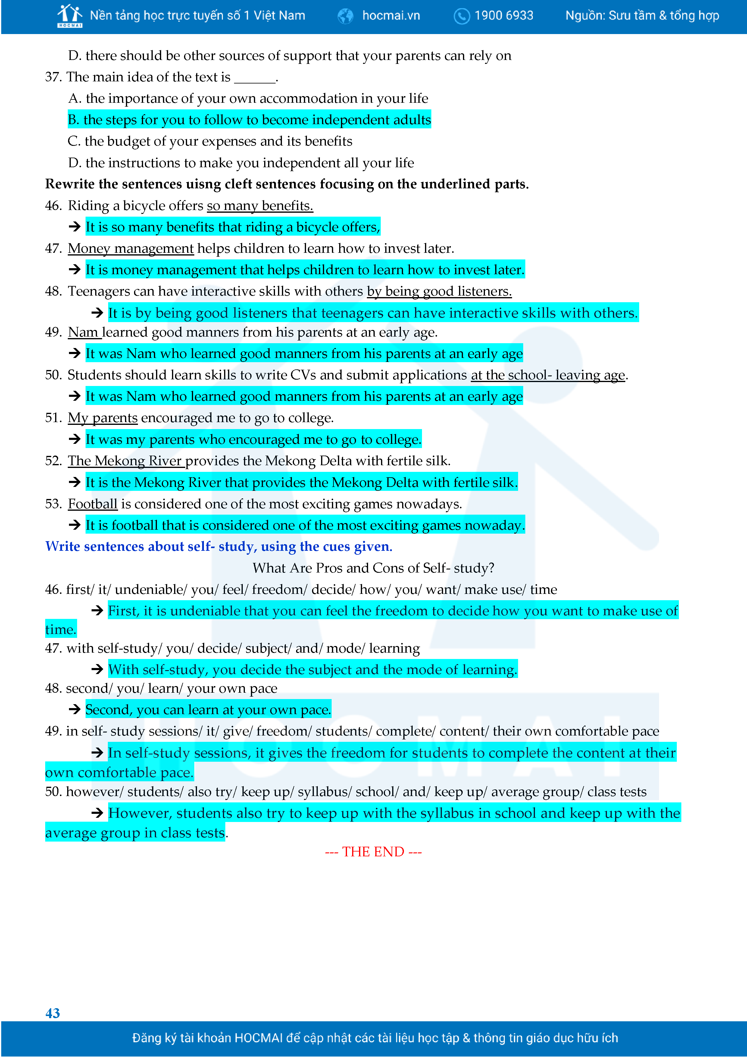 Bài Tập Bổ Trợ Anh 11 Unit 8 Becoming Independent