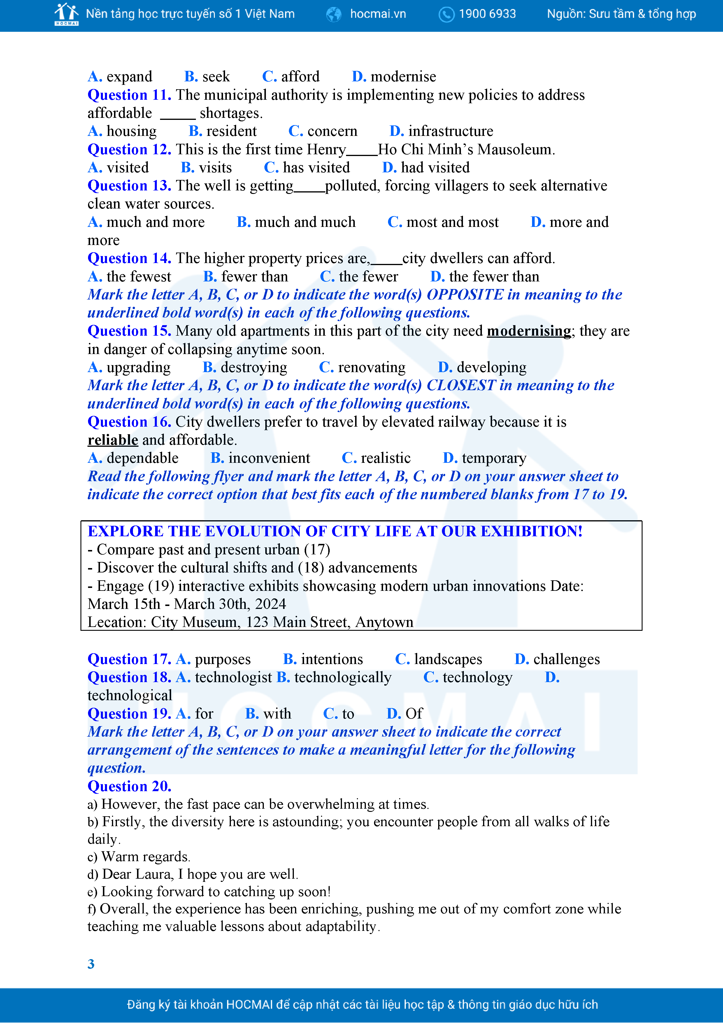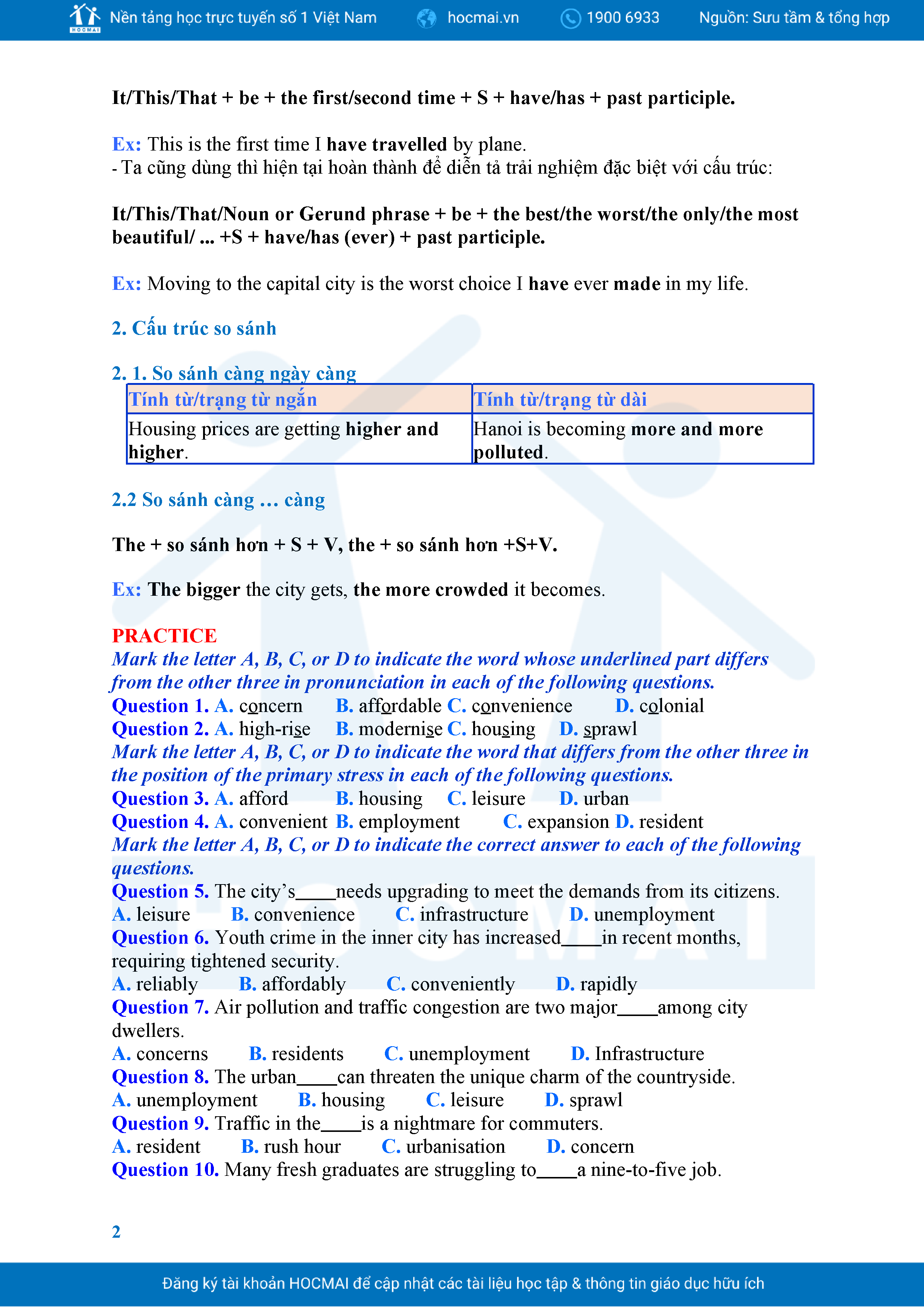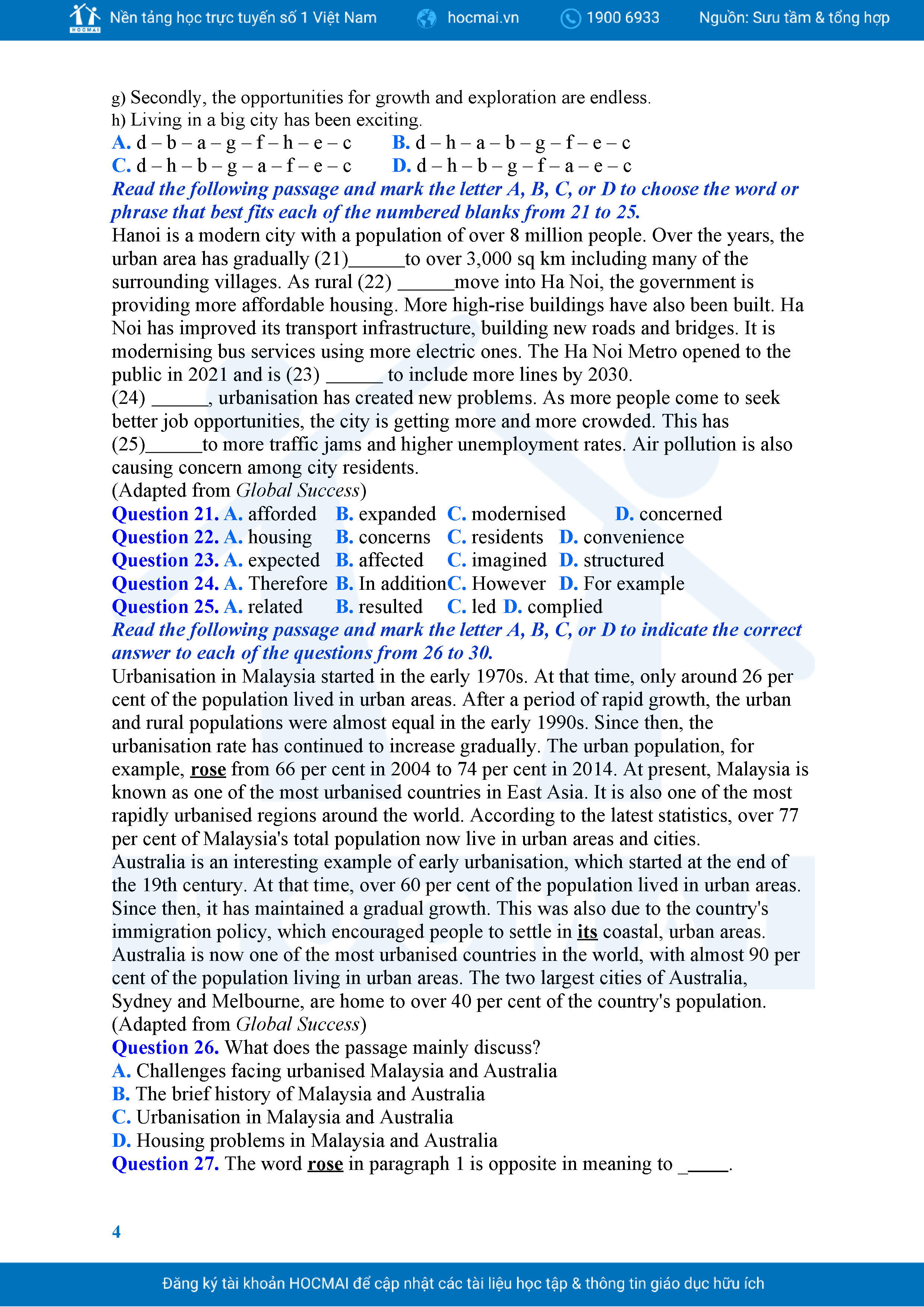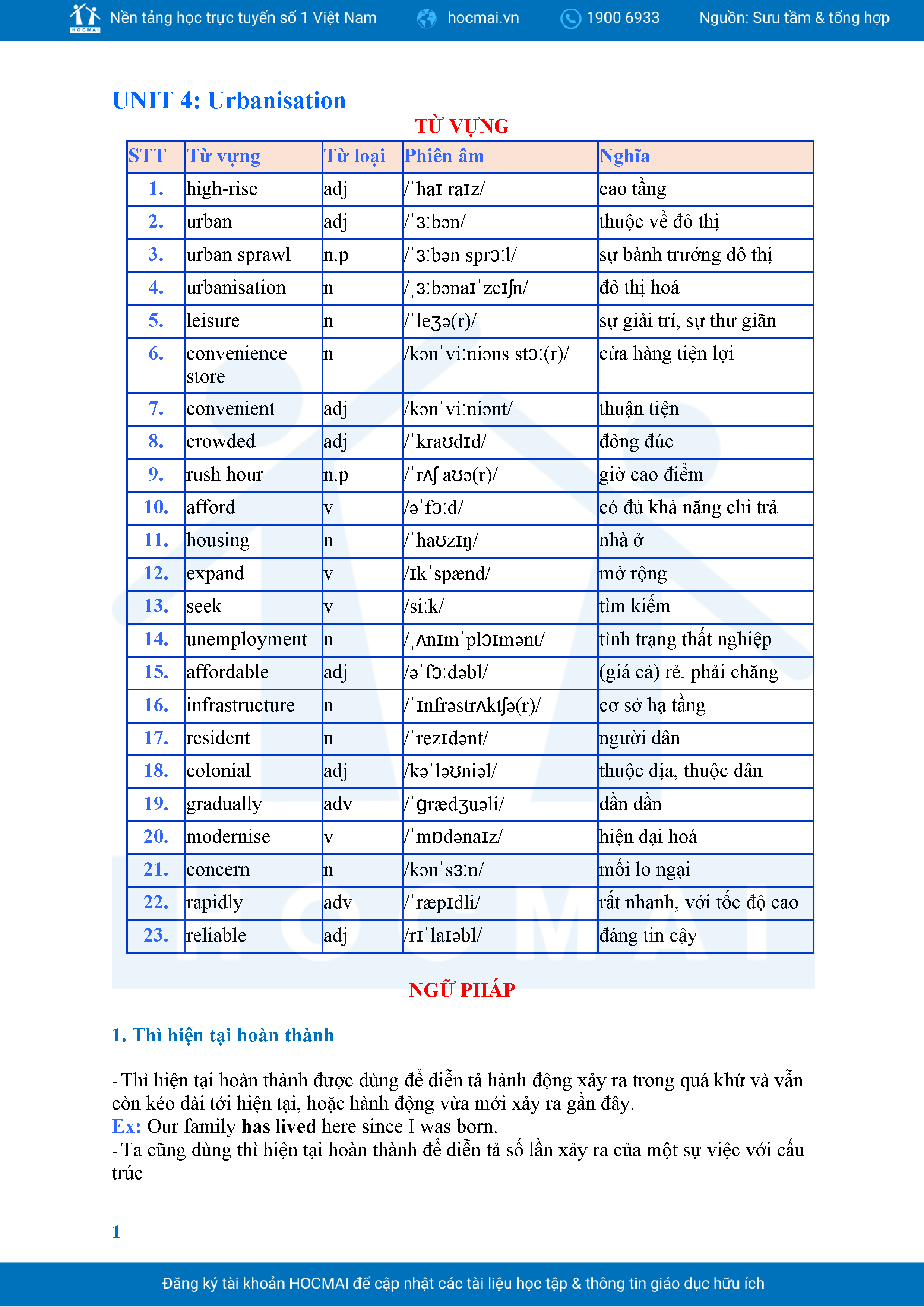 Bài Tập Bổ Trợ Tiếng Anh 12 Unit 4 Urbanisation