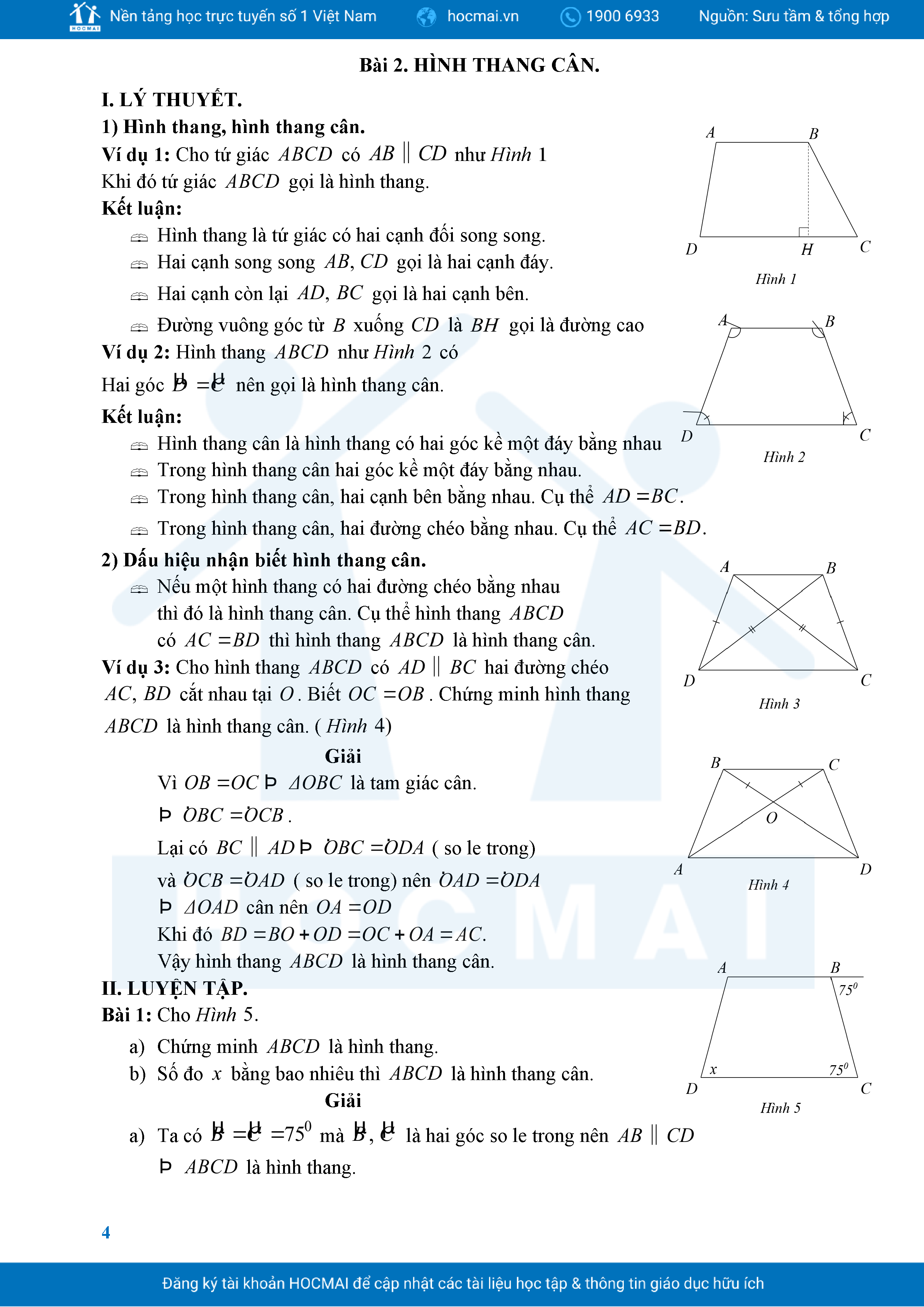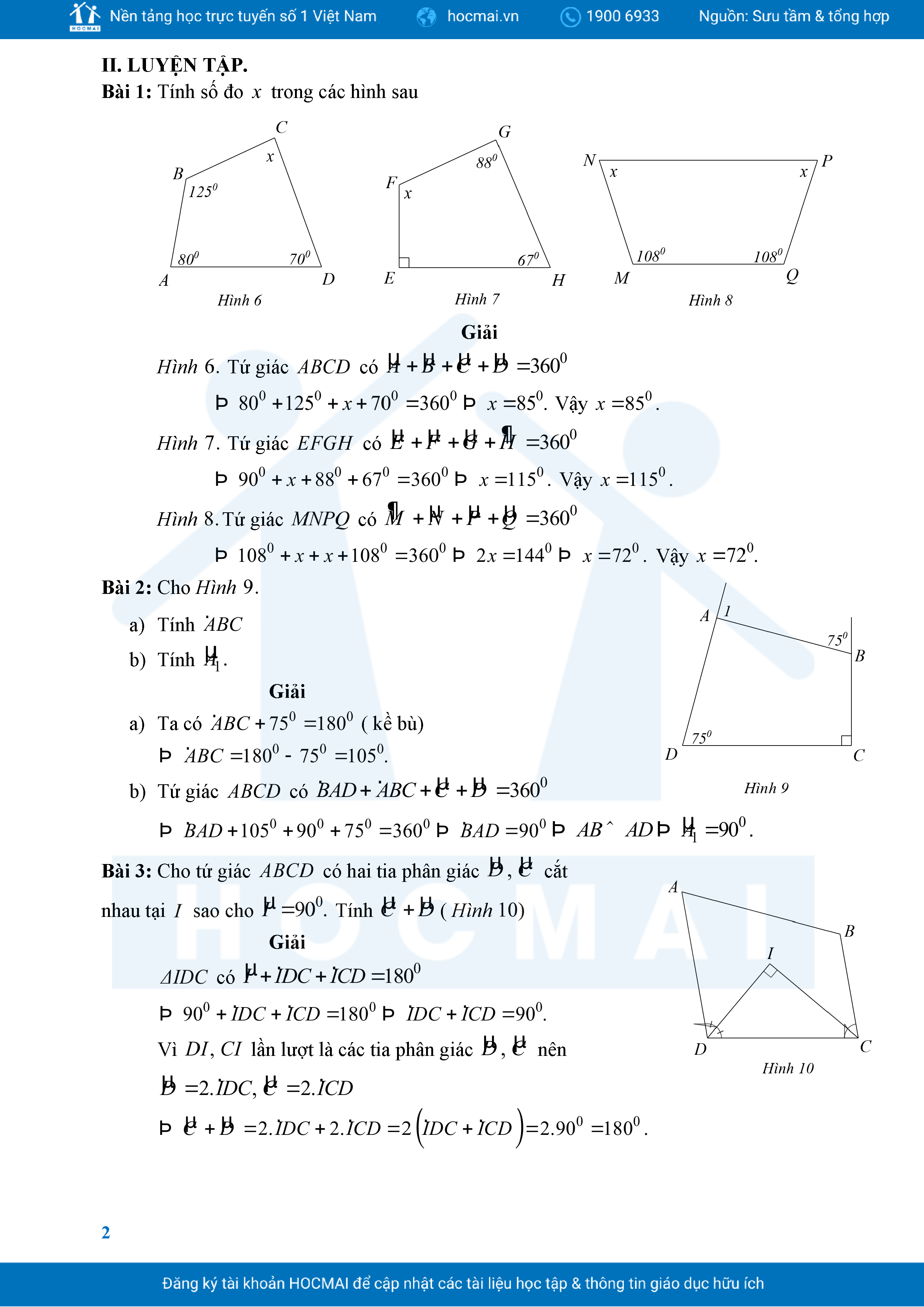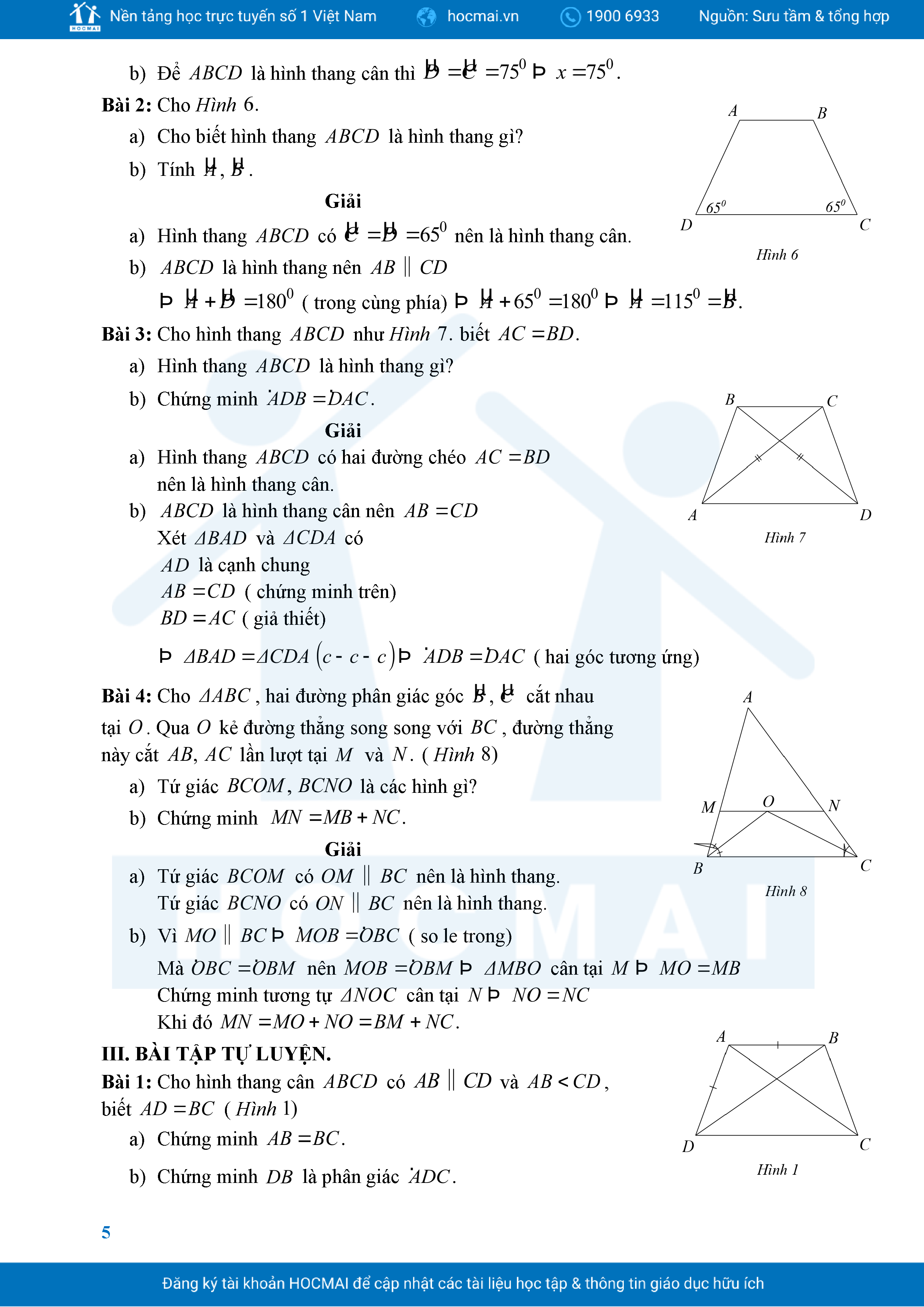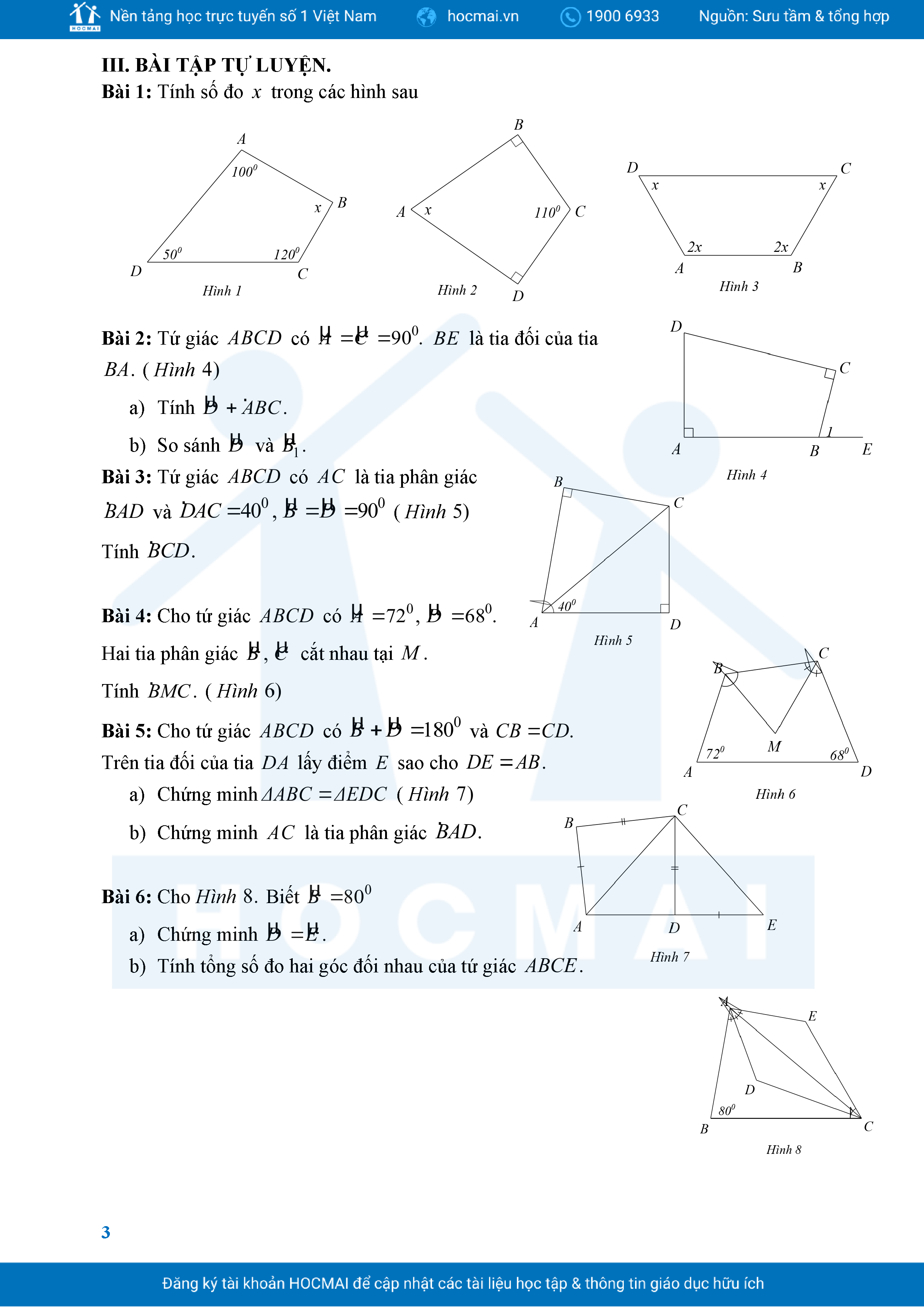 Bài Tập Cơ Bản Toán 8 Chương 3 Tứ Giác