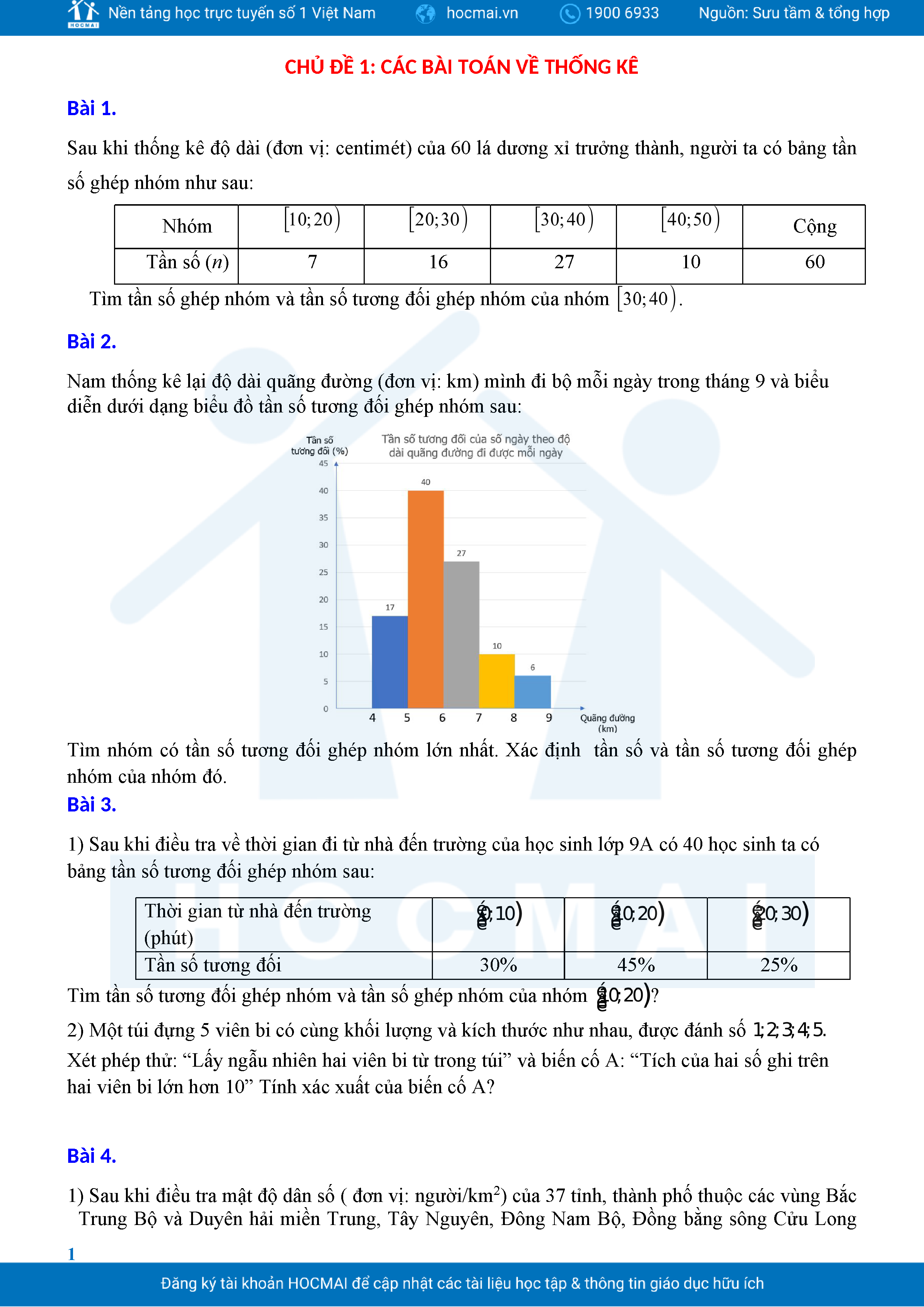 Các Dạng Bài Toán Về Thống Kê Ôn Thi Vào 10