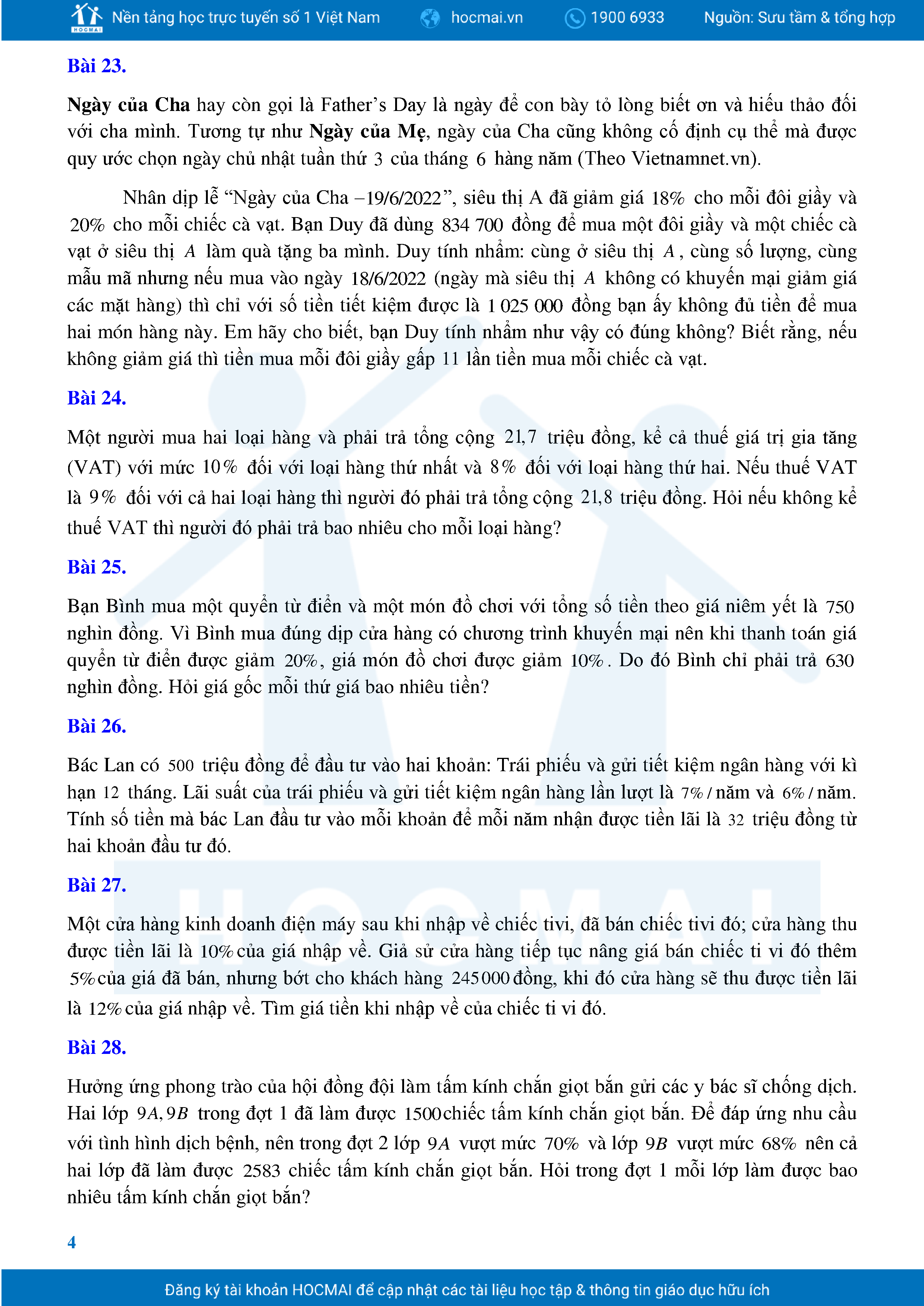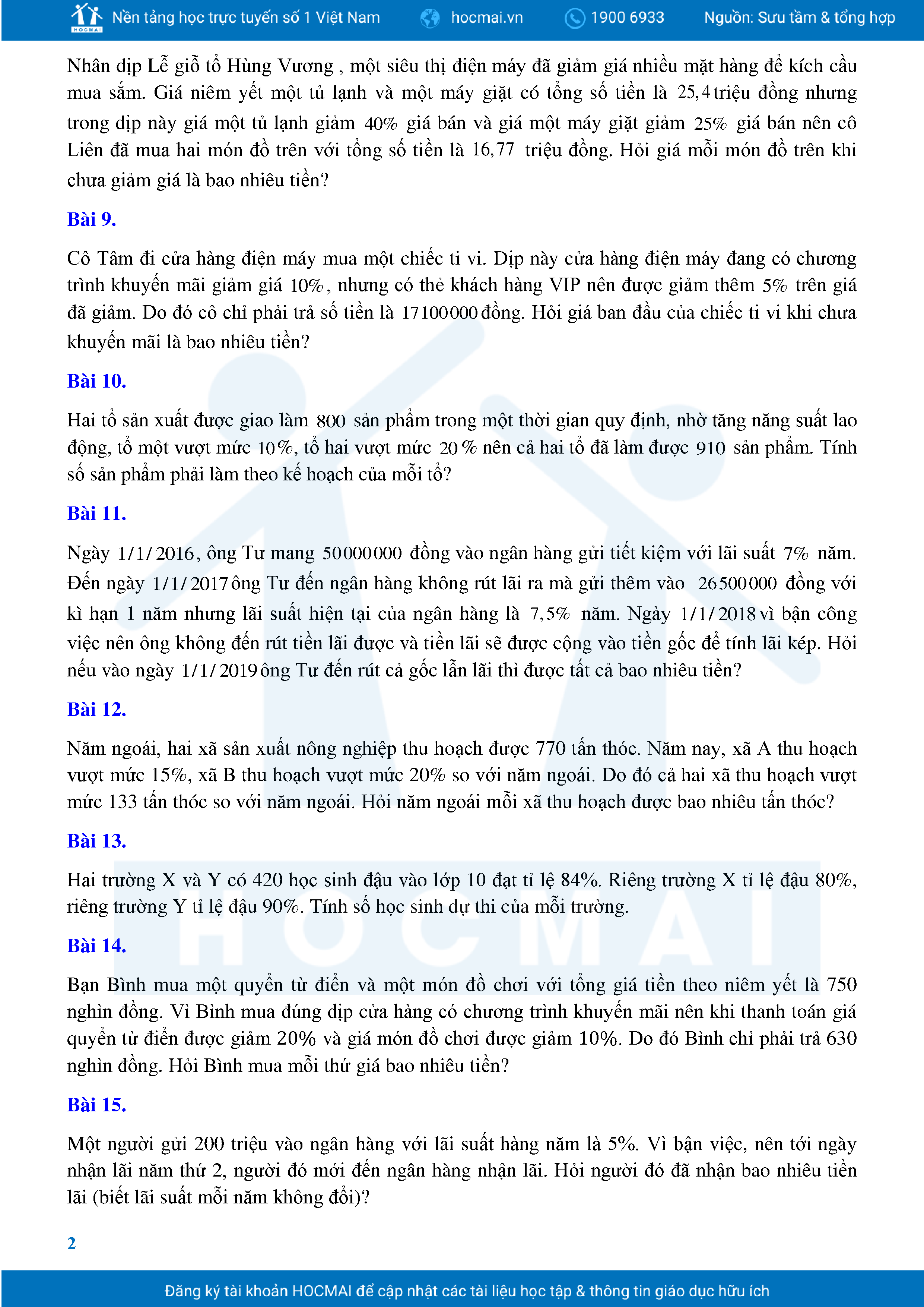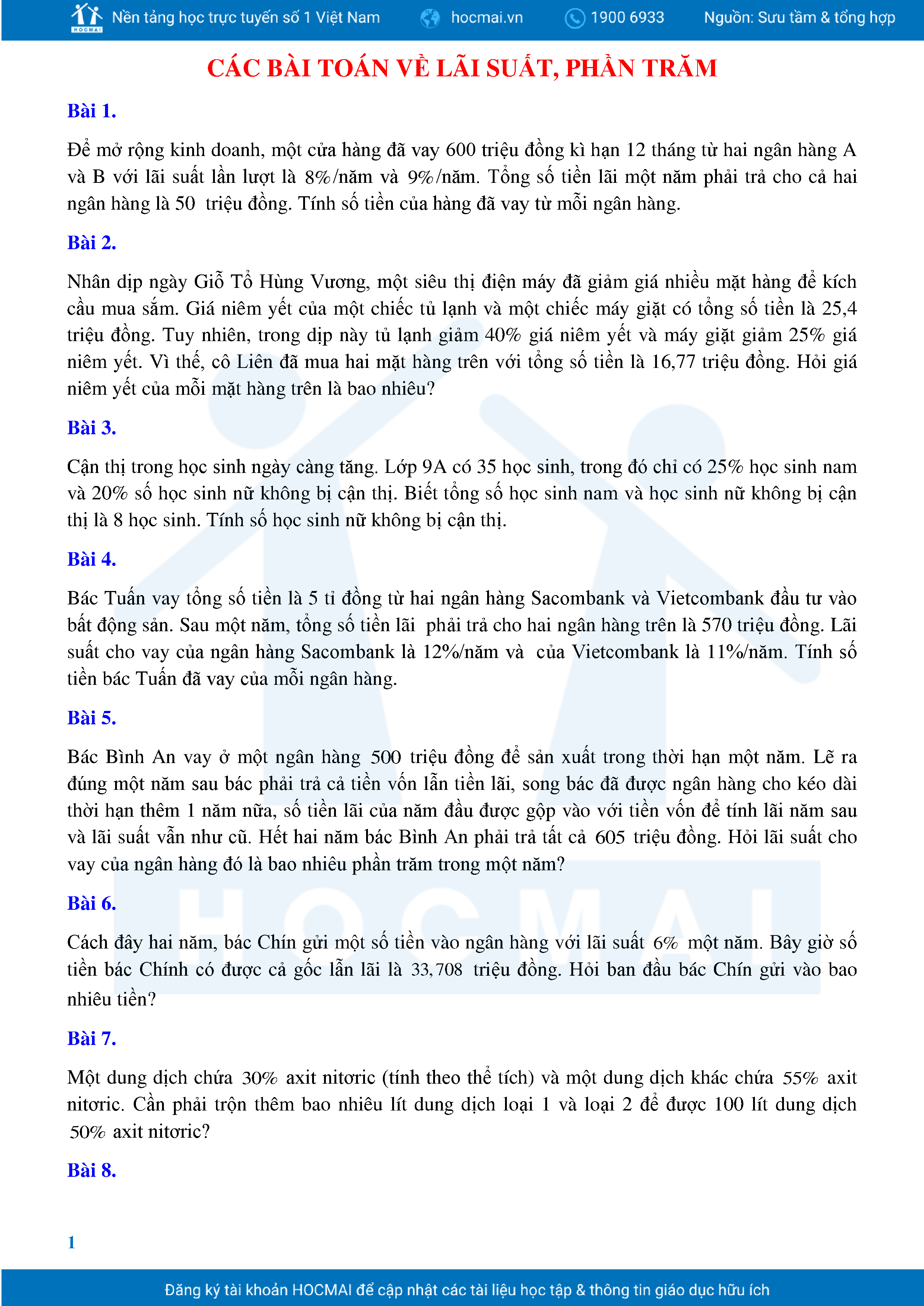 Các Dạng Toán Về Lãi Suất Phần Trăm Ôn Thi Vào 10