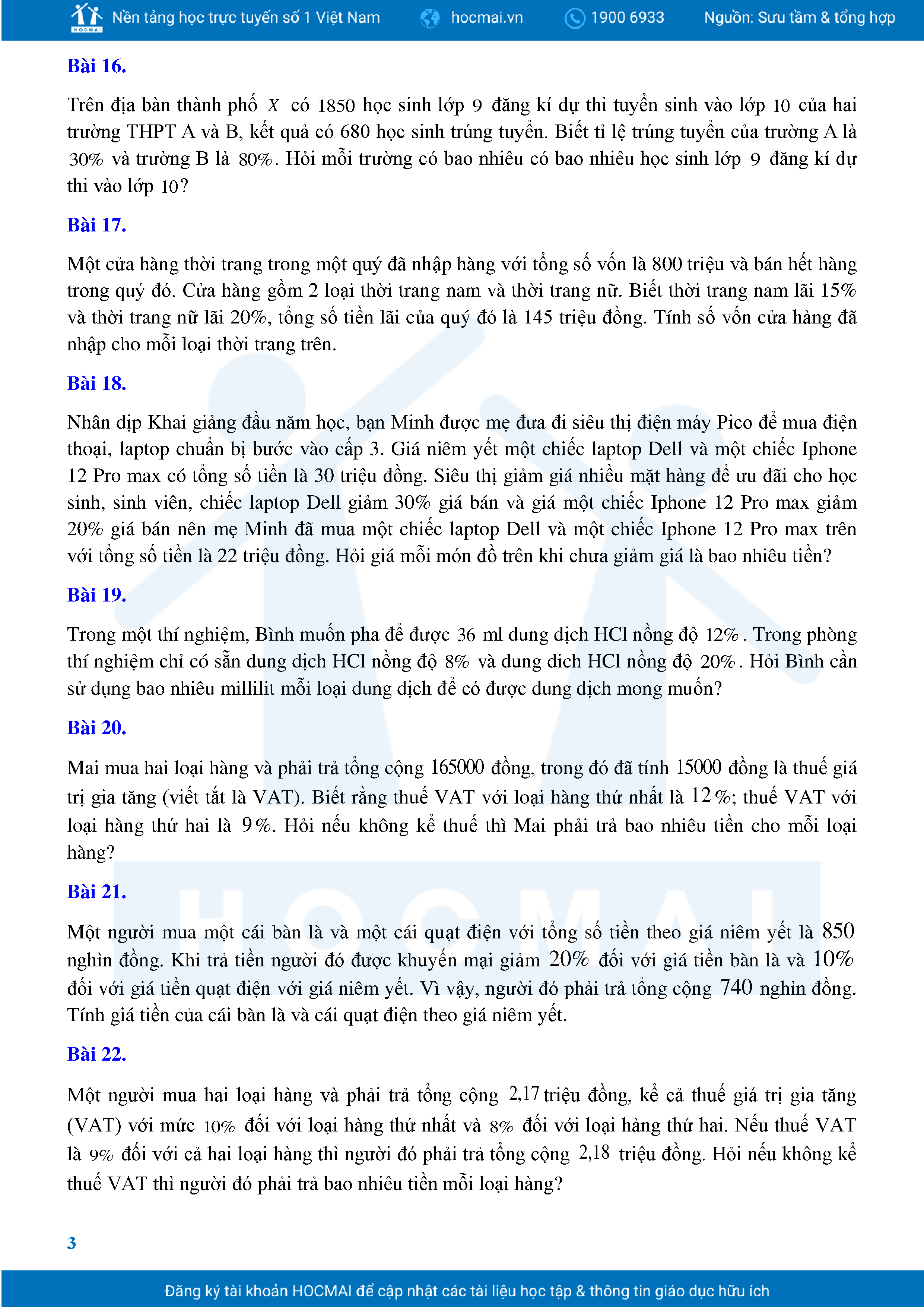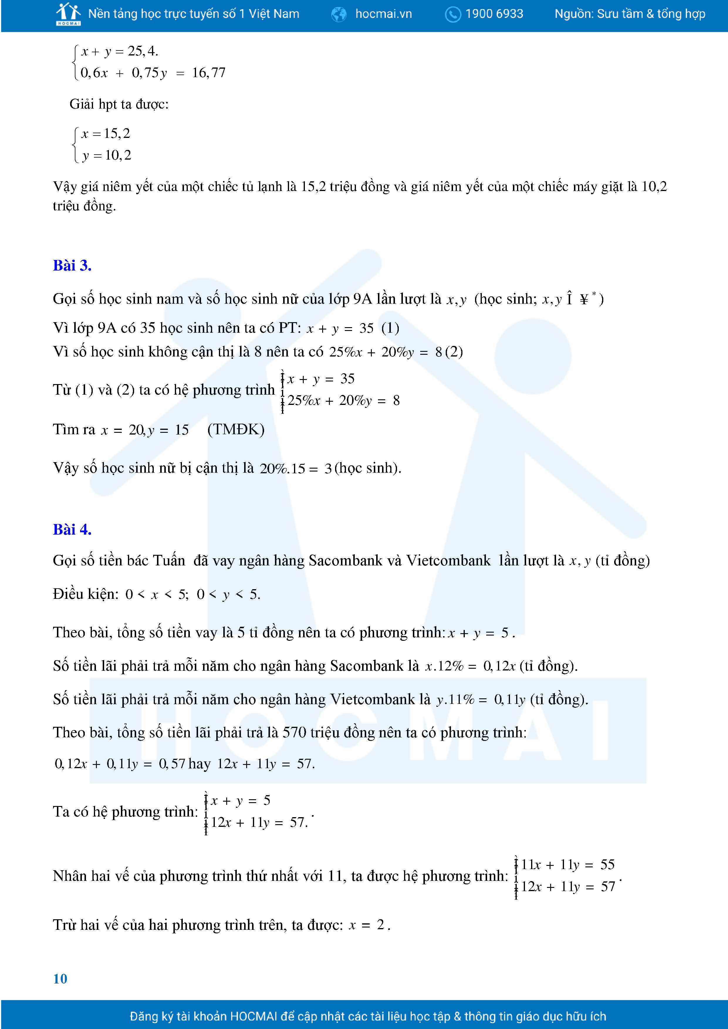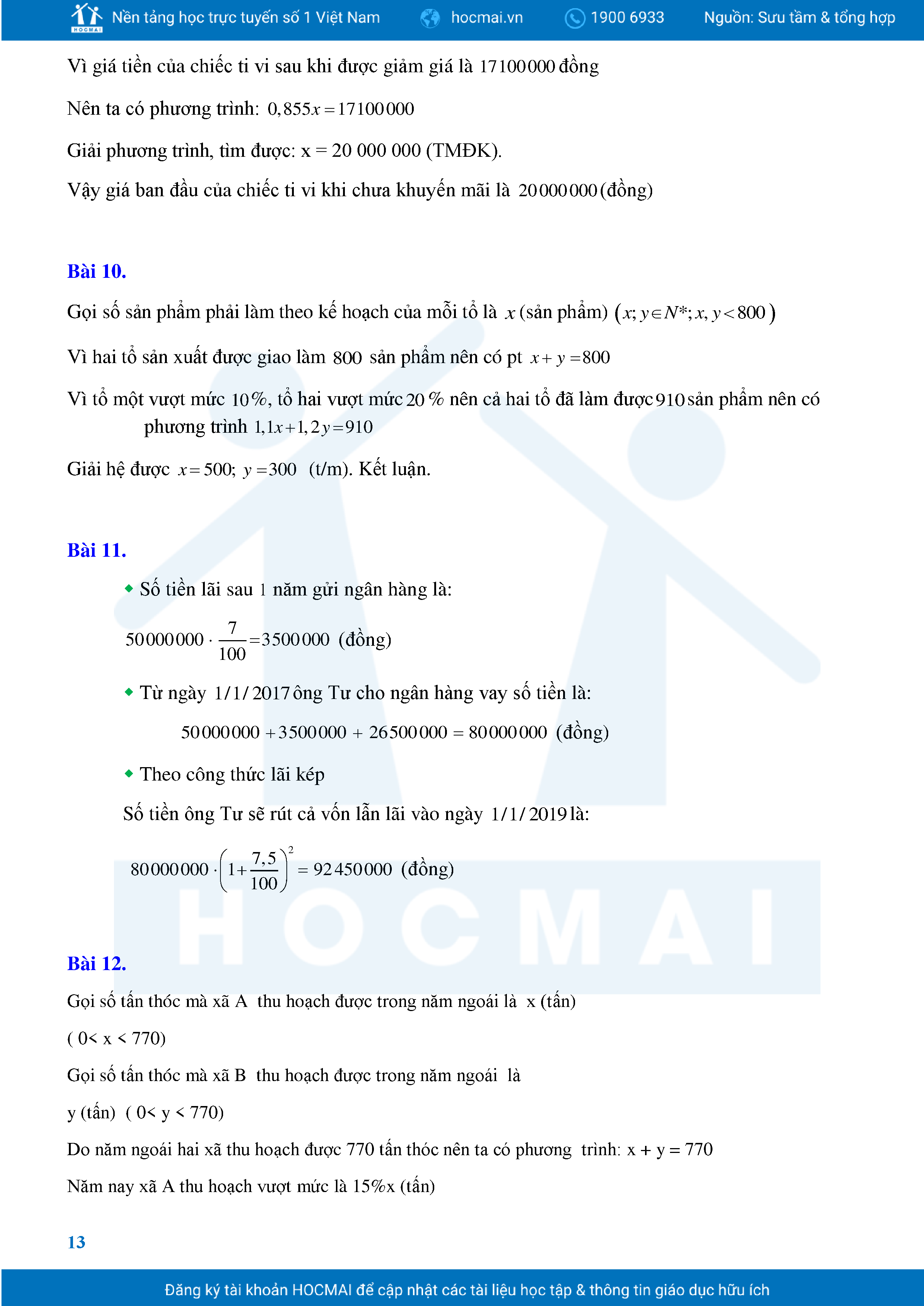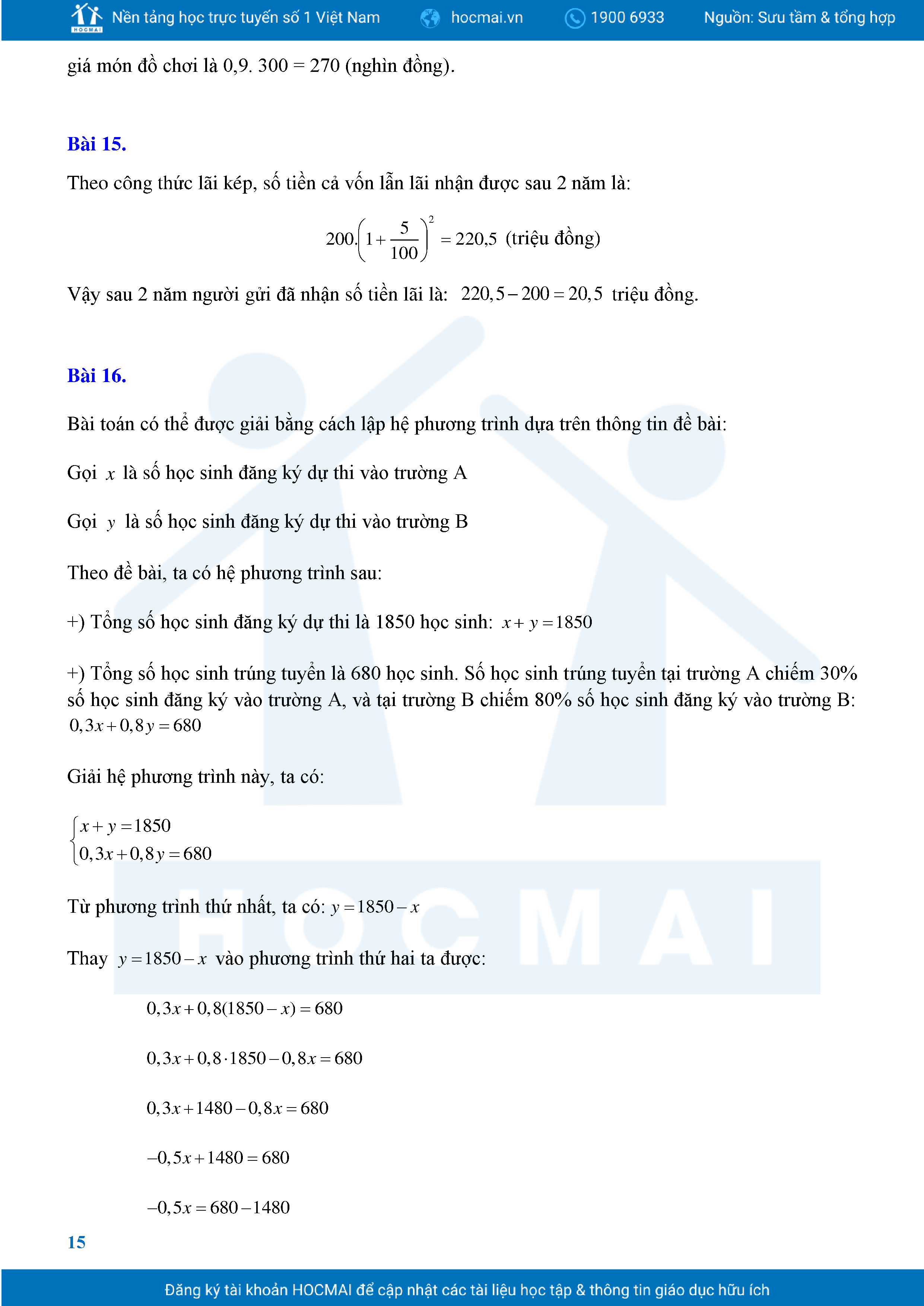 Các Dạng Toán Về Lãi Suất Phần Trăm Ôn Thi Vào 10