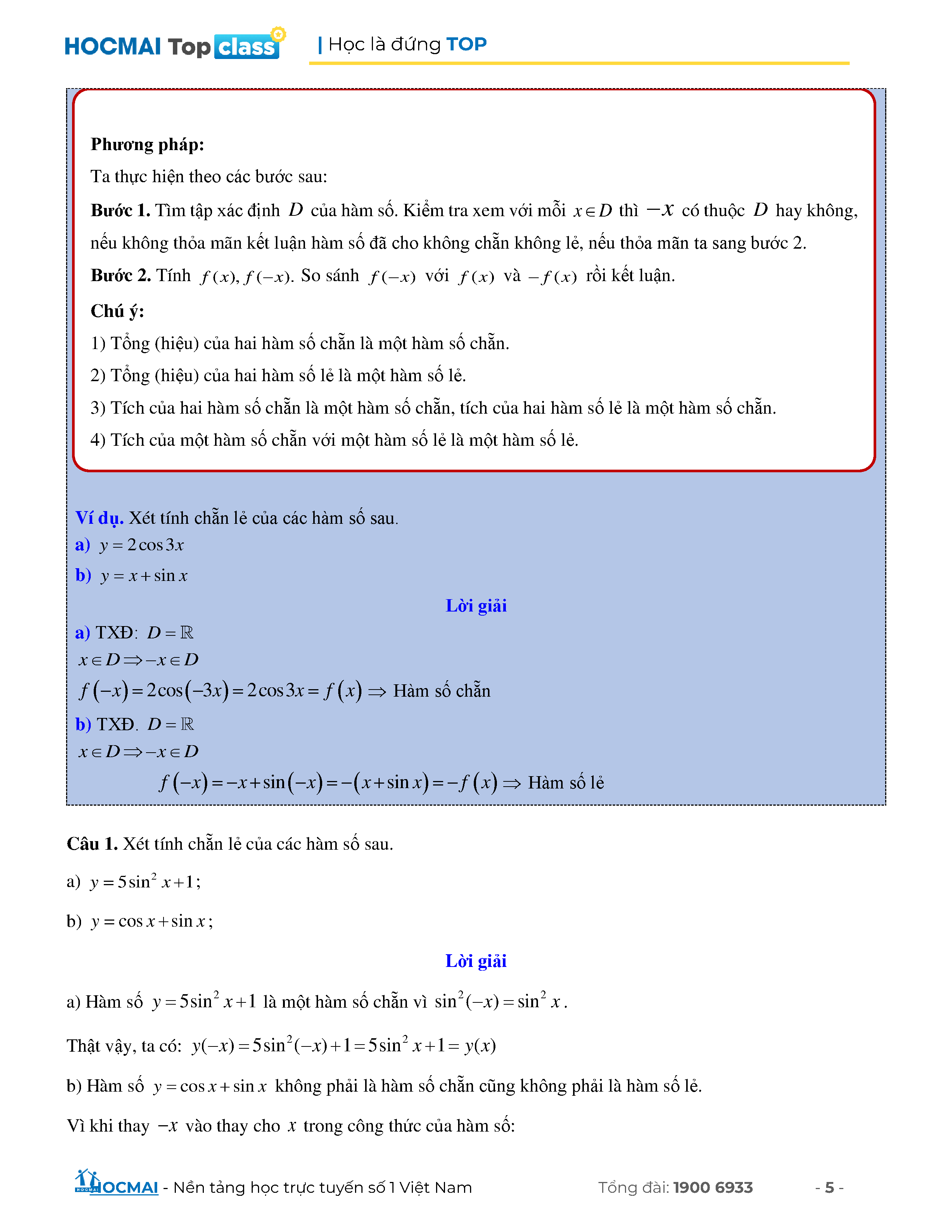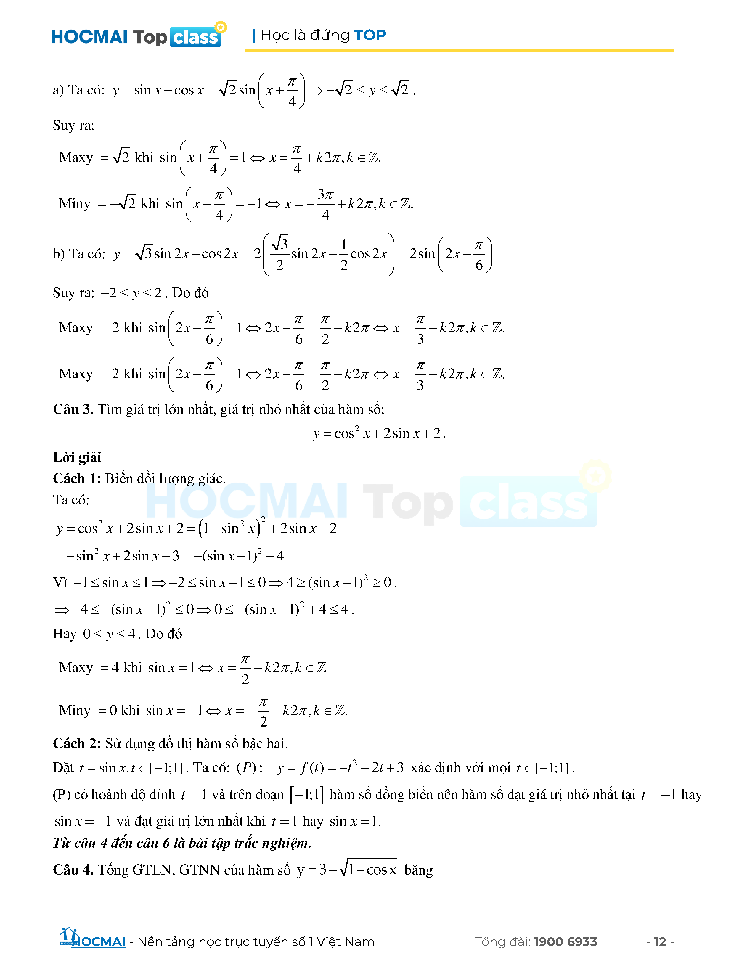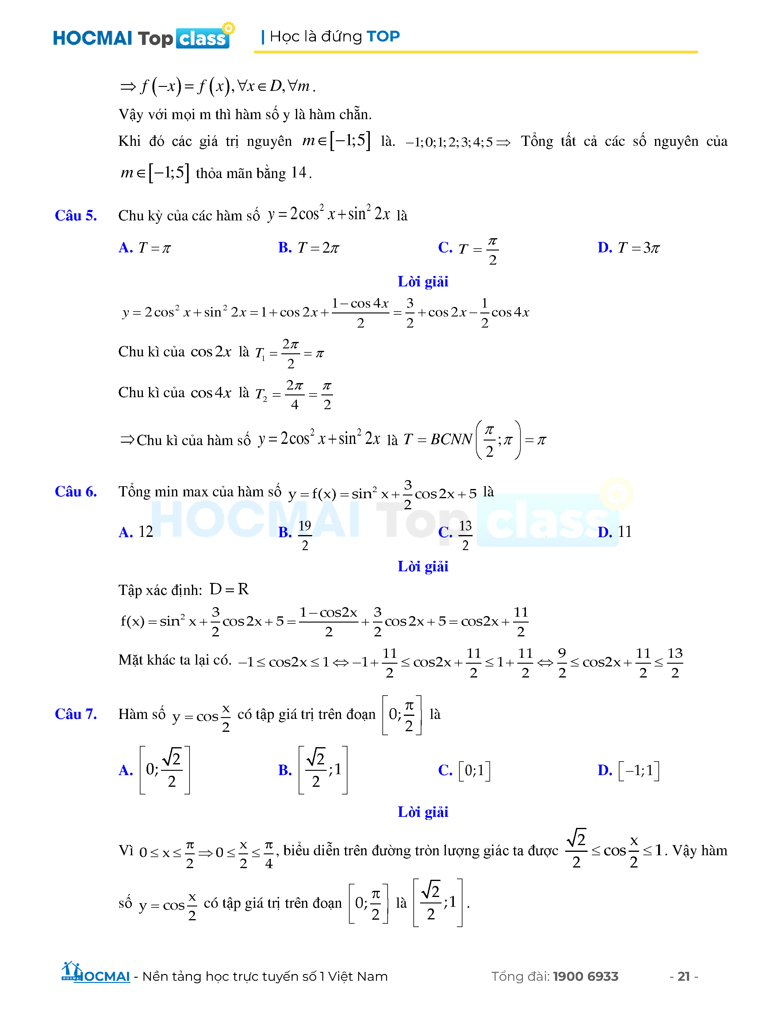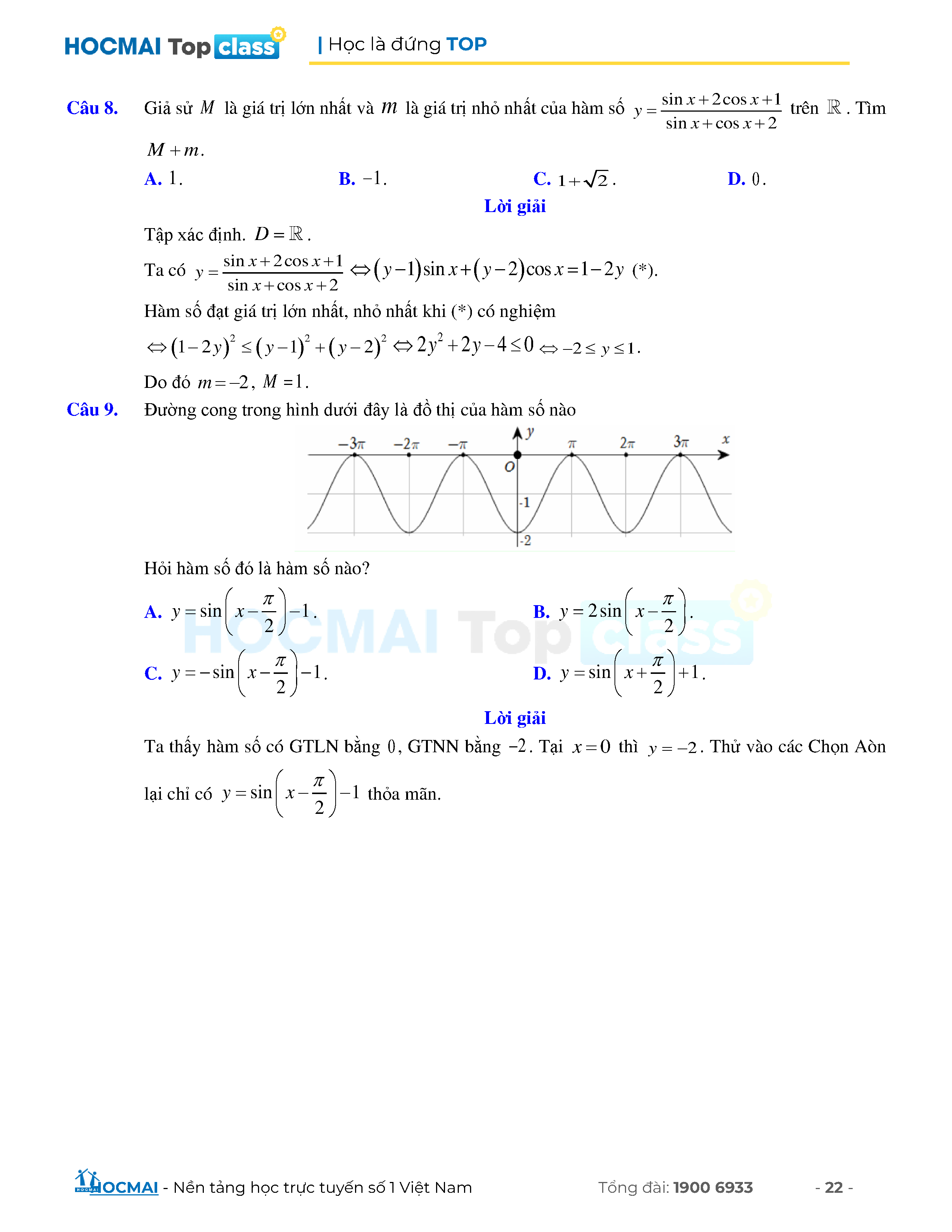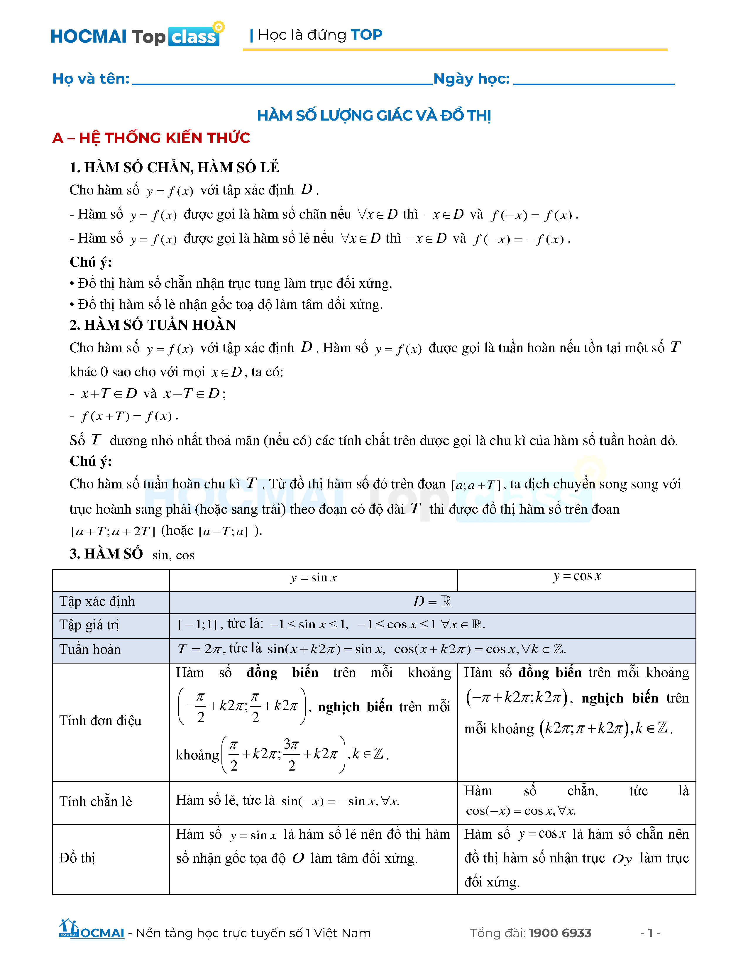 Hàm số lượng giác và đồ thị - Hướng dẫn giải