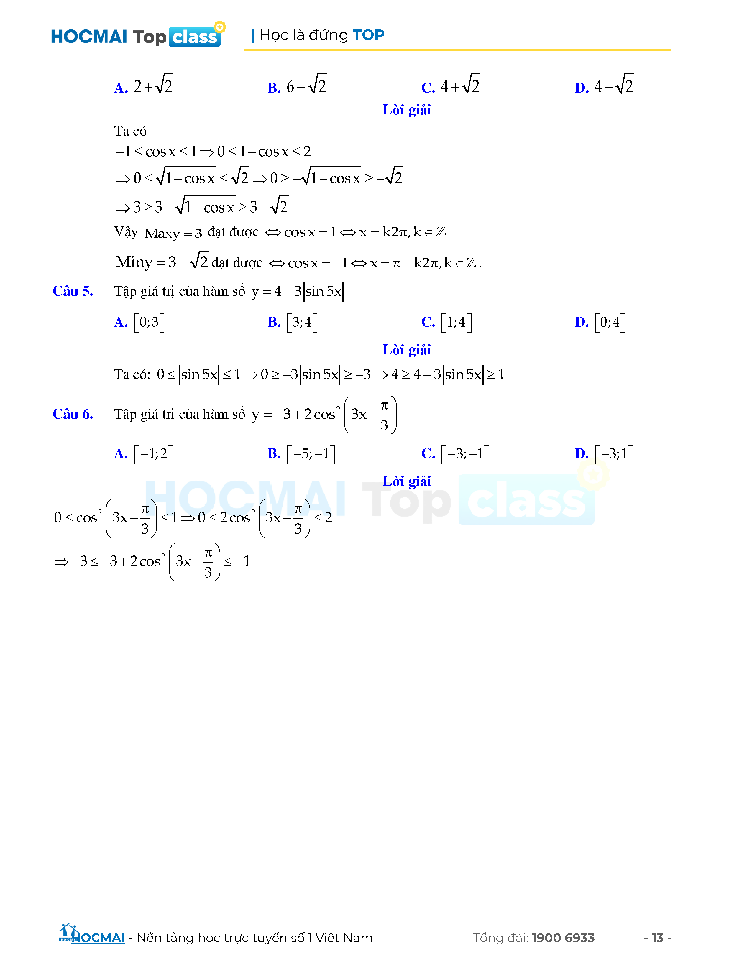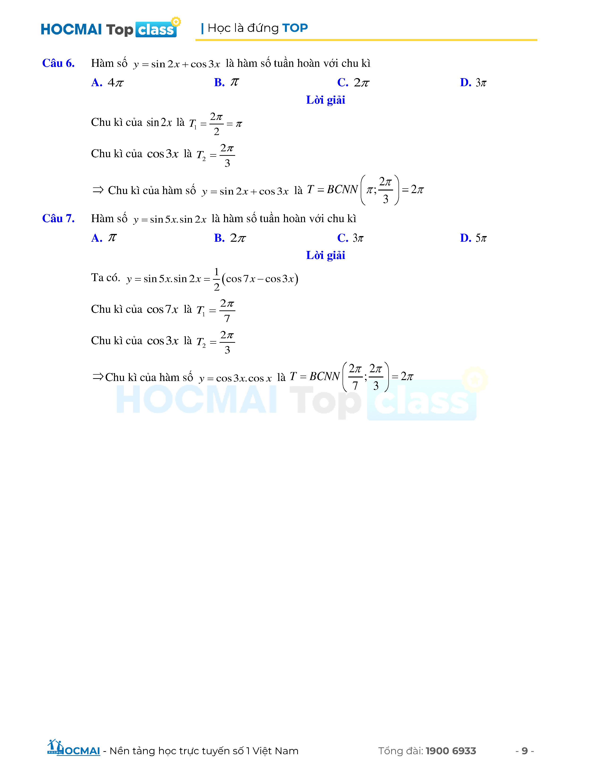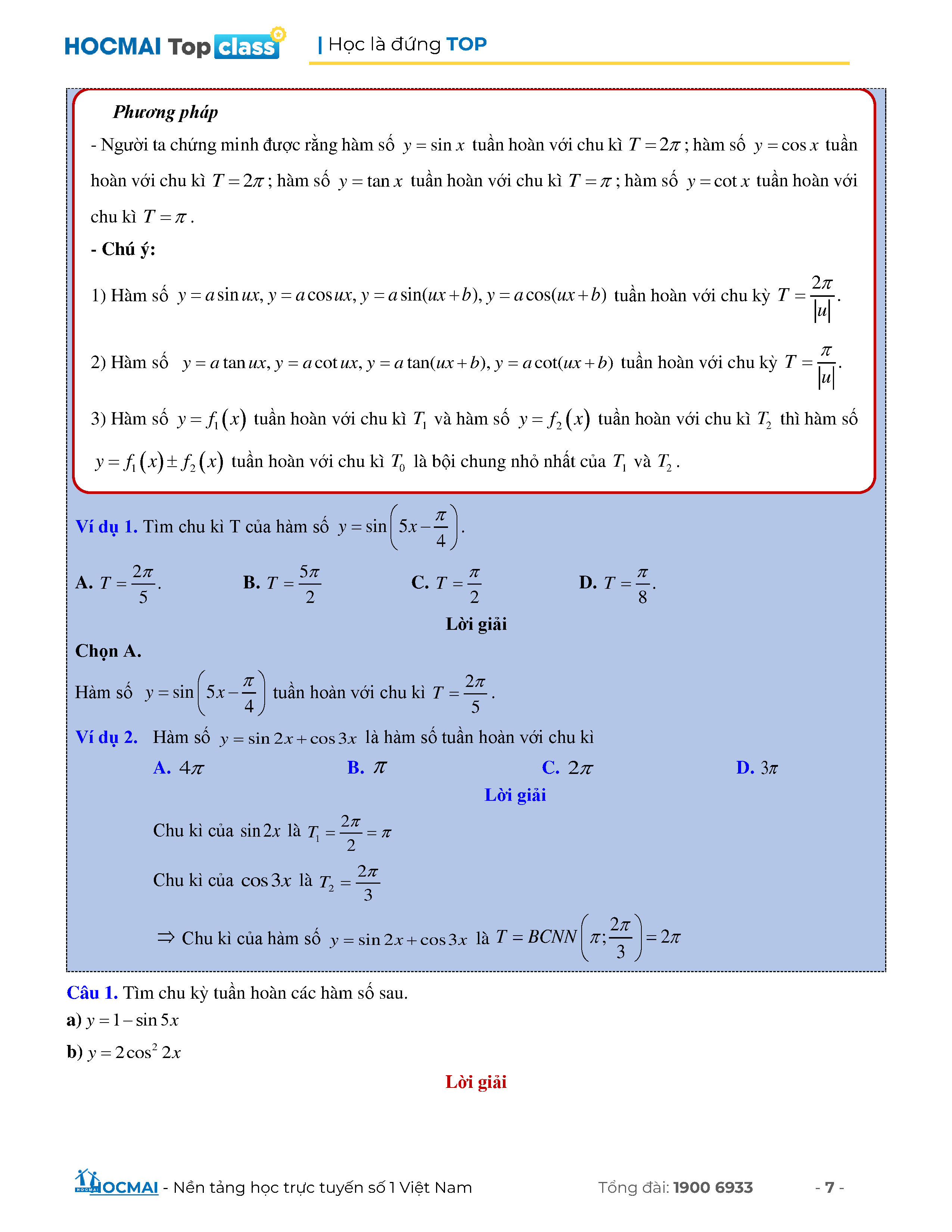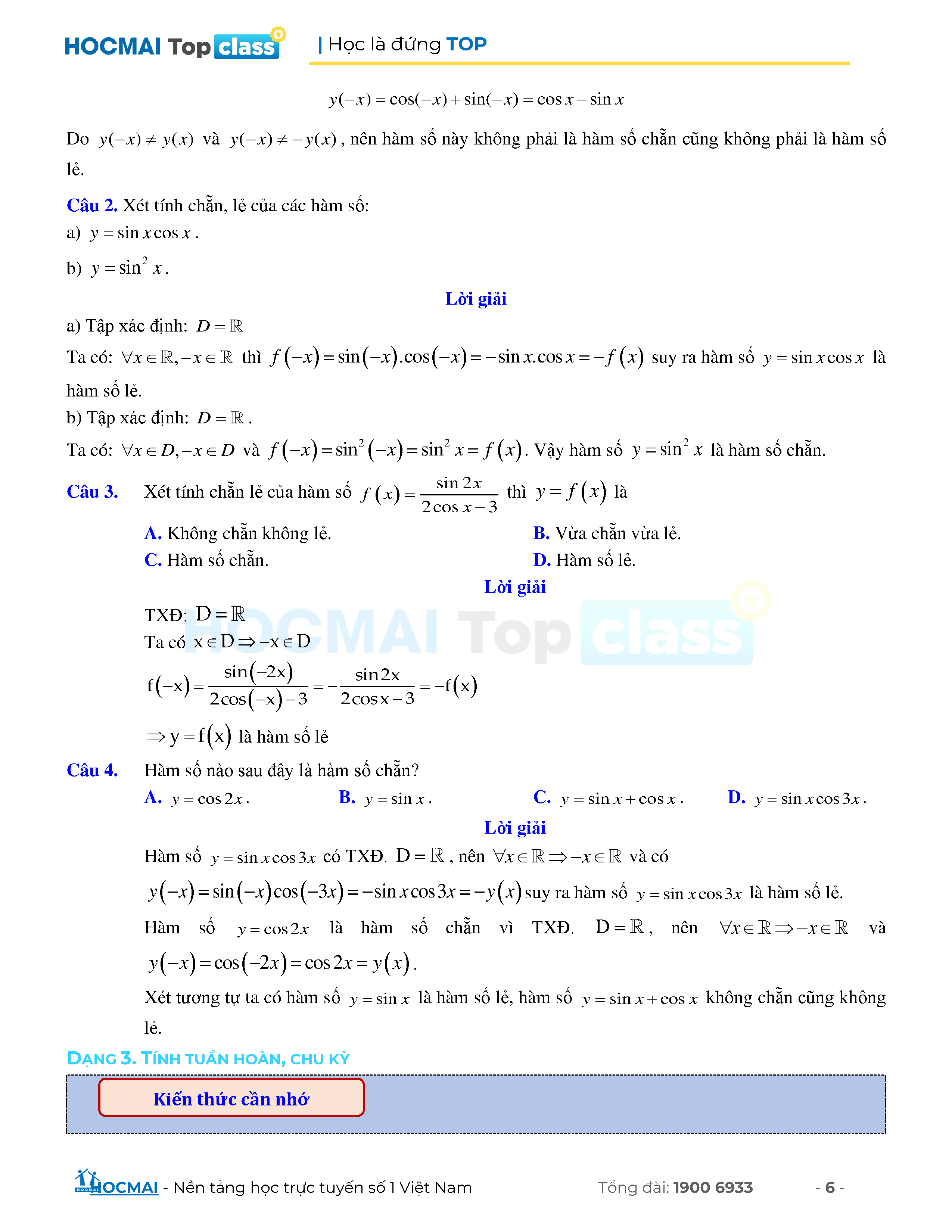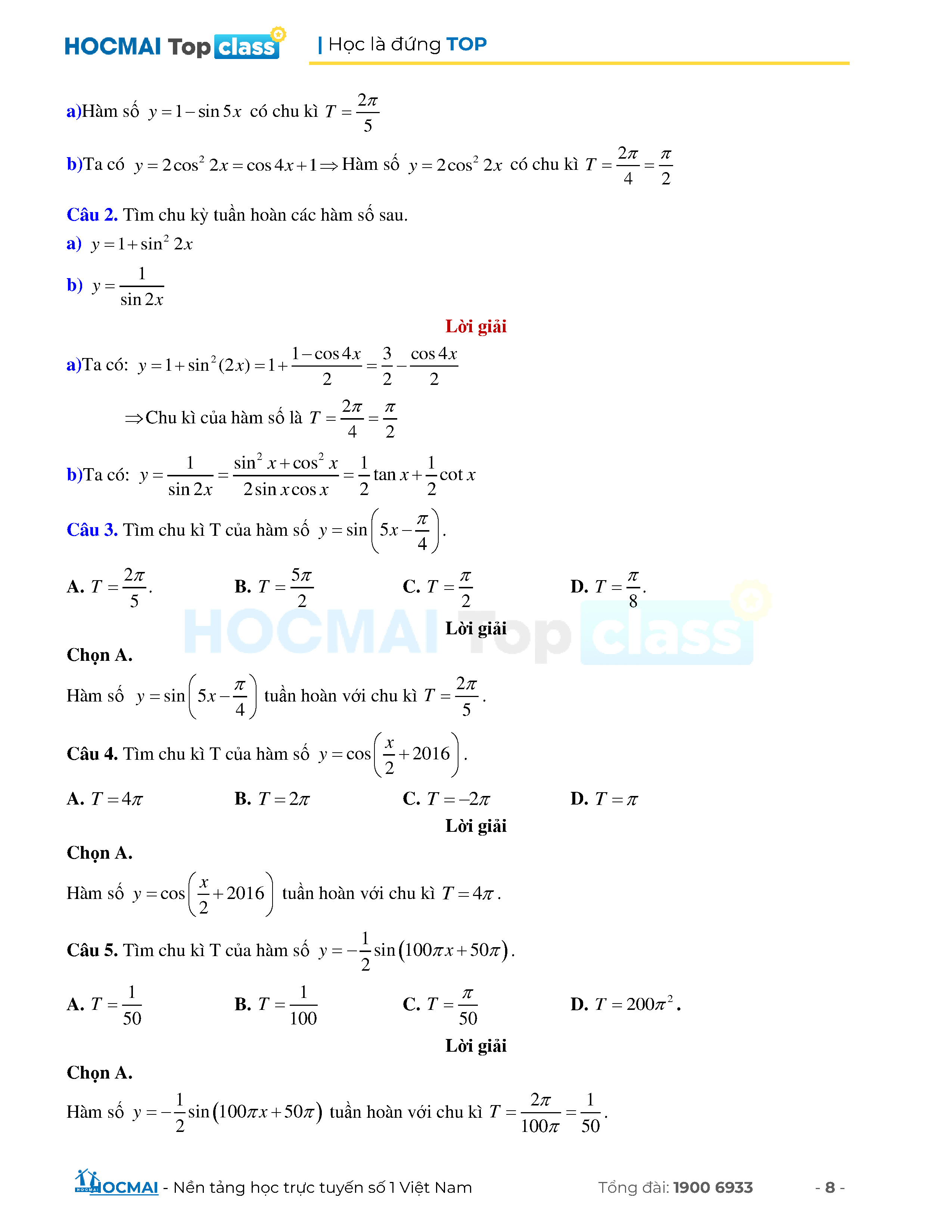 Hàm số lượng giác và đồ thị - Hướng dẫn giải