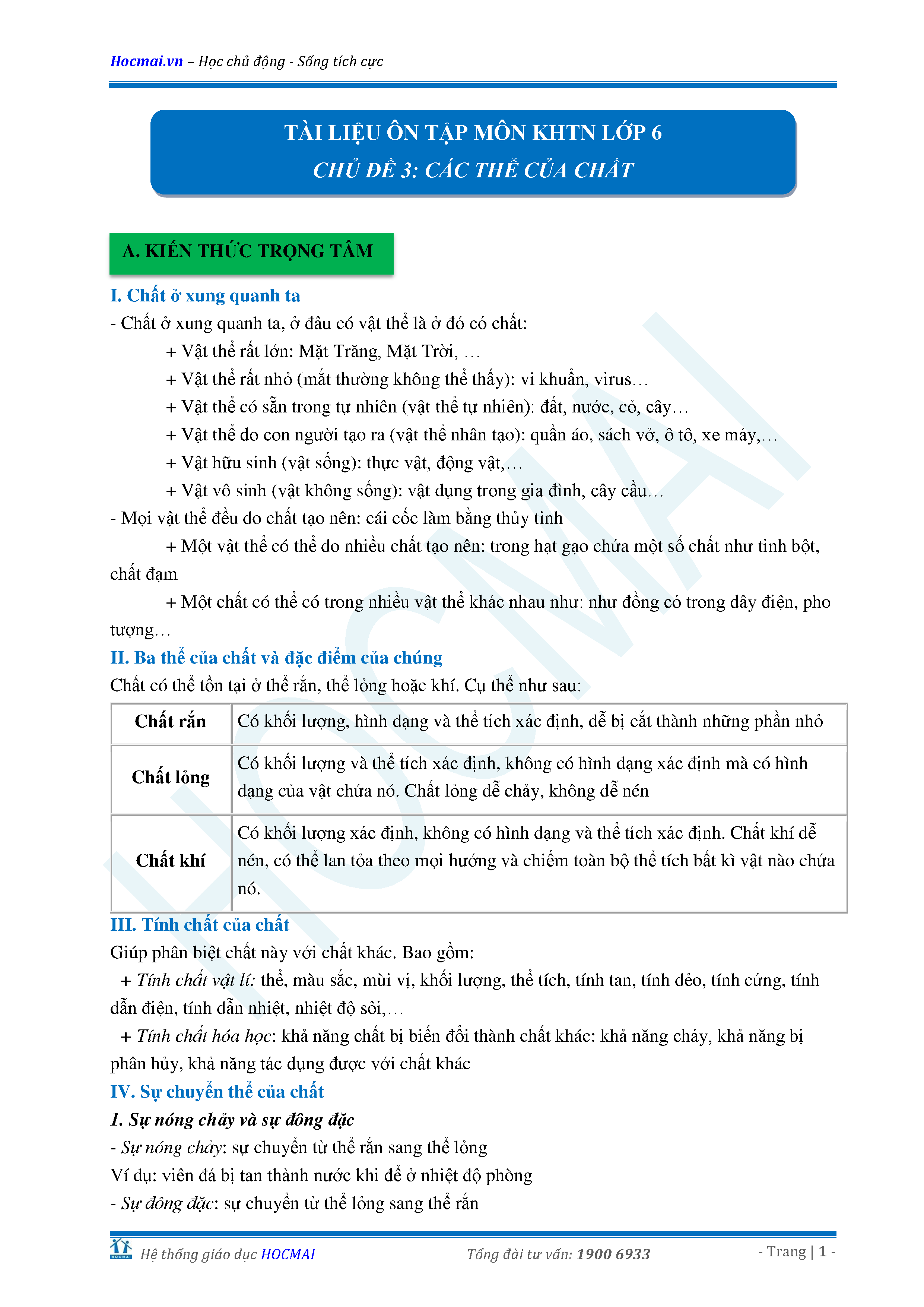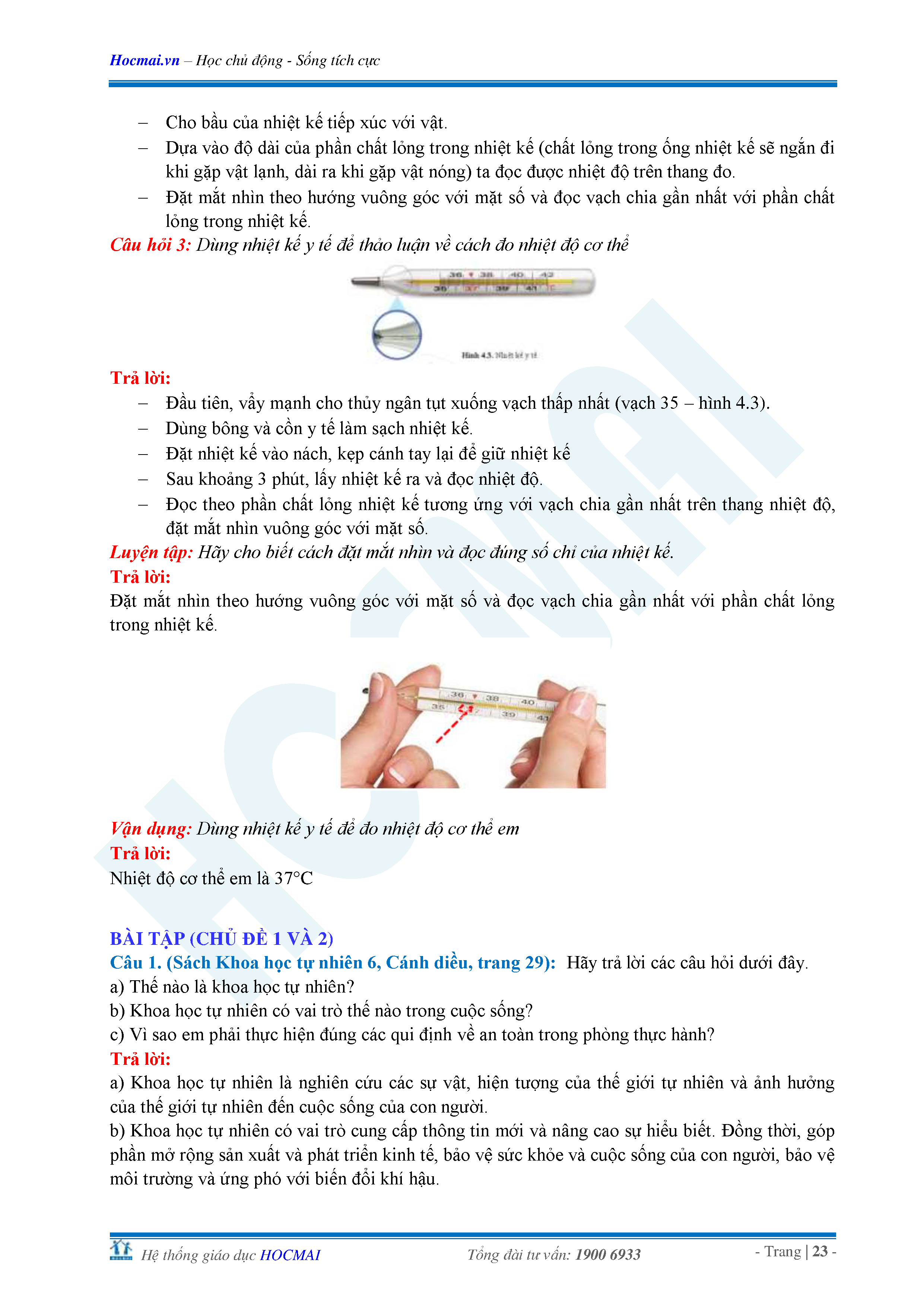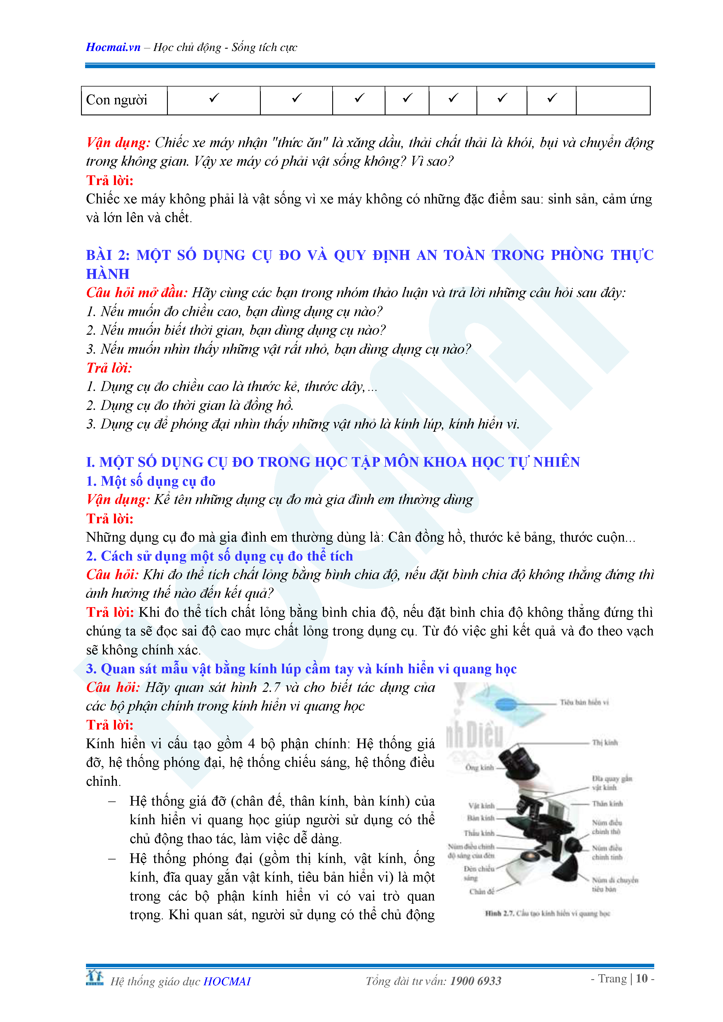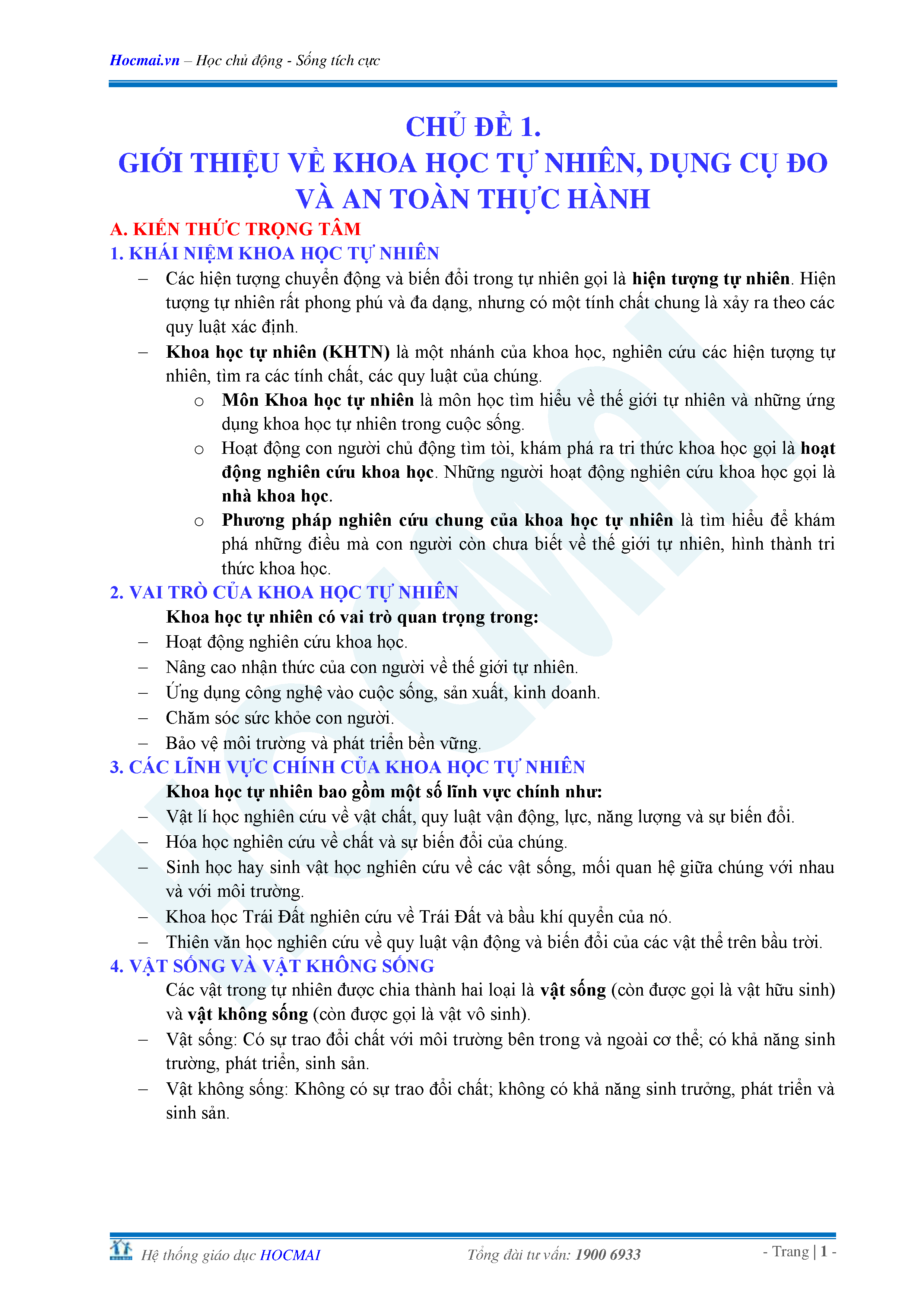 Tài liệu ôn thi giữa học kì I - KHTN 6 CD