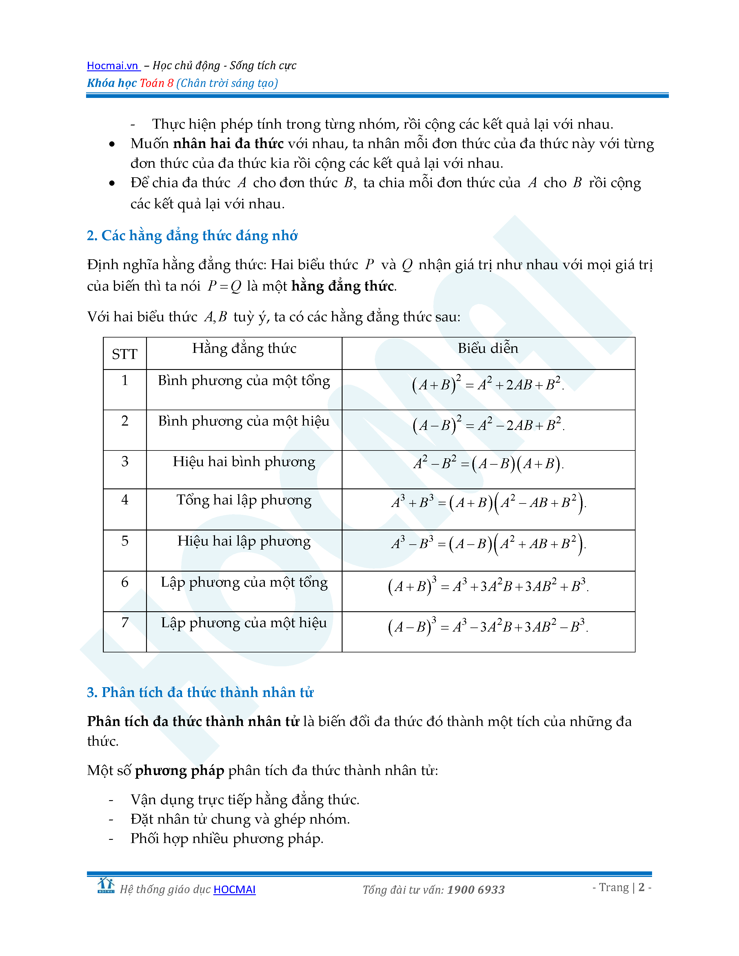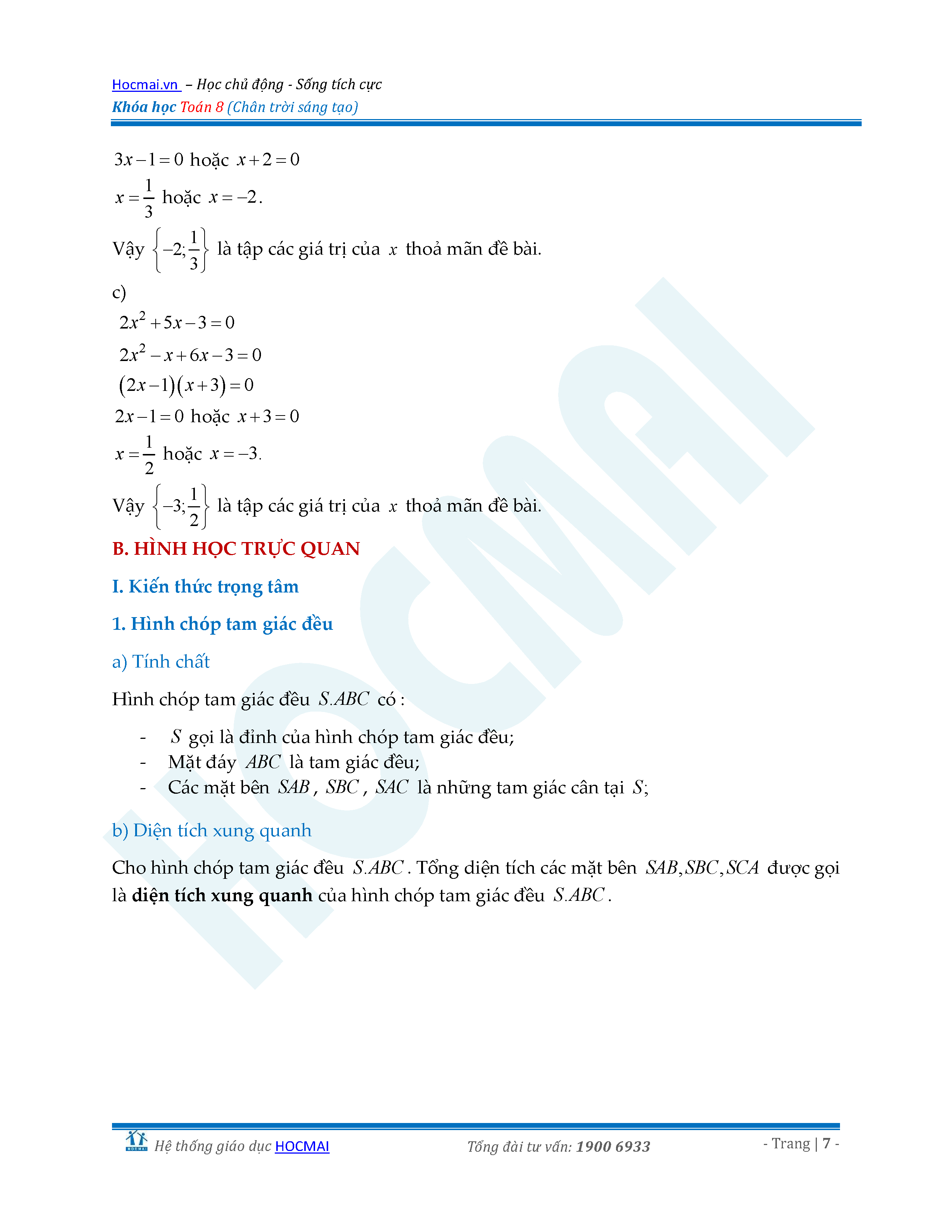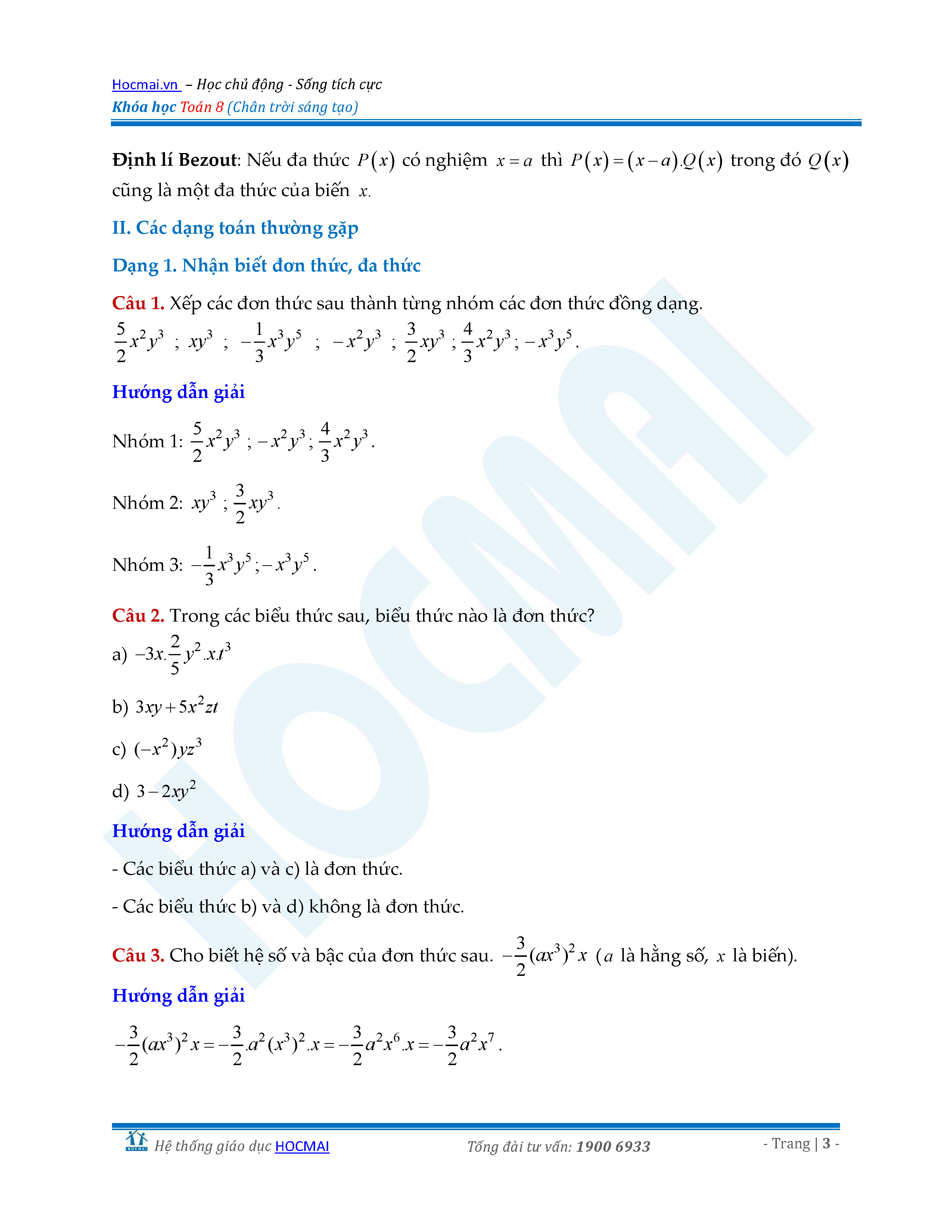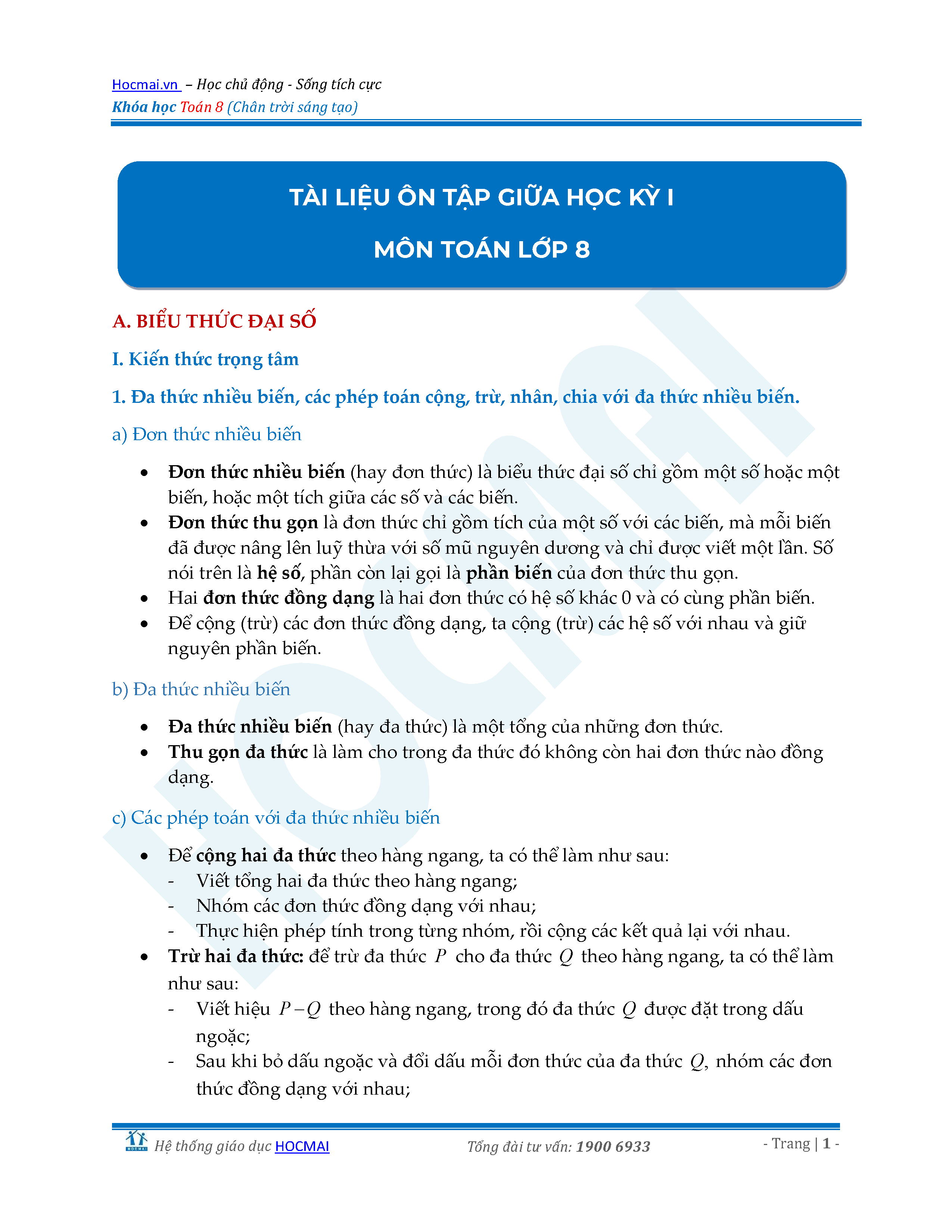 Tài liệu ôn thi giữa học kì I - Toán 8 CTST