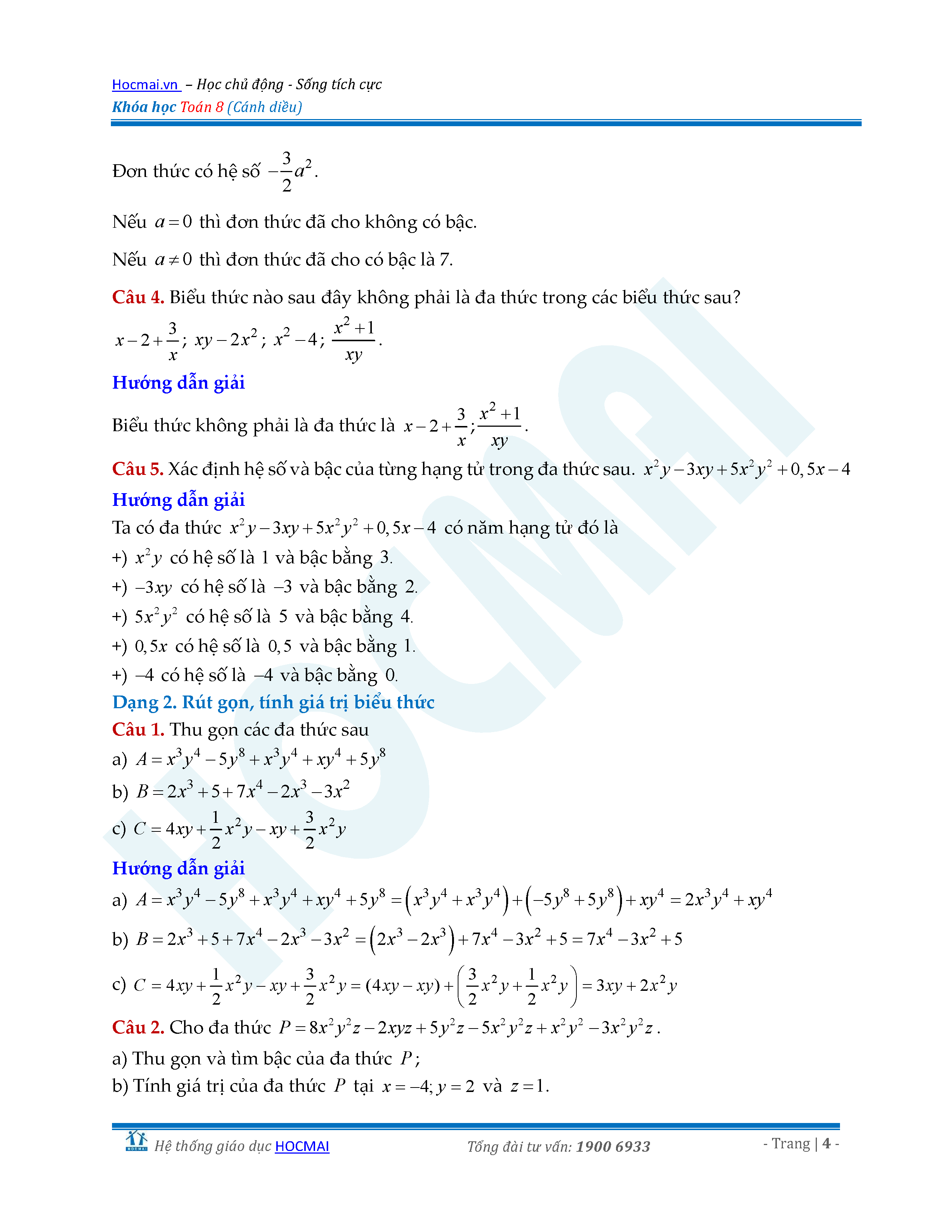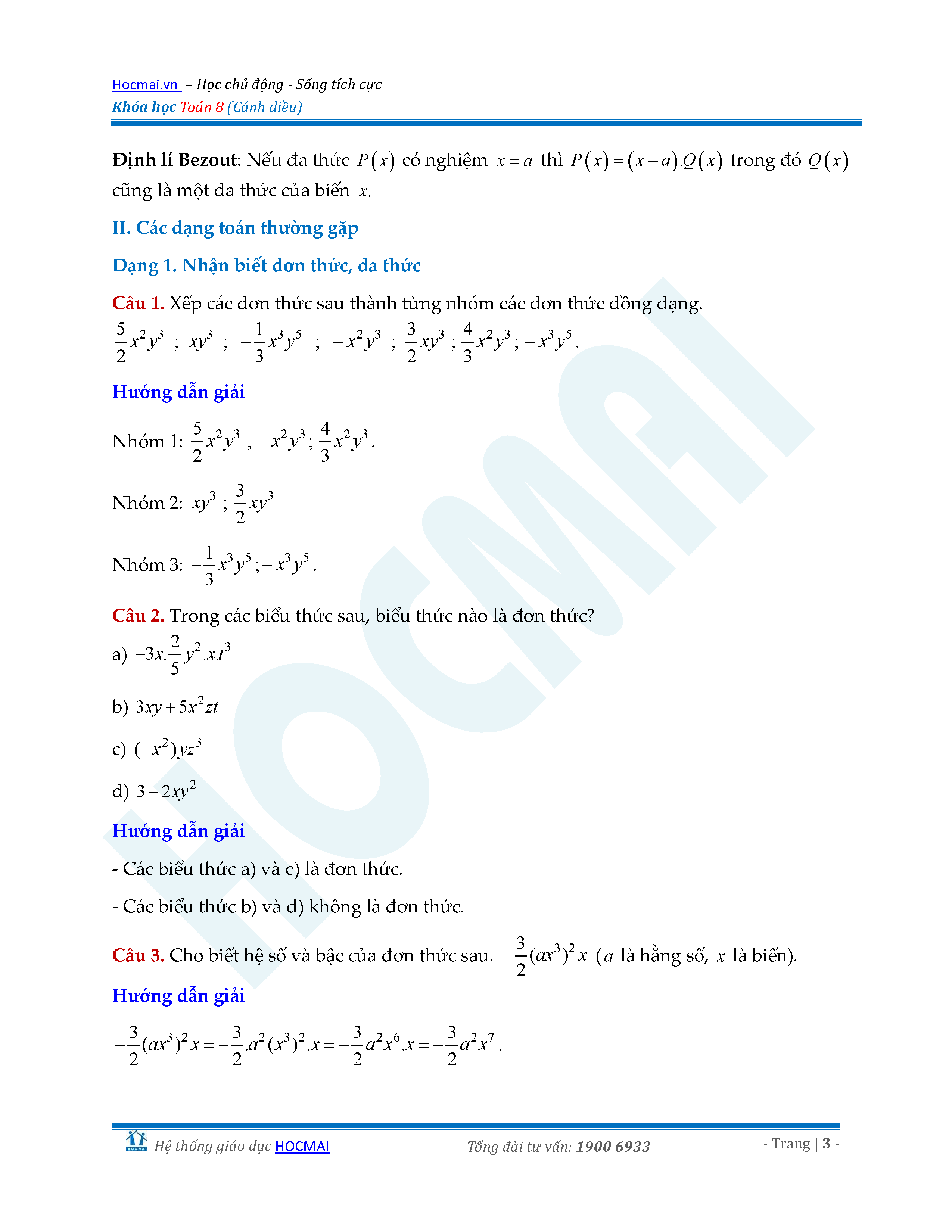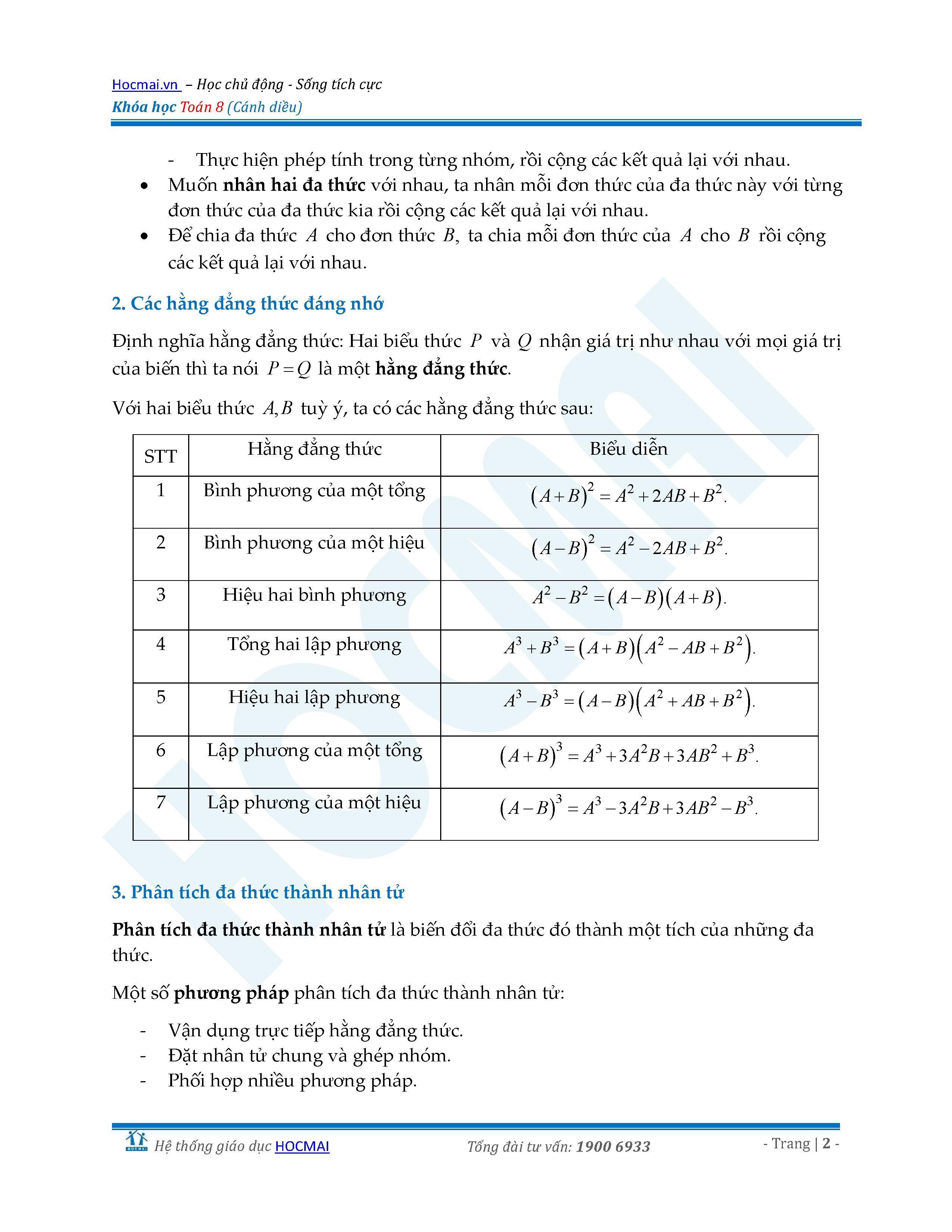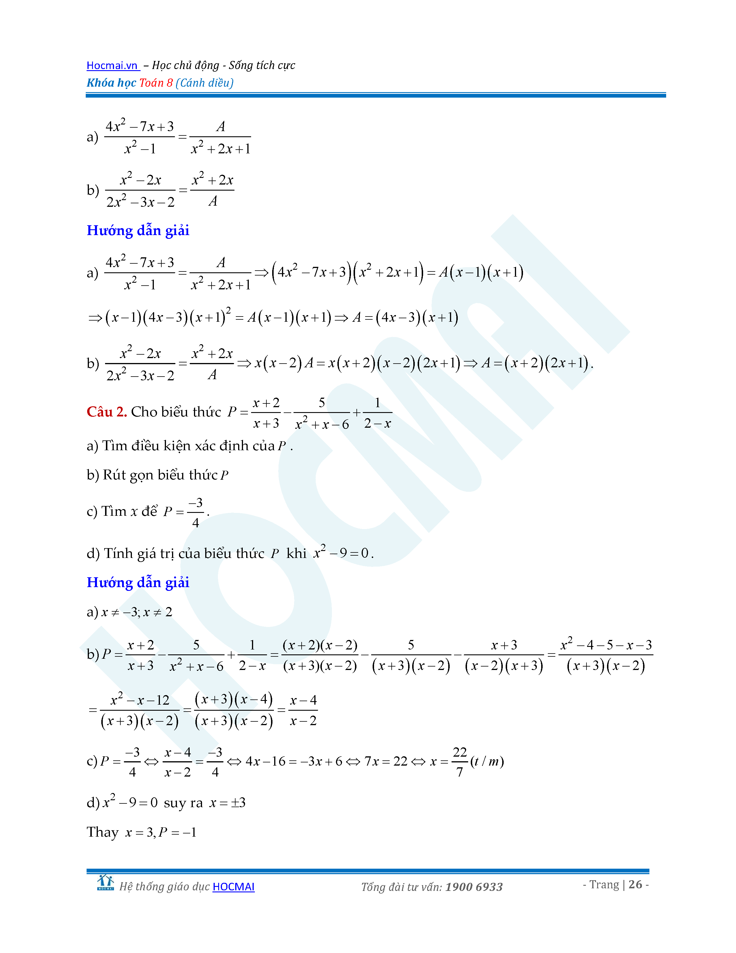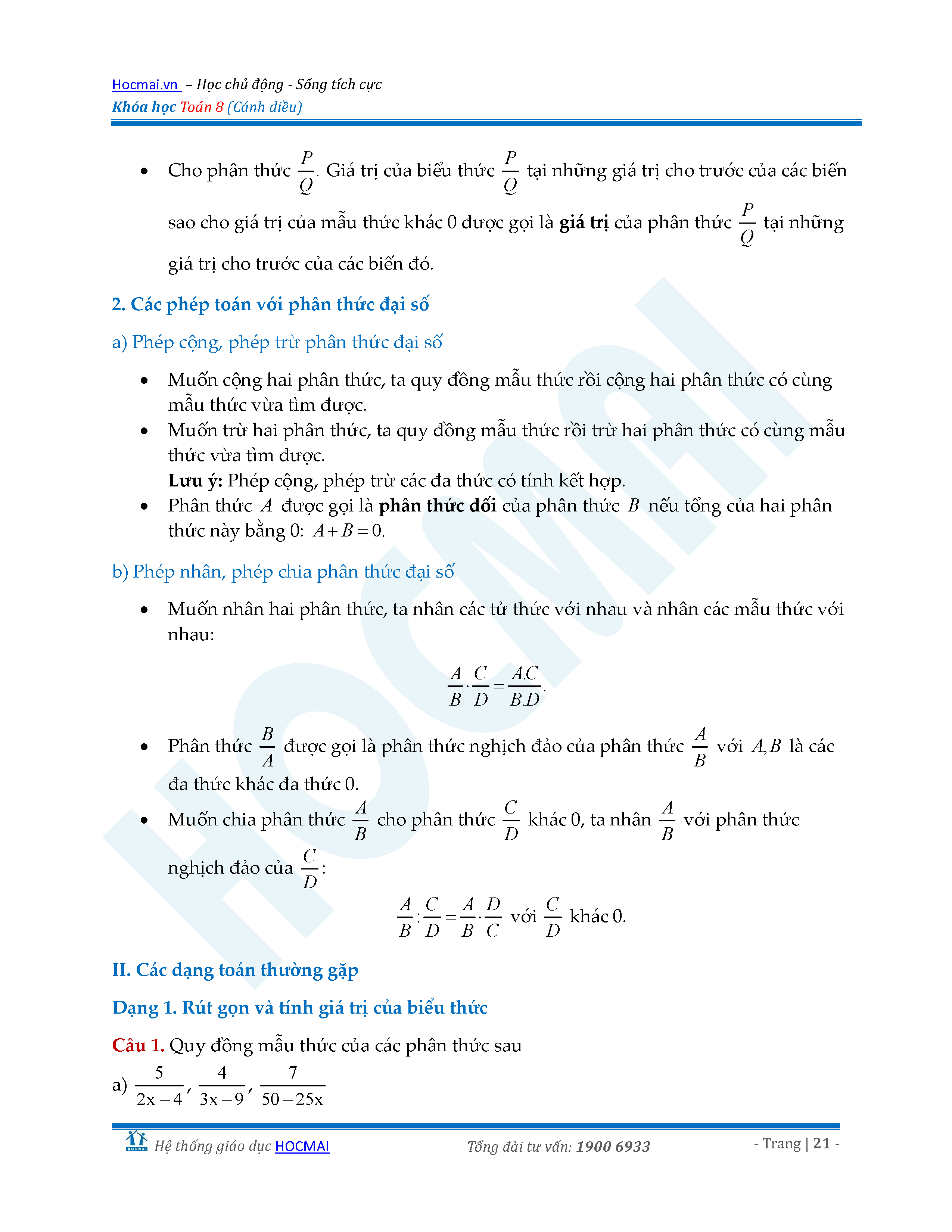 Tài liệu ôn thi giữa học kì I - Toán 8 CD