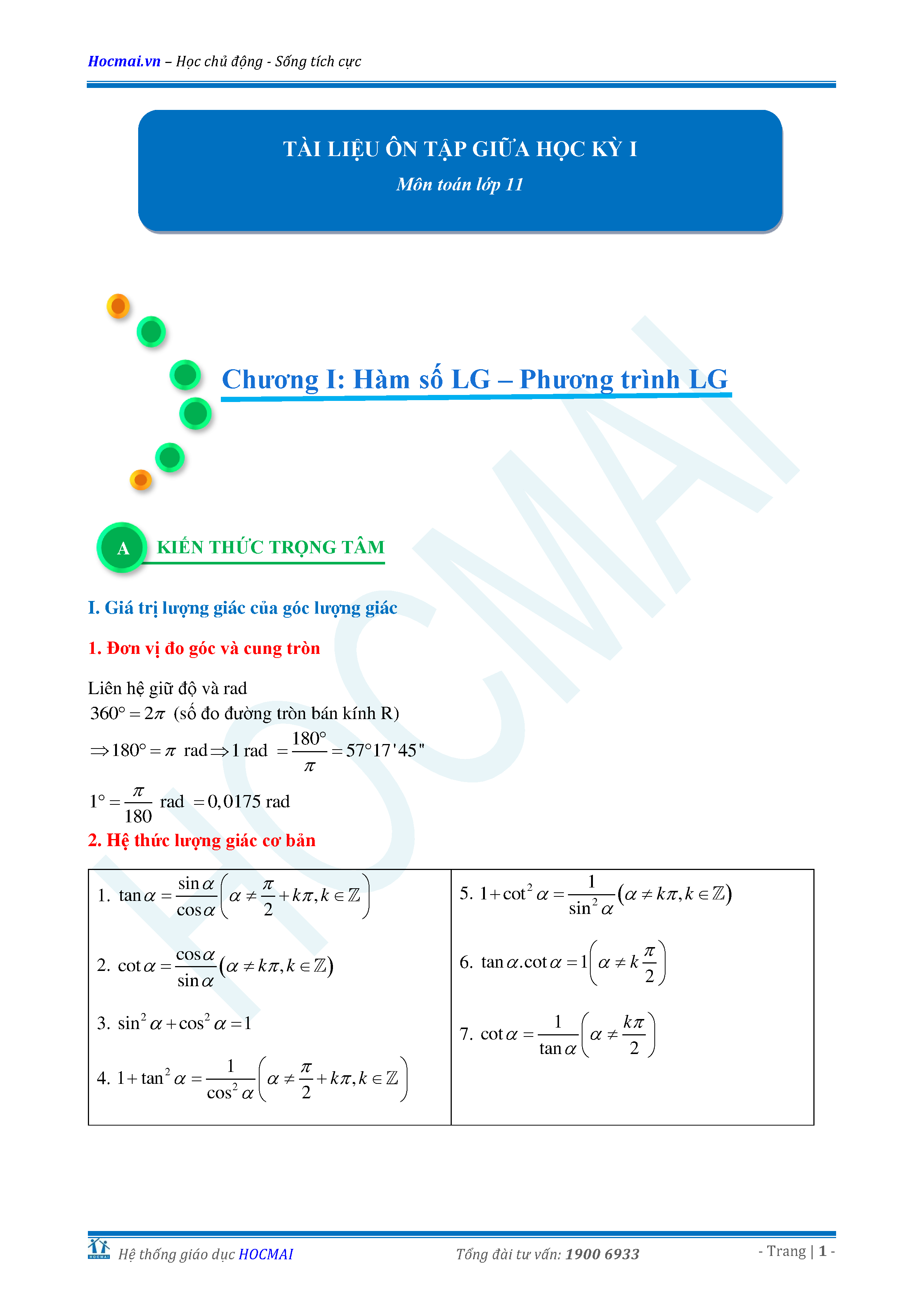Tài liệu ôn thi giữa học kì I - Toán 11 CD