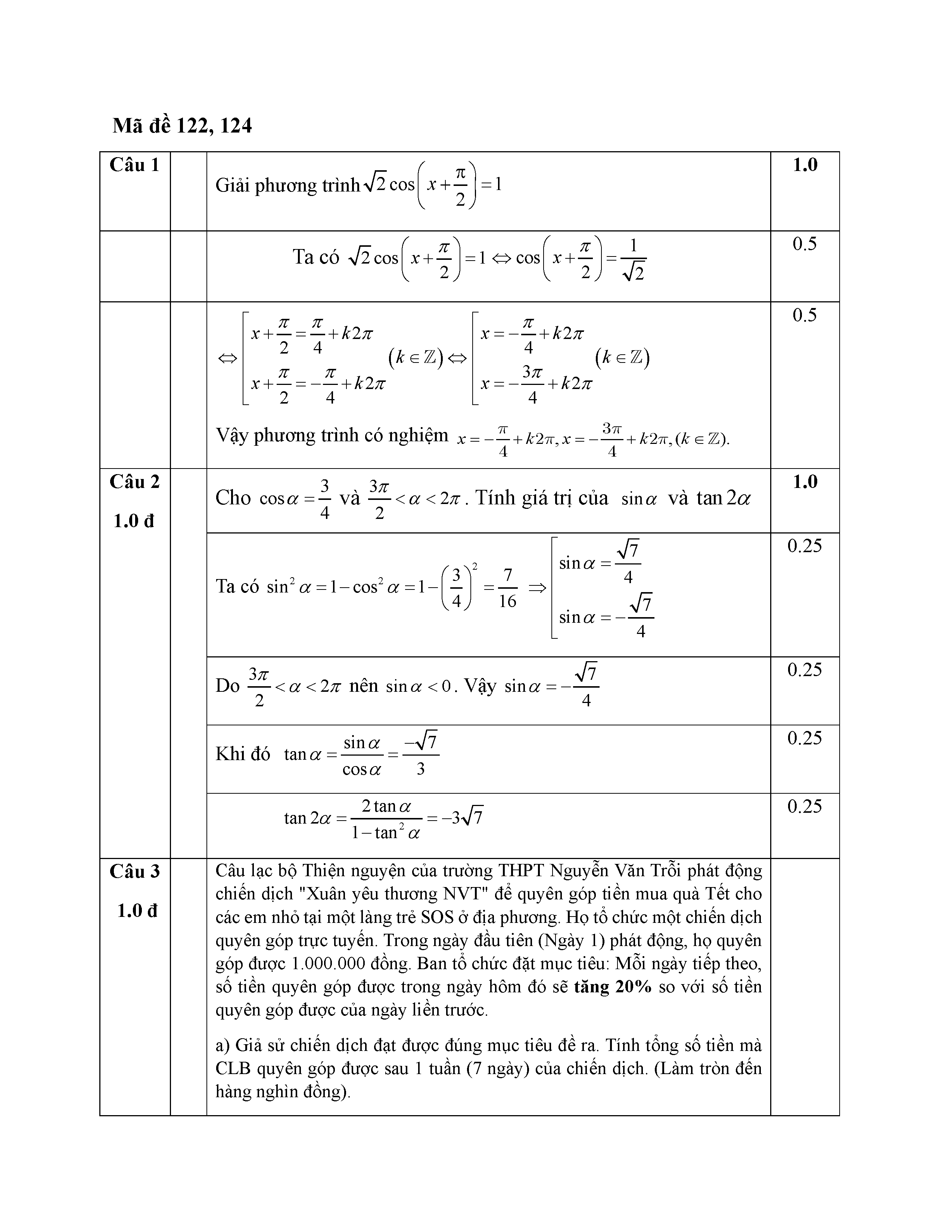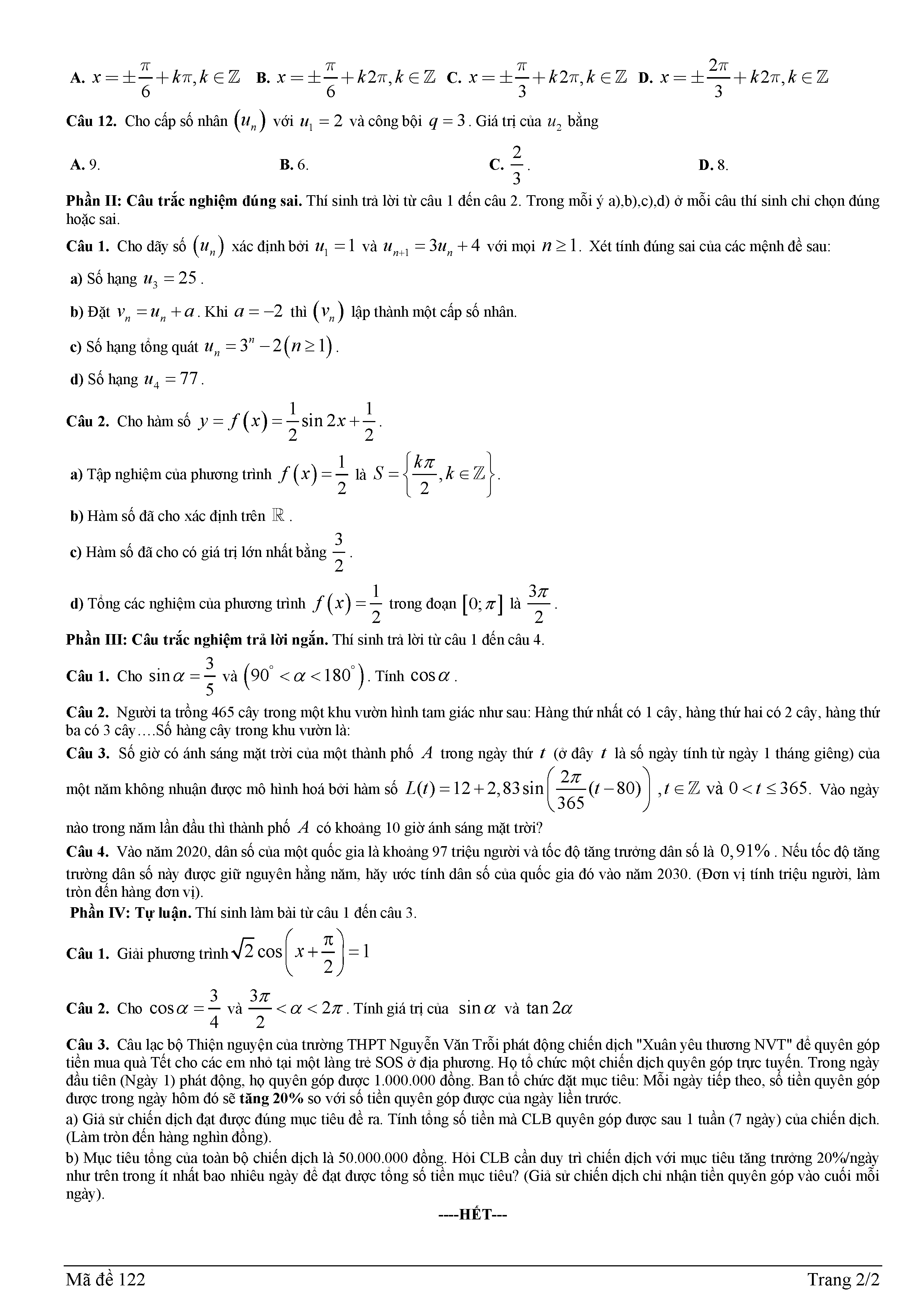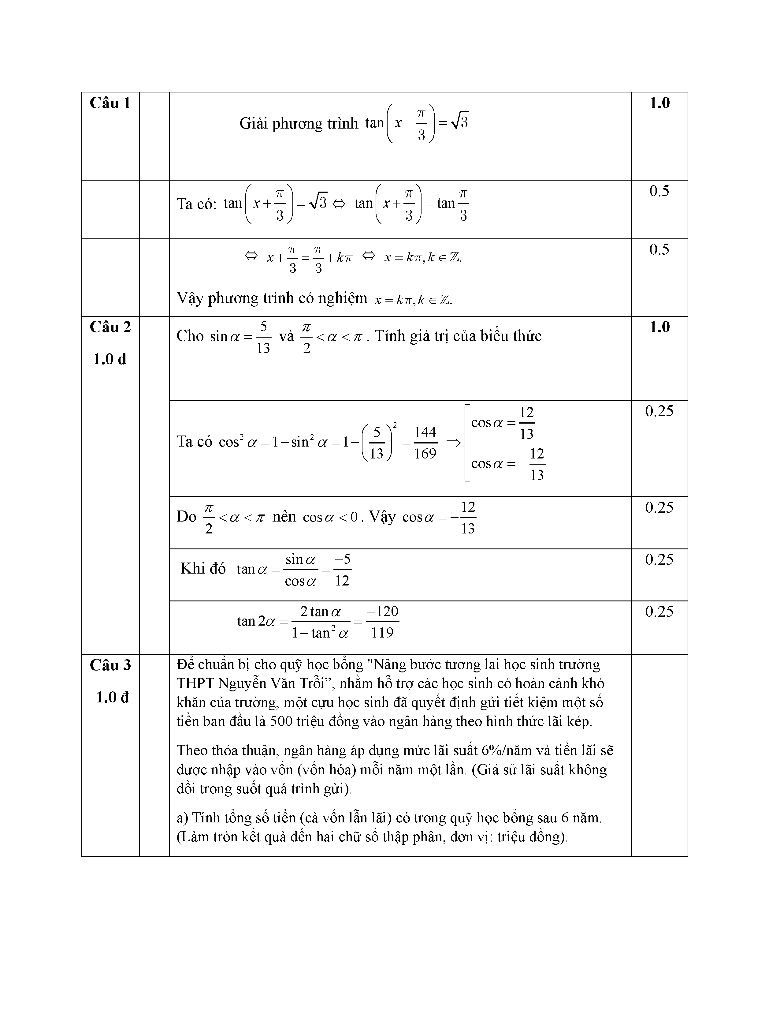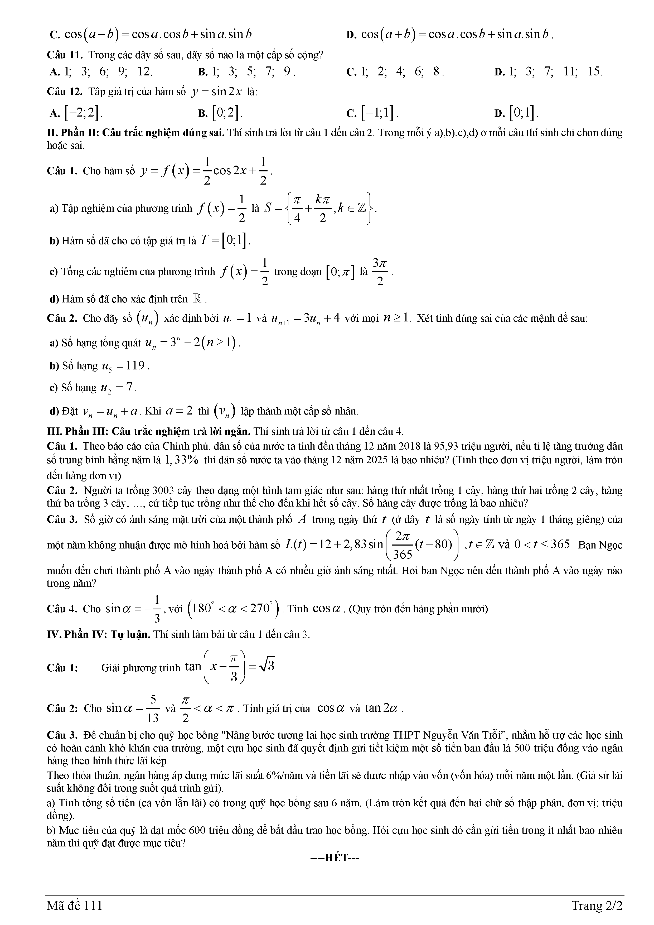 Đề giữa kỳ 1 Toán 11 năm 2025 – 2026 trường THPT Nguyễn Văn Trỗi – Hà Tĩnh kèm đáp án
