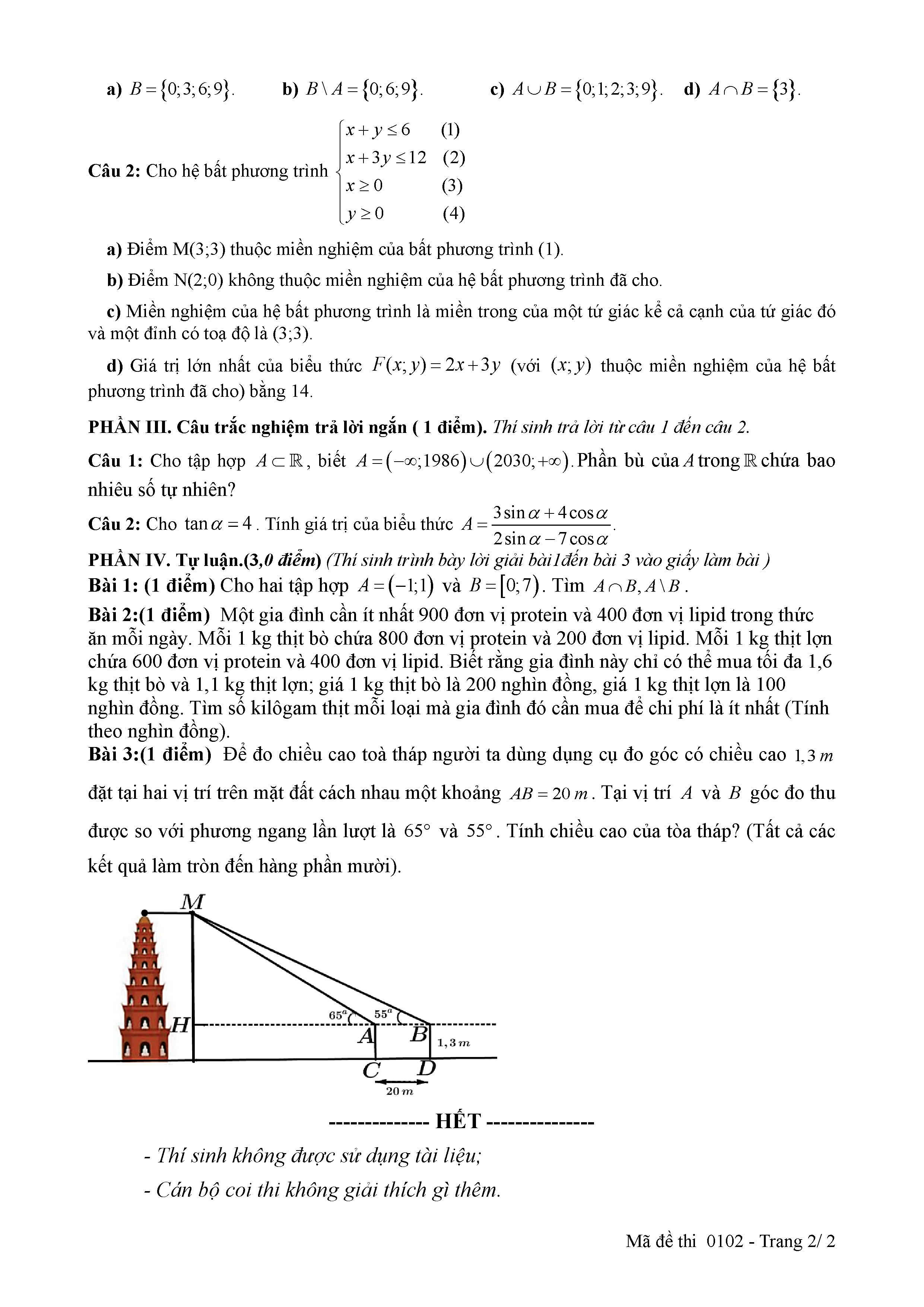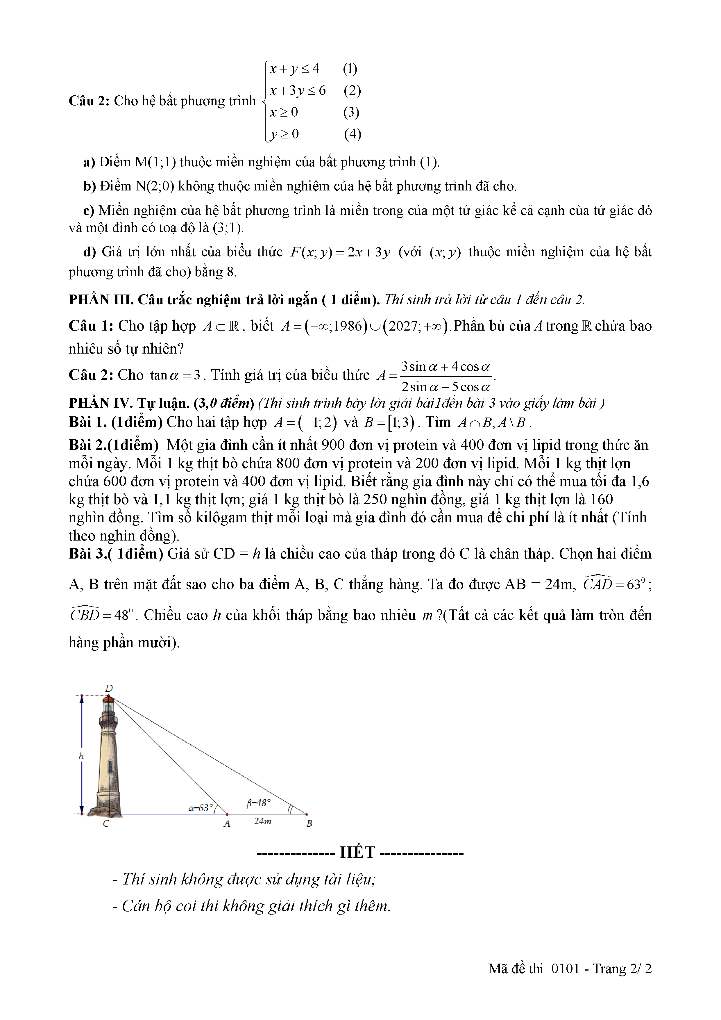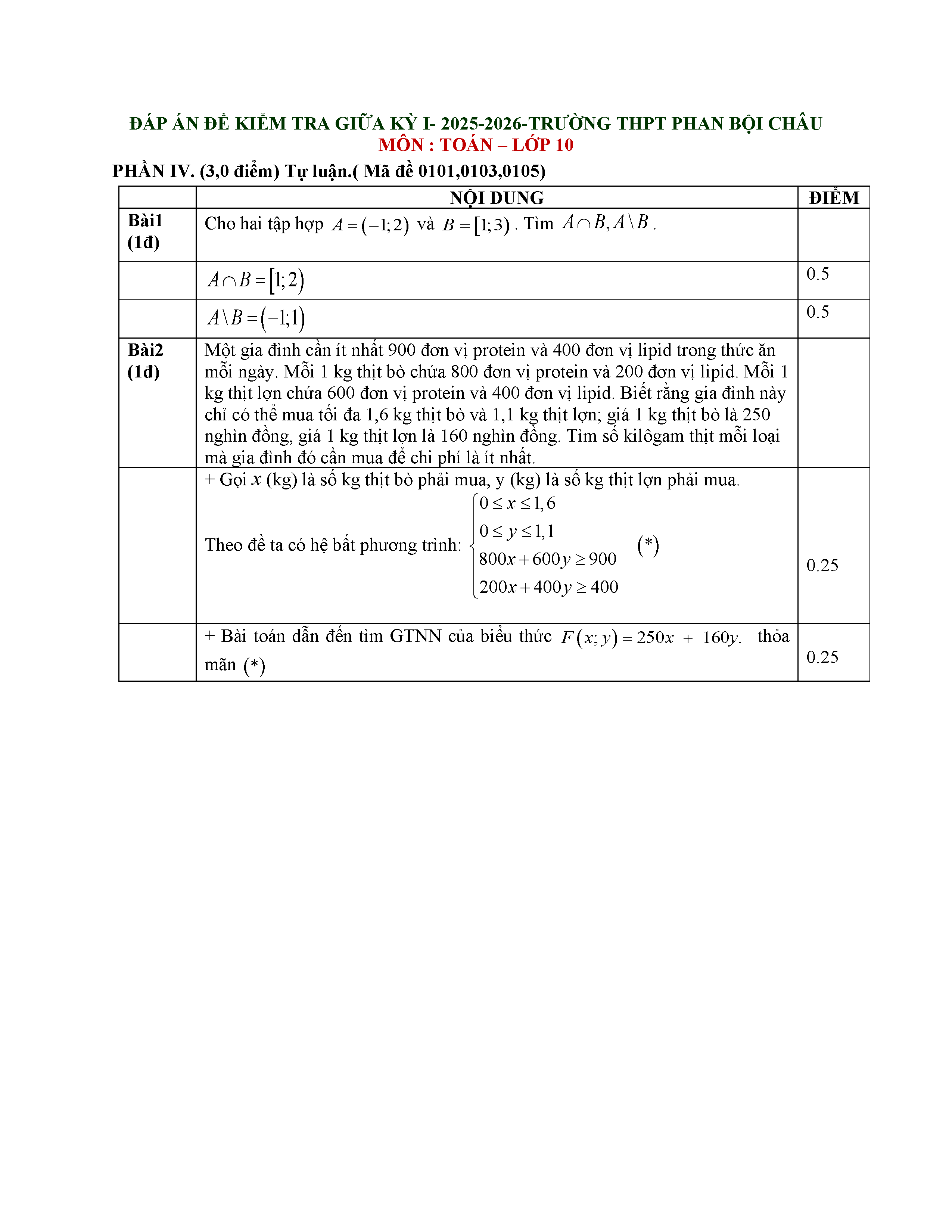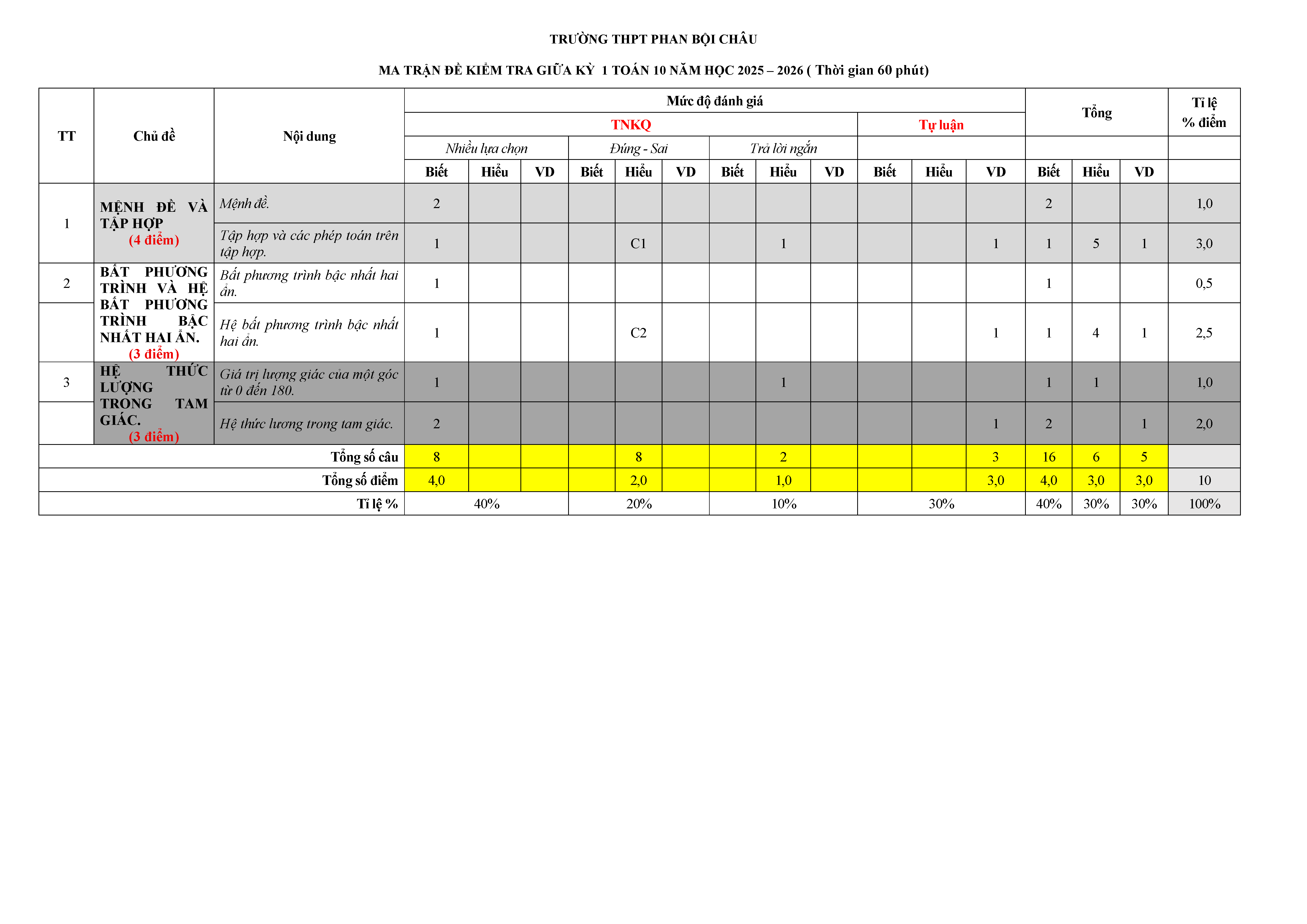 Đề giữa học kỳ 1 Toán 10 năm 2025 – 2026 trường THPT Phan Bội Châu – Đà Nẵng kèm đáp án và lời giải chi tiết