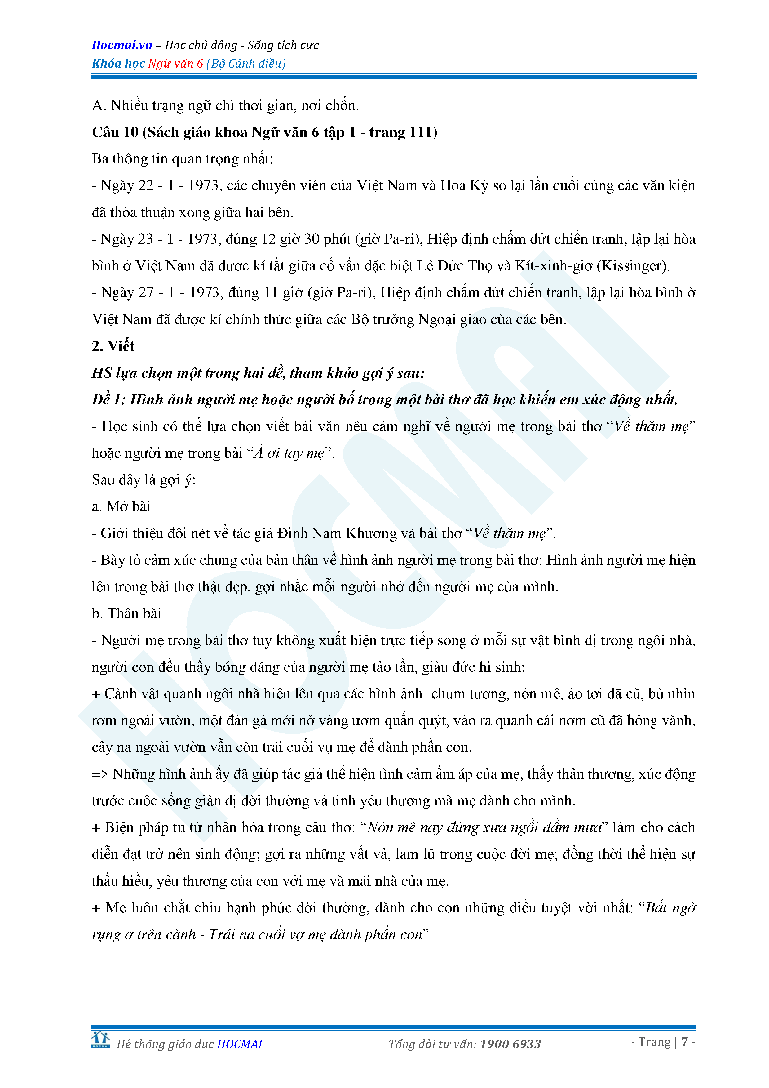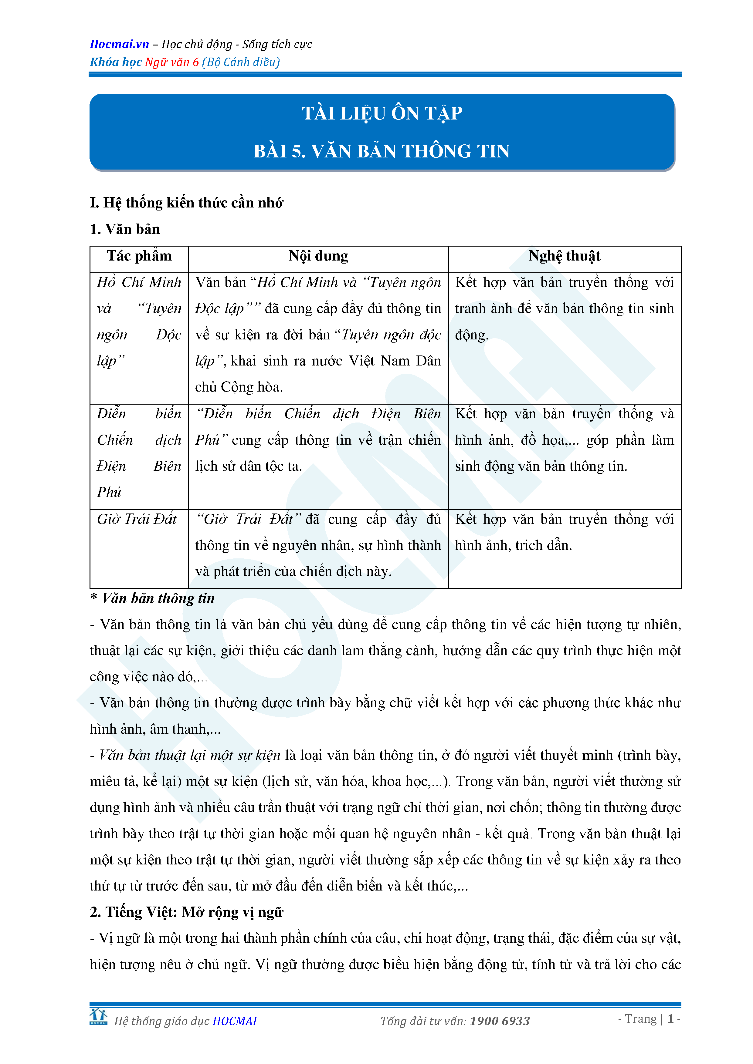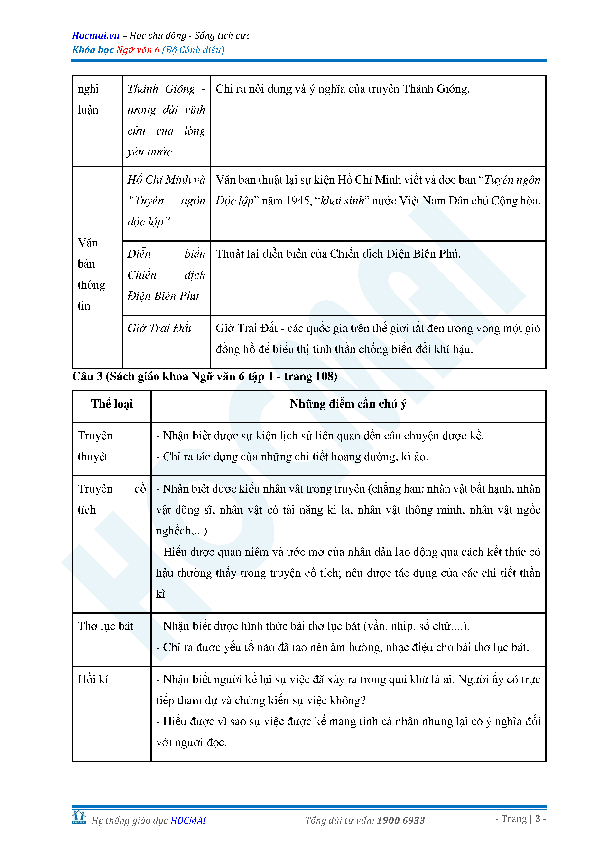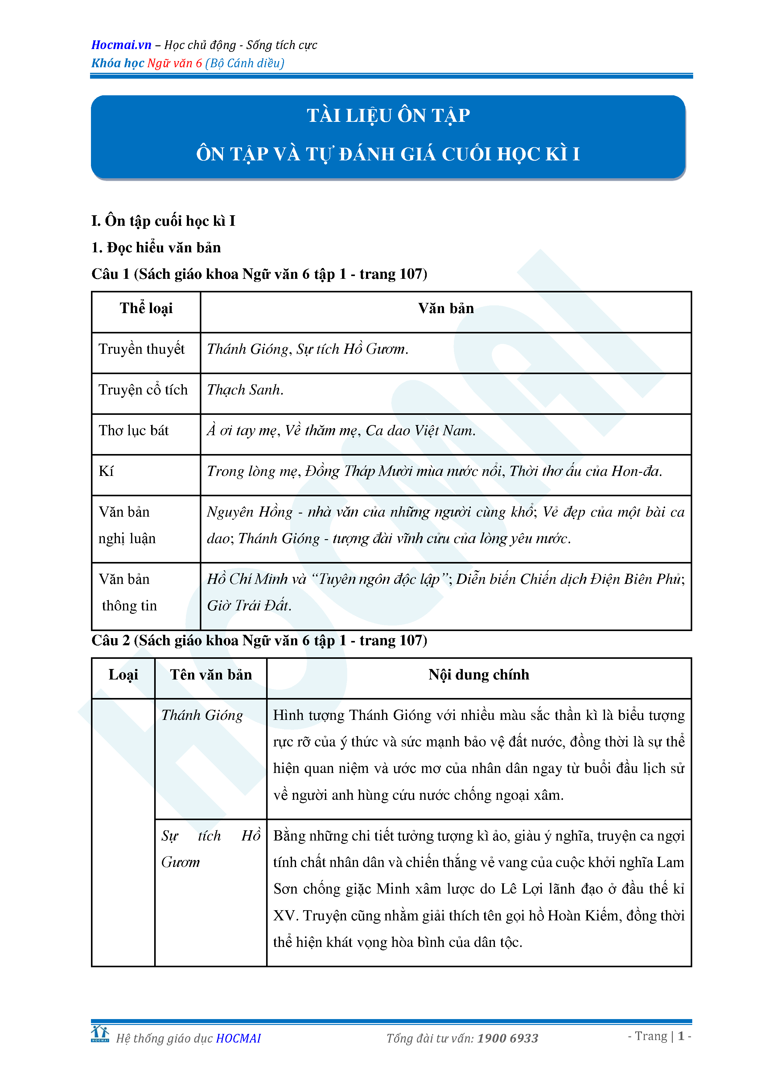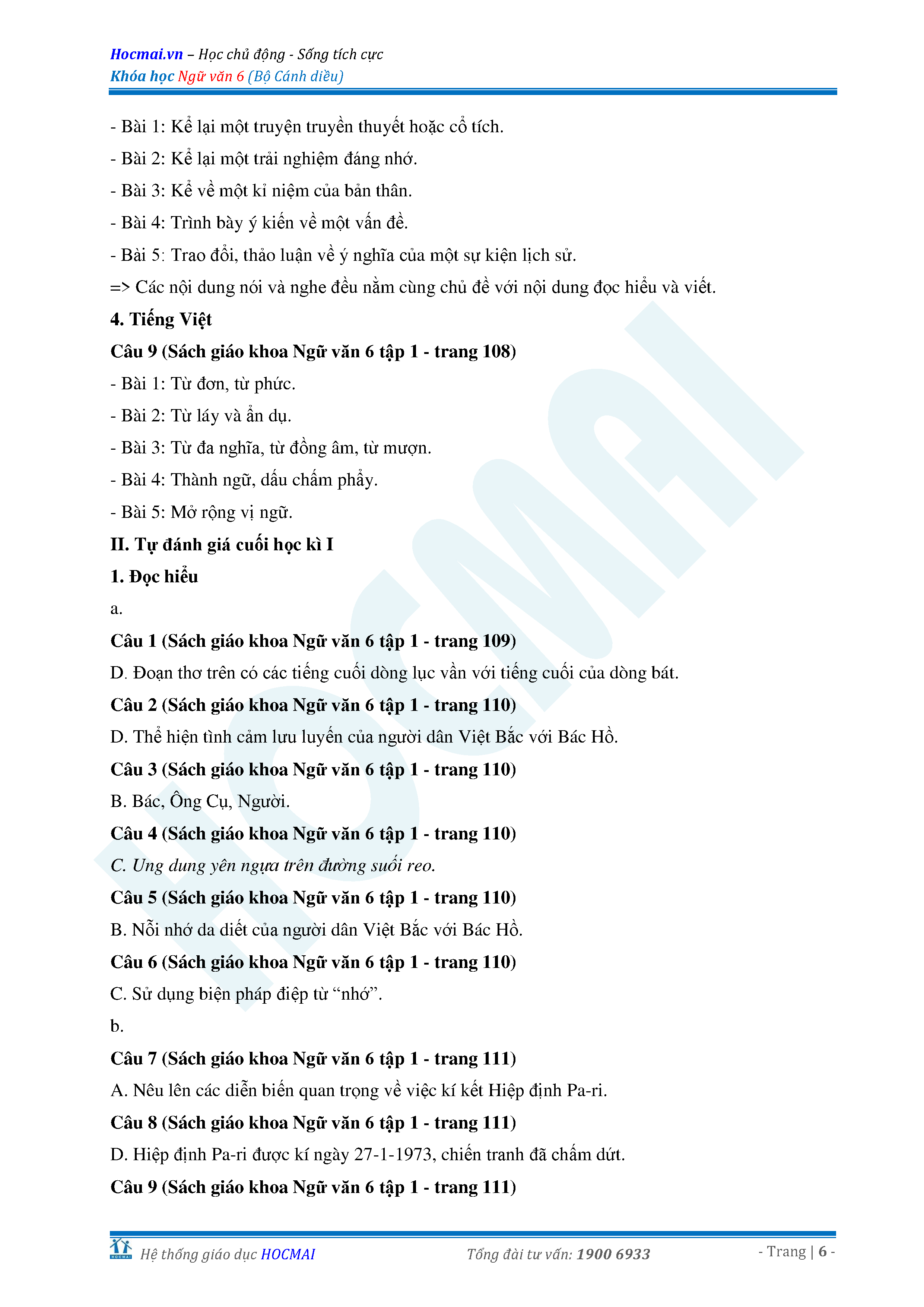 Tài liệu ôn thi học kì I - Ngữ văn 6 CD
