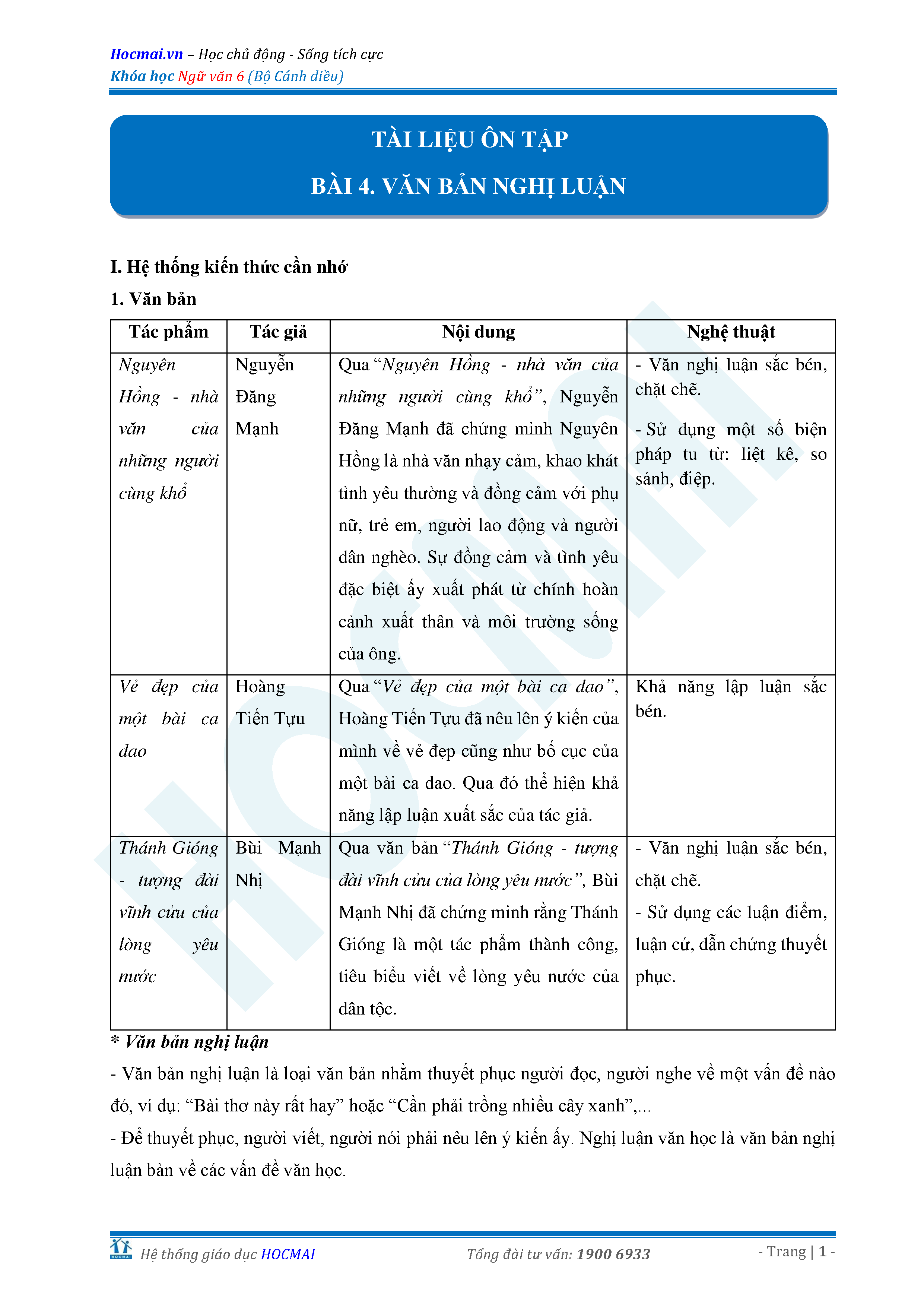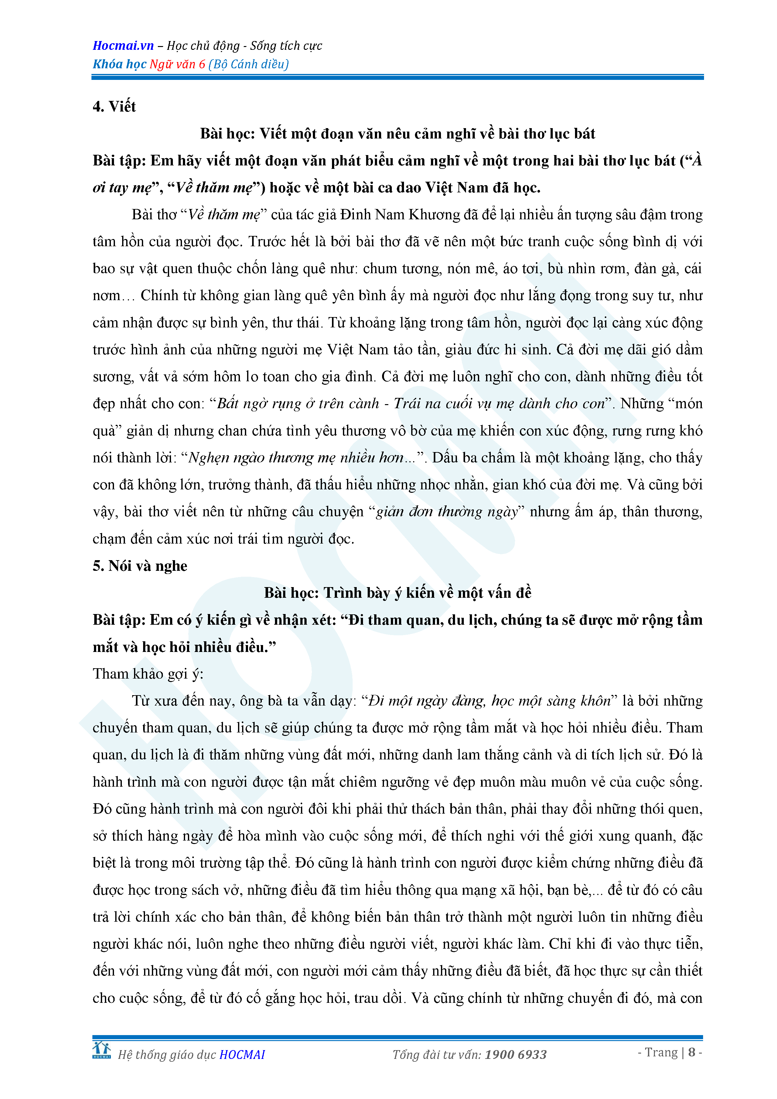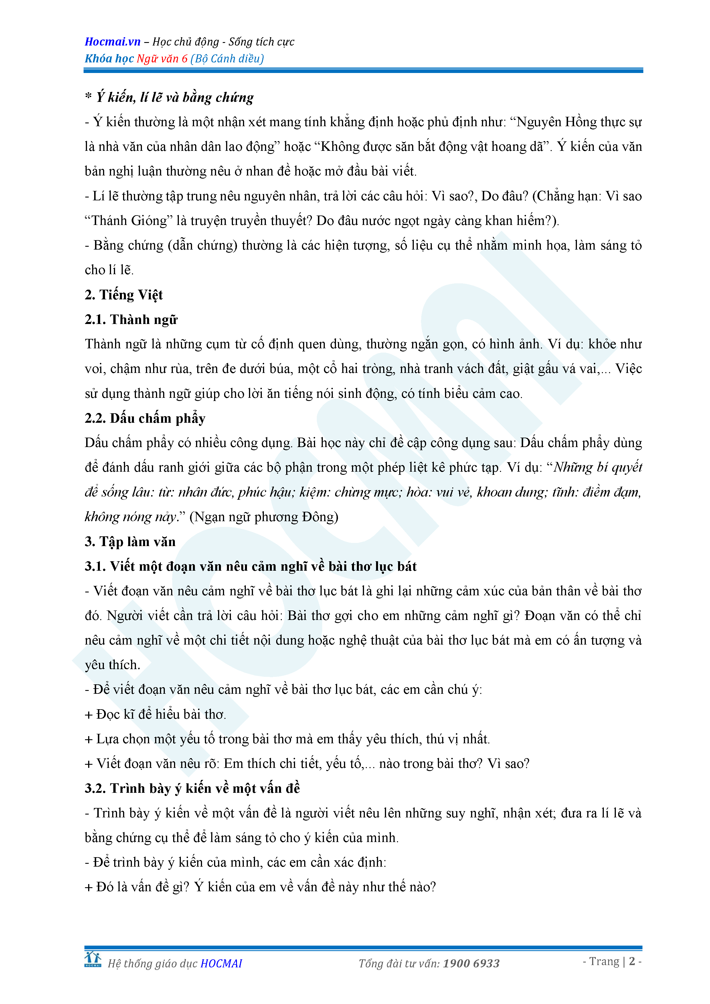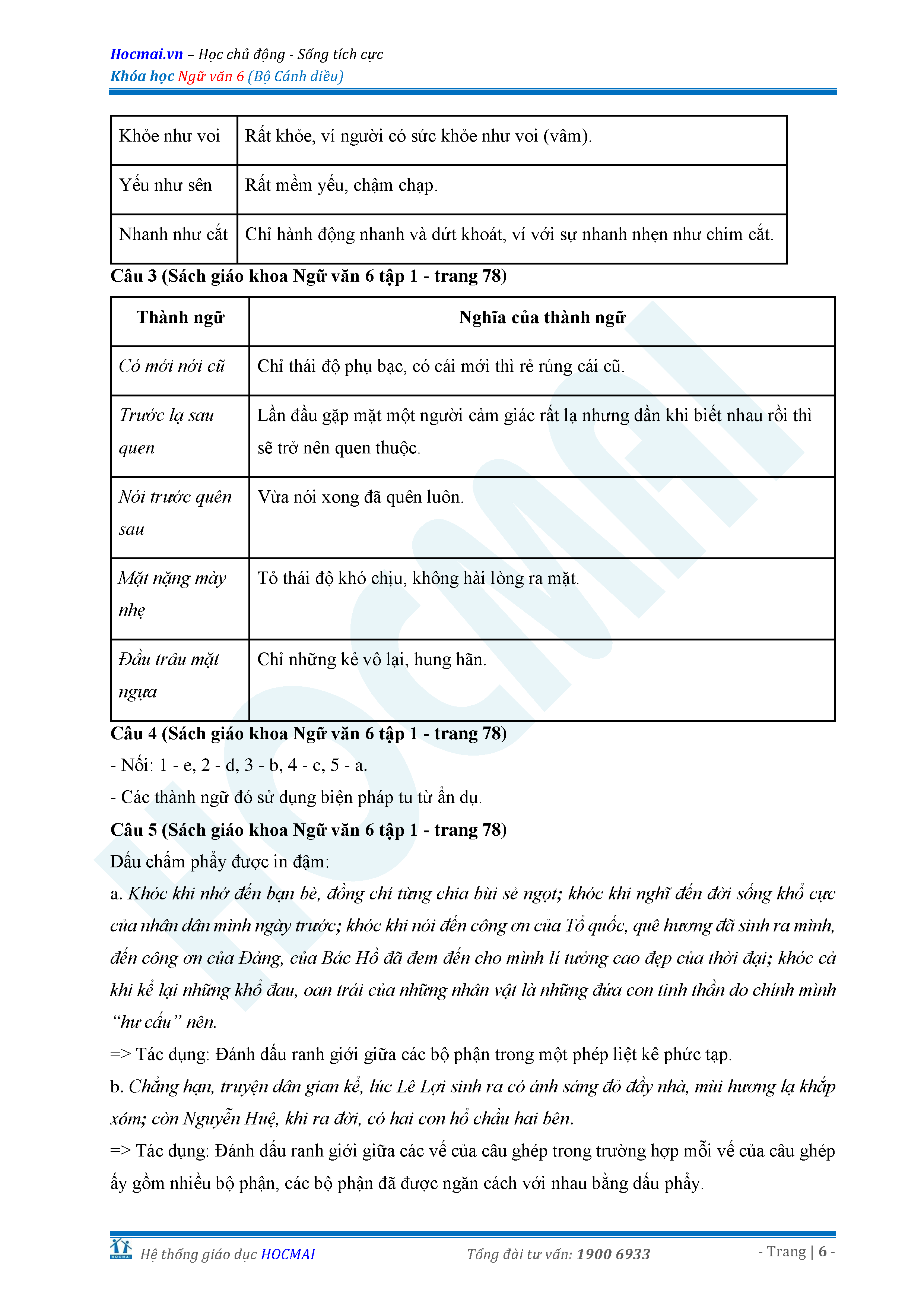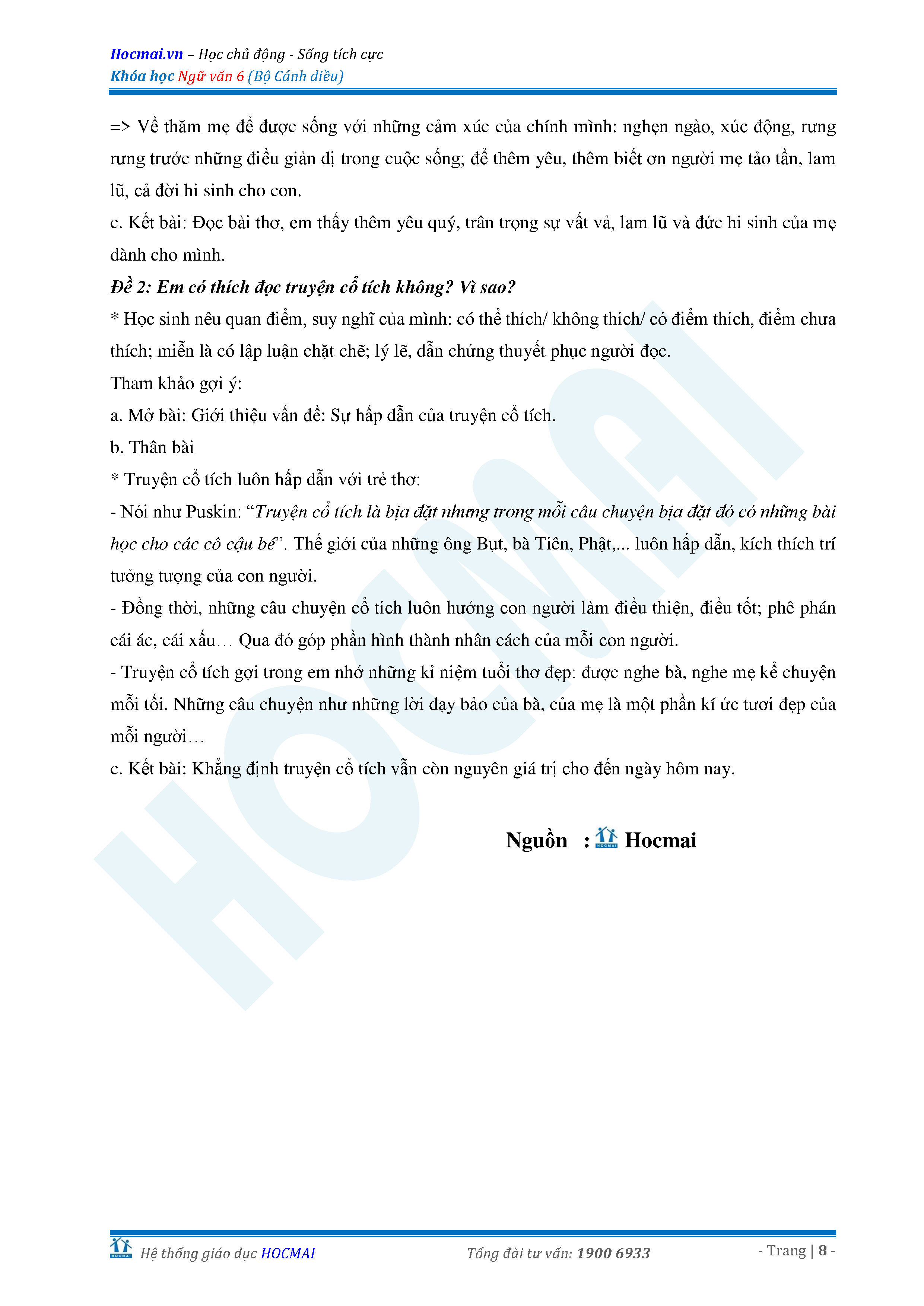 Tài liệu ôn thi học kì I - Ngữ văn 6 CD