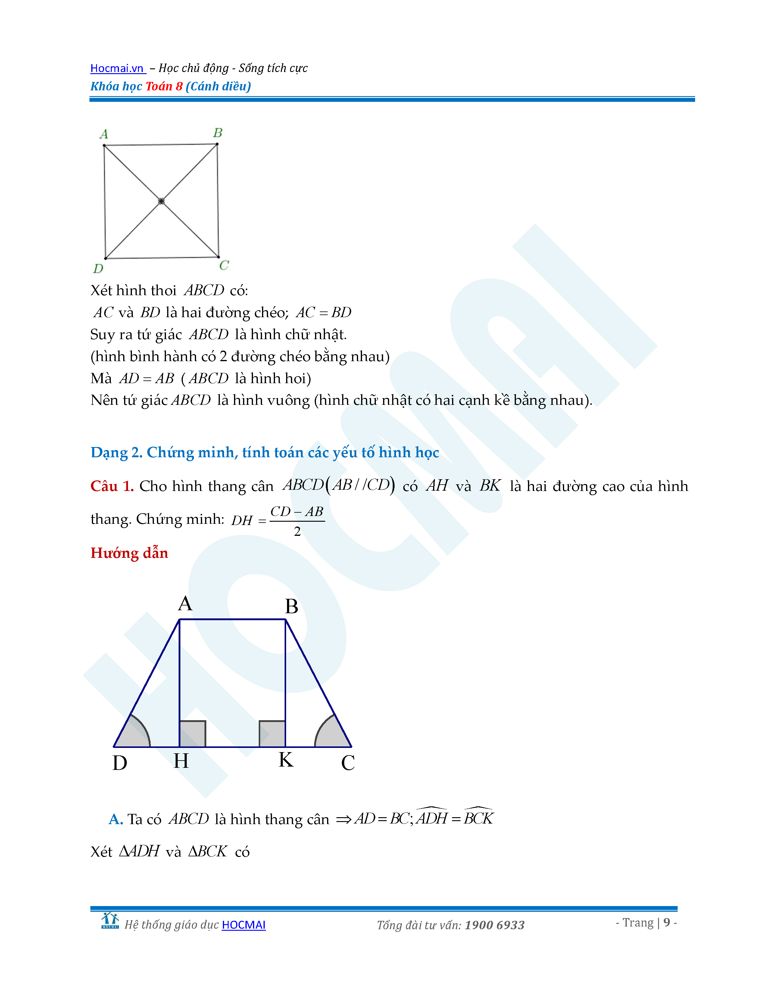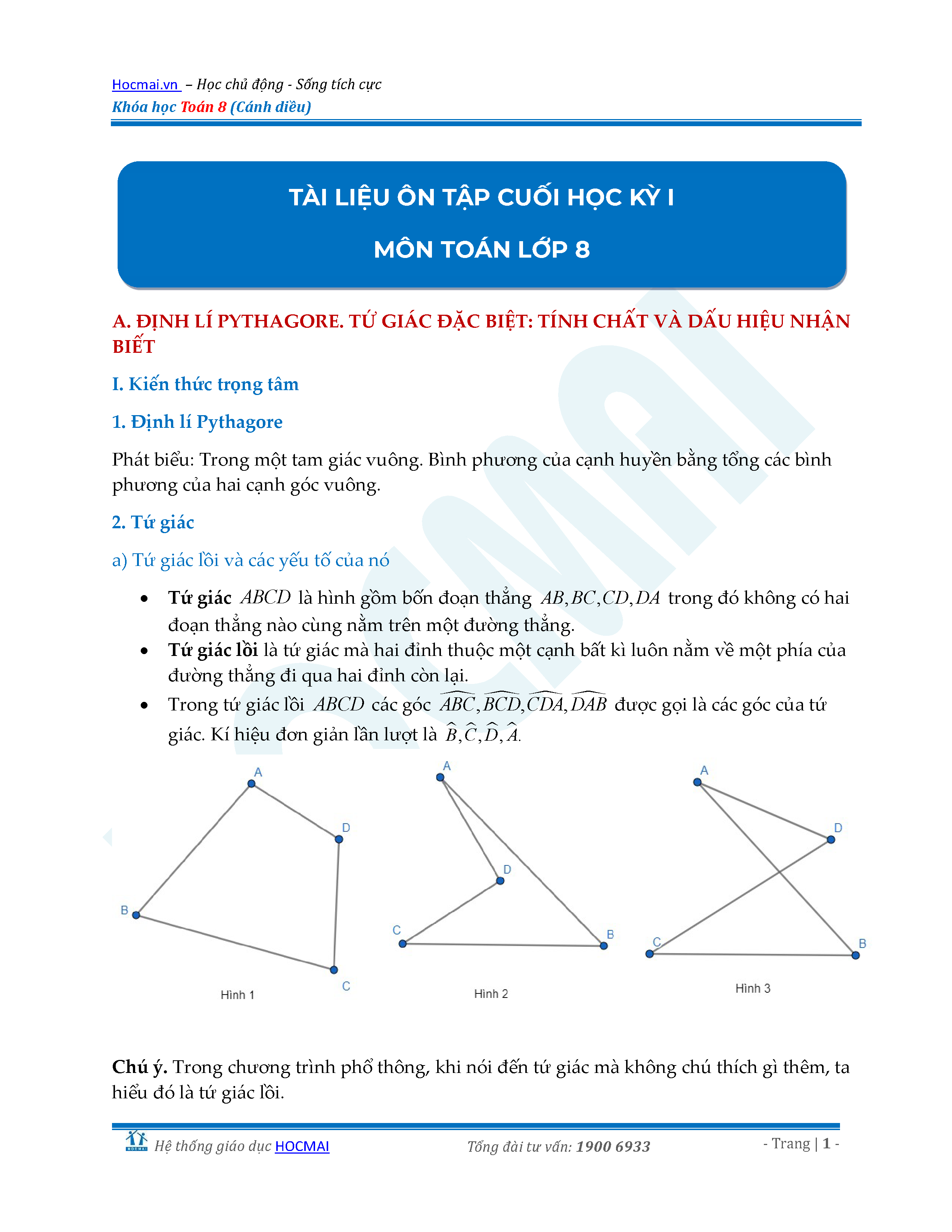 Tài liệu ôn thi học kì I - Toán 8 CD