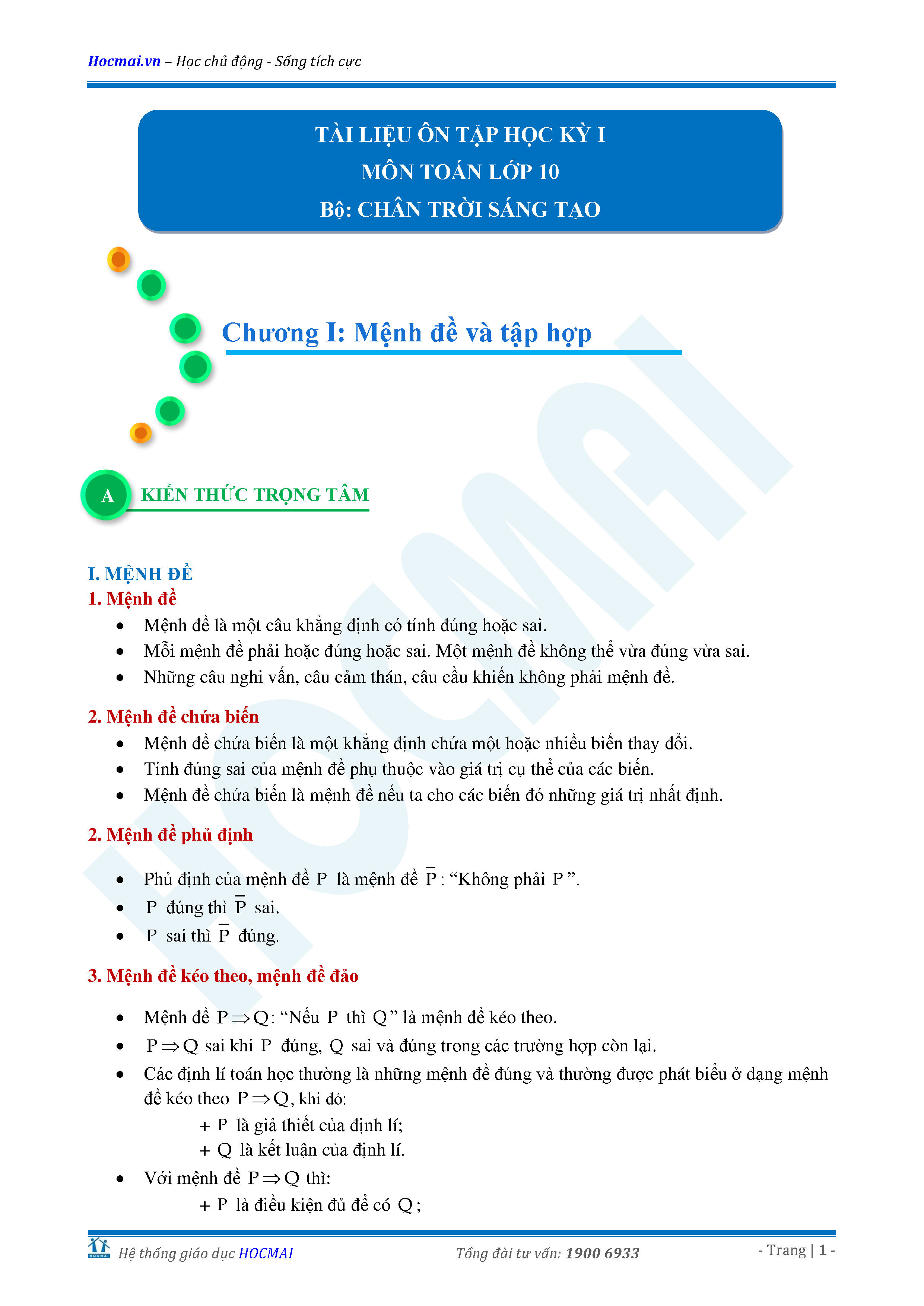 Tài liệu ôn thi học kì I - Toán 10 CTST
