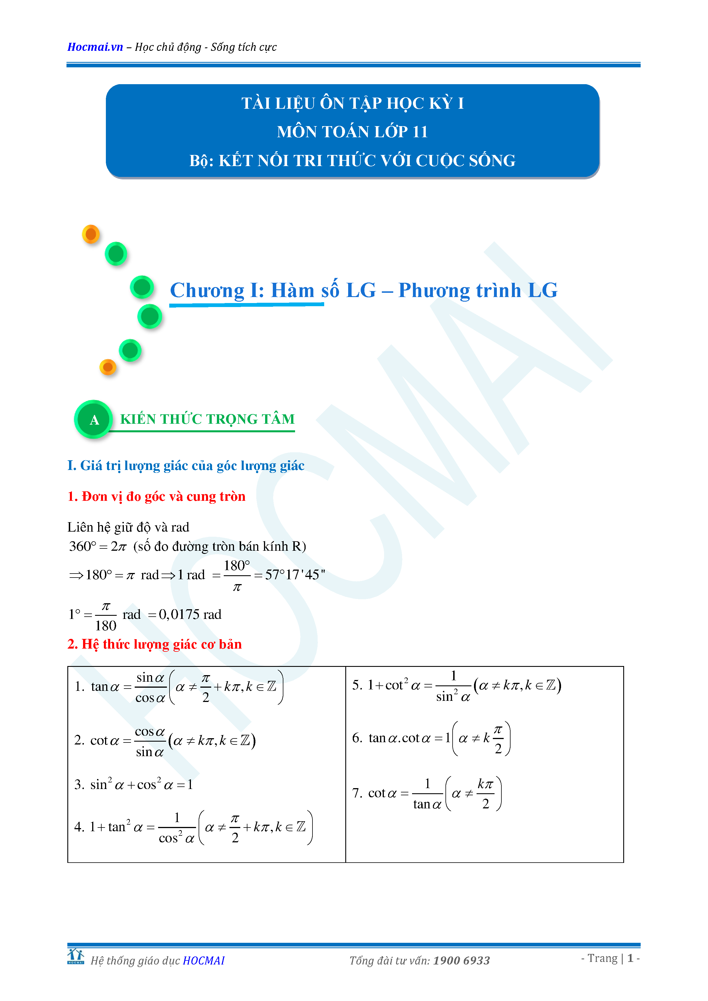 Tài liệu ôn thi học kì I - Toán 11 KNTT