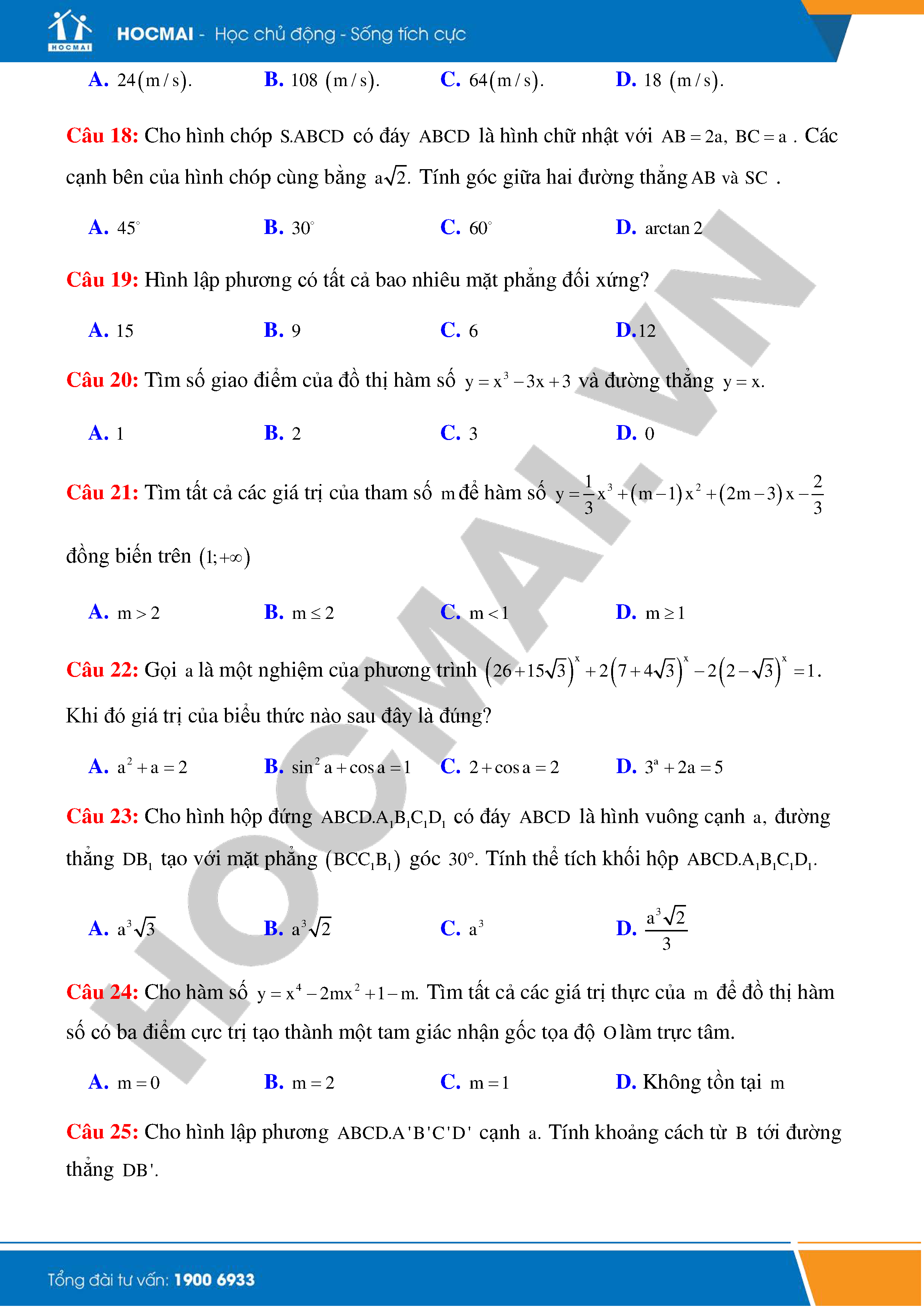 Đề thi thử THPT QG Môn Toán - Năm học 2017-2018 - THPT Chuyên Đại Học Vinh - Nghệ An được HOCMAI sưu tầm. Đề gồm 50 câu hỏi dưới hình thức trắc nghiệm, giúp học sinh tự đánh giá năng lực bản thân tốt hơn, chuẩn bị kỹ cho kì thi quốc gia sắp tới.
