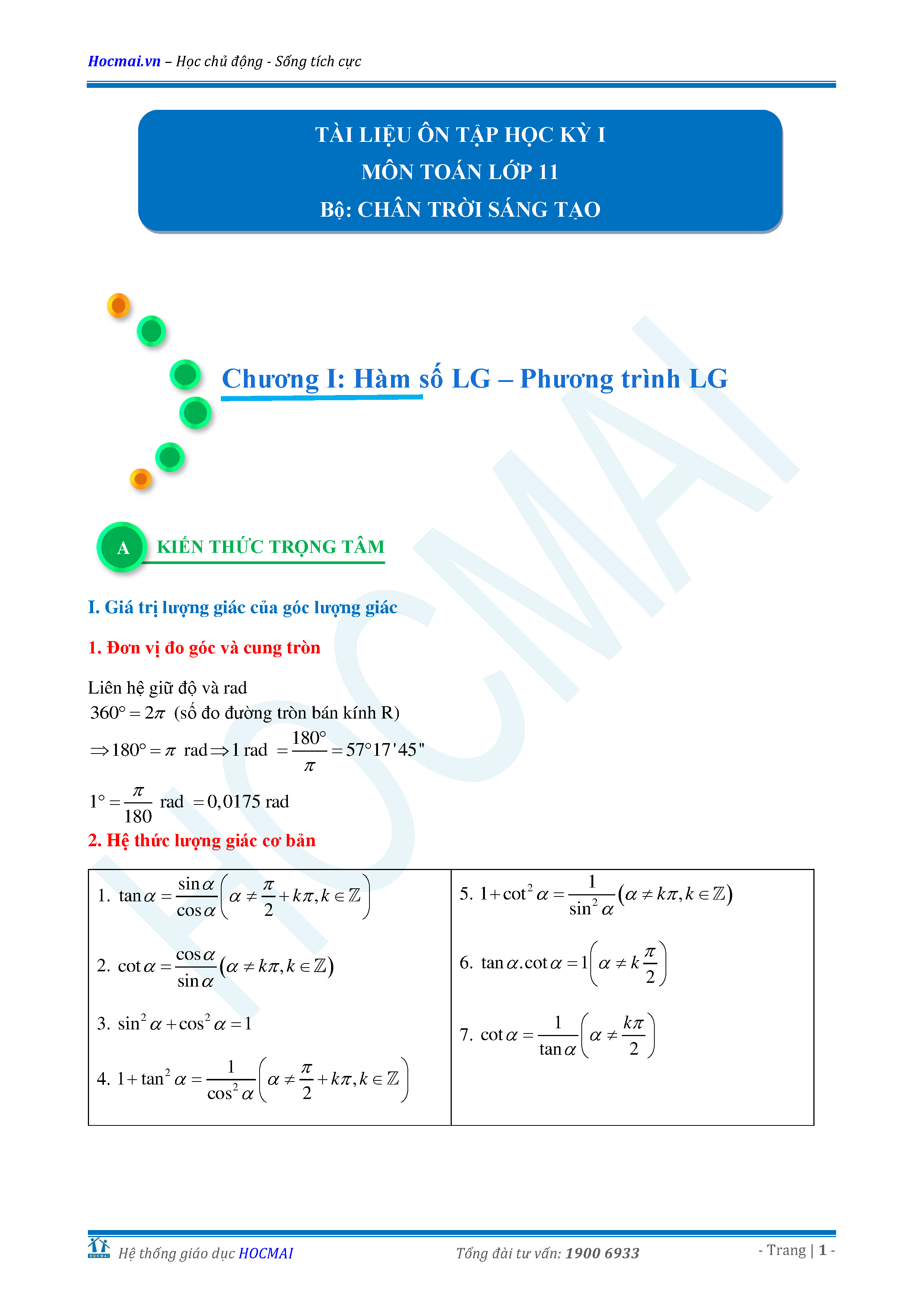 Tài liệu ôn thi học kì I - Toán 11 CTST