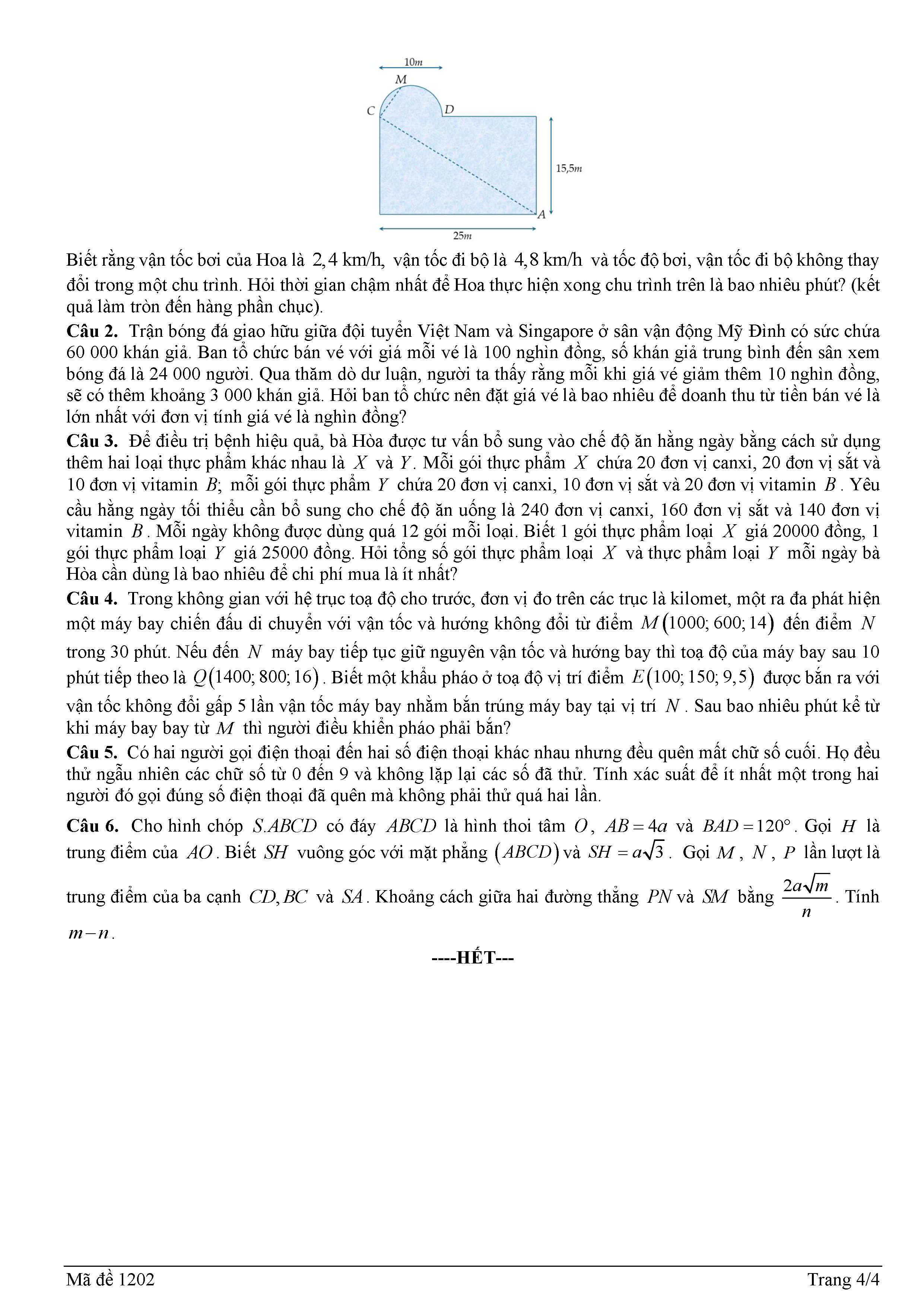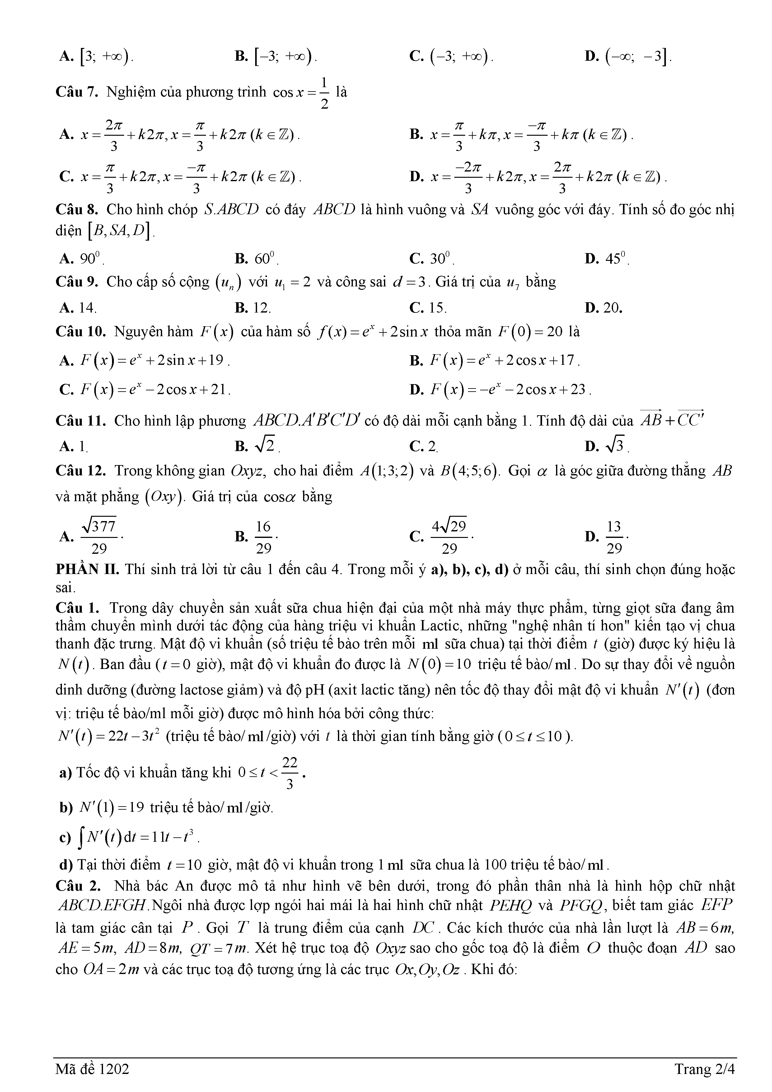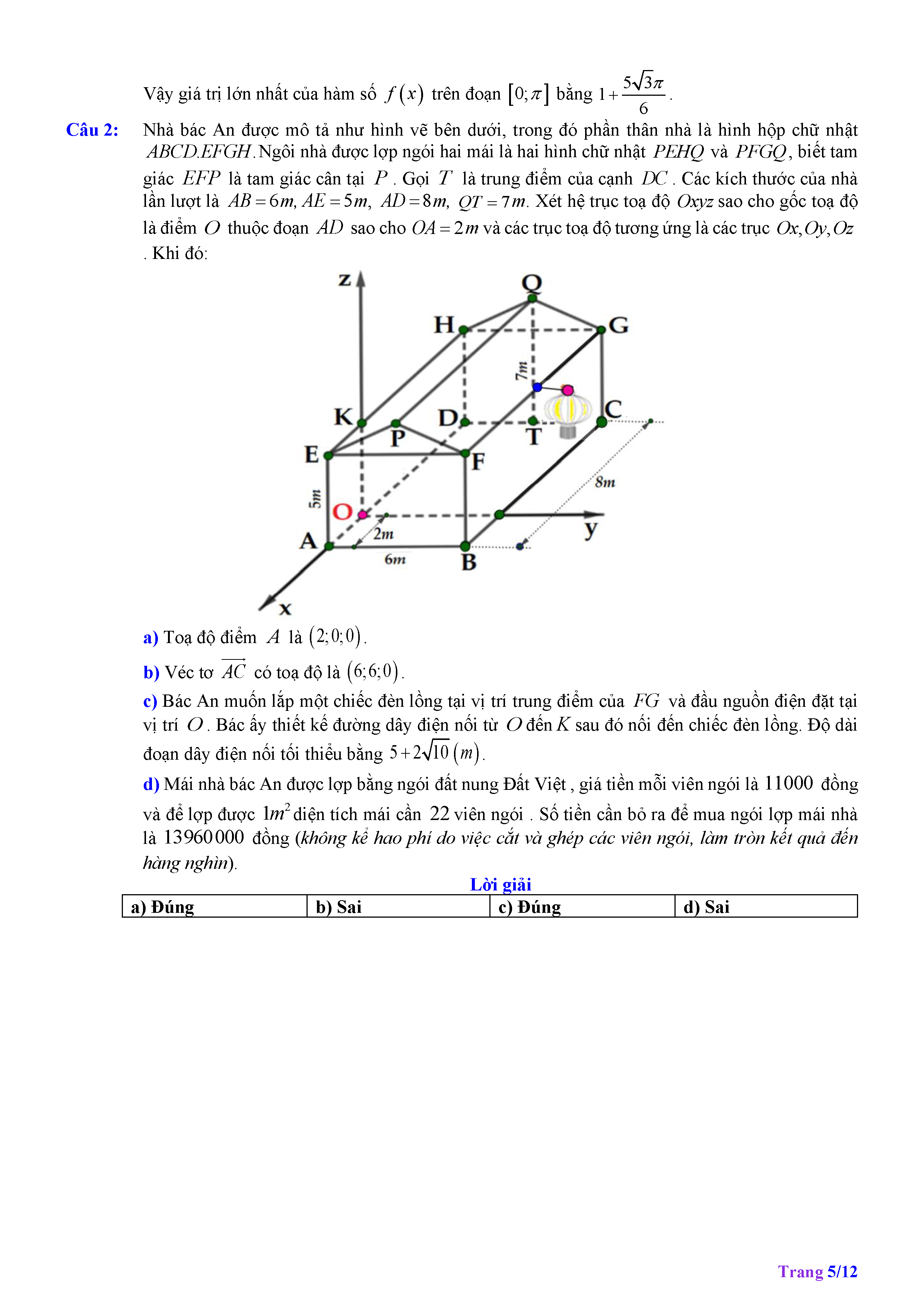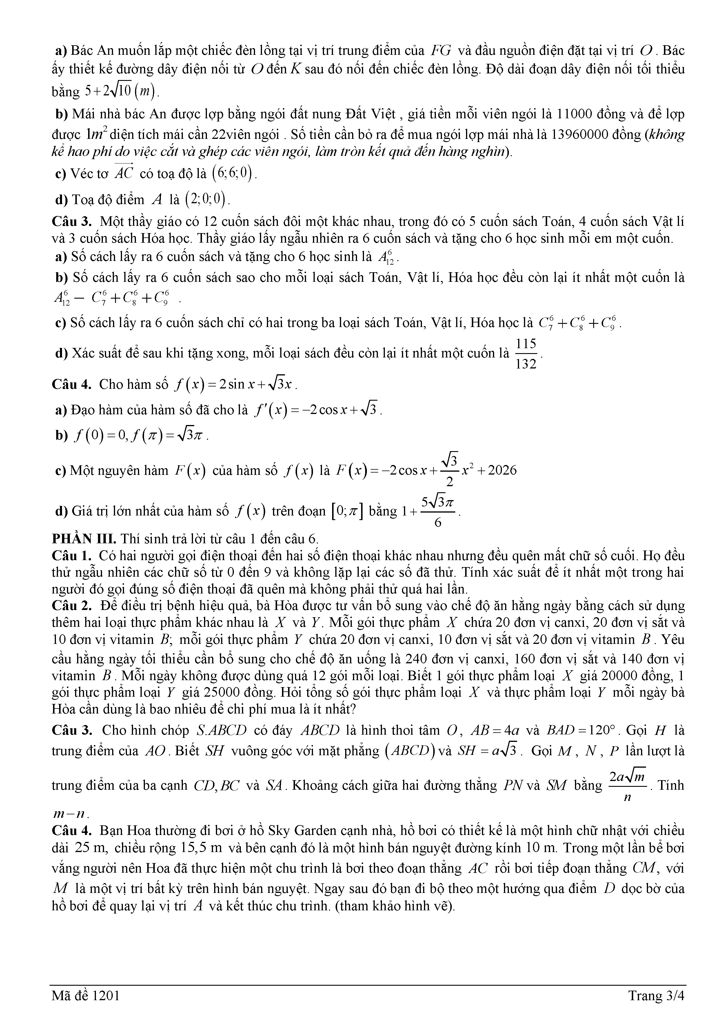 Đề KSCL Toán 12 thi TN THPT 2026 lần 1 trường THPT Nguyễn Quán Nho – Thanh Hóa kèm đáp án và lời giải chi tiết