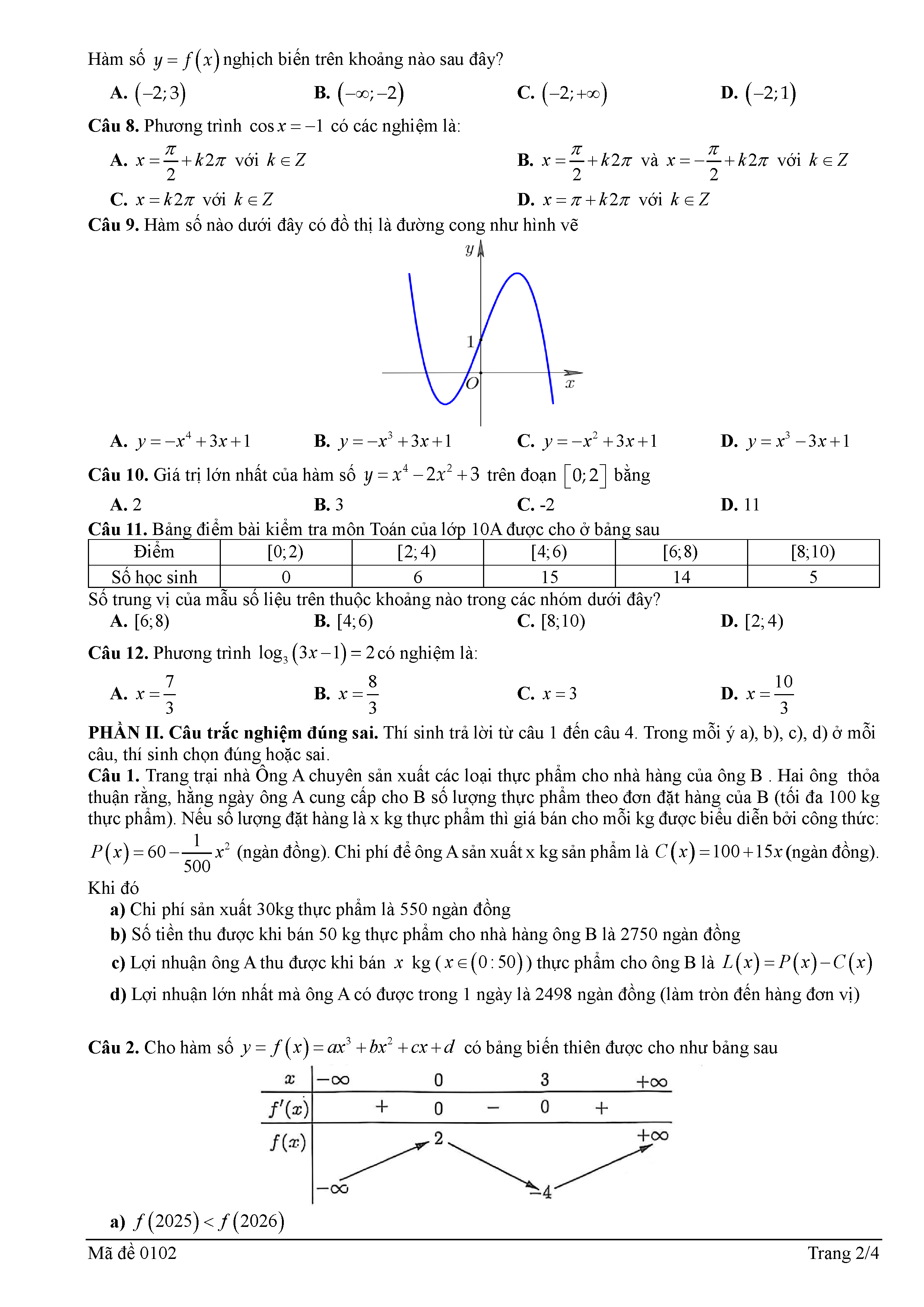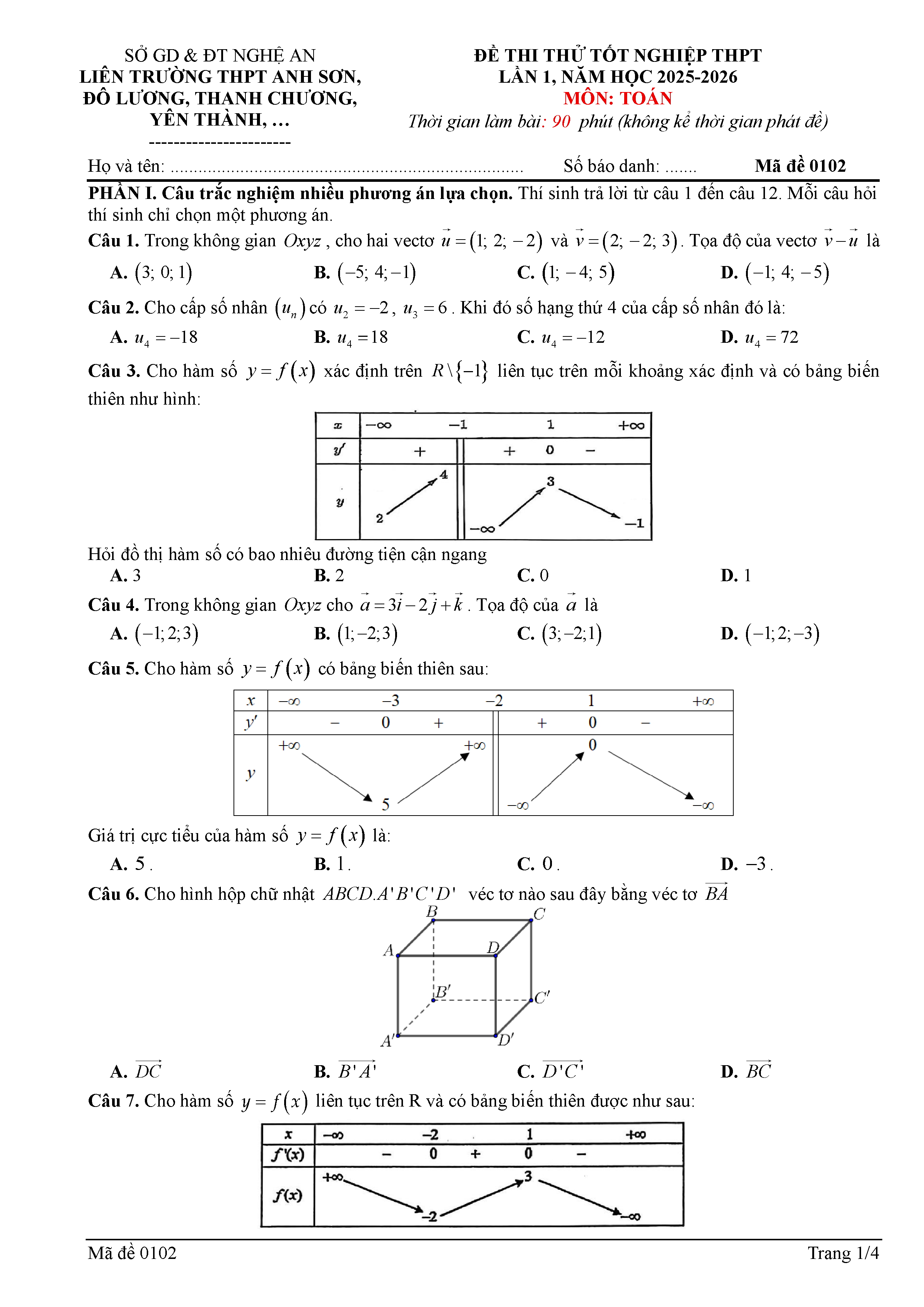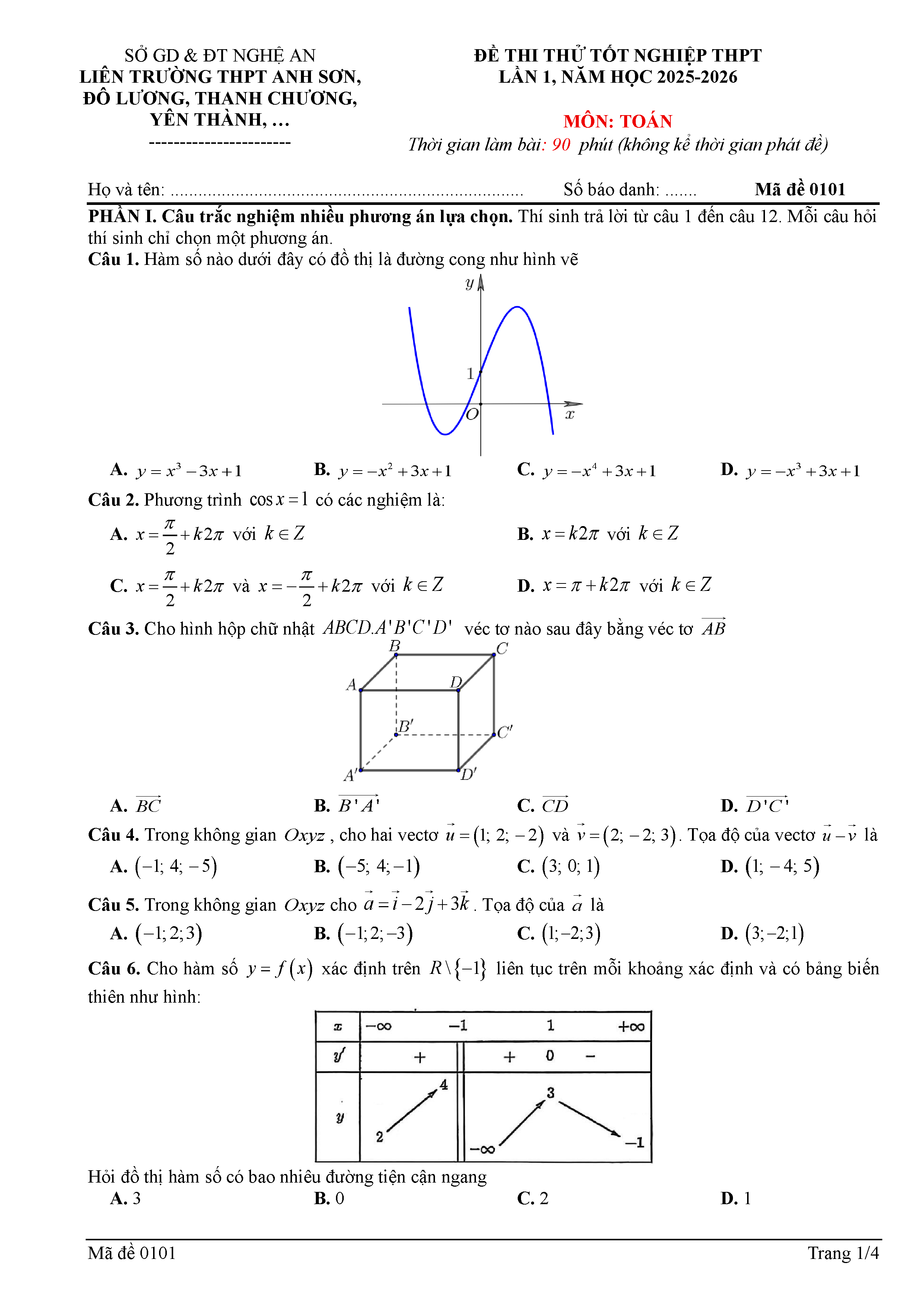Đề thi thử TN THPT 2026 môn Toán lần 1 liên trường THPT – Nghệ An kèm đáp án và lời giải chi tiết