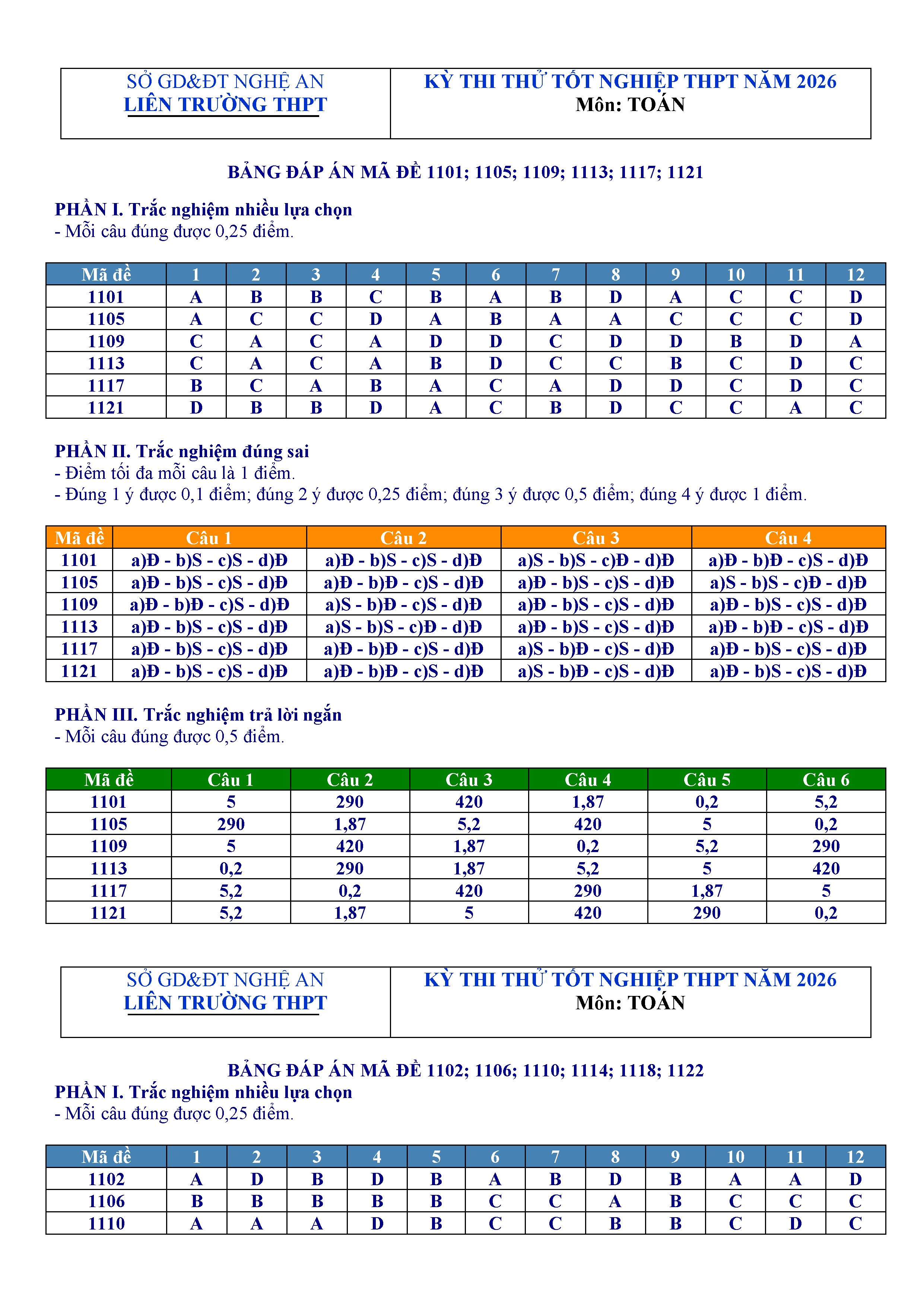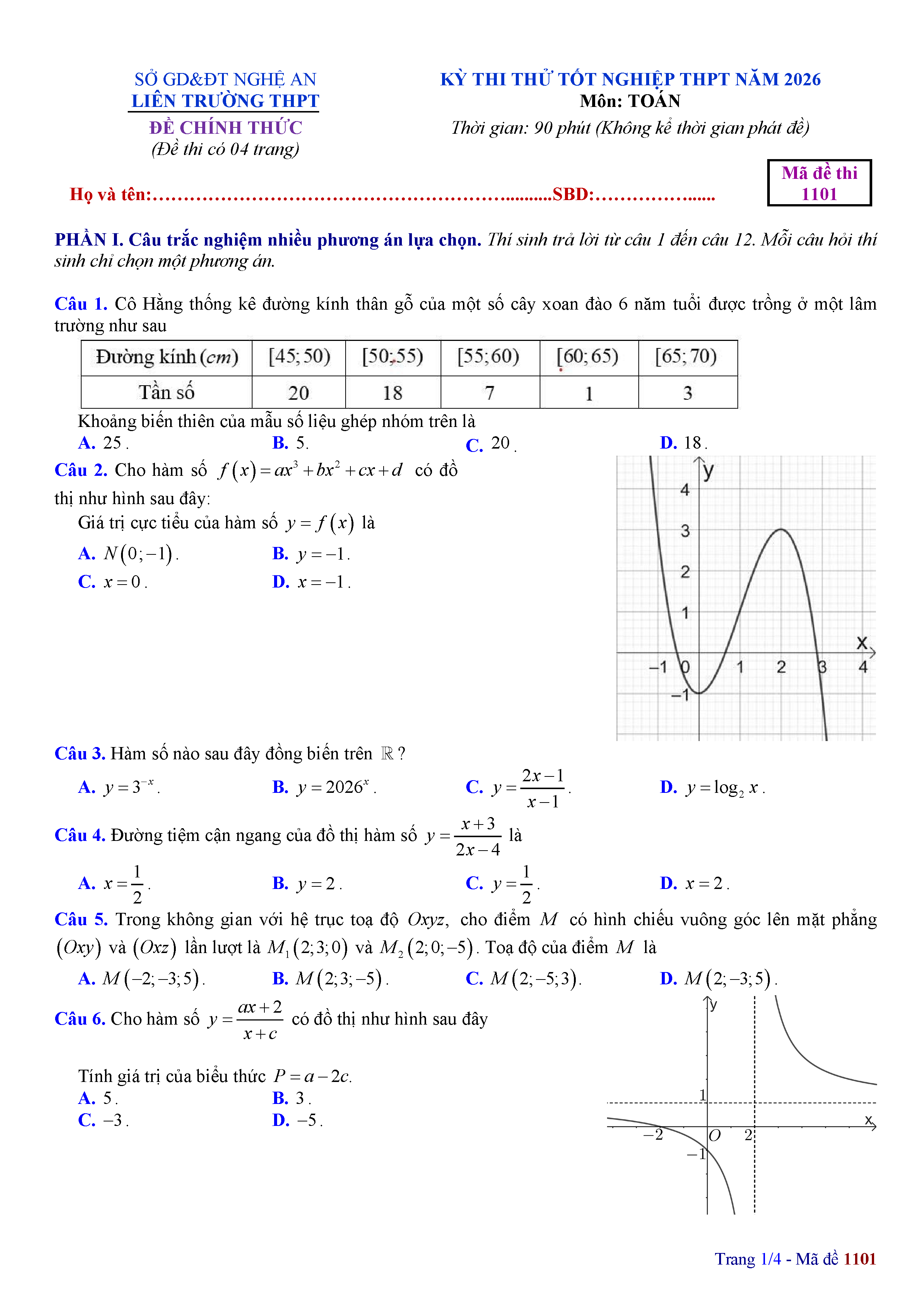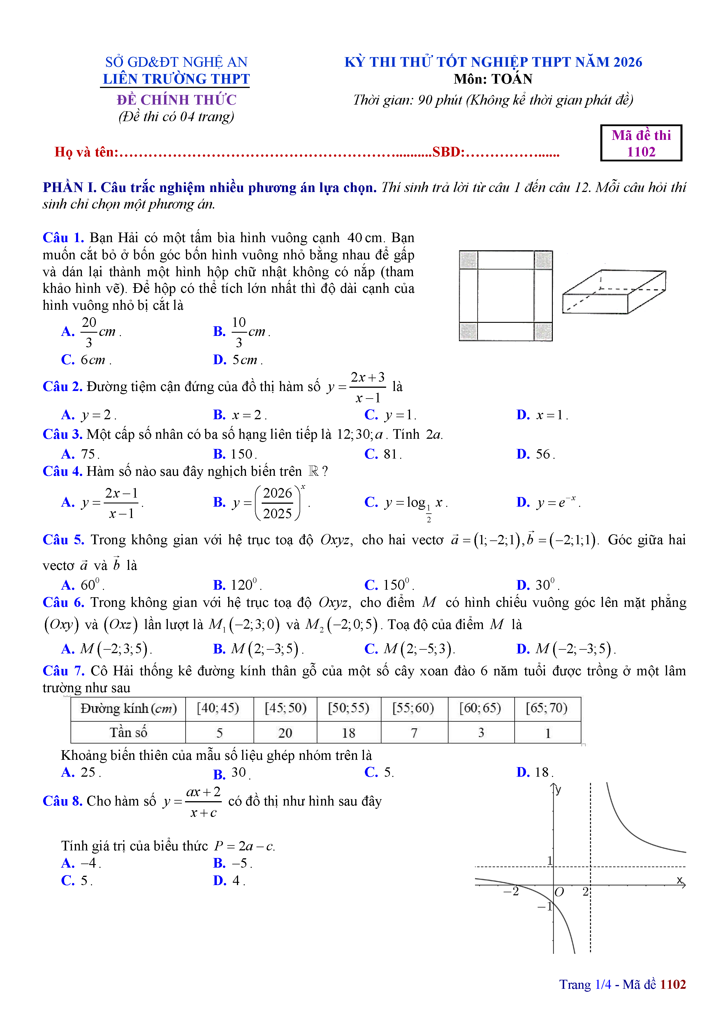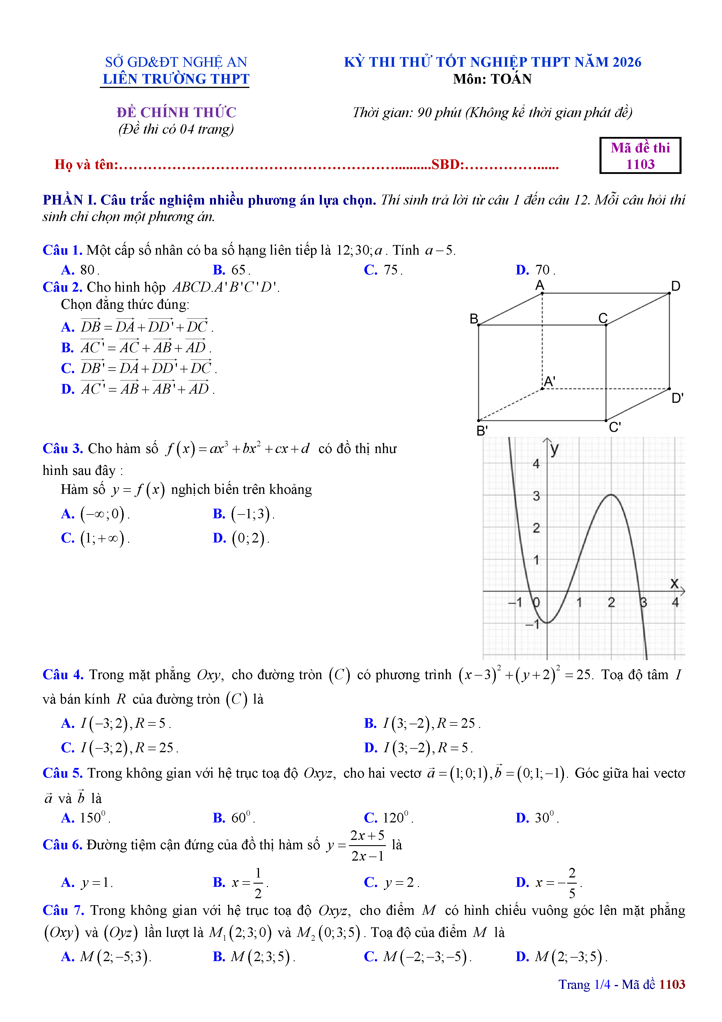 Đề thi thử tốt nghiệp THPT 2026 môn Toán liên trường THPT – Nghệ An kèm đáp án và lời giải chi tiết