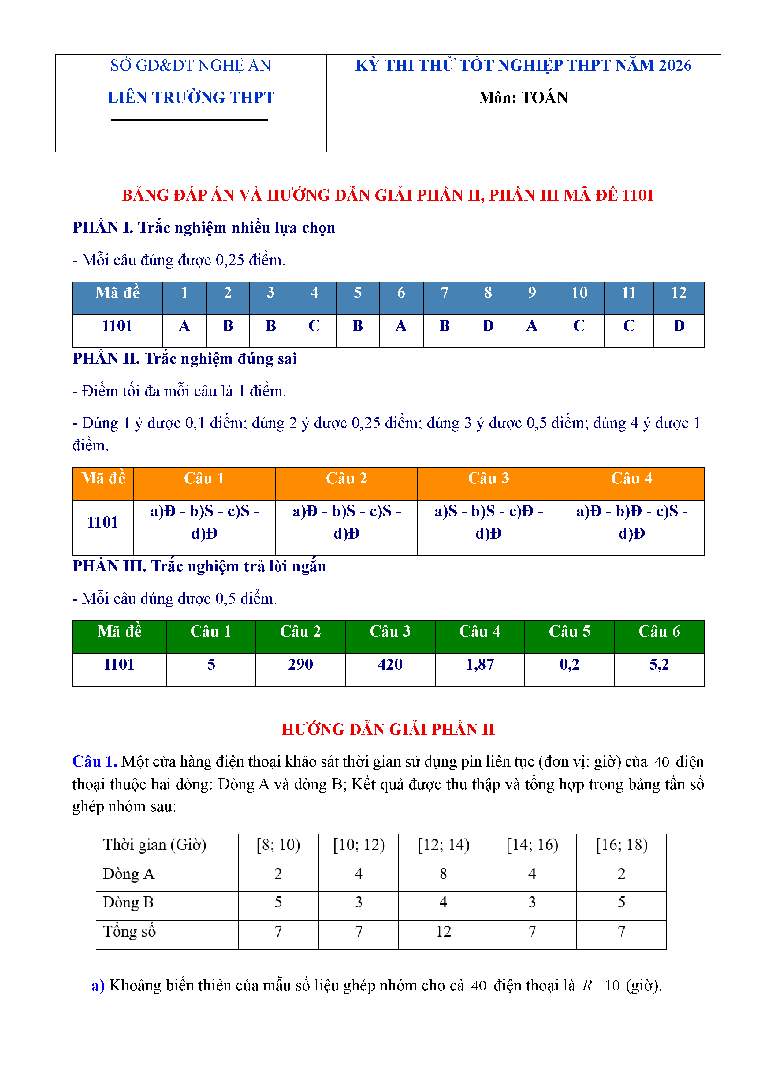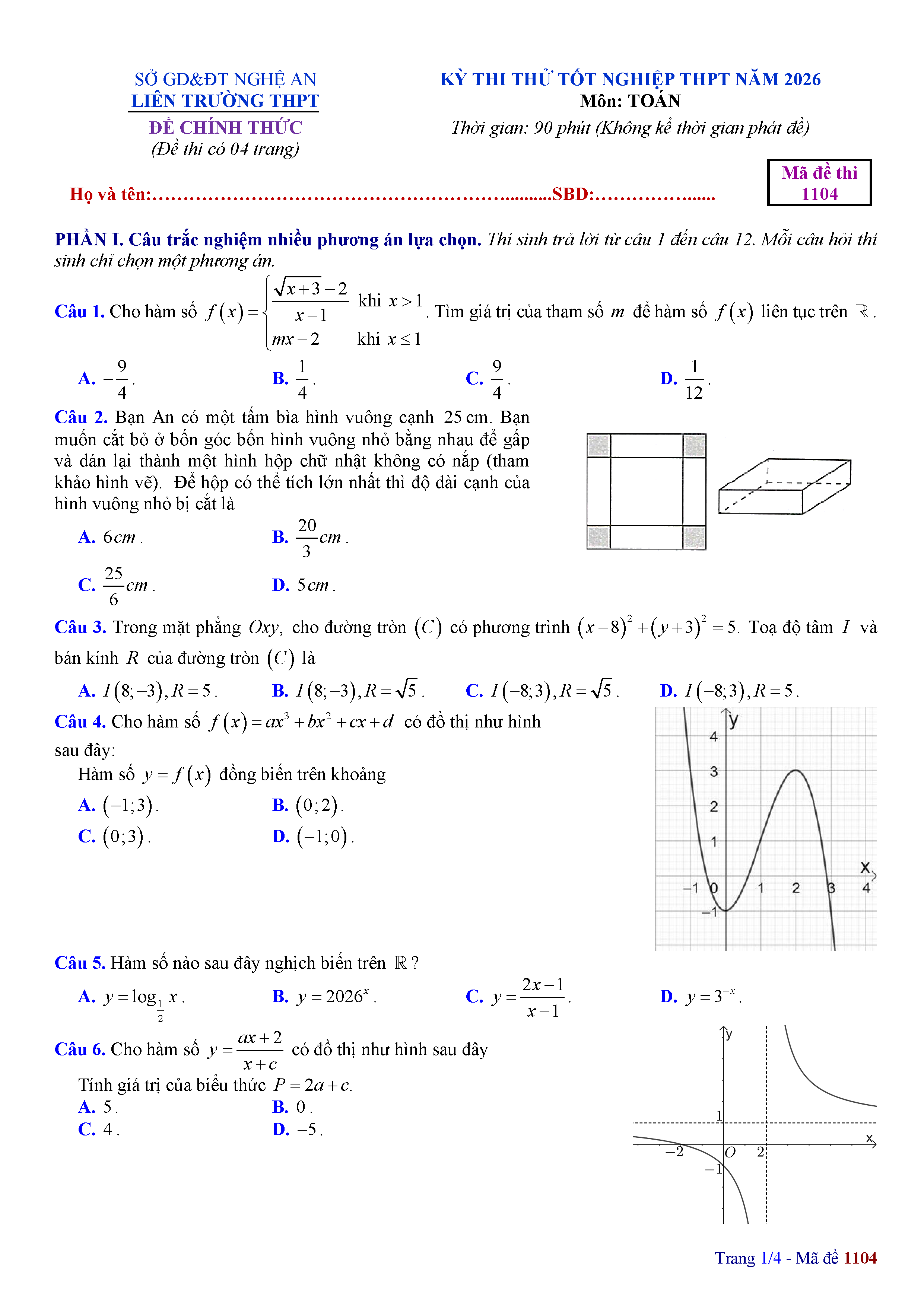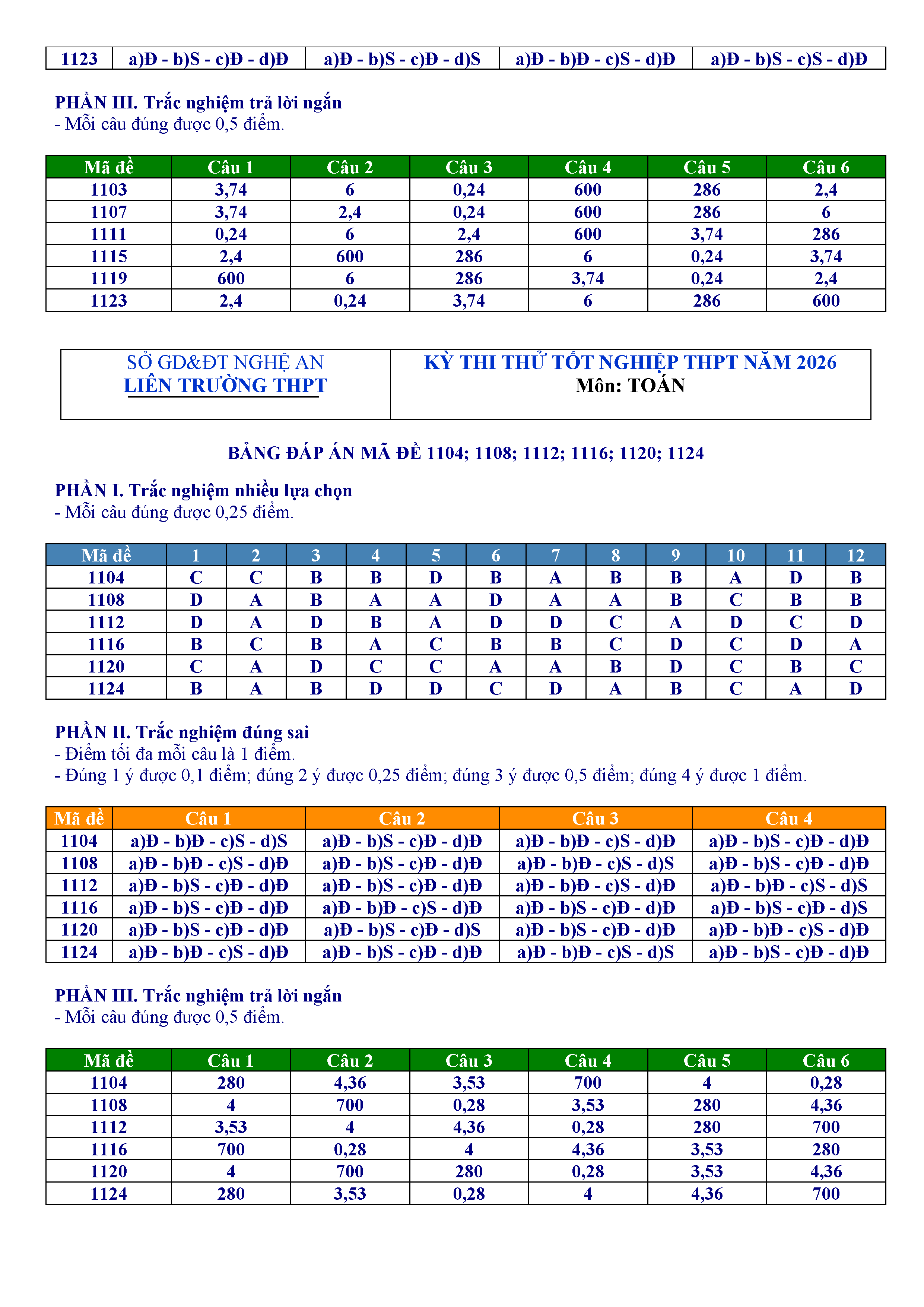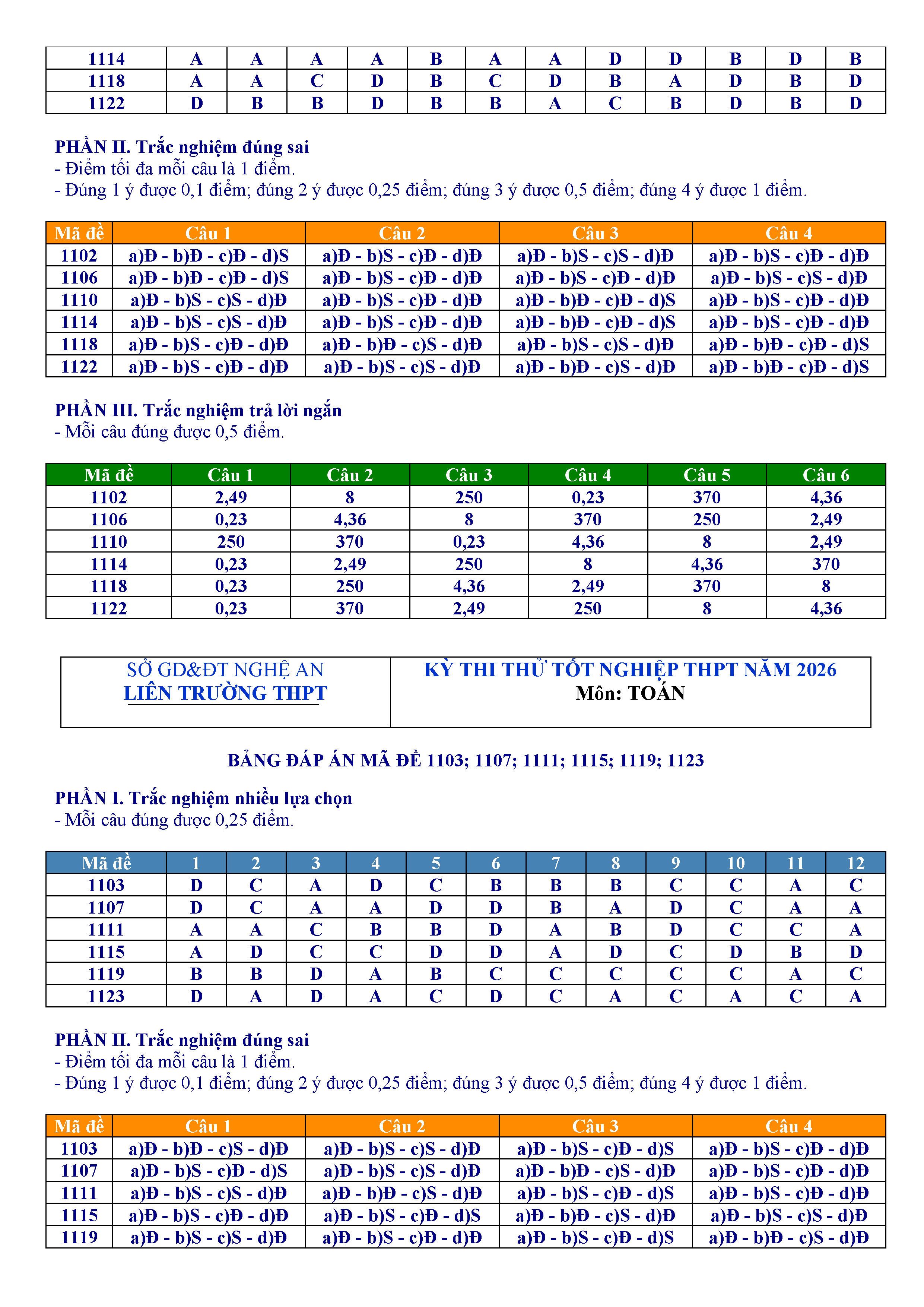 Đề thi thử tốt nghiệp THPT 2026 môn Toán liên trường THPT – Nghệ An kèm đáp án và lời giải chi tiết