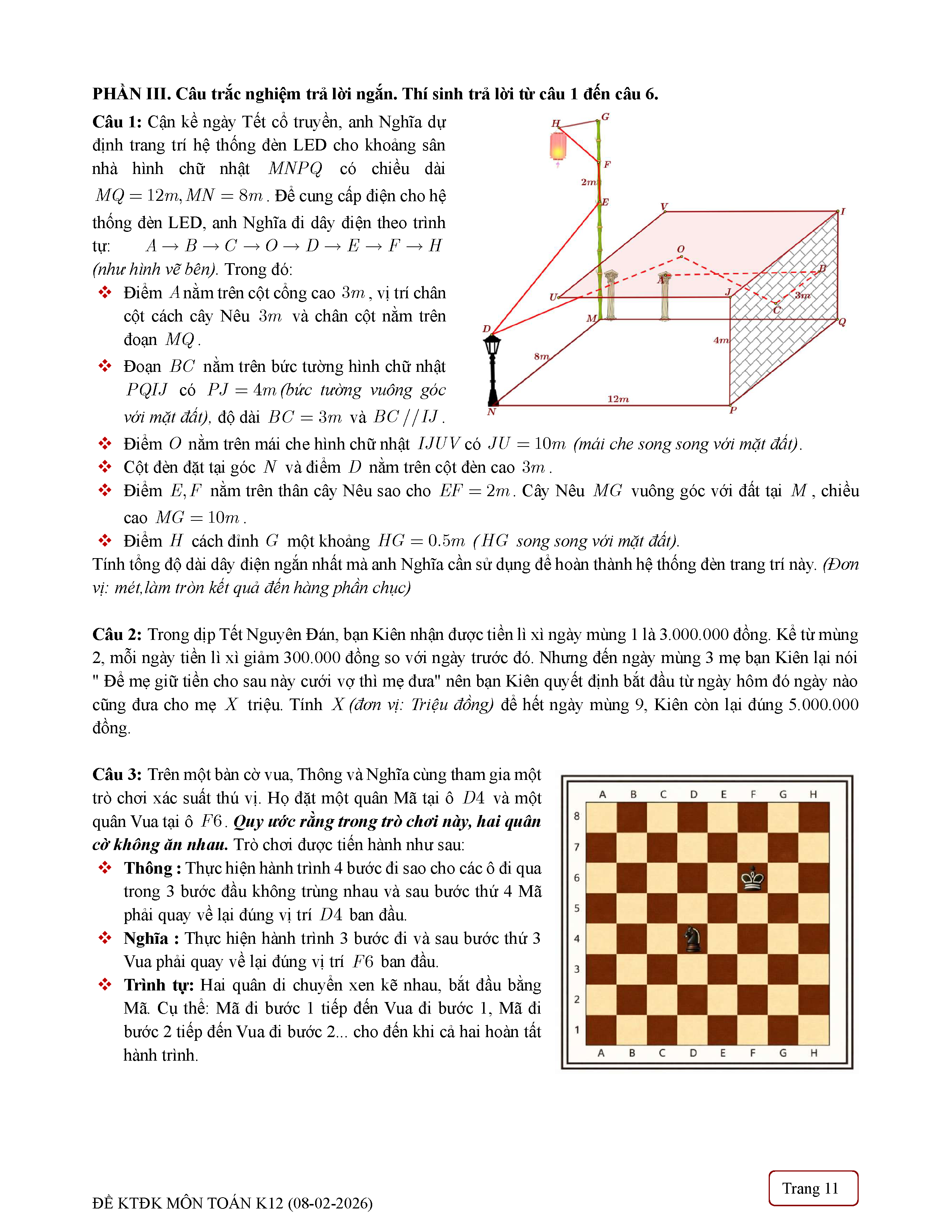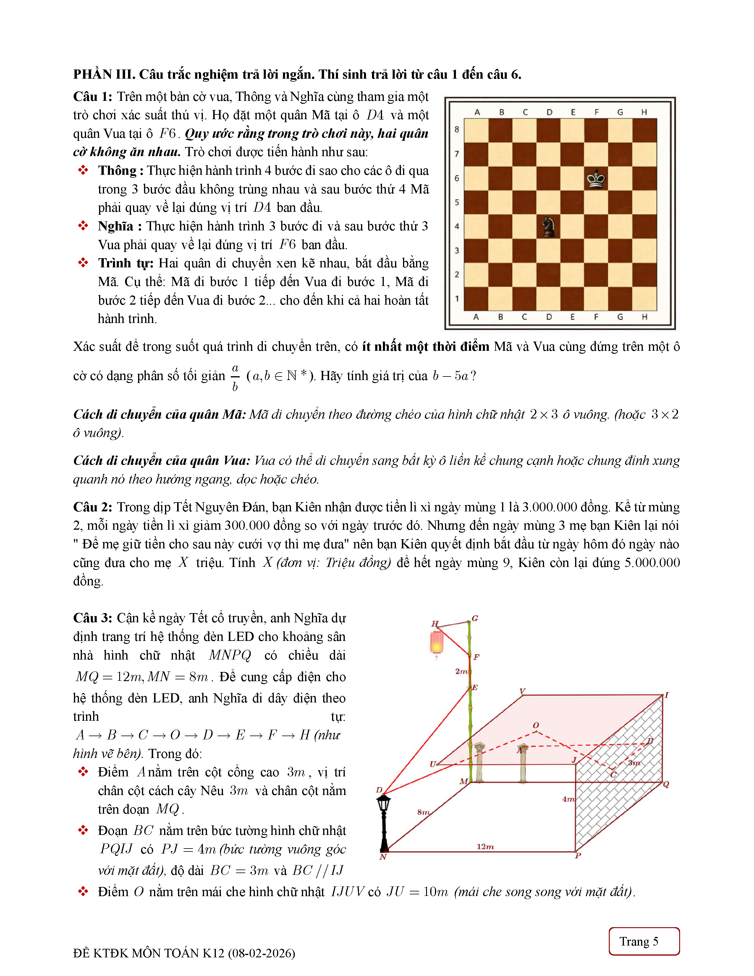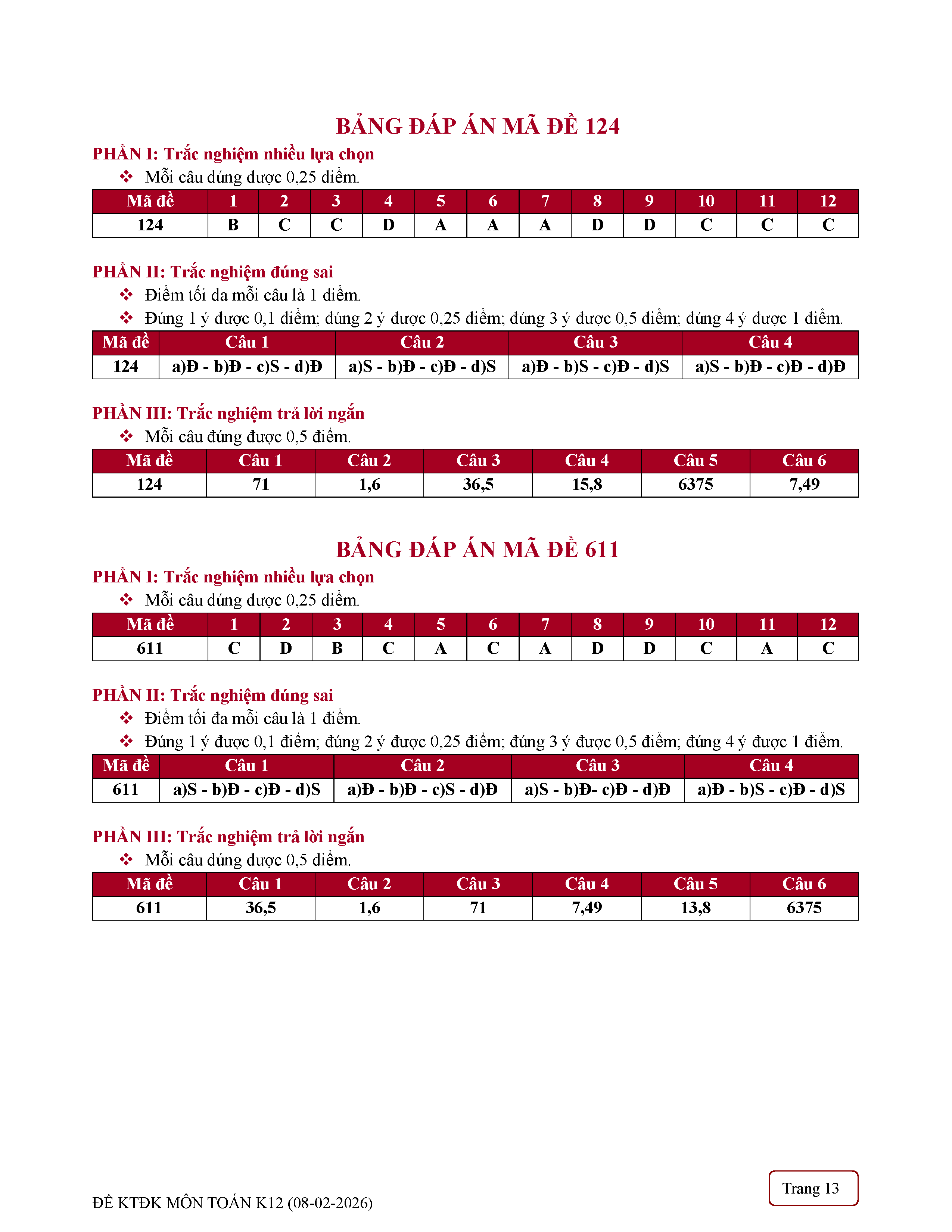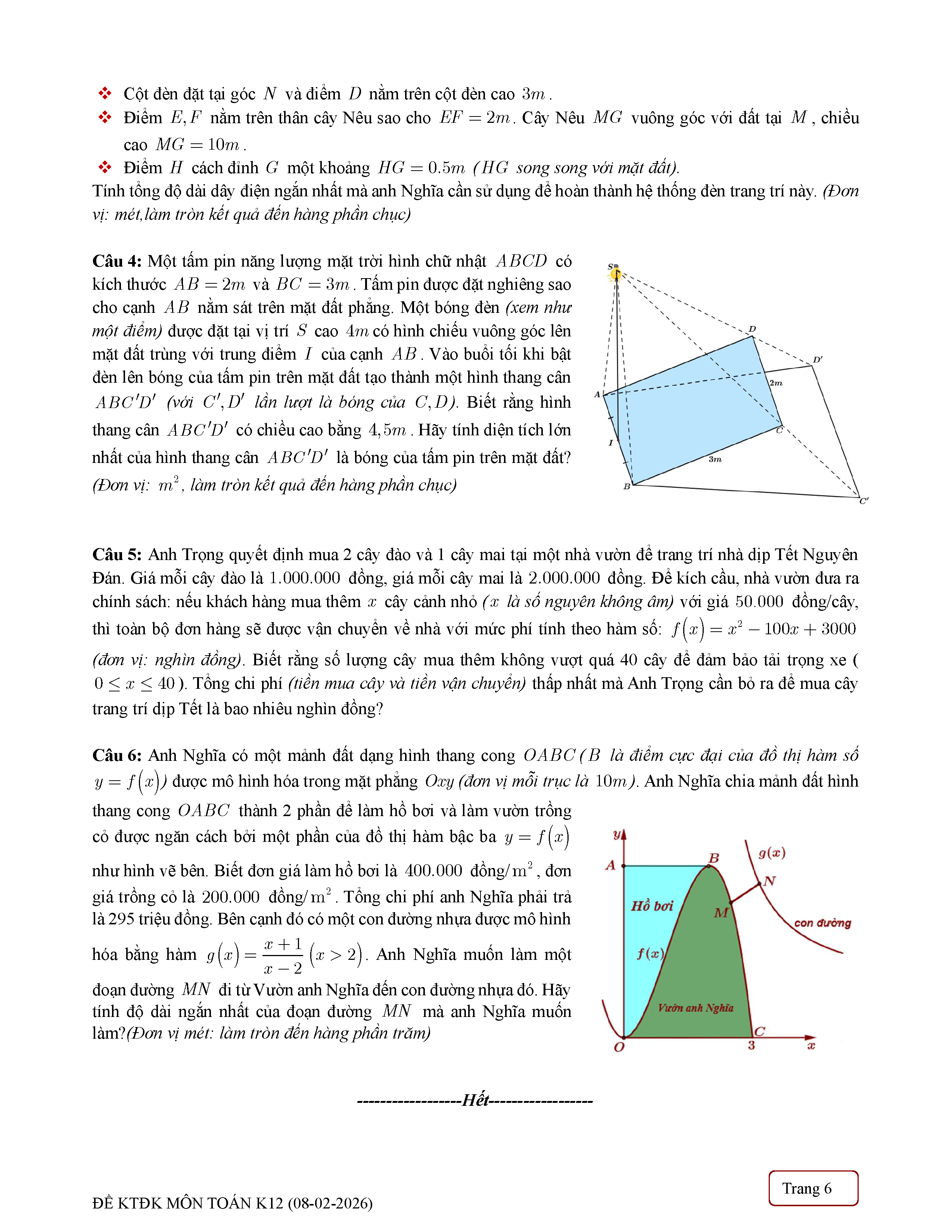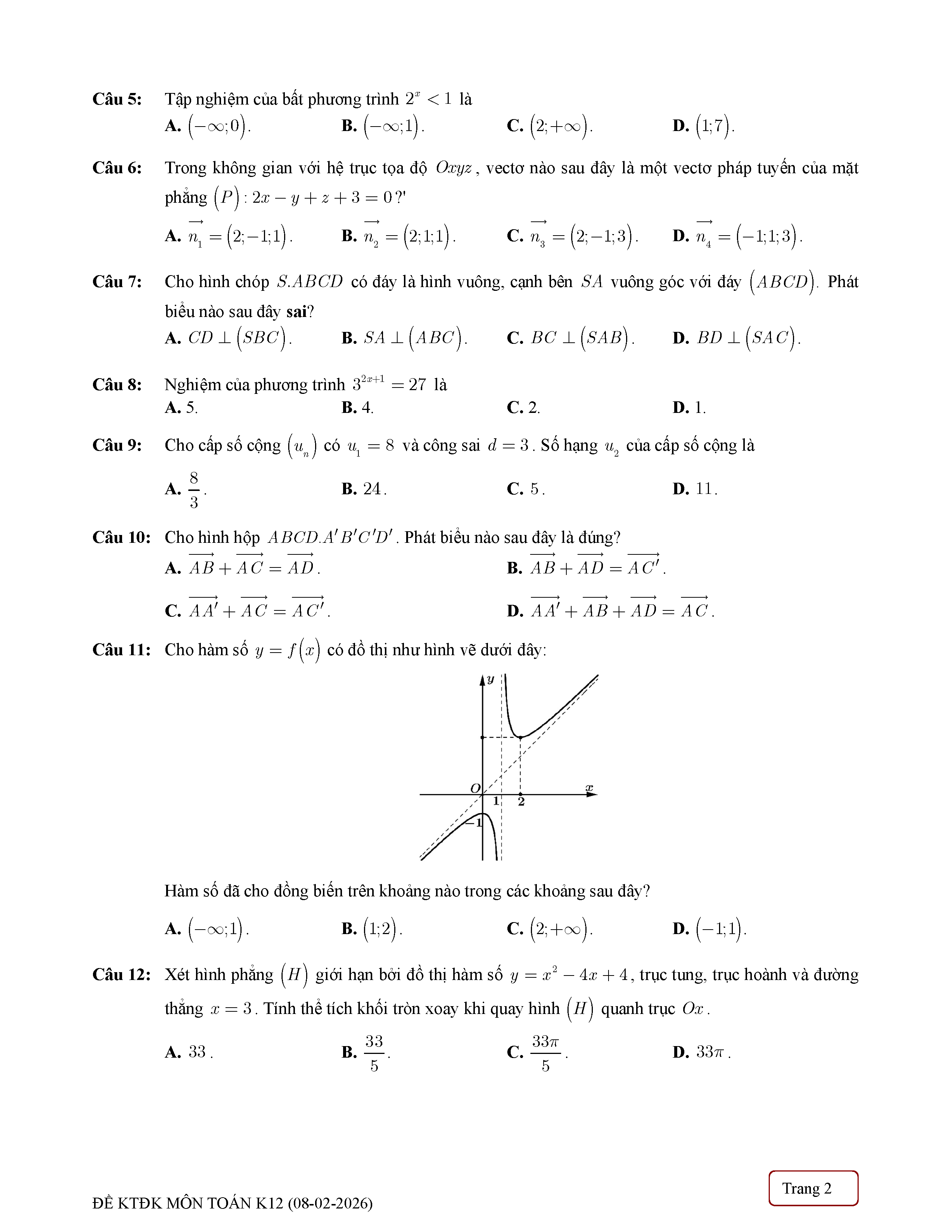 Đề kiểm tra Toán 12 tháng 2 năm 2026 trường Lê Thánh Tông – TP HCM kèm đáp án