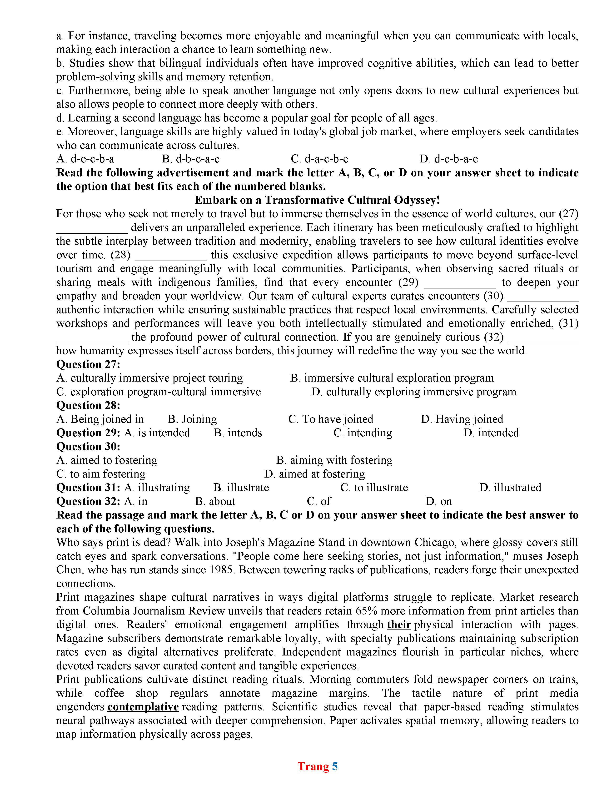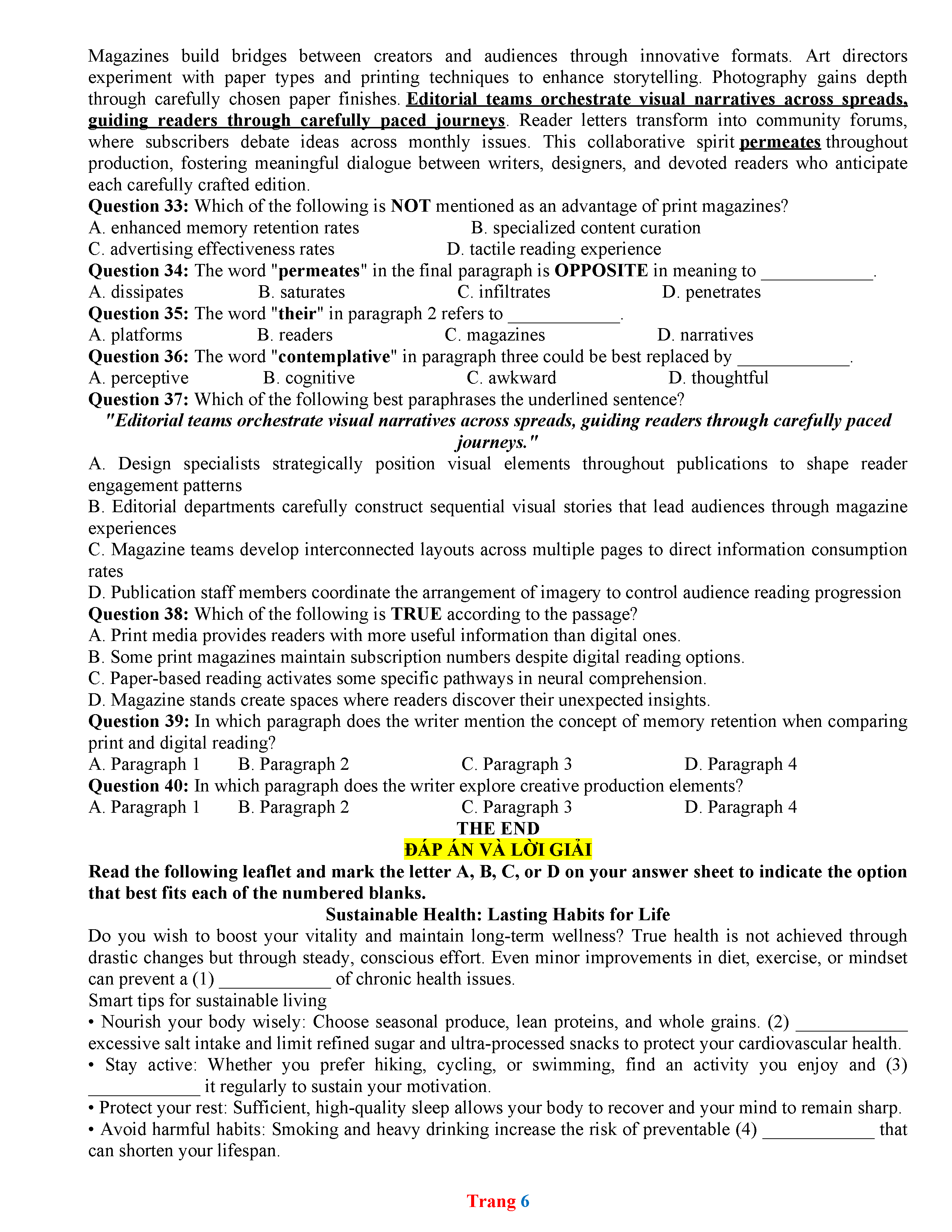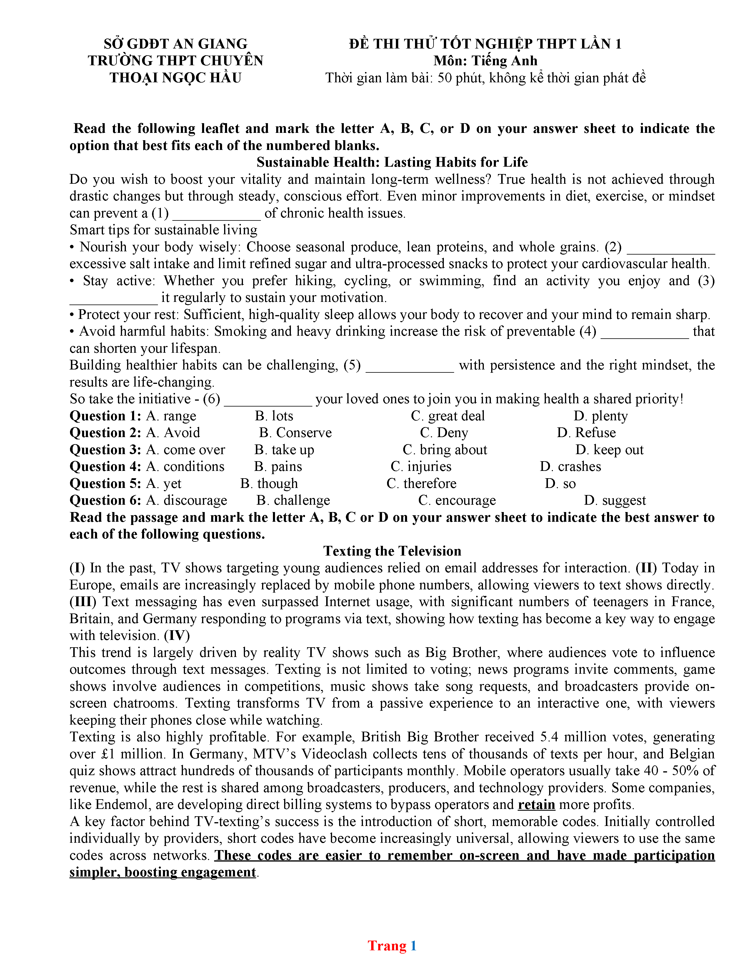 Đề Thi Thử Tốt Nghiệp 2026 Tiếng Anh THPT Chuyên Thoại Ngọc Hầu Lần 1 Có Đáp Án