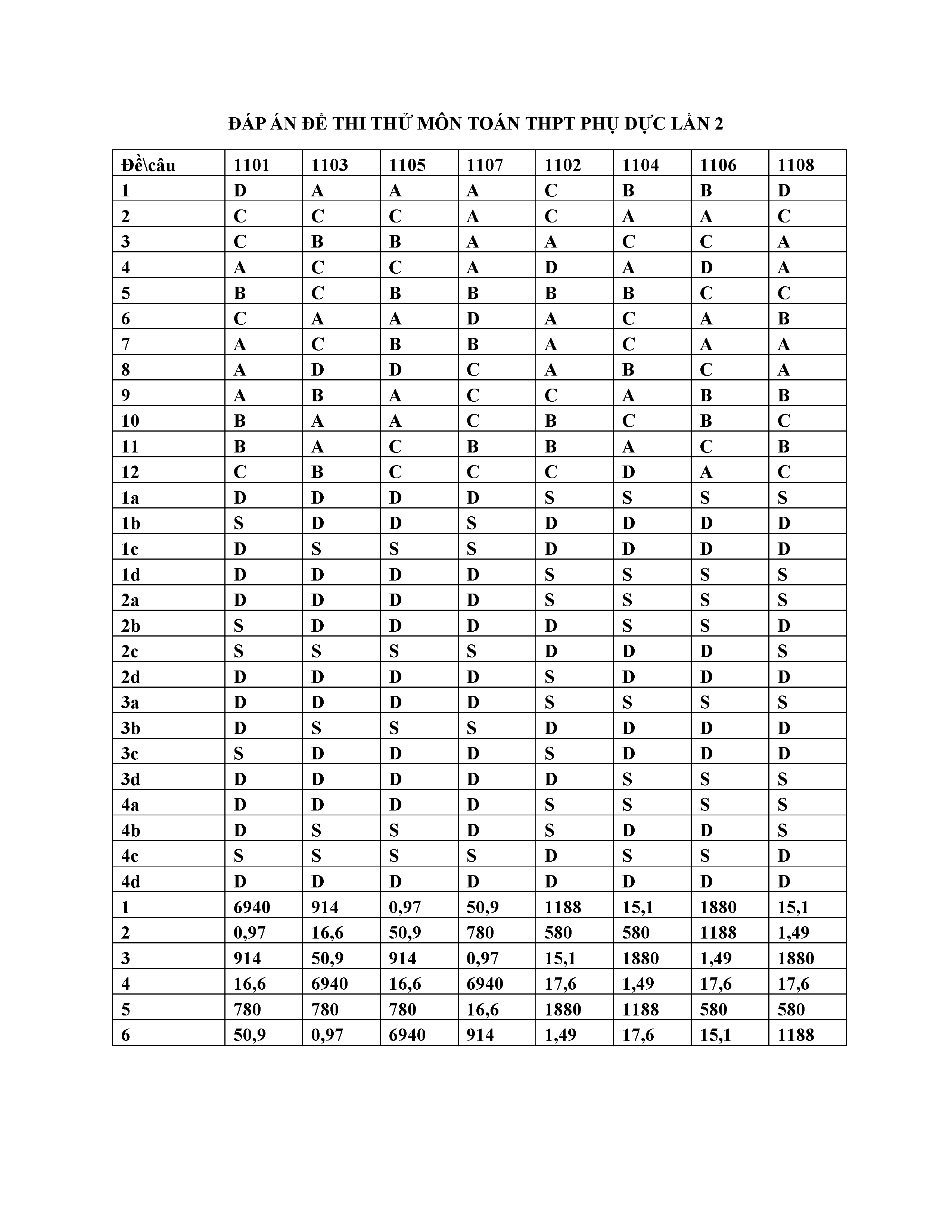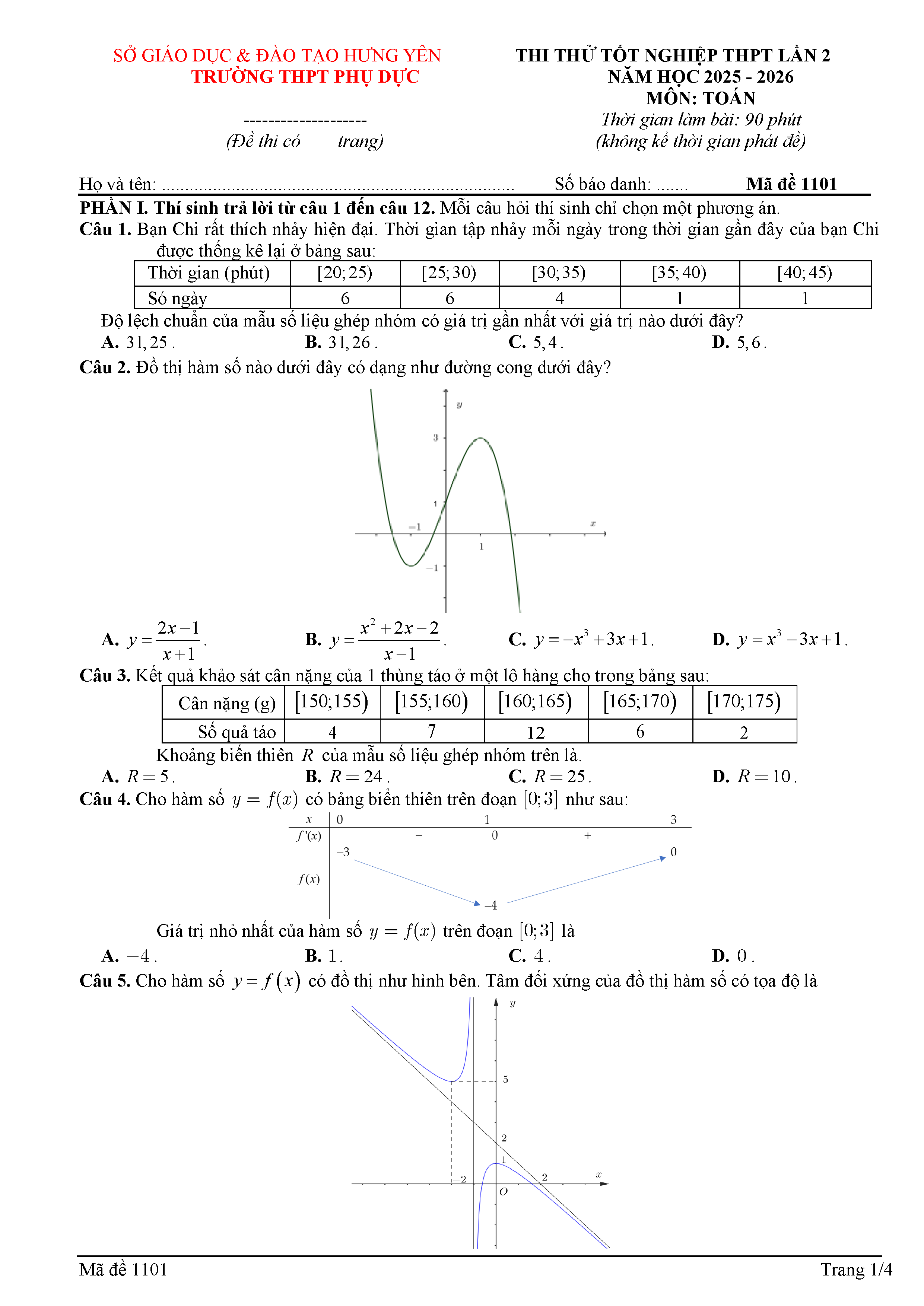 Đề thi thử TN THPT 2026 môn Toán lần 2 trường THPT Phụ Dực – Hưng Yên kèm đáp án
